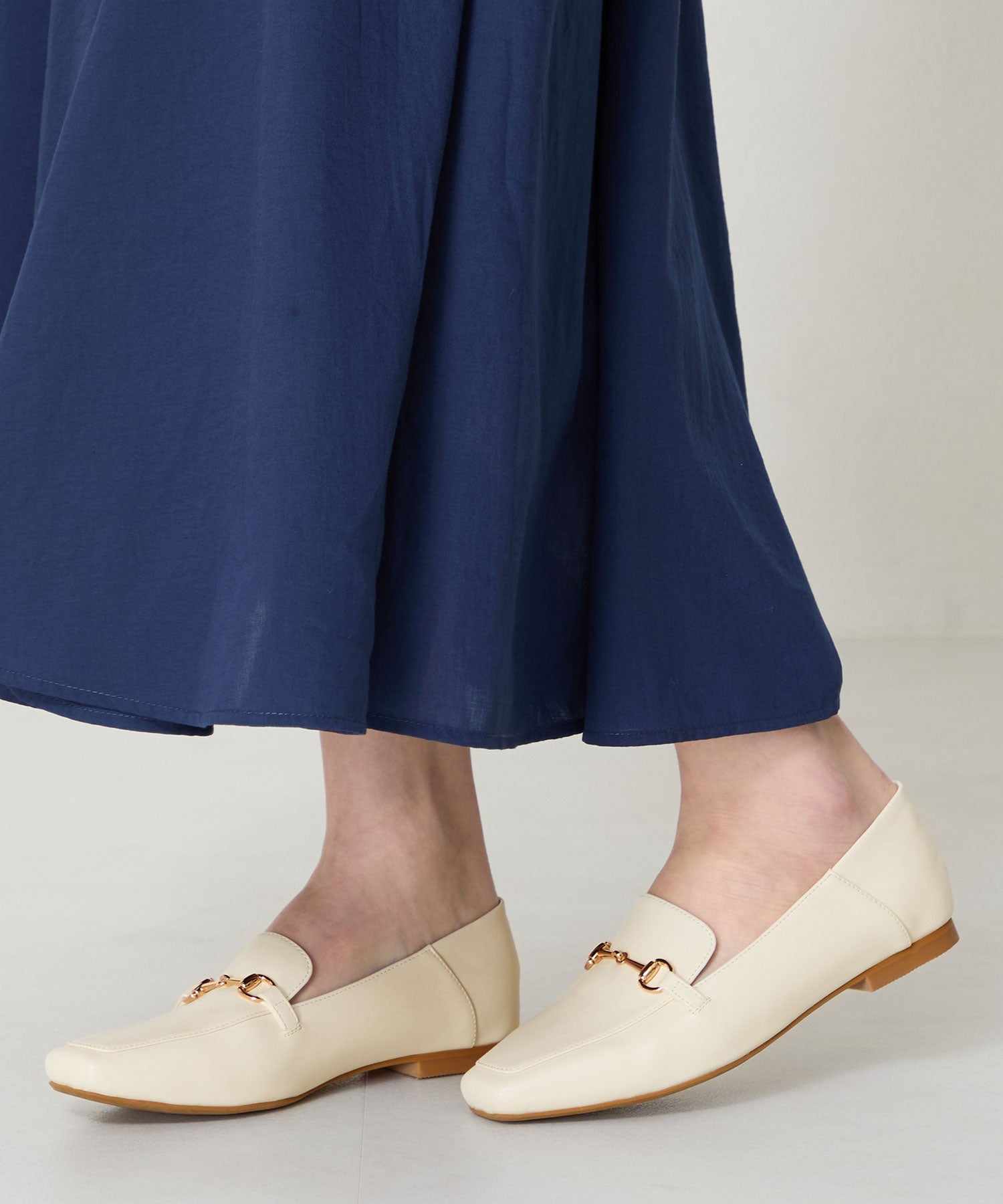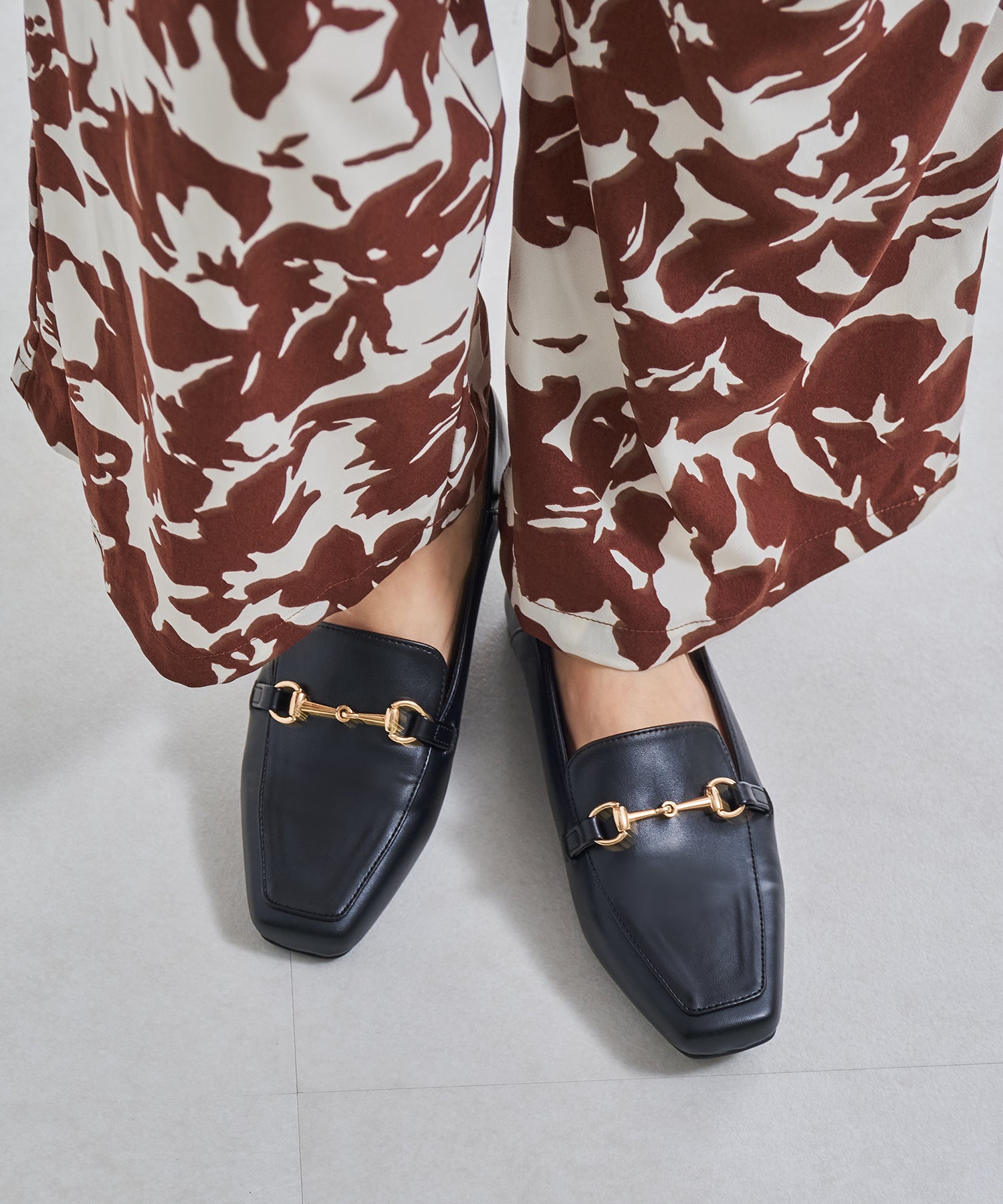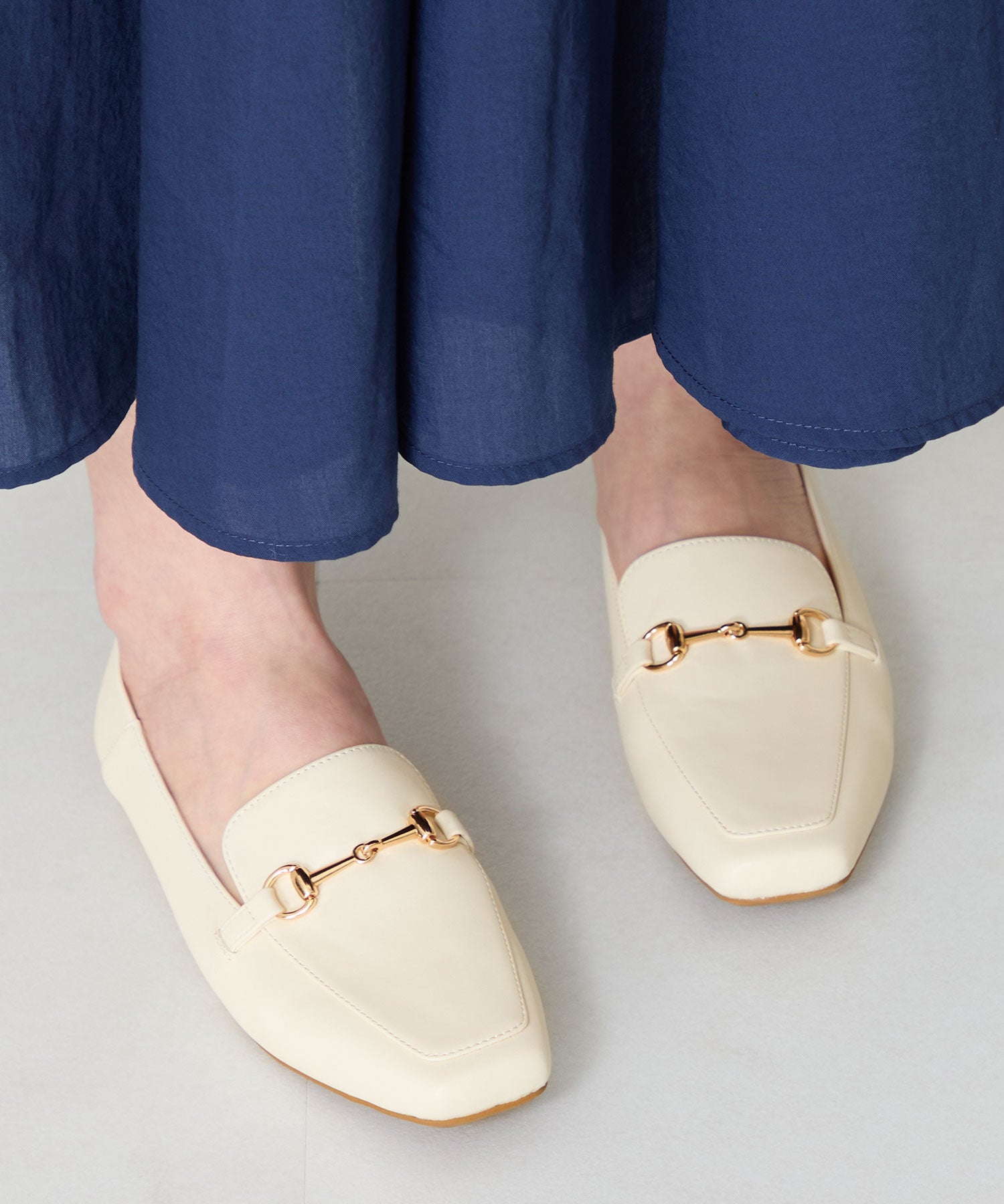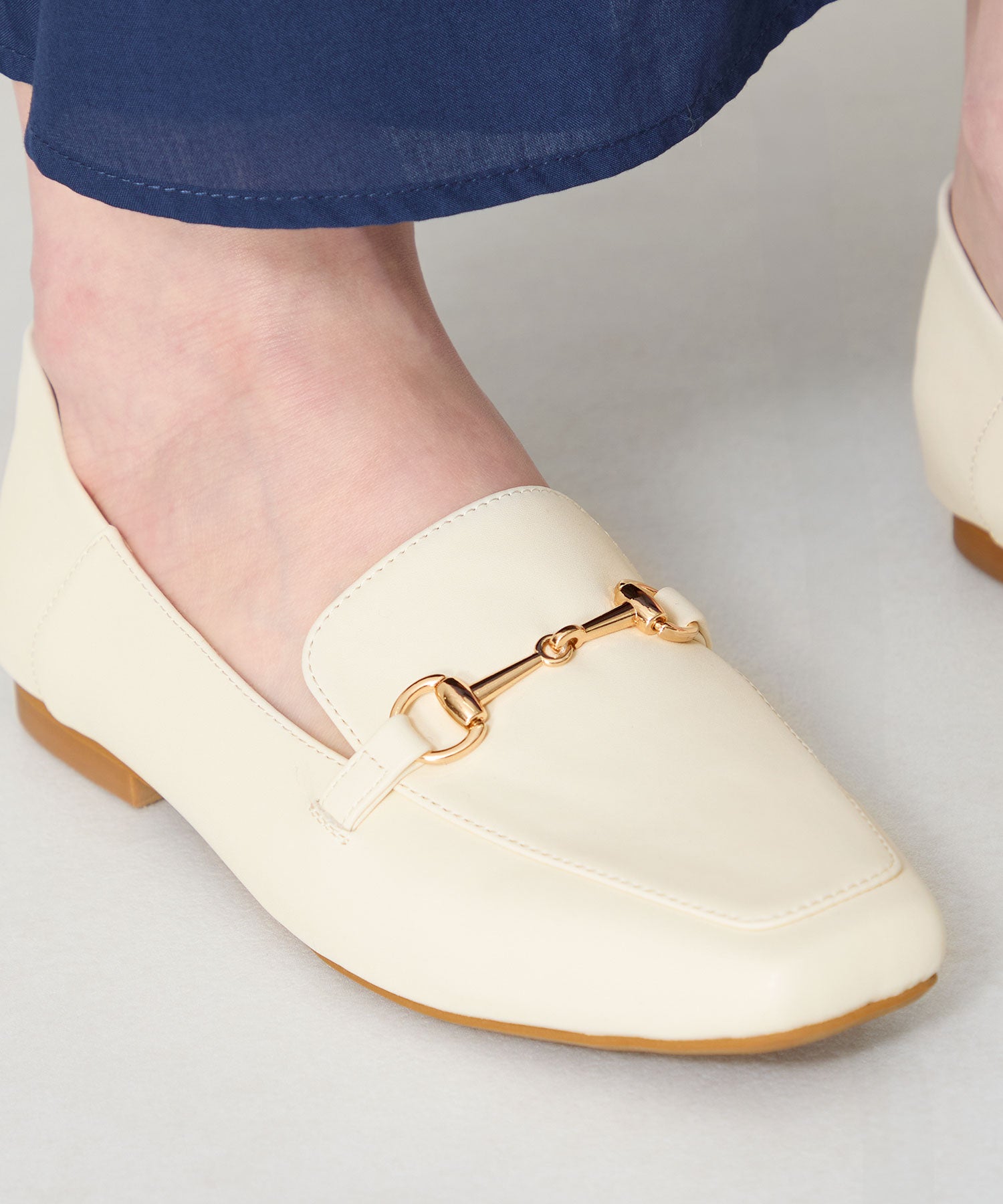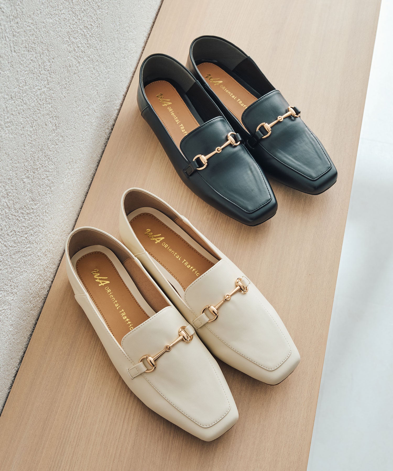 デイリー使いできる定番のビットローファーは、履き心地にこだわった1足。中敷にはふかふかの厚手クッションを入れることで、履いた瞬間に足裏をしっかり包み込むような履き心地。つま先にかけてすっきりとしたスクエアトゥでシルエットまで計算されたアイテム。柔らかな踵は負担が少なく、踏んでも履けるバブーシュデザインが嬉しい2way仕様。柔らかい印象のベージュカラーが新色。