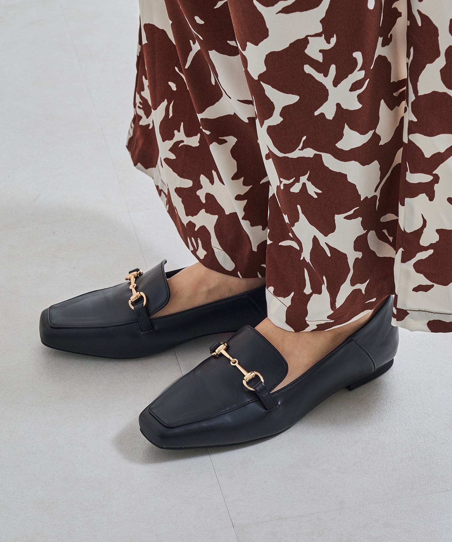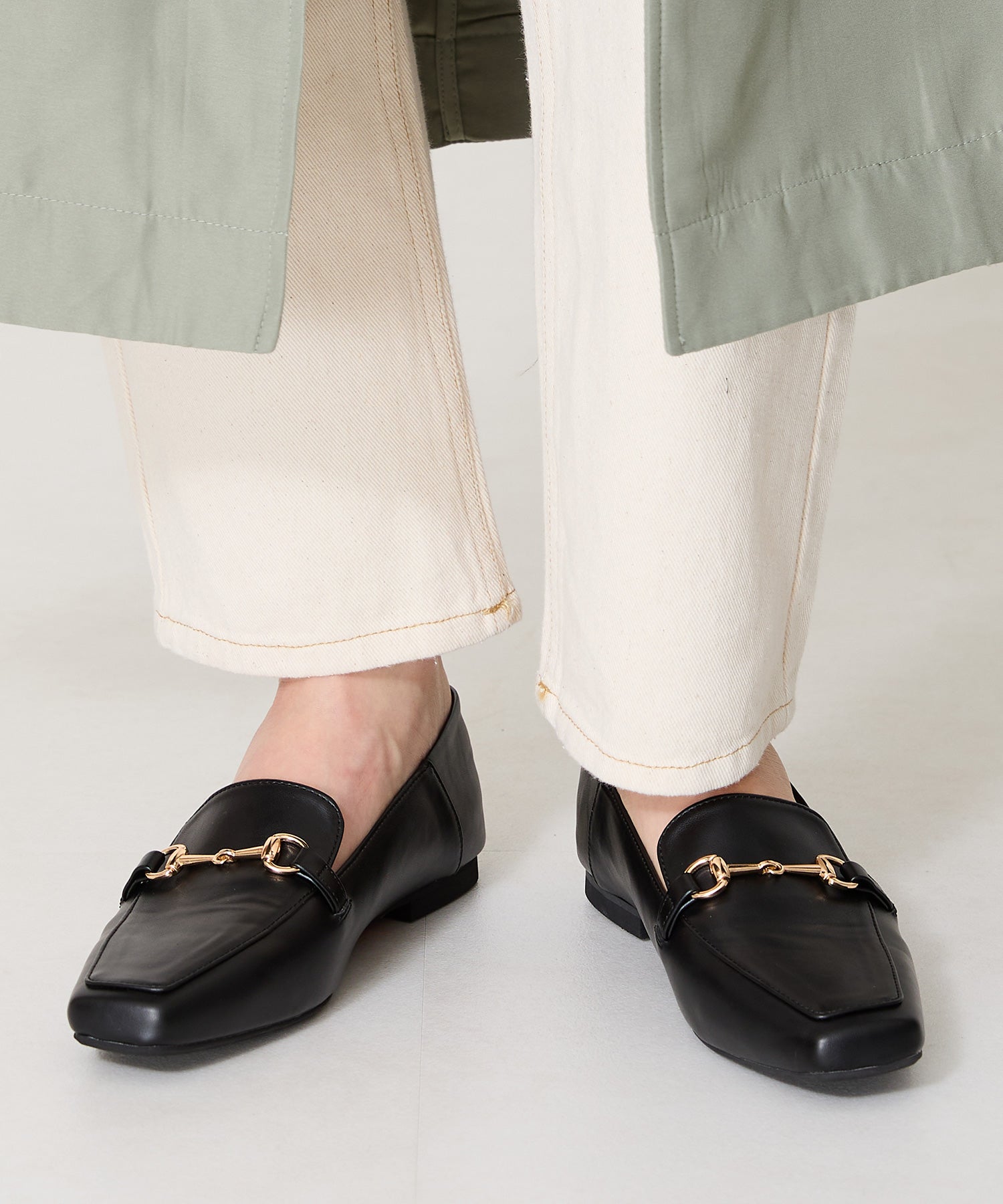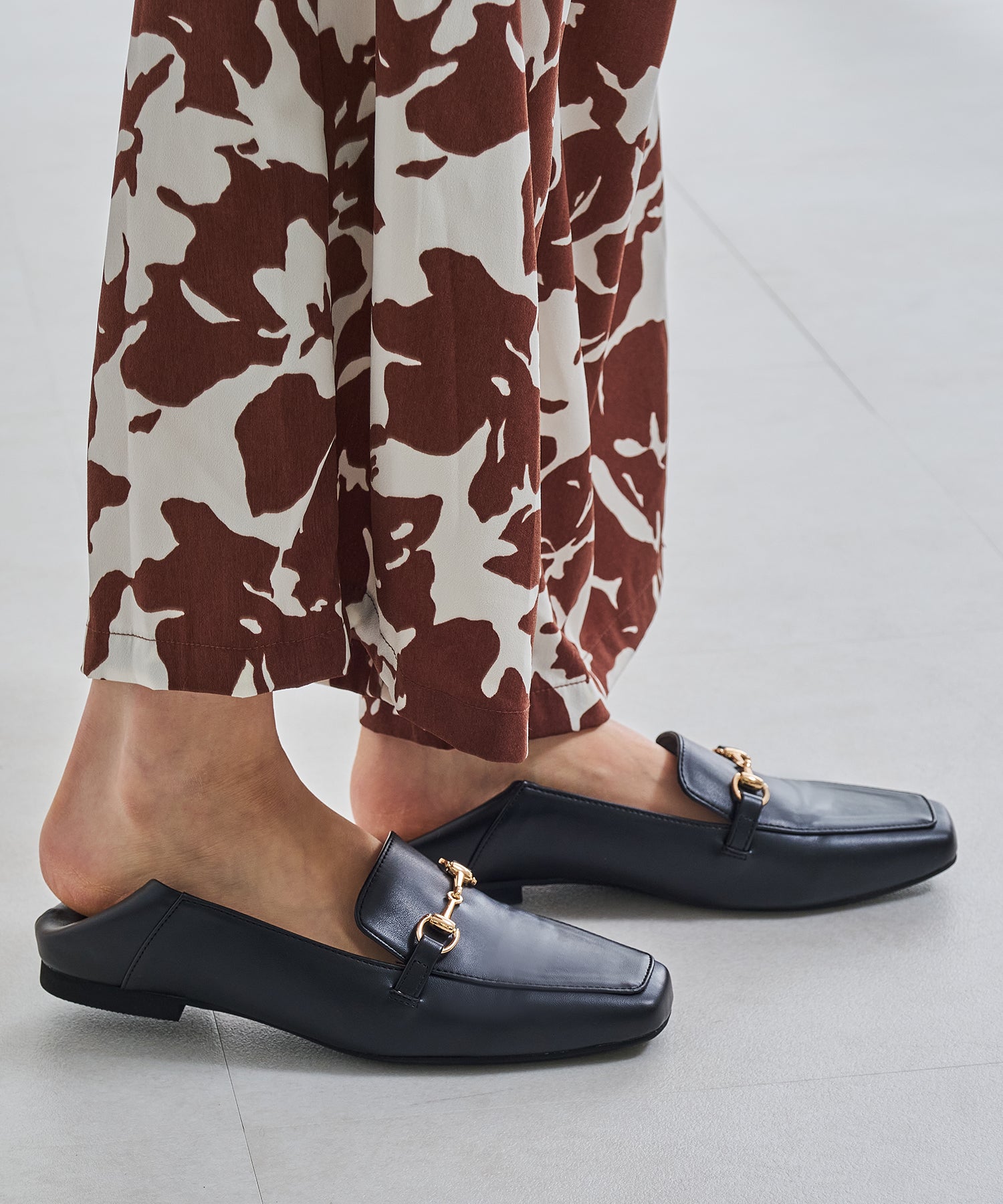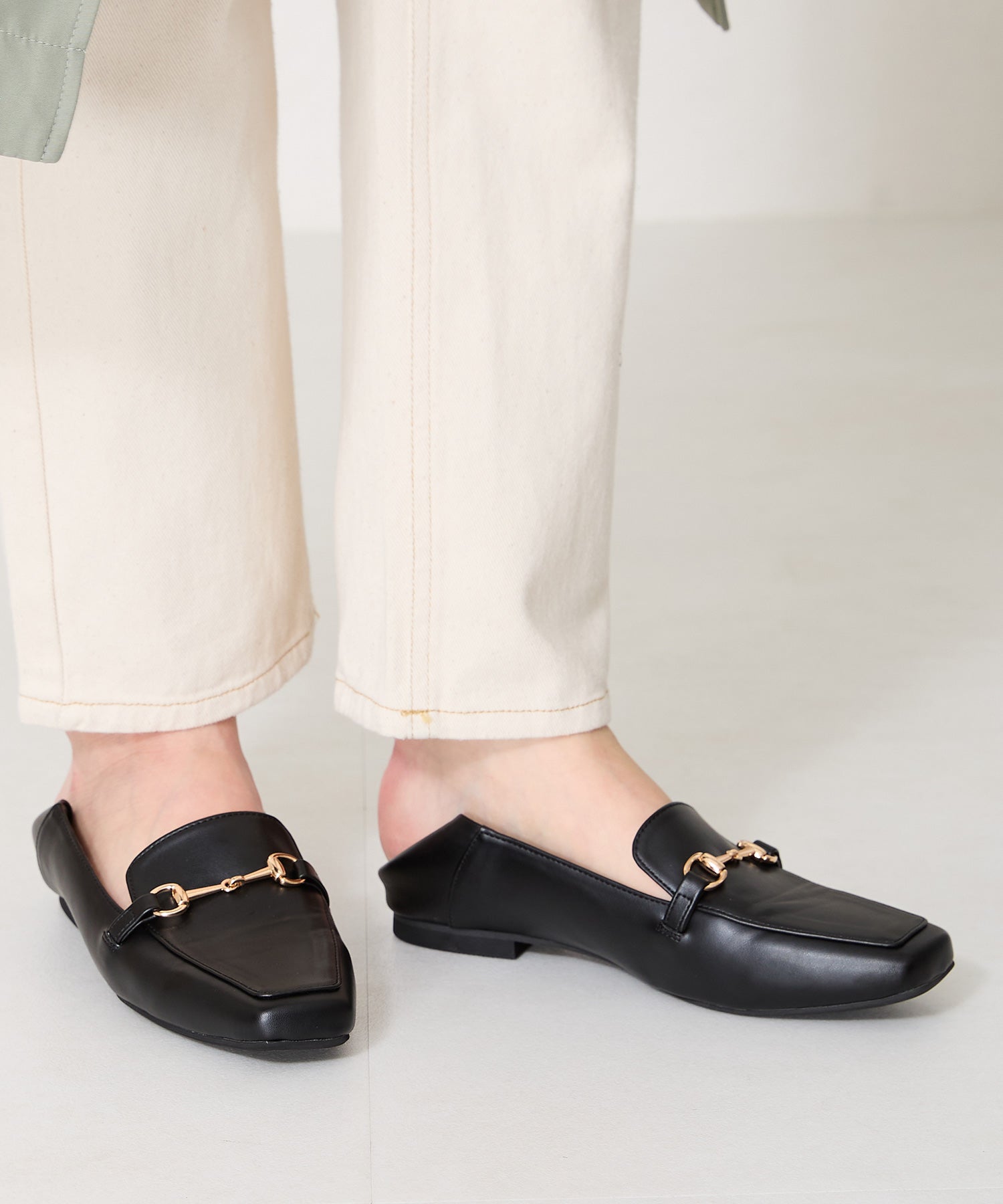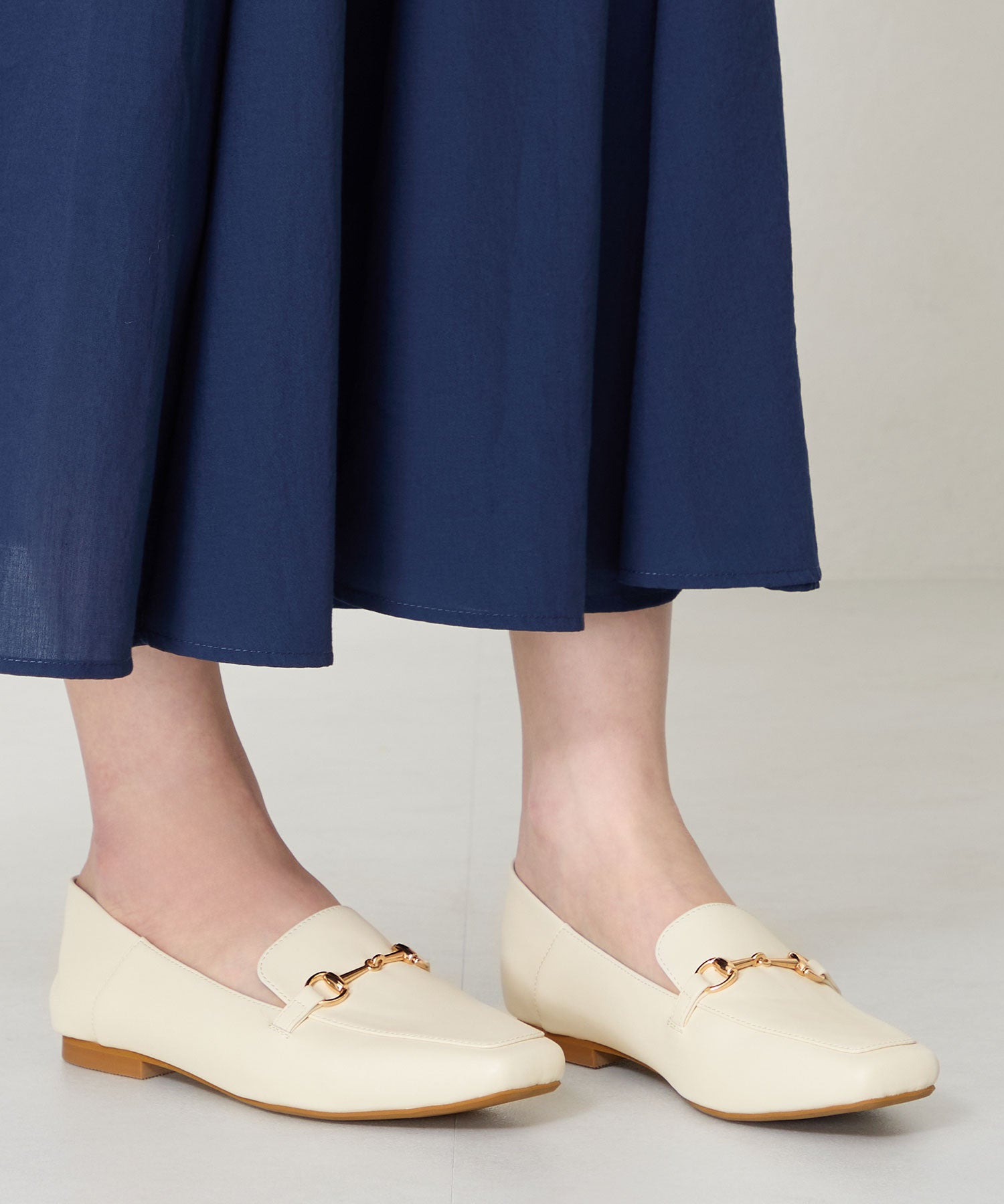 デイリー使いできる定番のビットローファーは、履き心地にこだわった1足。中敷にはふかふかの厚手クッションを入れることで、履いた瞬間に足裏をしっかり包み込むような履き心地。つま先にかけてすっきりとしたスクエアトゥでシルエットまで計算されたアイテム。柔らかな踵は負担が少なく、踏んでも履けるバブーシュデザインが嬉しい2way仕様。柔らかい印象のベージュカラーが新色。