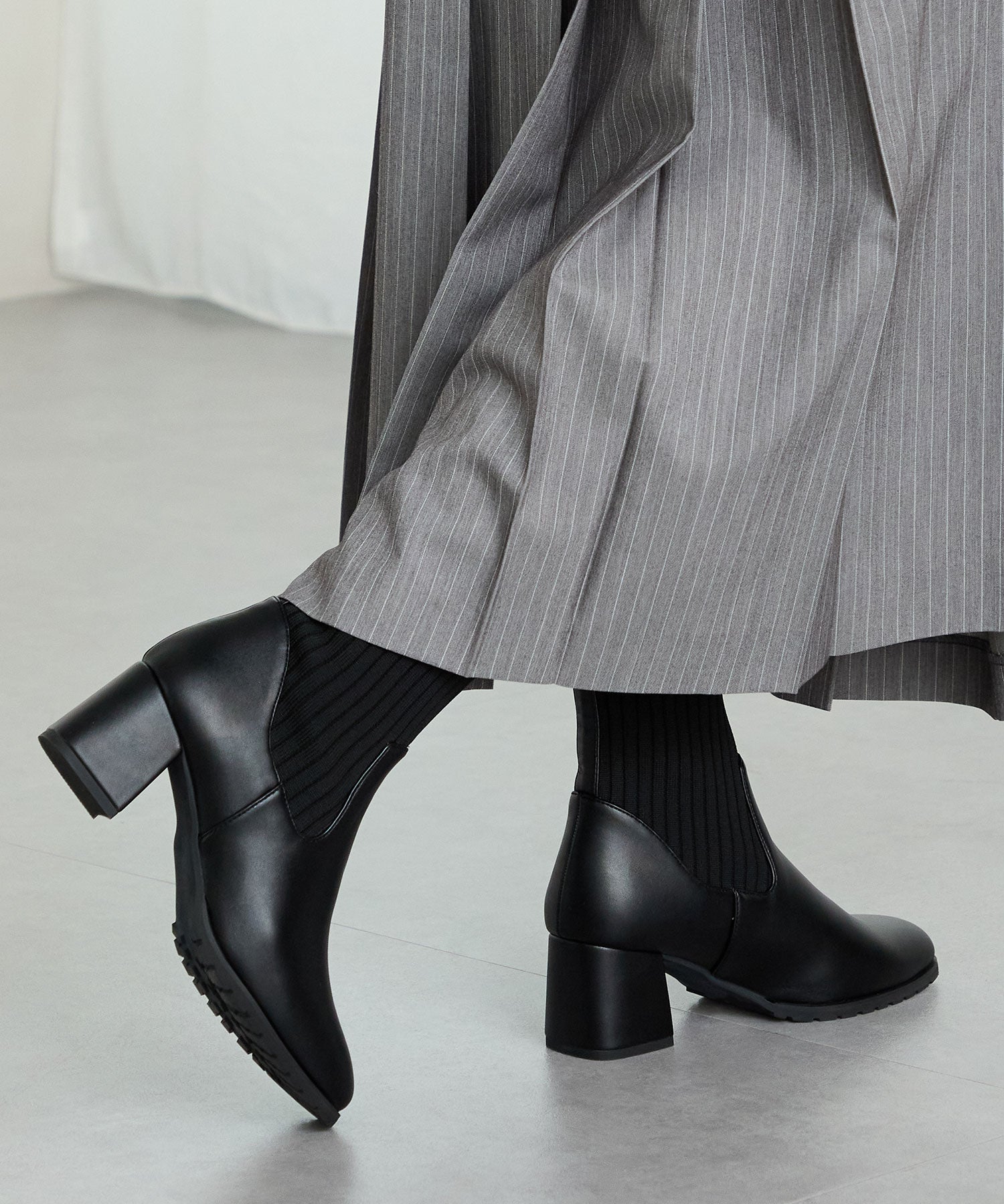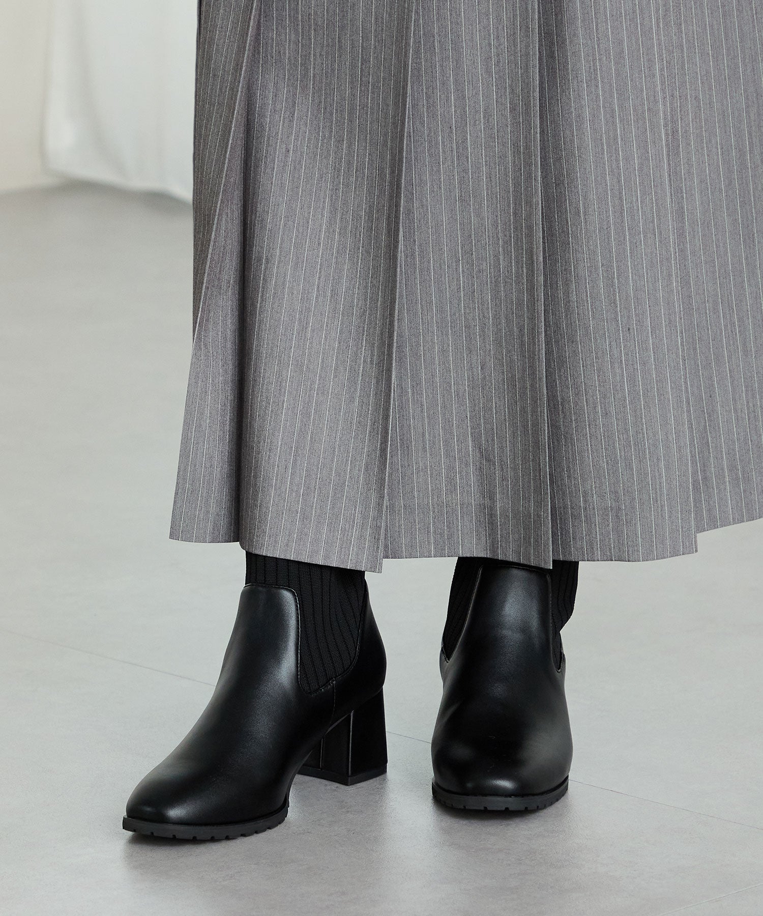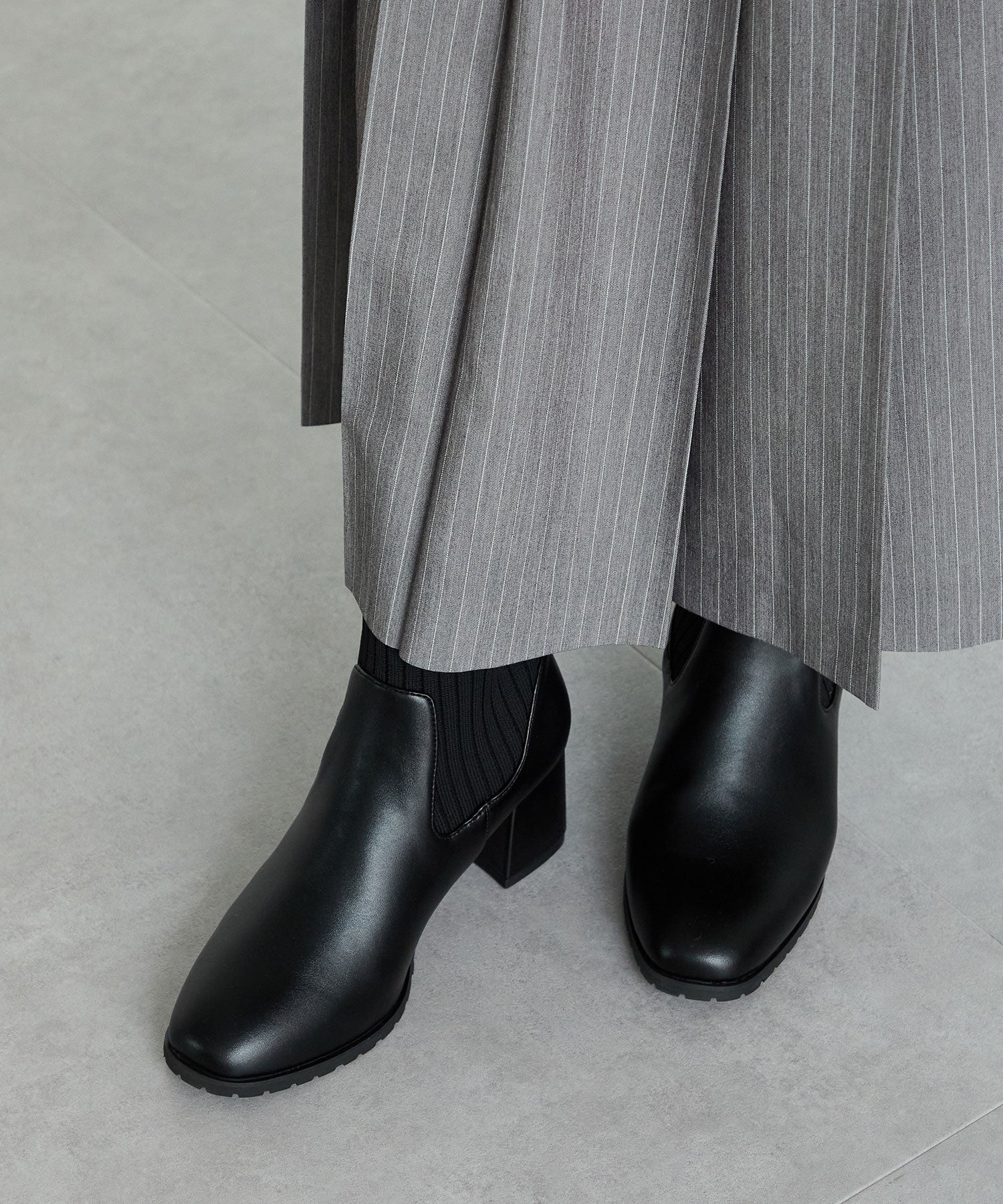 スクエアトゥニットヒールブーツ/31403