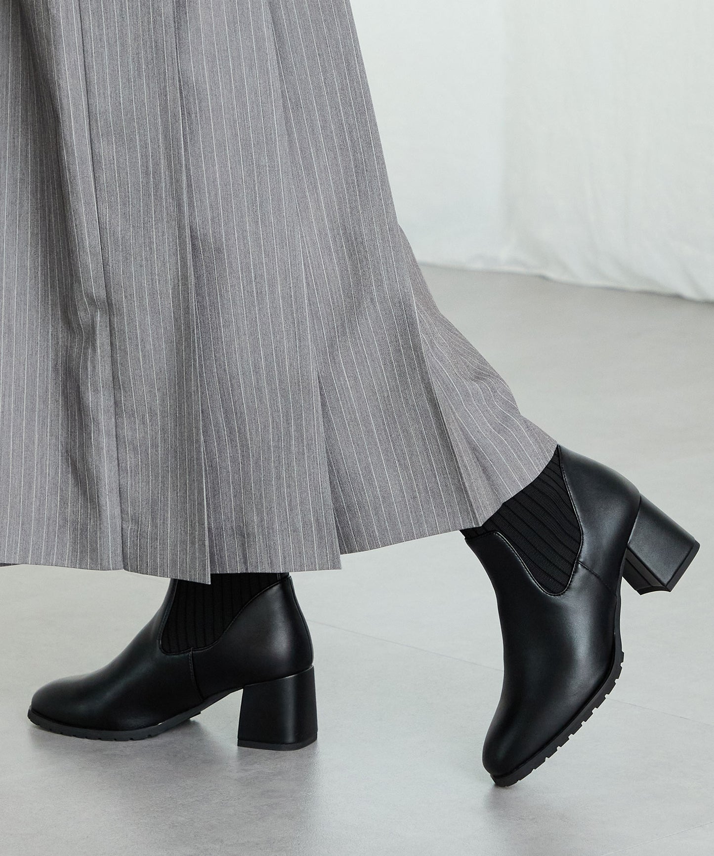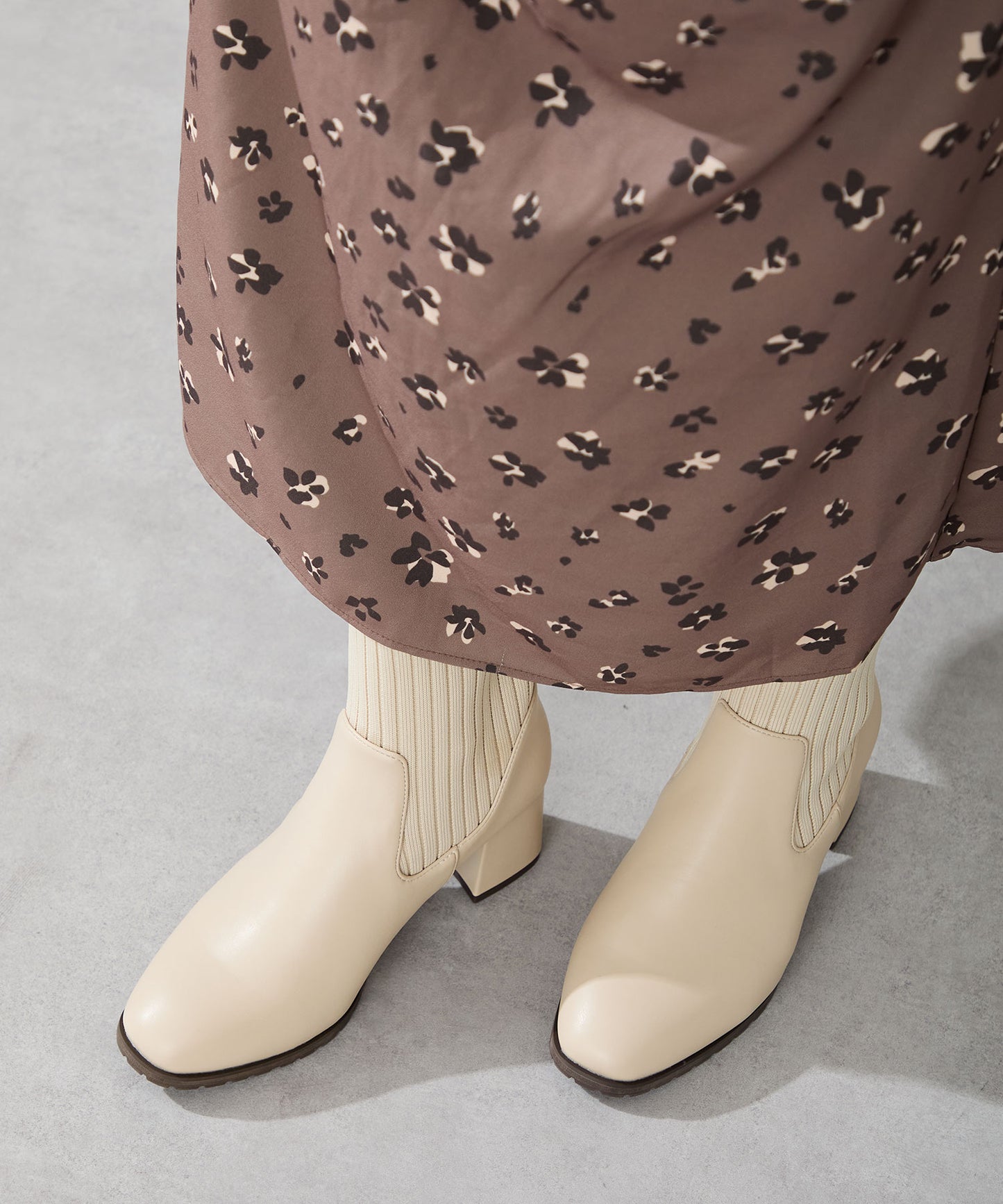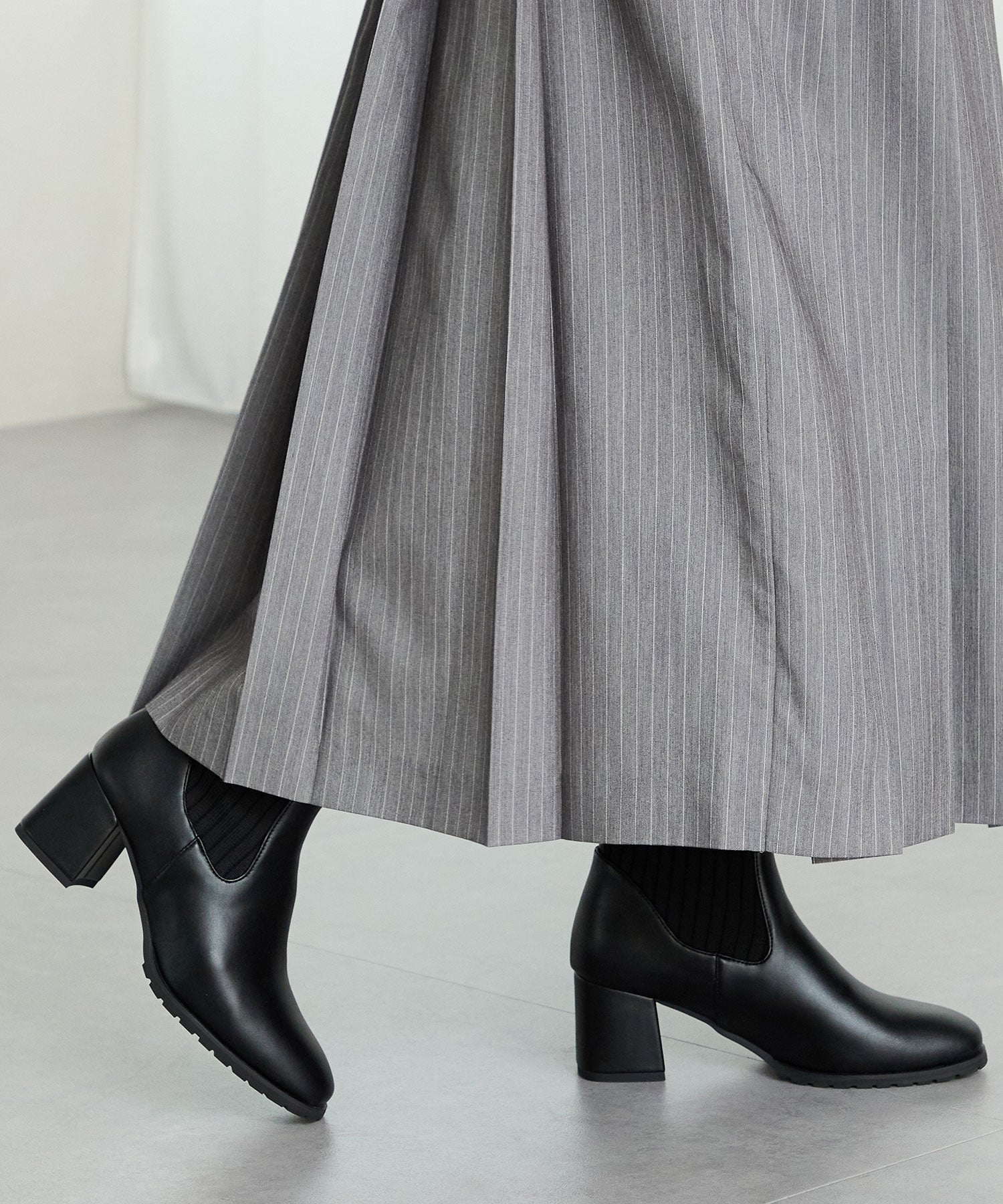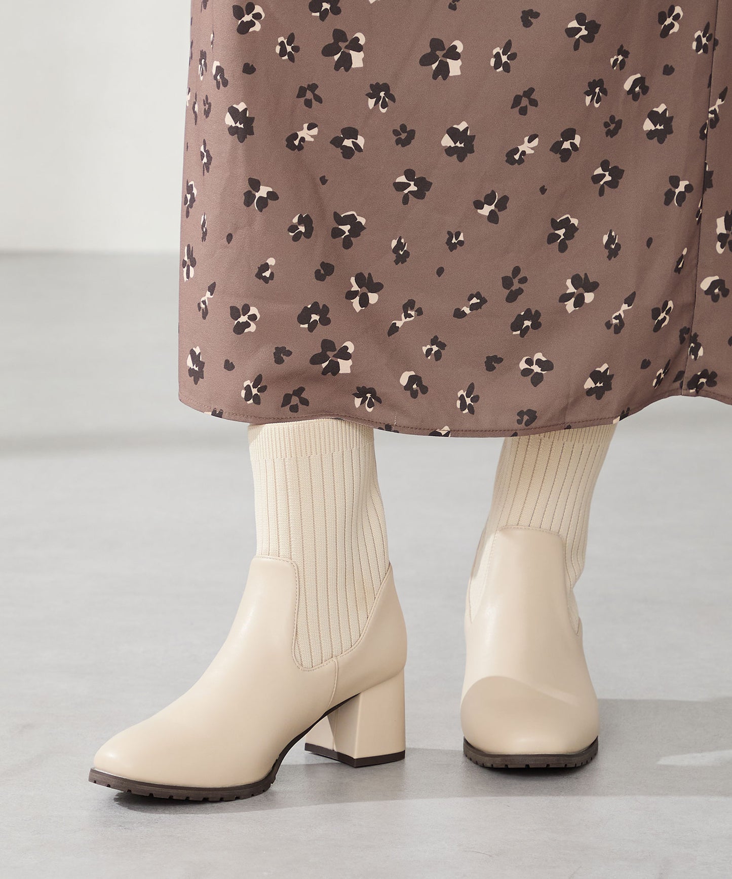 スクエアトゥニットヒールブーツ/31403