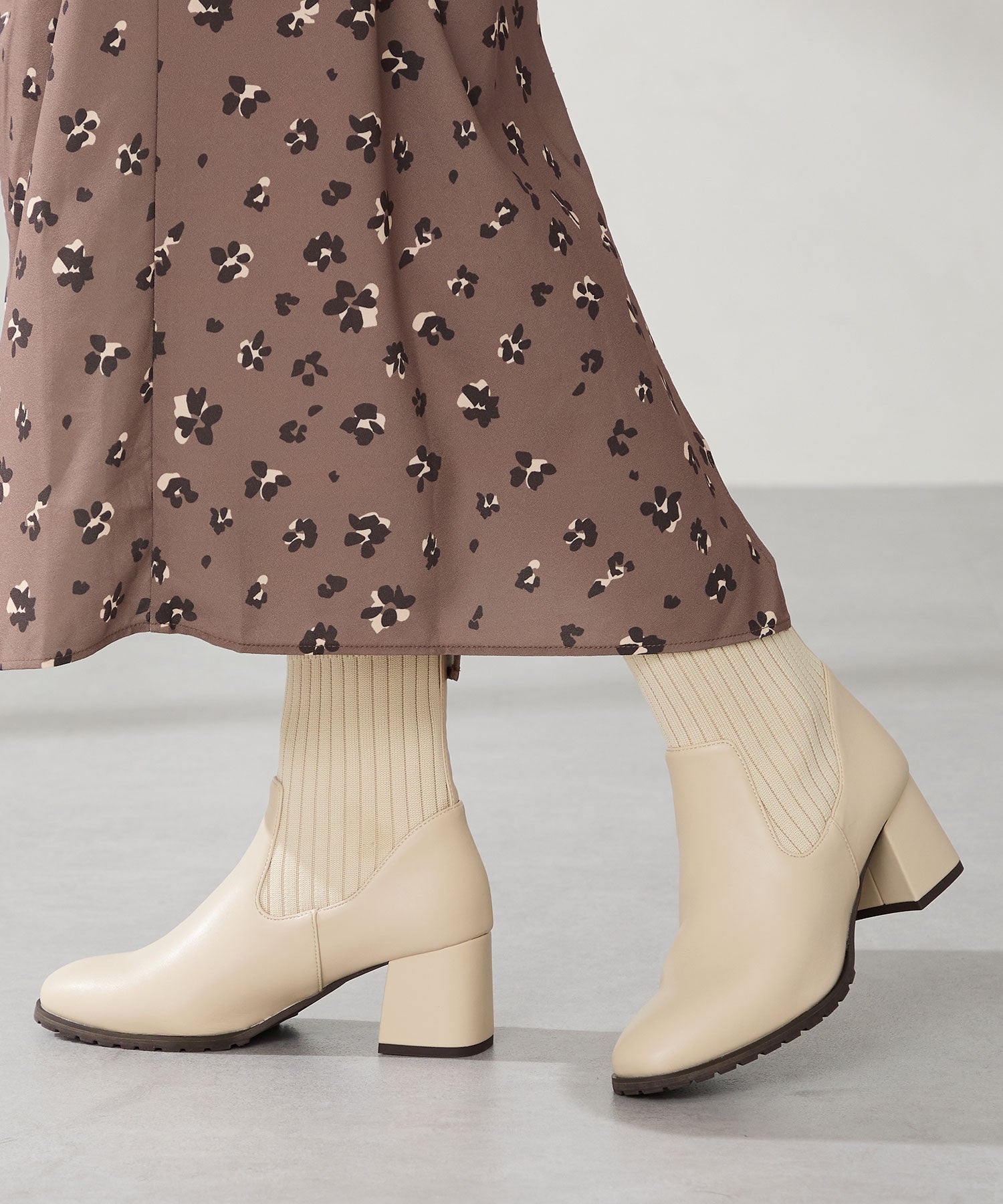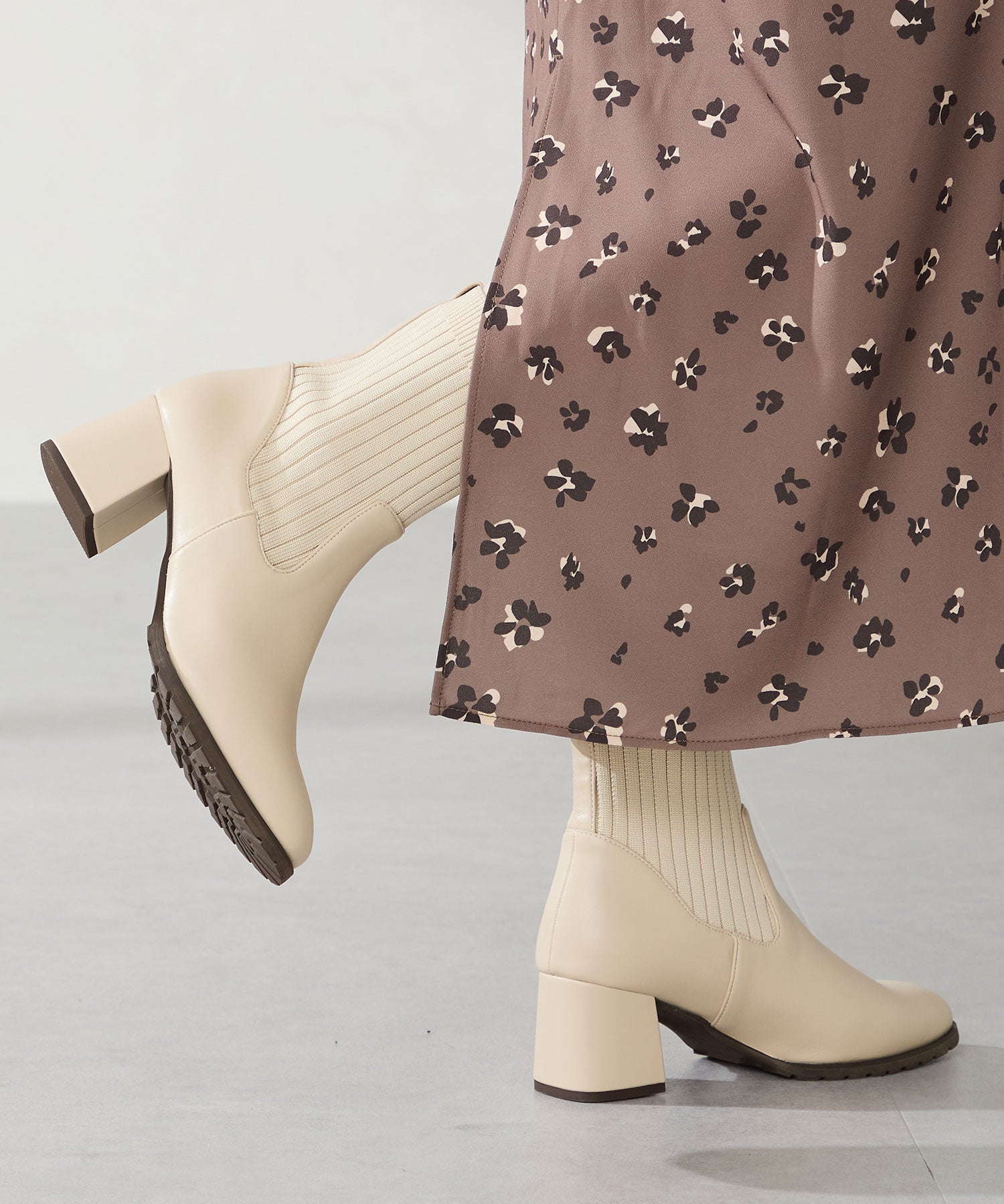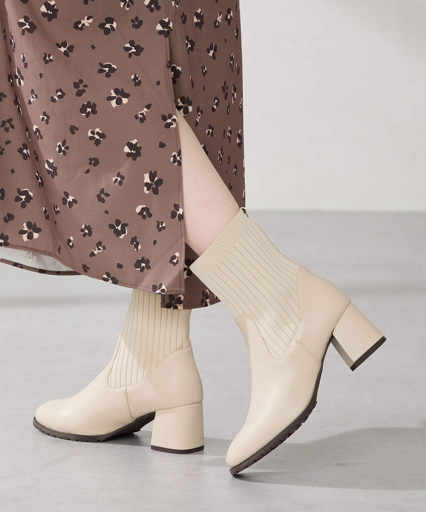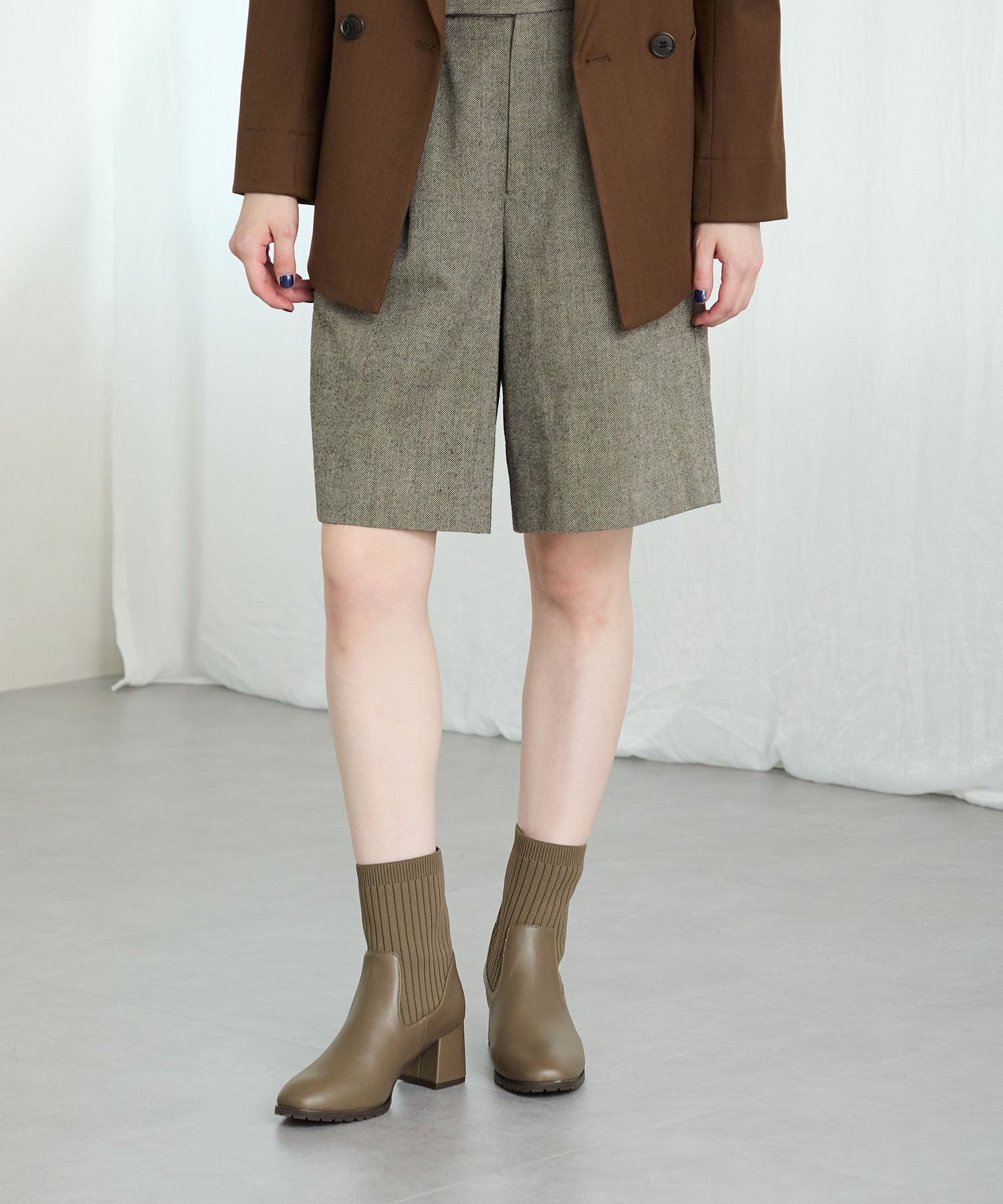 今シーズンのスタイリングには欠かせないニットブーツは履くだけで旬な足元になり大活躍間違いなしの1足。足首周りにニット素材を使用しているので足当たりが良くストレスのない履き心地。細身のスクエアトゥと6㎝のヒールできちんと感がありつつ、ソールを少しゴツゴツさせているので程よくカジュアルダウンし、どんなお洋服にも合わせやすい。落ち着いたカラーリングで大人っぽく決まる。
