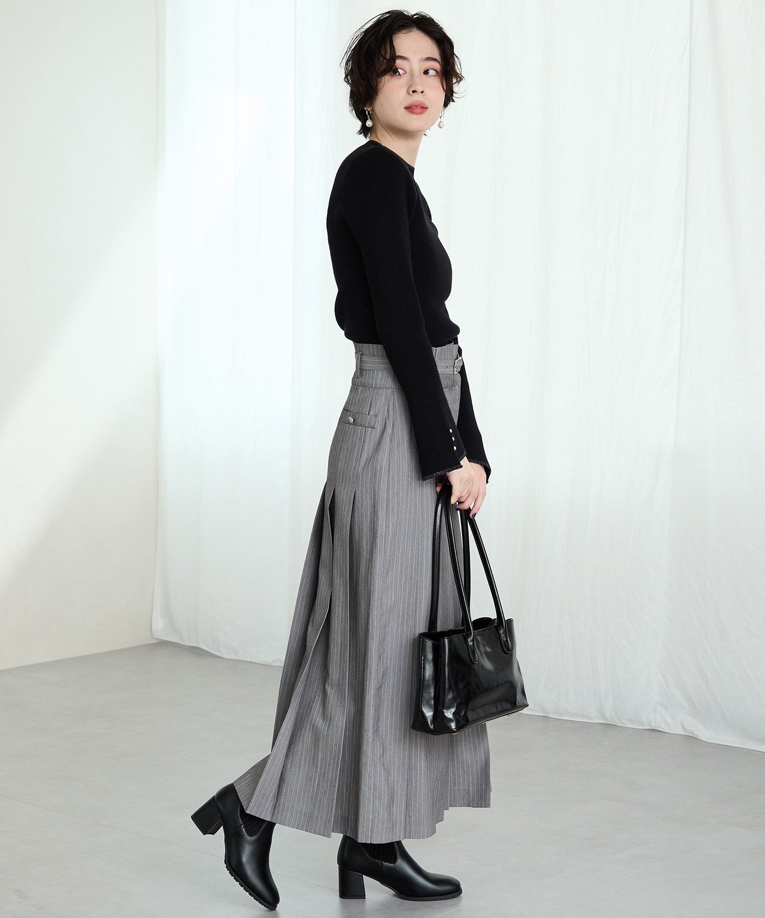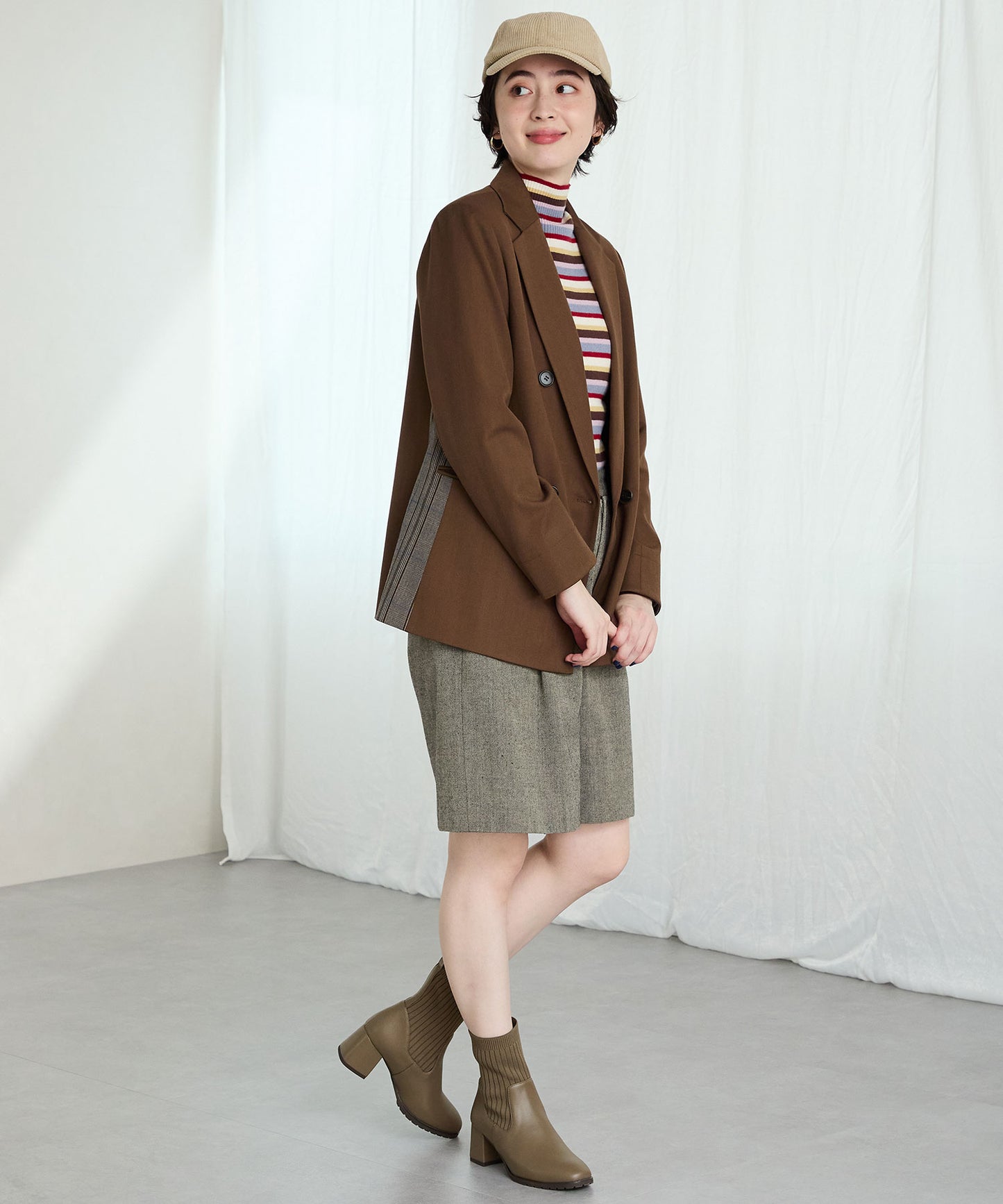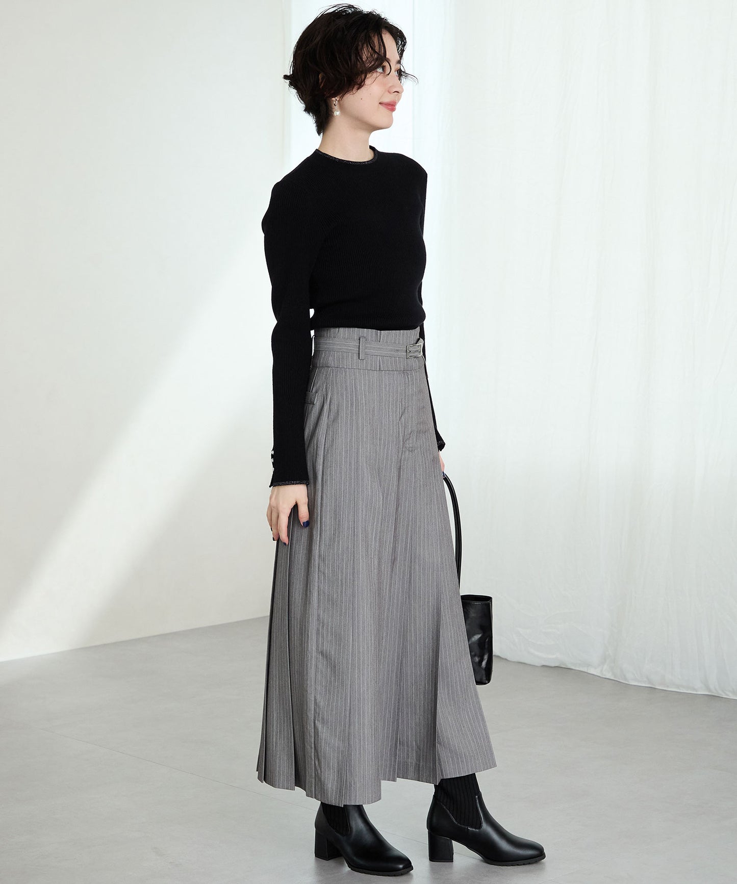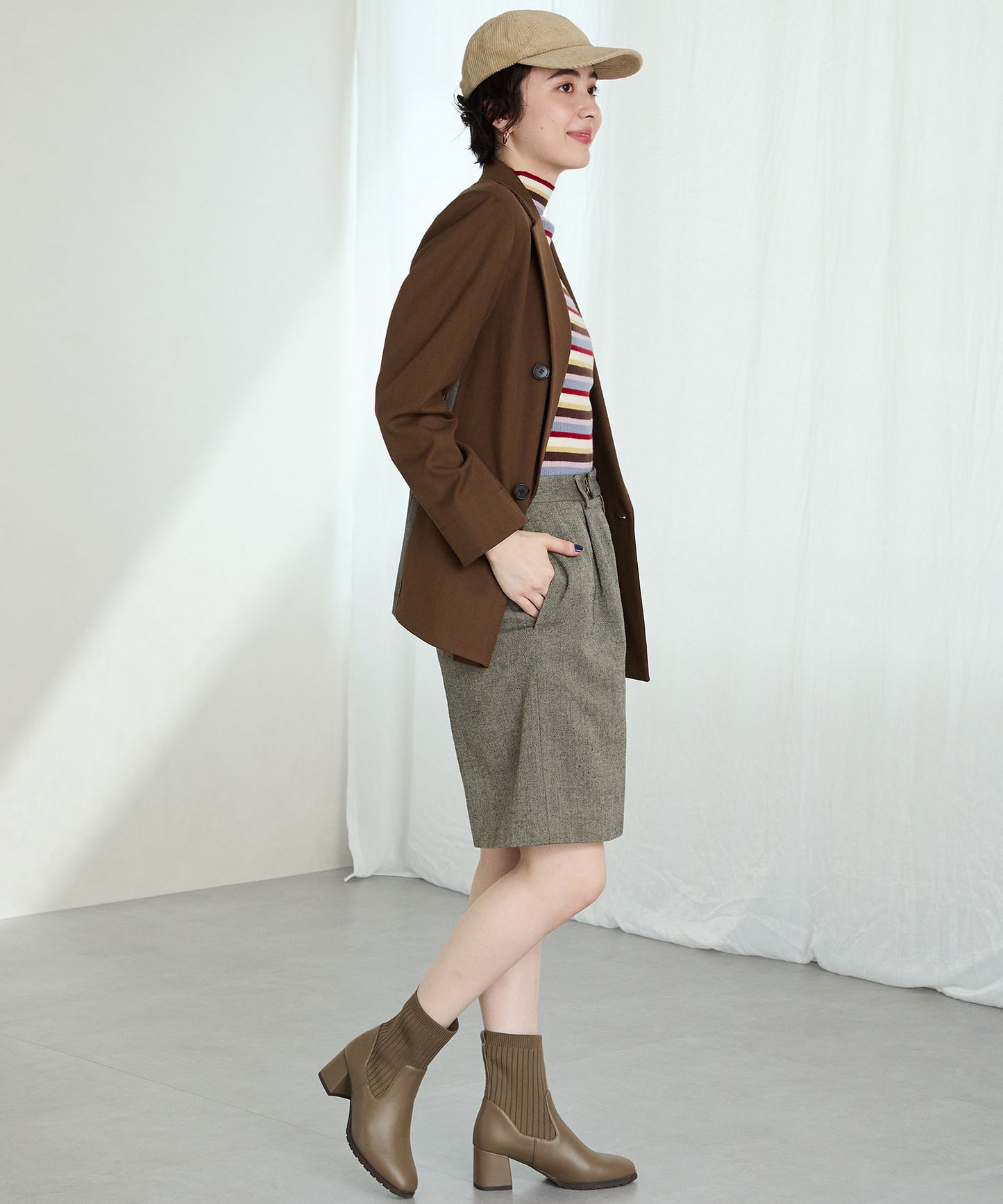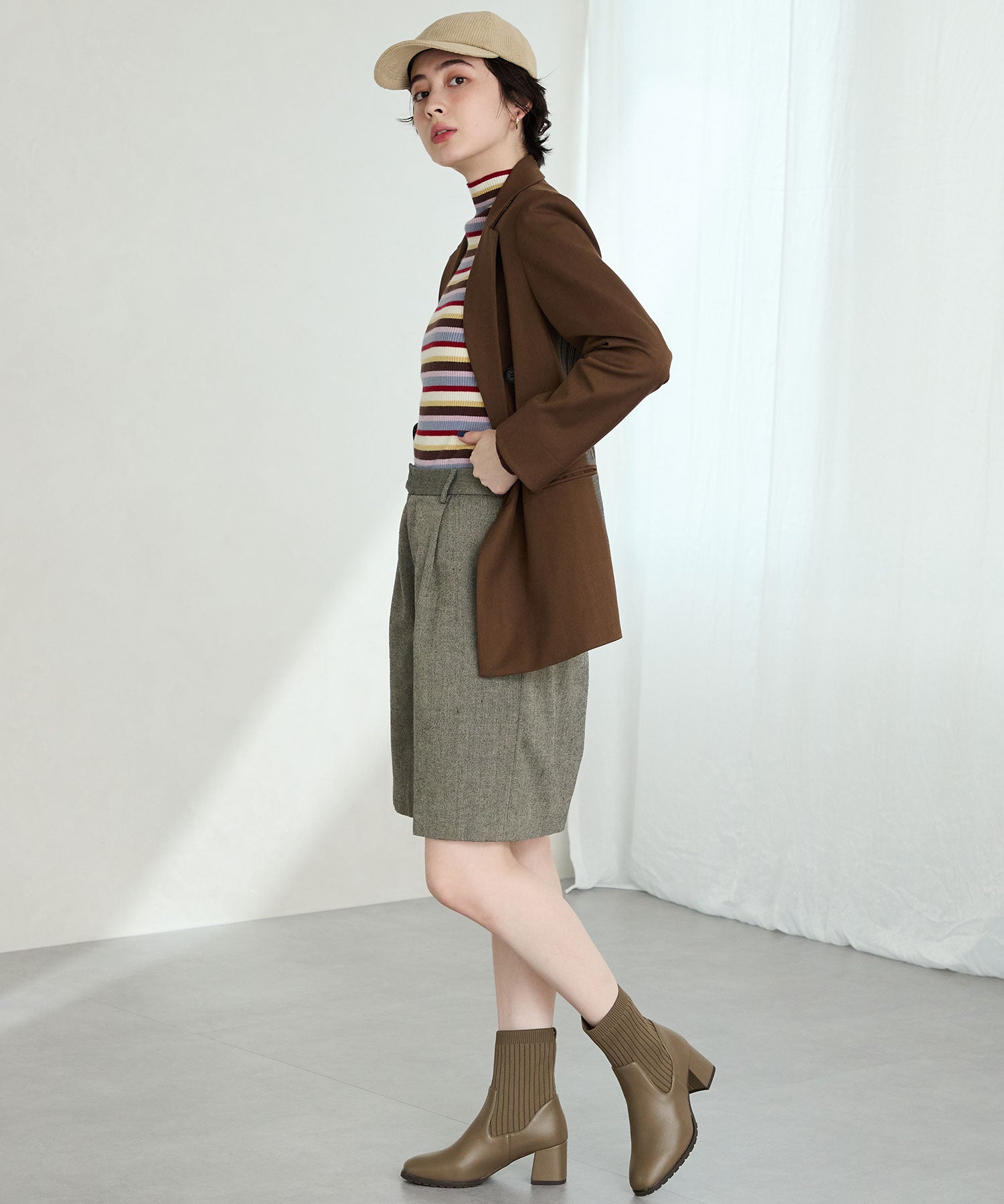 今シーズンのスタイリングには欠かせないニットブーツは履くだけで旬な足元になり大活躍間違いなしの1足。足首周りにニット素材を使用しているので足当たりが良くストレスのない履き心地。細身のスクエアトゥと6㎝のヒールできちんと感がありつつ、ソールを少しゴツゴツさせているので程よくカジュアルダウンし、どんなお洋服にも合わせやすい。落ち着いたカラーリングで大人っぽく決まる。