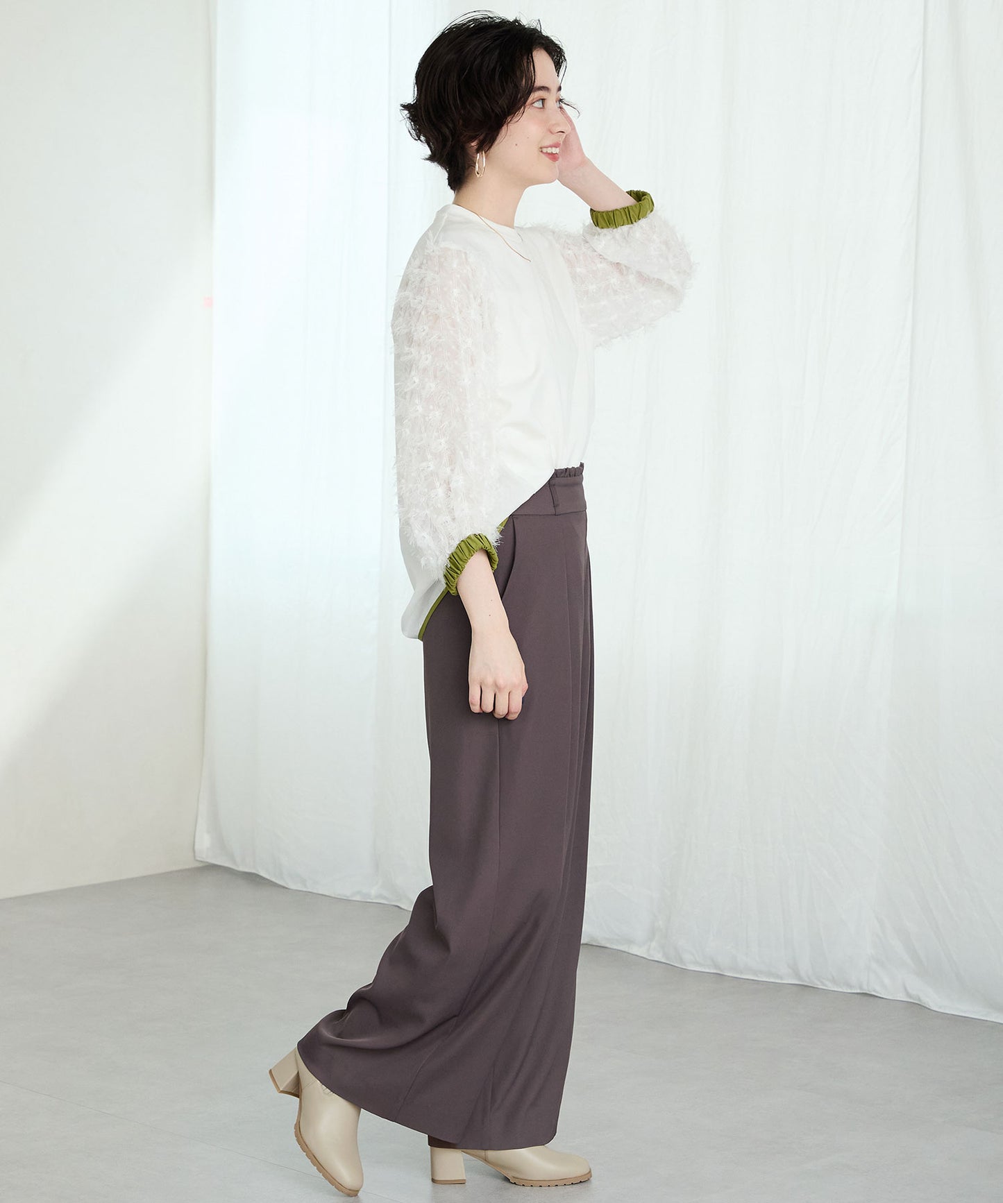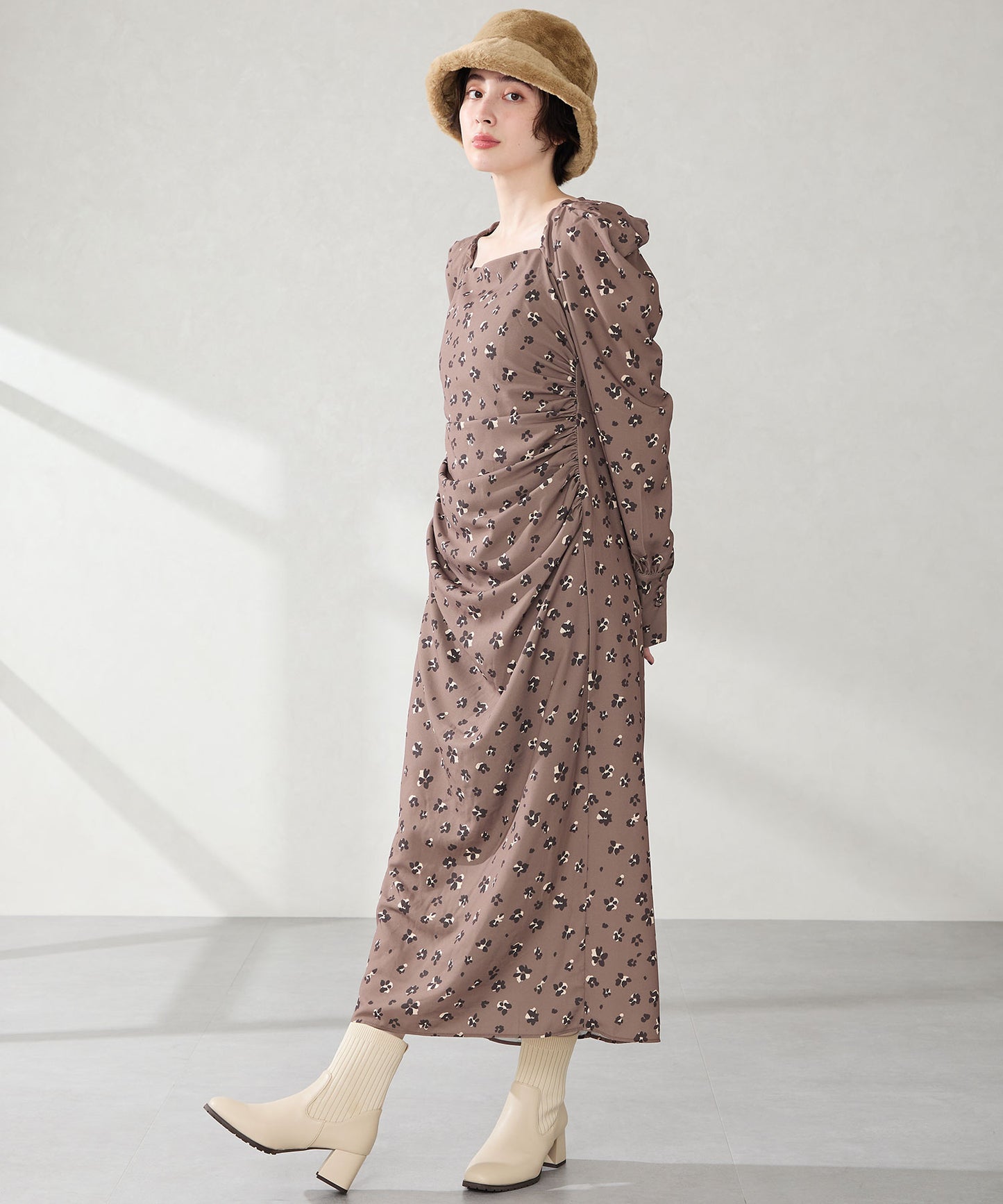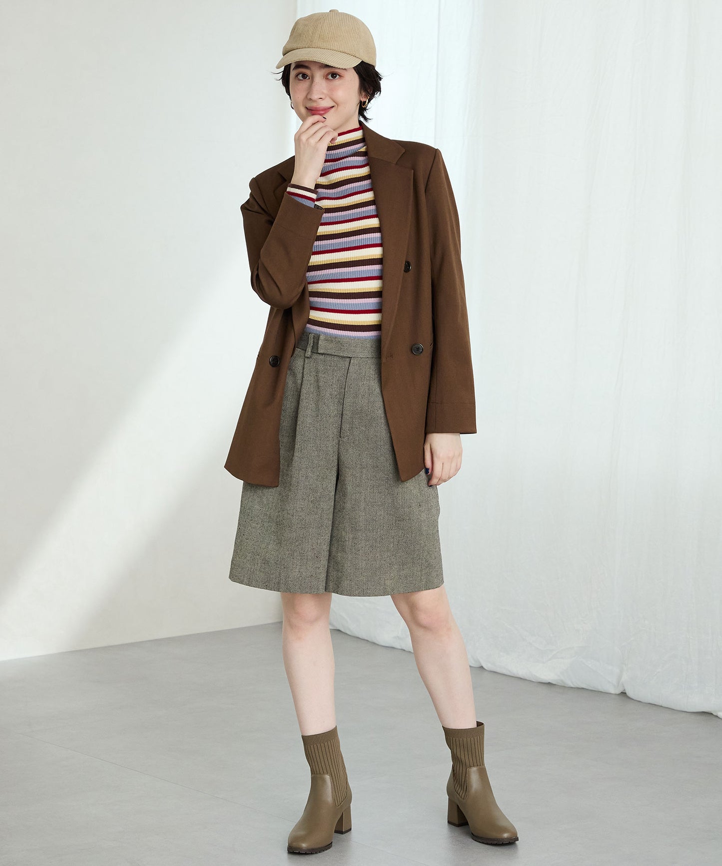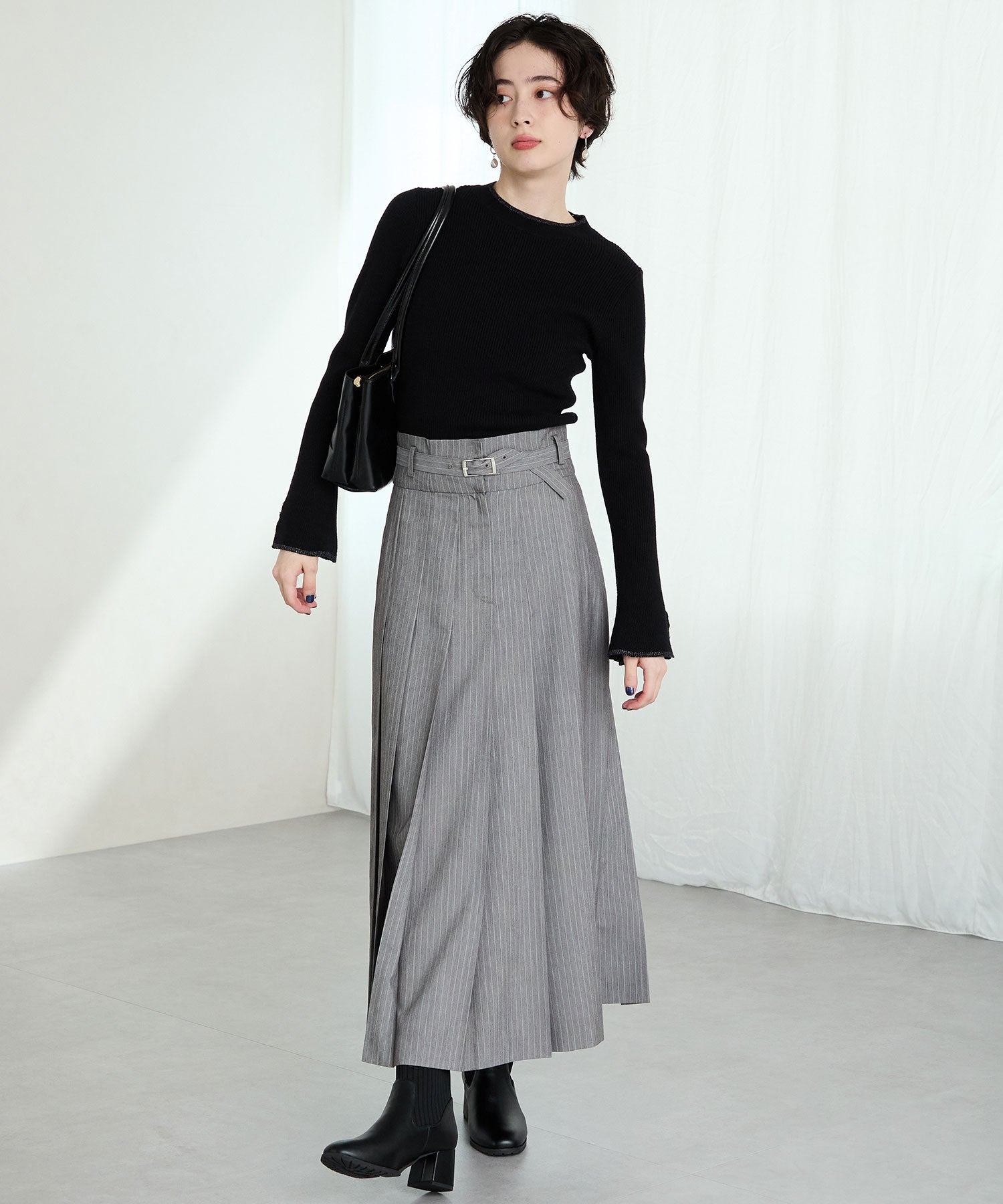 今シーズンのスタイリングには欠かせないニットブーツは履くだけで旬な足元になり大活躍間違いなしの1足。足首周りにニット素材を使用しているので足当たりが良くストレスのない履き心地。細身のスクエアトゥと6㎝のヒールできちんと感がありつつ、ソールを少しゴツゴツさせているので程よくカジュアルダウンし、どんなお洋服にも合わせやすい。落ち着いたカラーリングで大人っぽく決まる。