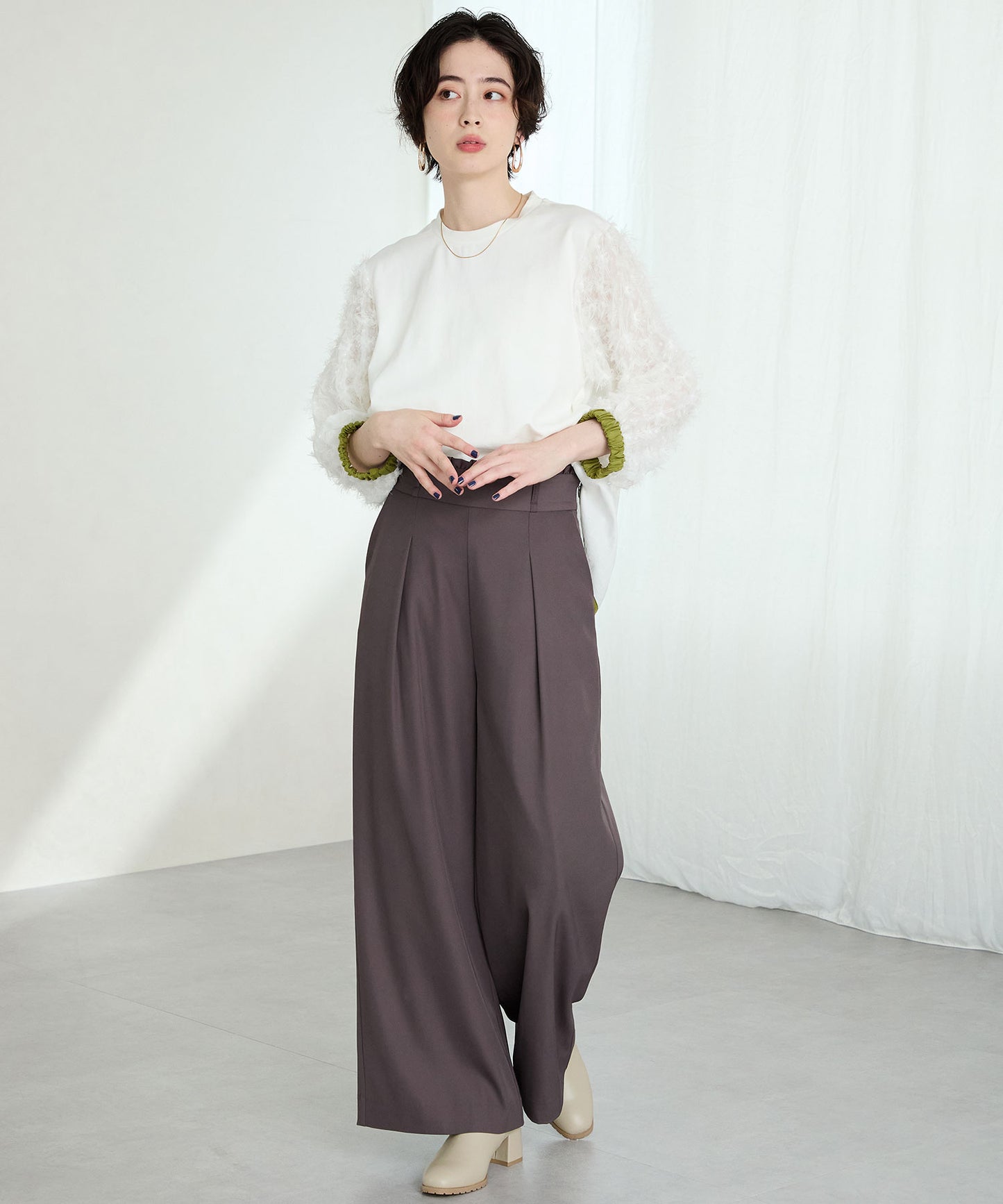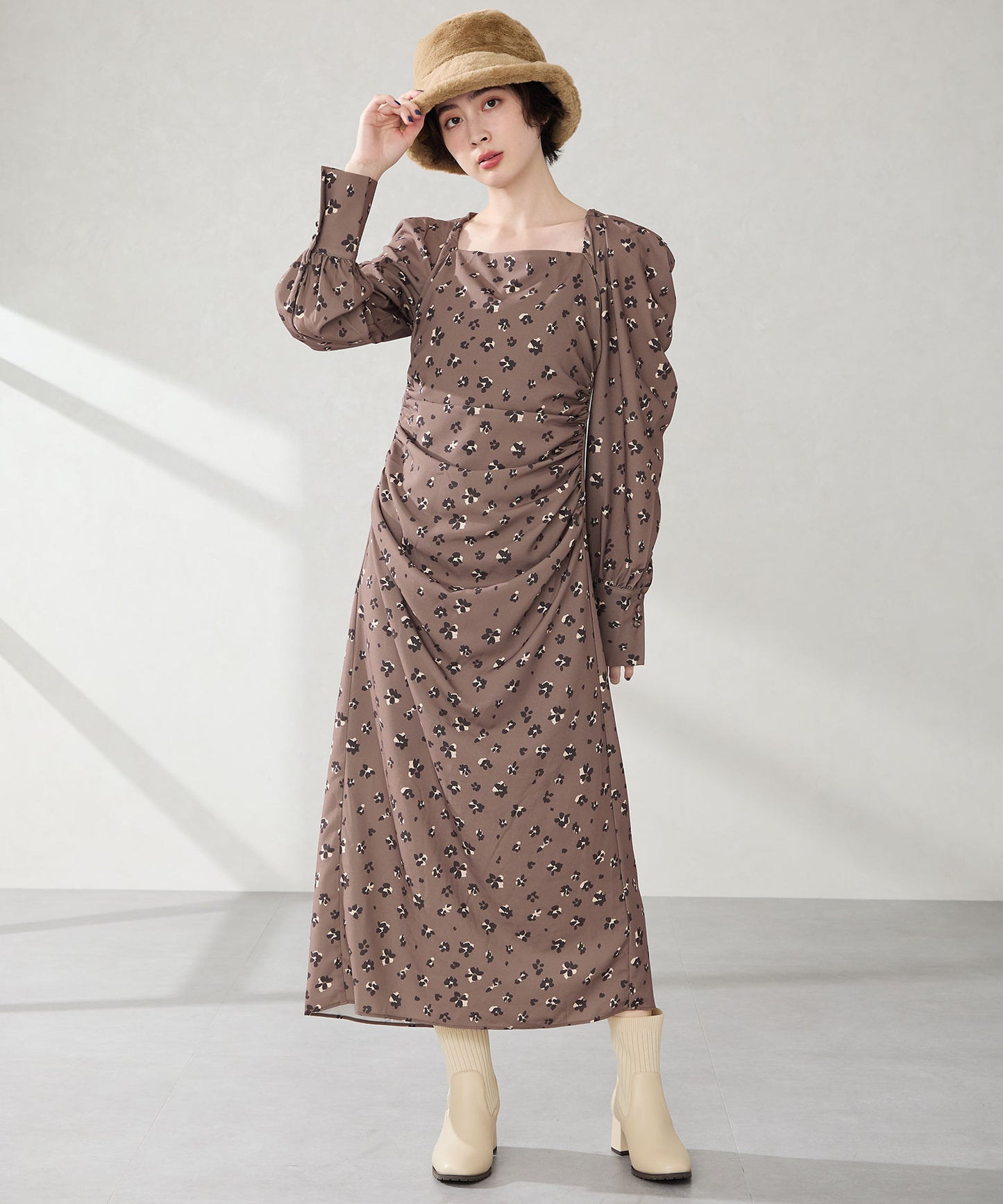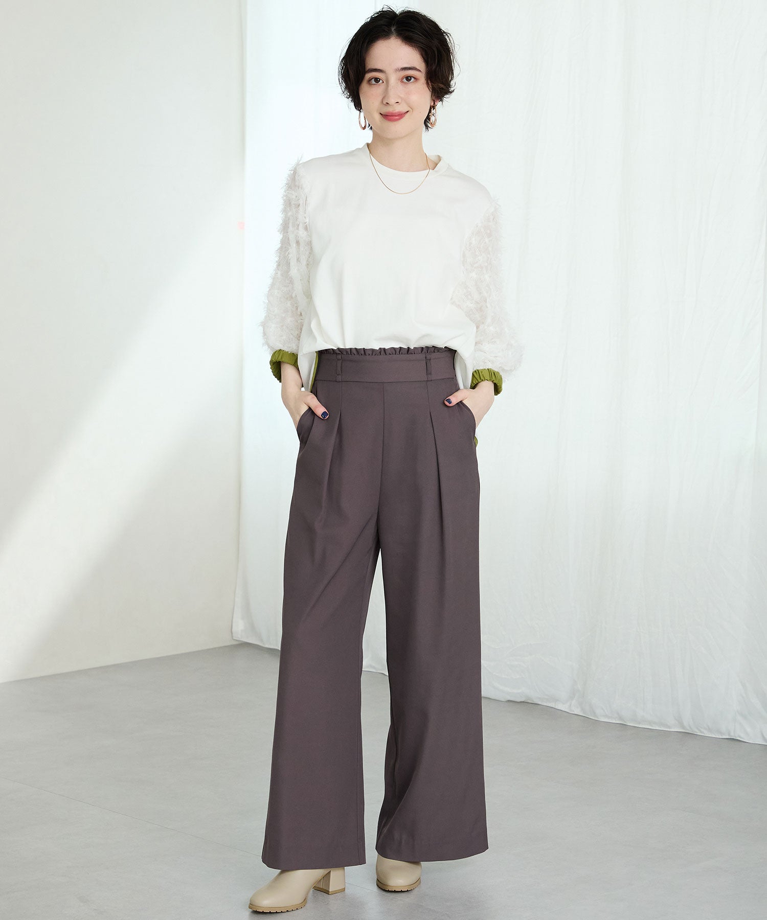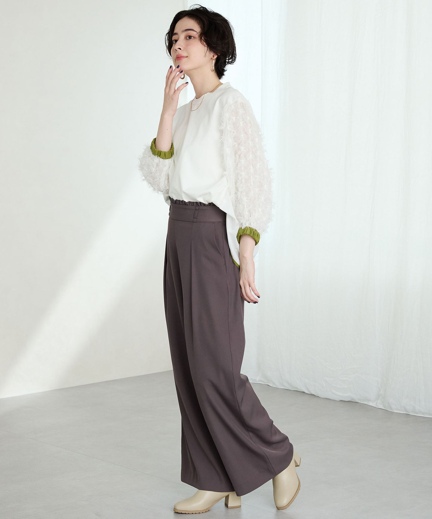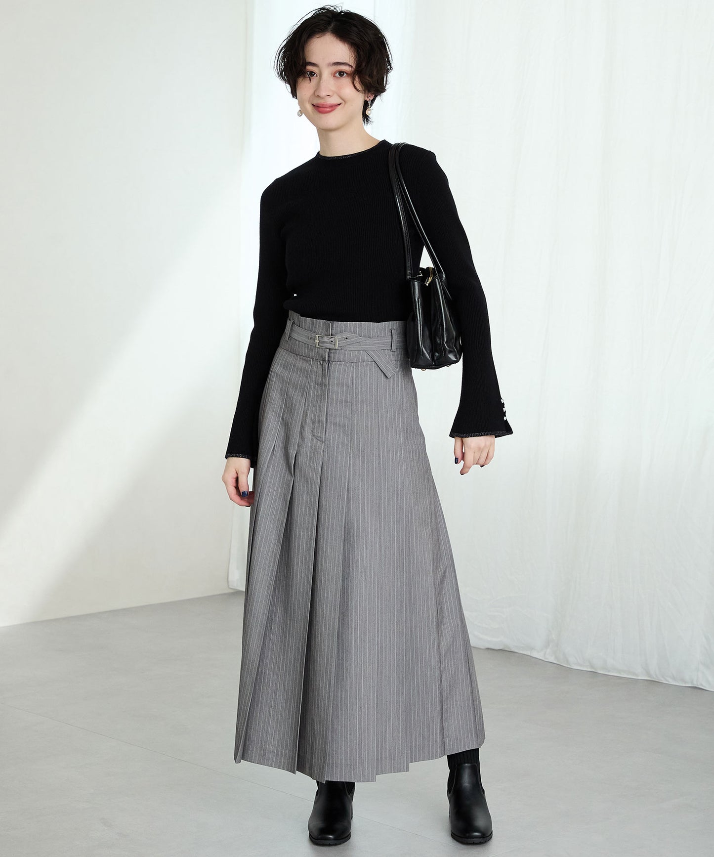 今シーズンのスタイリングには欠かせないニットブーツは履くだけで旬な足元になり大活躍間違いなしの1足。足首周りにニット素材を使用しているので足当たりが良くストレスのない履き心地。細身のスクエアトゥと6㎝のヒールできちんと感がありつつ、ソールを少しゴツゴツさせているので程よくカジュアルダウンし、どんなお洋服にも合わせやすい。落ち着いたカラーリングで大人っぽく決まる。