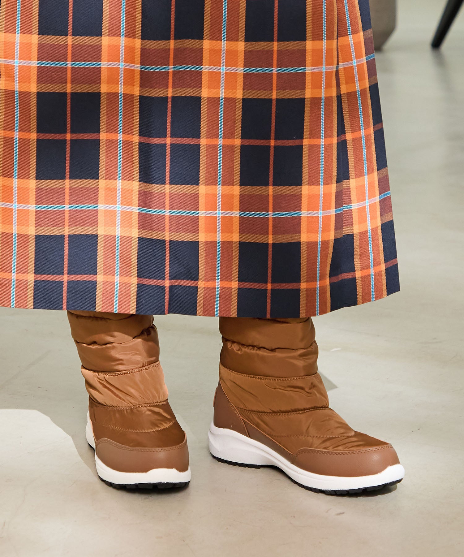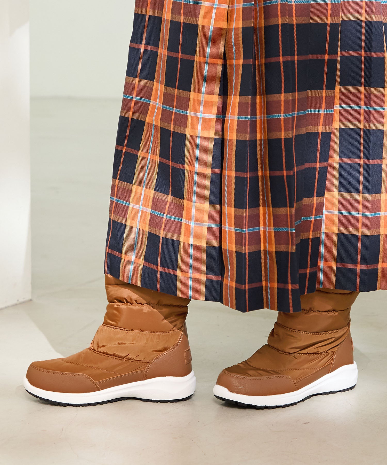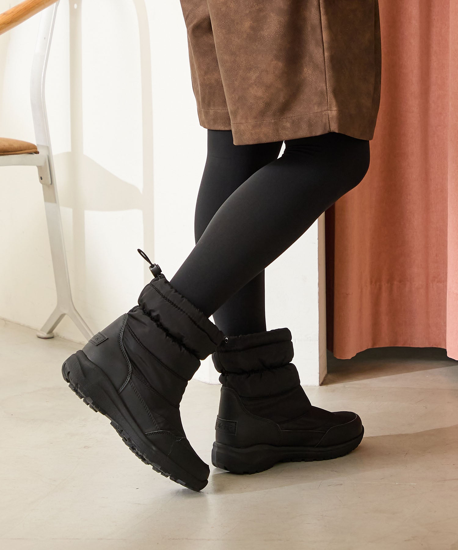 寒さから足元を守ってくれるスノーブーツは、今年も活躍すること間違いなしのアイテム。アッパーに施した撥水加工と内側に防水シートを入れた完全防水タイプで雨や雪の日でも安心して履ける。履き口にアジャスターを付け、フィット感を調整出来るのもポイント。