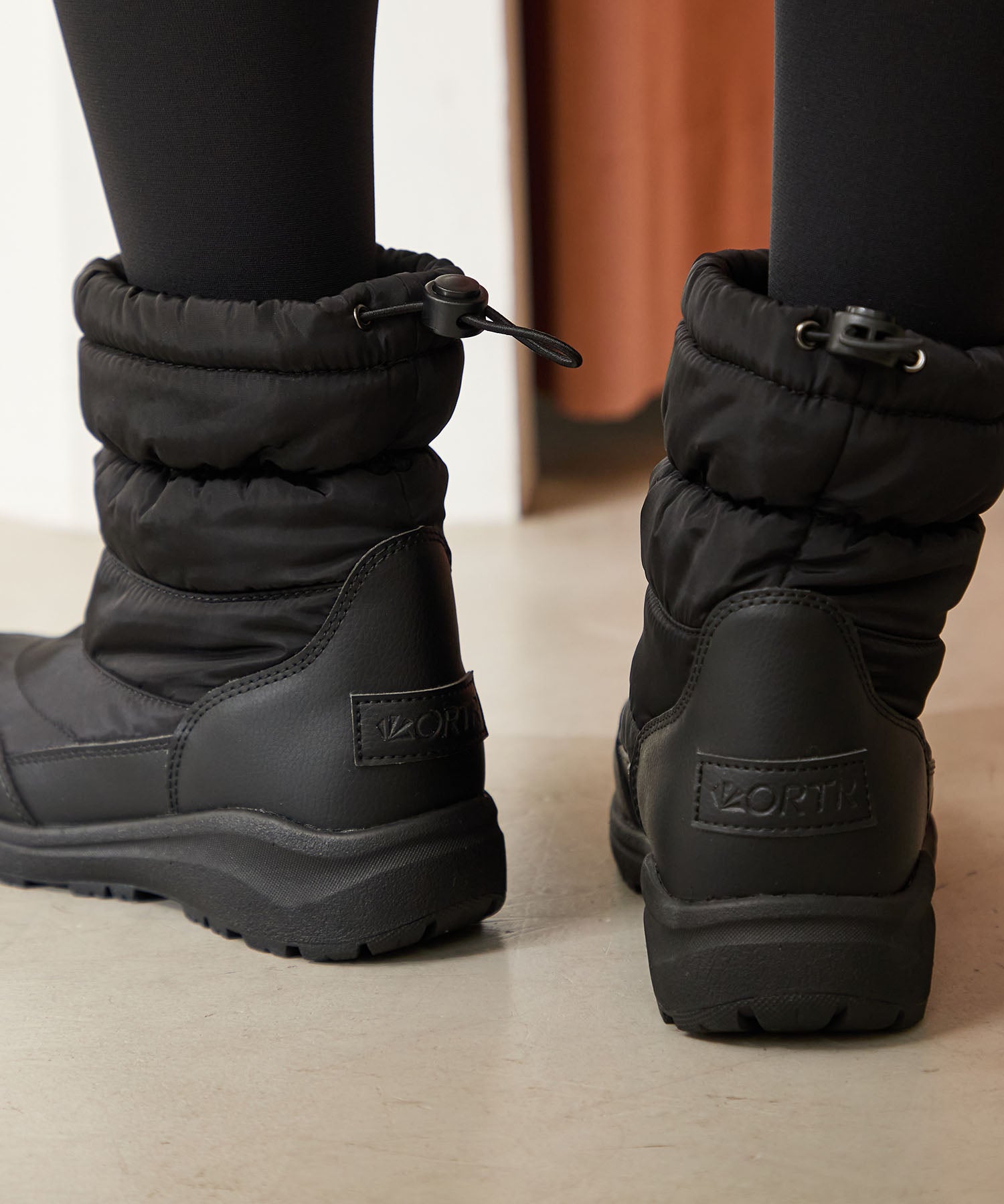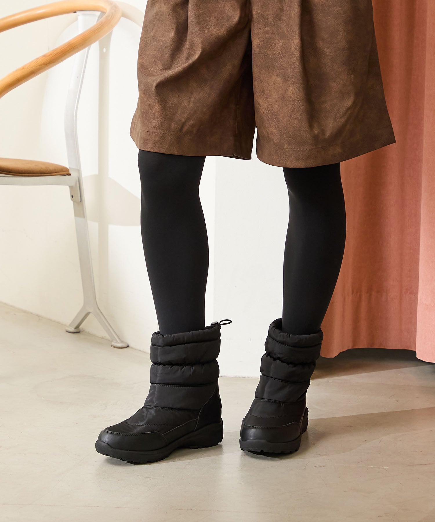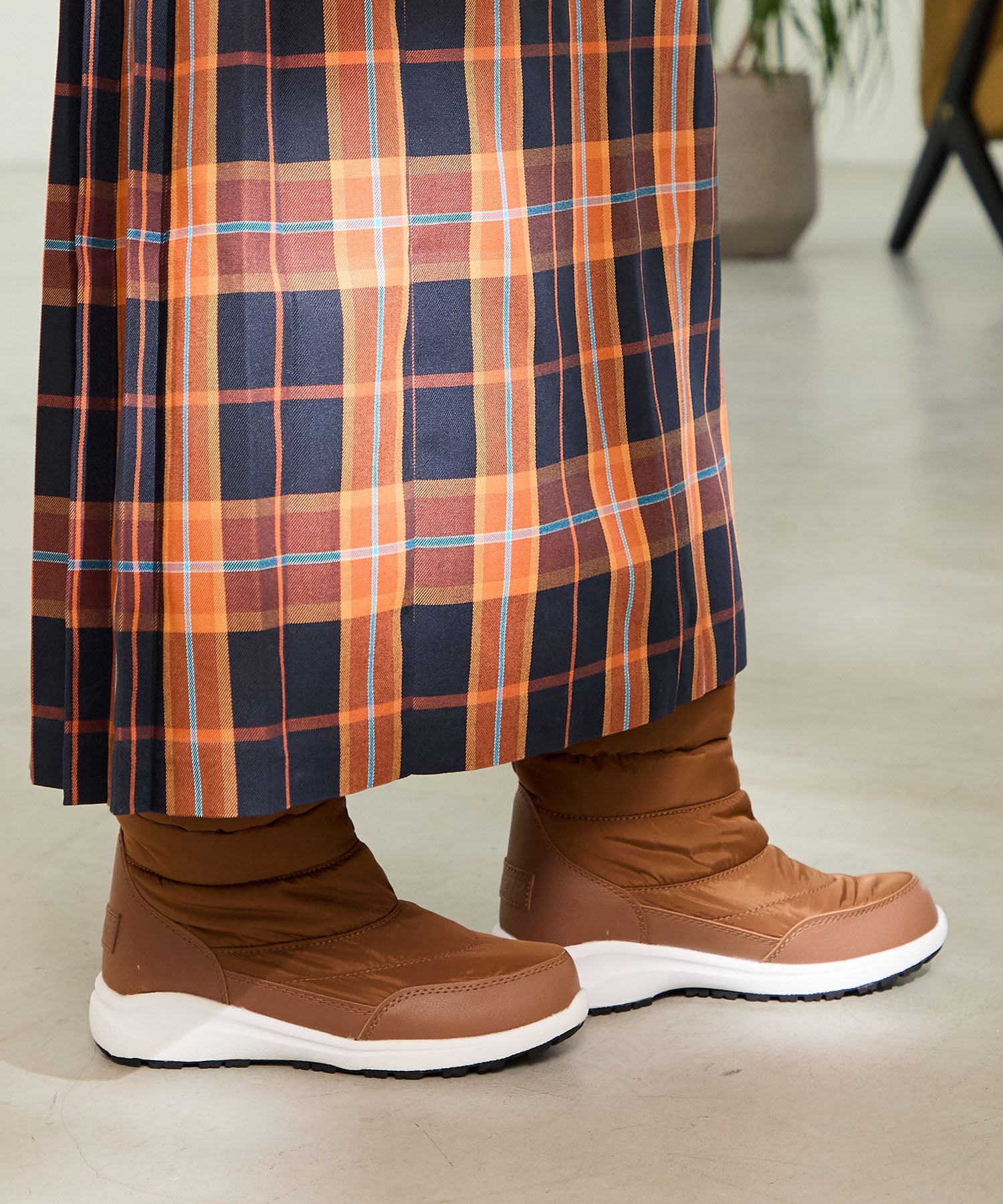 寒さから足元を守ってくれるスノーブーツは、今年も活躍すること間違いなしのアイテム。アッパーに施した撥水加工と内側に防水シートを入れた完全防水タイプで雨や雪の日でも安心して履ける。履き口にアジャスターを付け、フィット感を調整出来るのもポイント。