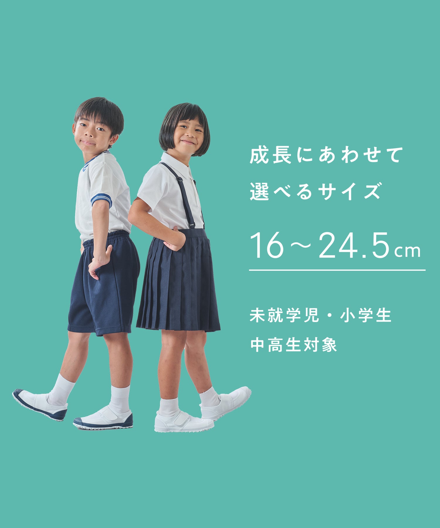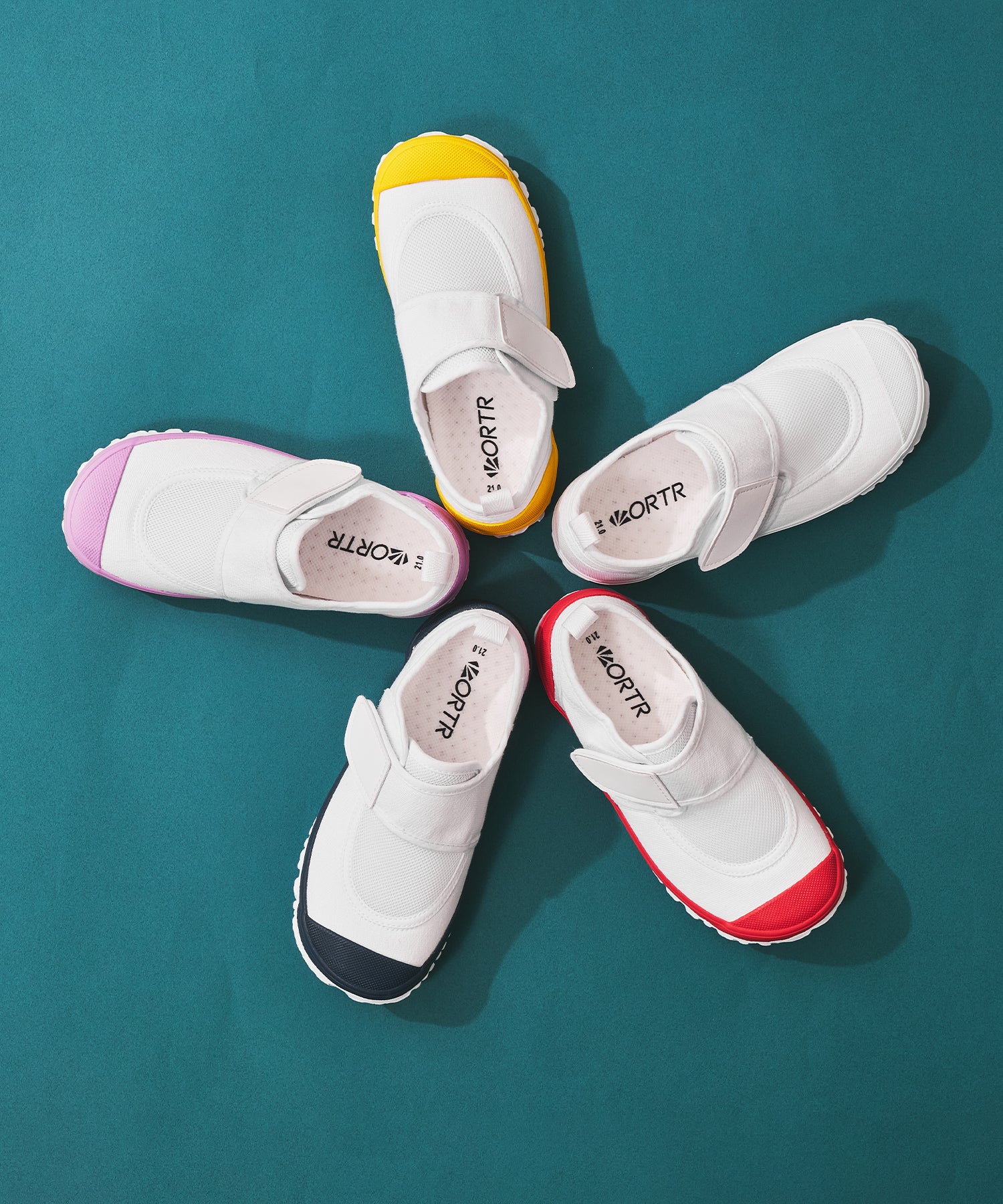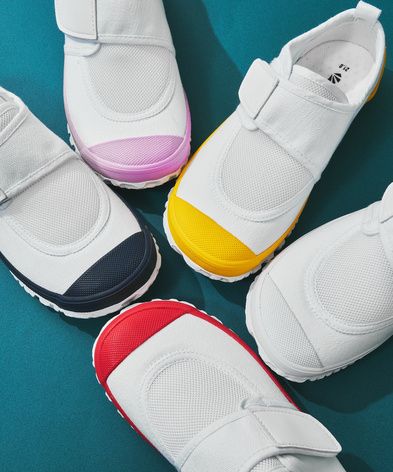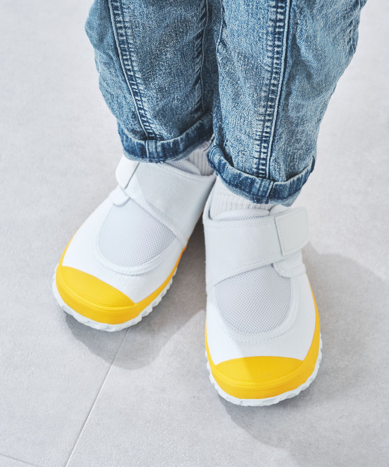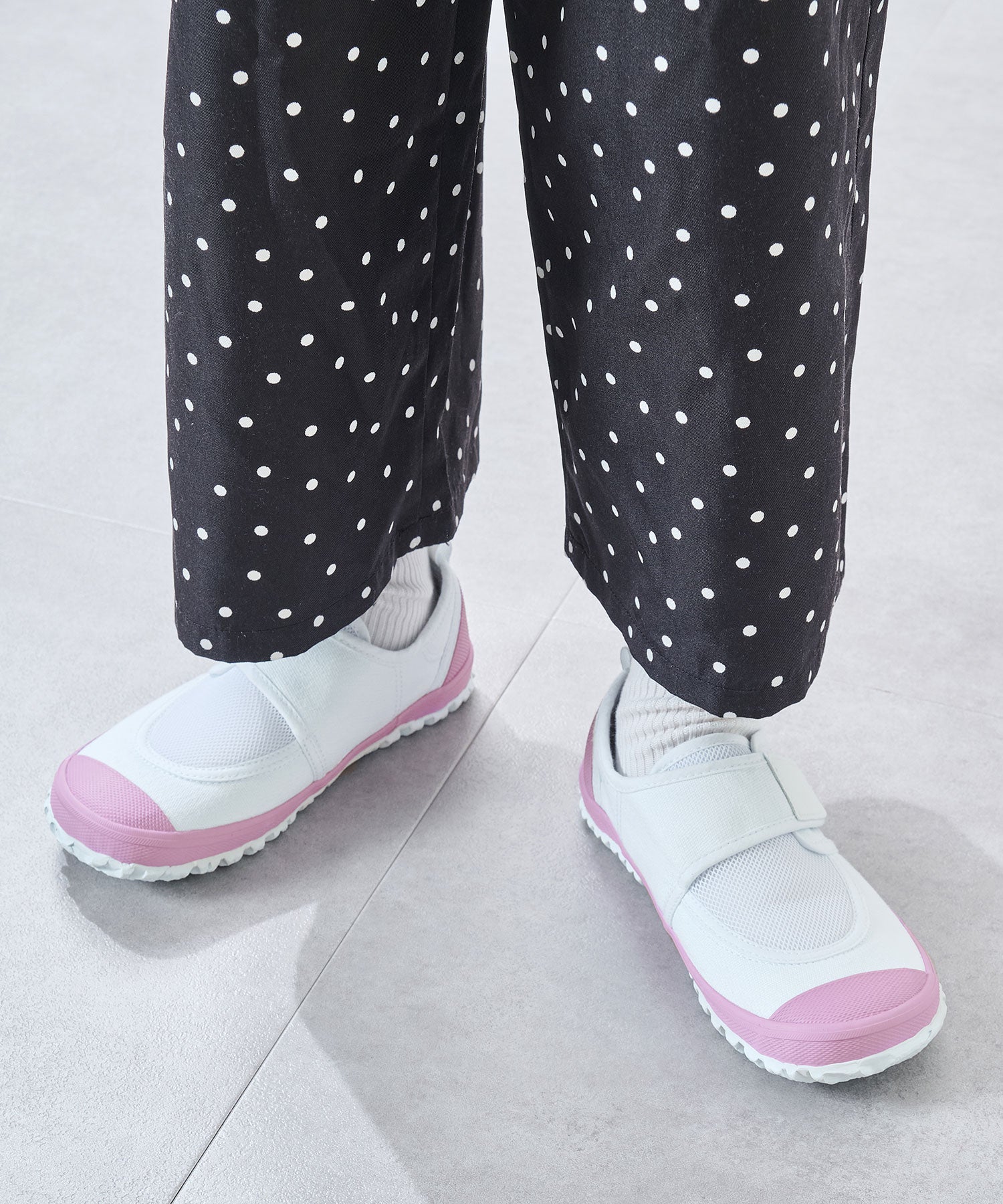 学校や園での活動をサポートしてくれるスクールシューズが豊富なカラーで新登場!水や汚れを弾く撥水加工素材でお手入れも楽ちん。さらに抗菌防臭加工付きの中敷で気になる匂いを抑えて清潔な足元をキープ。甲部分はマジックテープで着脱がしやすく、屈曲性に優れたソールとクッション入りインソールで足裏への負担を軽減し、長時間の歩行をサポートしてくれる1足。