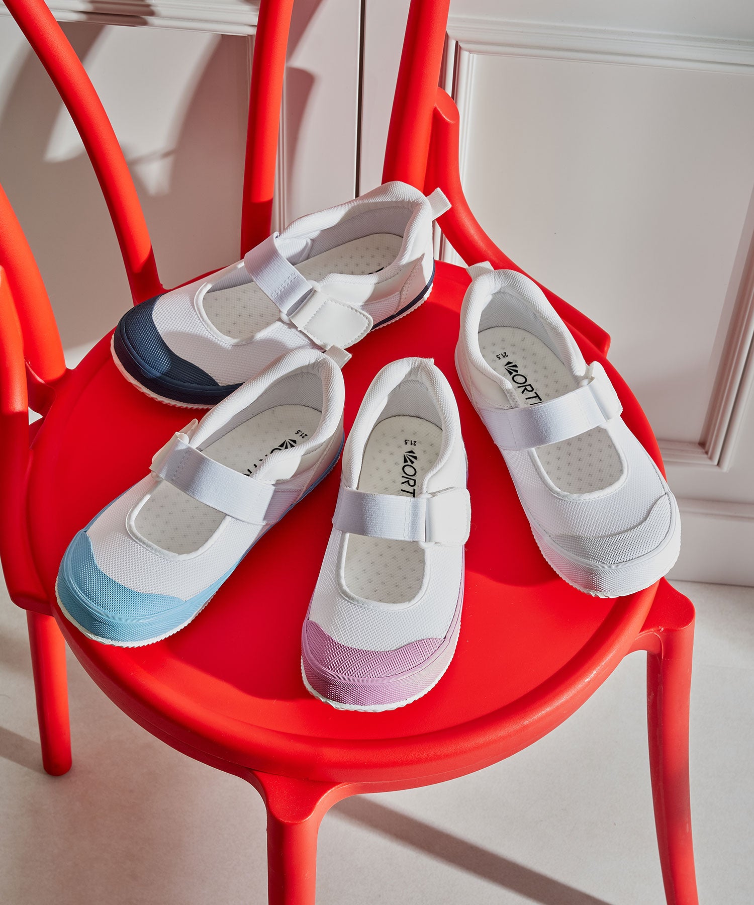 通気性と軽さにこだわったスクールシューズは、メッシュ素材を採用し靴内のムレを軽減して長時間でもさらっと快適に履ける仕様に。中敷は抗菌防臭機能を備えているため、清潔に保ちやすく、毎日の通園・通学にぴったり。返りの良い柔らかいソールは、足の動きに合わせてしっかりフィットし、ゴム付きのベルクロタイプで調整がしやすく、お子様自身でスムーズに着脱できるのも嬉しい。