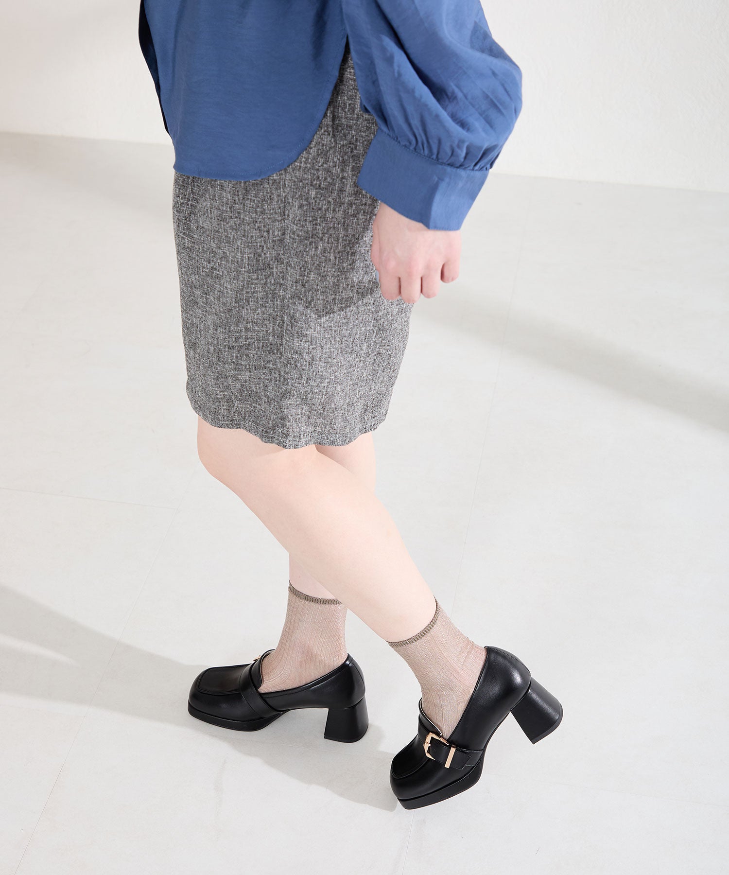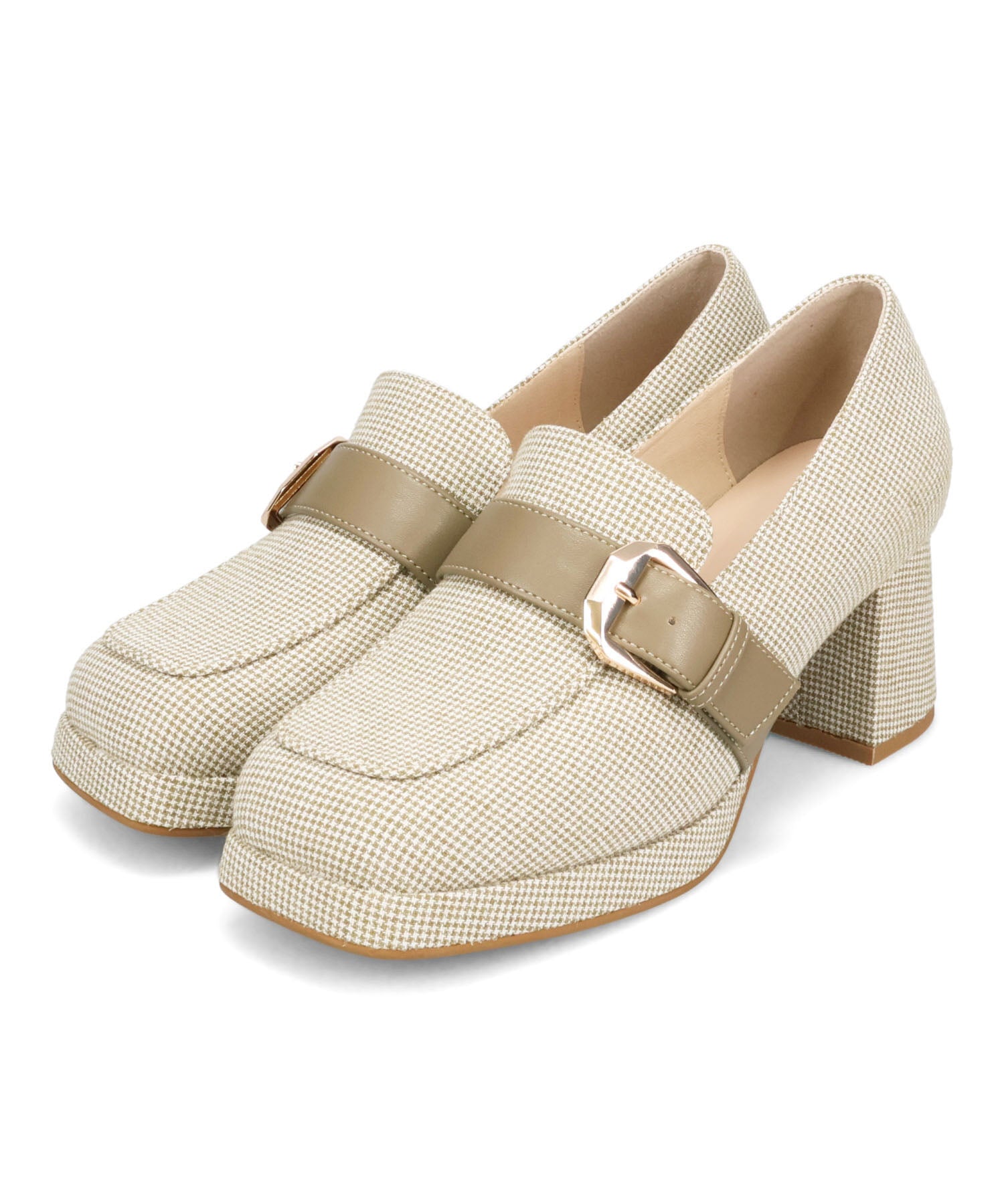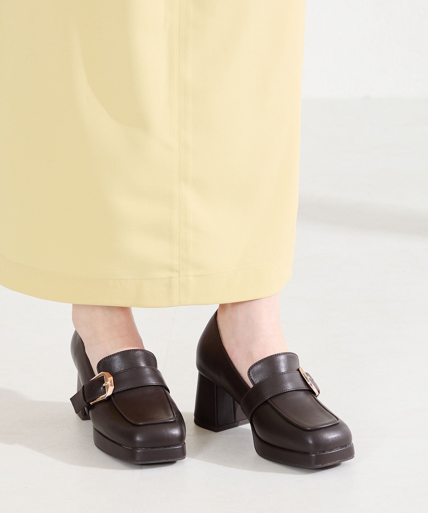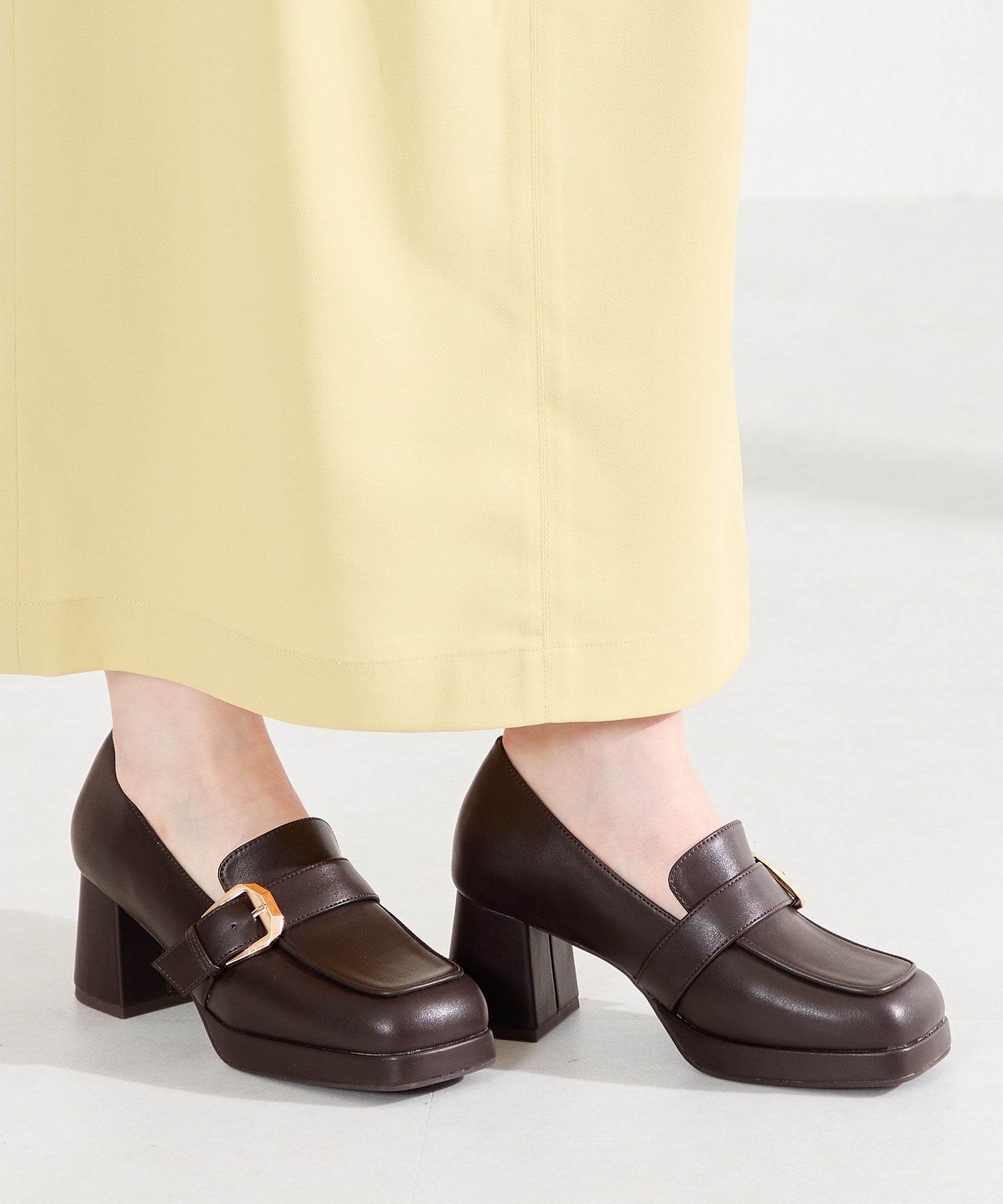 スタイルアップが叶う厚底ヒールローファーは、ストーム付きで傾斜が緩やかなので、見た目以上に疲れにくく安定感のある履き心地が特徴。スクエアトゥと存在感のあるバックルが、スタイリングを引き締めつつ上品さを引き立たせてくれる。汎用性の高いブラック、ブラウンと、目の細かいツイード素材を使用したカーキの3色展開でスタイリングの幅が広がるカラバリ。