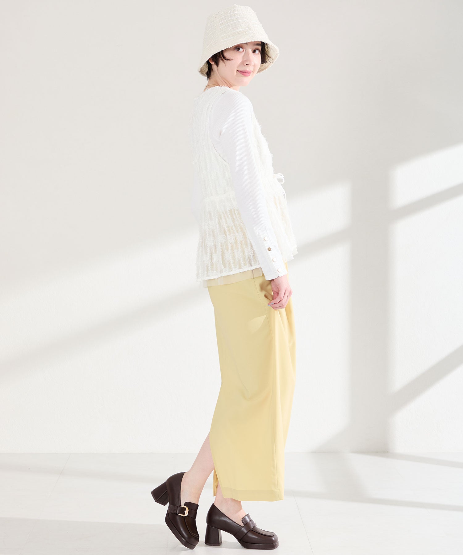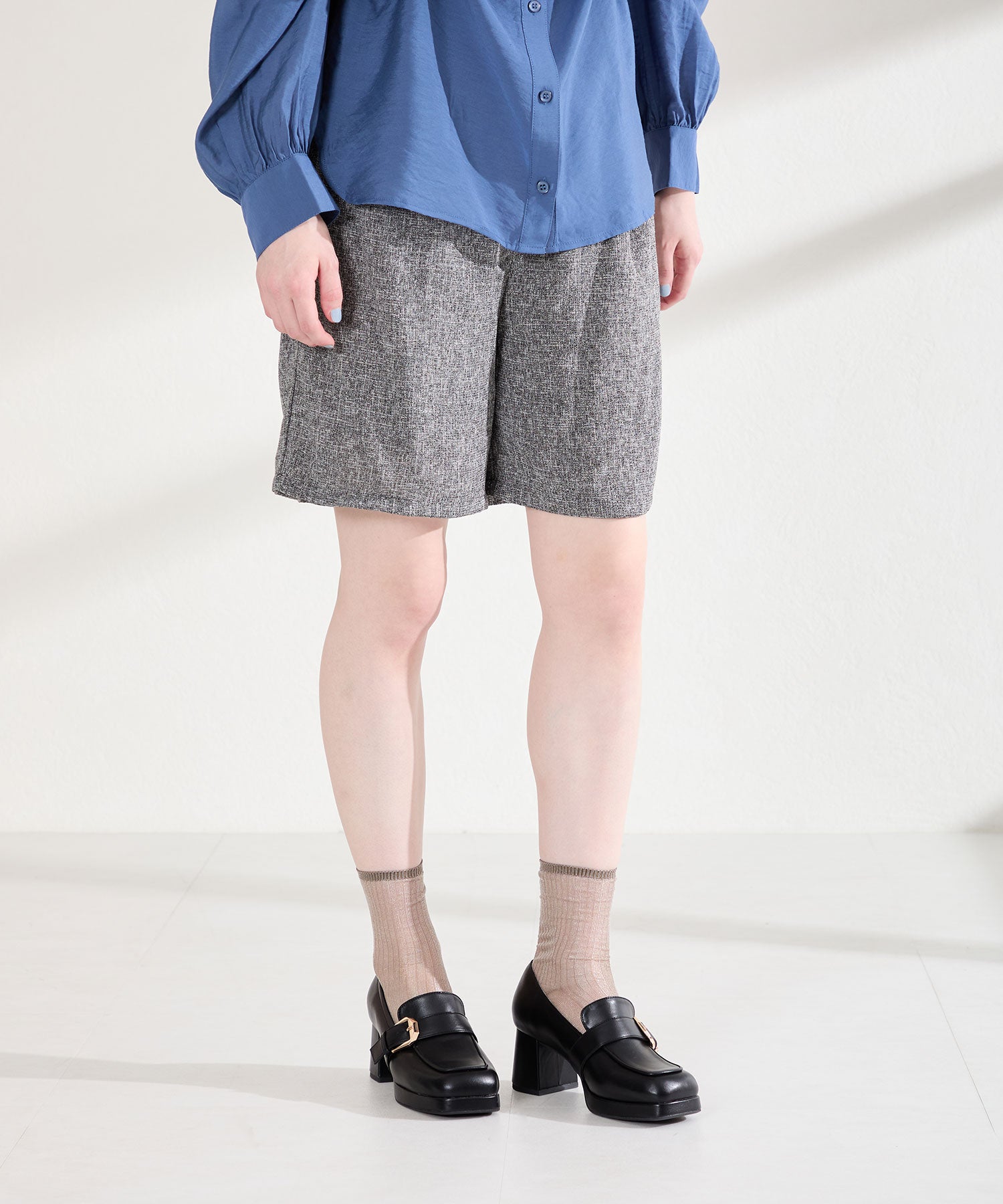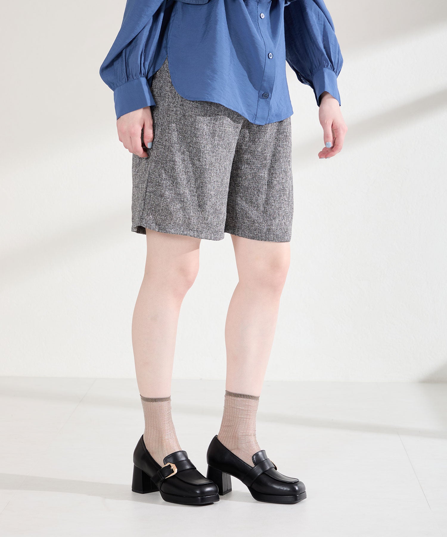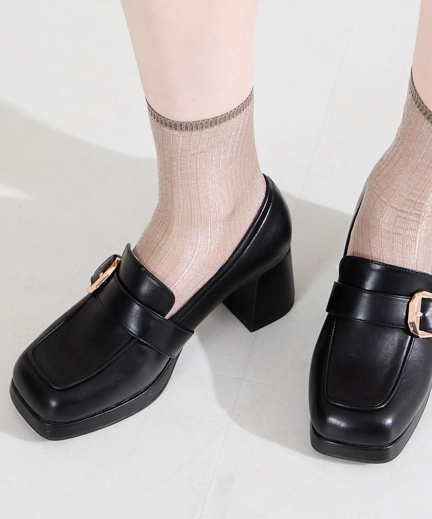 スタイルアップが叶う厚底ヒールローファーは、ストーム付きで傾斜が緩やかなので、見た目以上に疲れにくく安定感のある履き心地が特徴。スクエアトゥと存在感のあるバックルが、スタイリングを引き締めつつ上品さを引き立たせてくれる。汎用性の高いブラック、ブラウンと、目の細かいツイード素材を使用したカーキの3色展開でスタイリングの幅が広がるカラバリ。