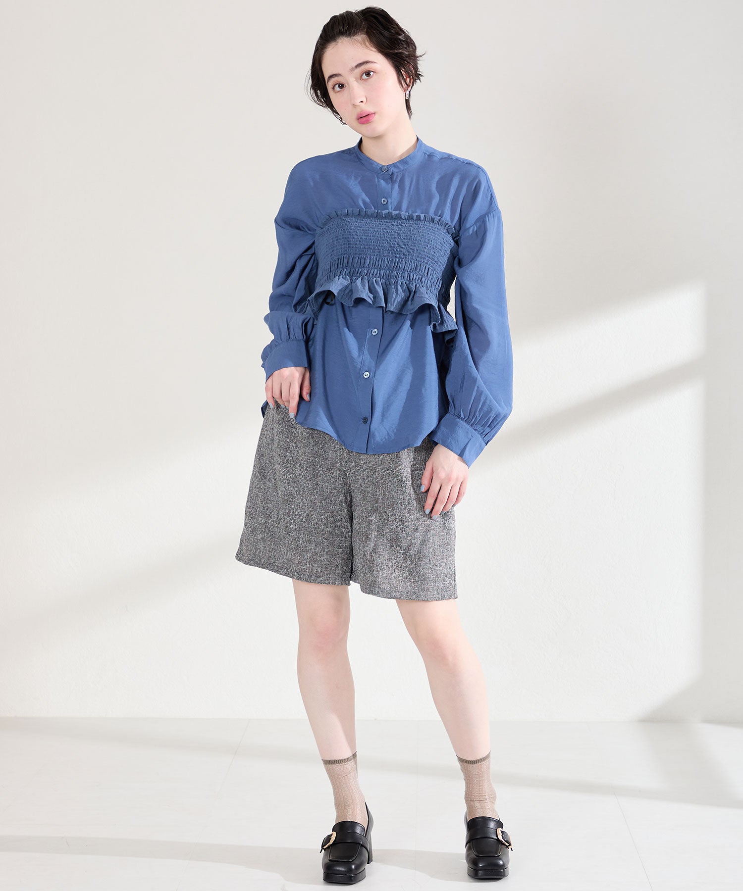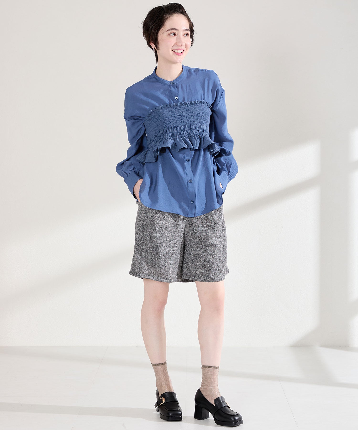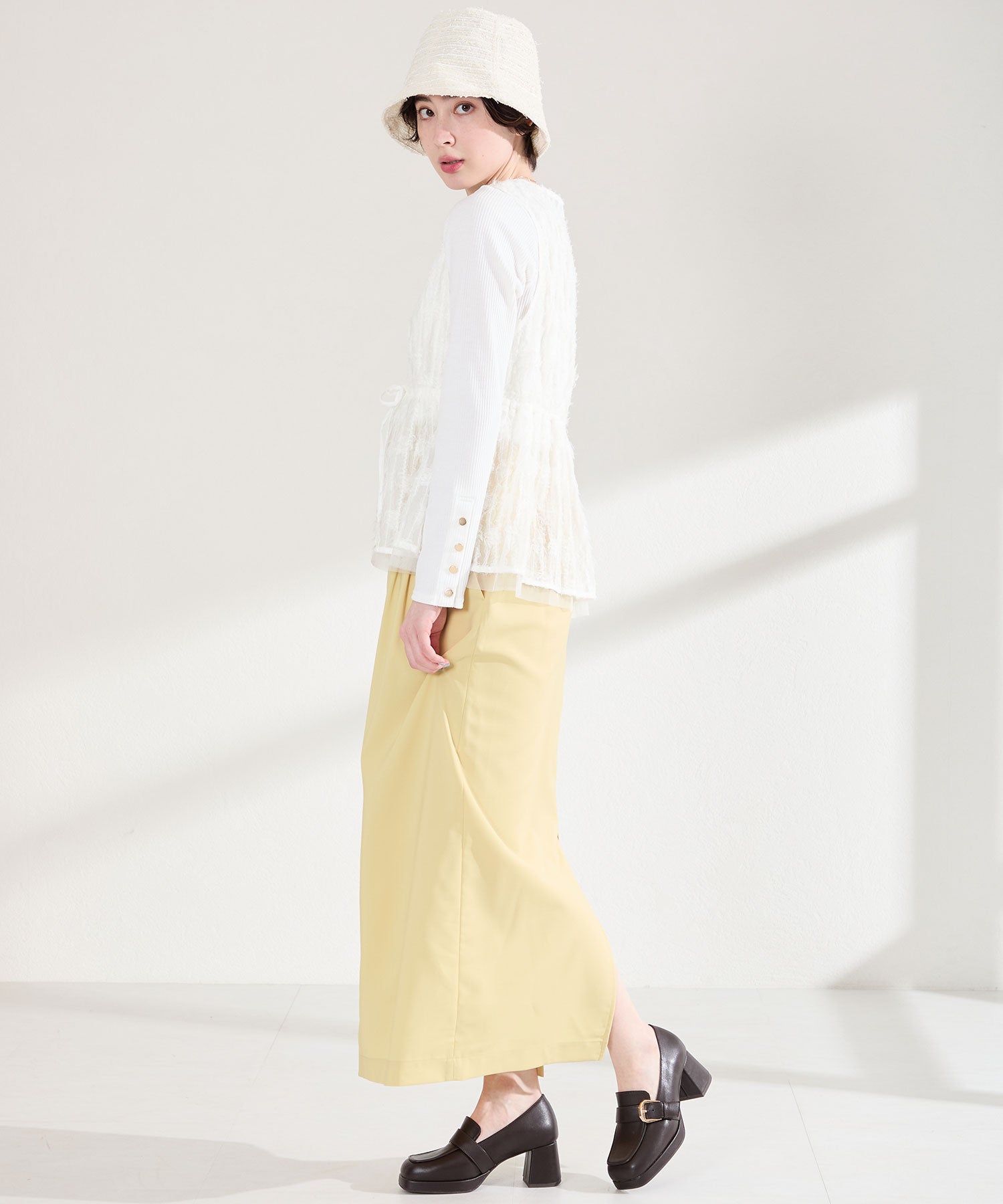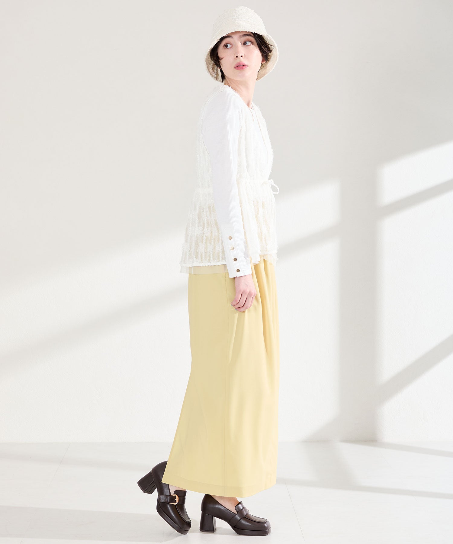 スタイルアップが叶う厚底ヒールローファーは、ストーム付きで傾斜が緩やかなので、見た目以上に疲れにくく安定感のある履き心地が特徴。スクエアトゥと存在感のあるバックルが、スタイリングを引き締めつつ上品さを引き立たせてくれる。汎用性の高いブラック、ブラウンと、目の細かいツイード素材を使用したカーキの3色展開でスタイリングの幅が広がるカラバリ。