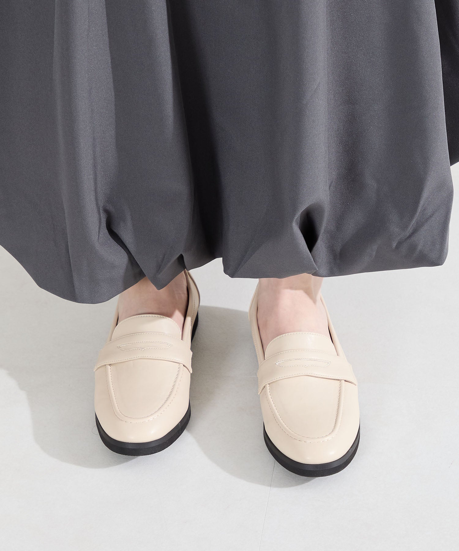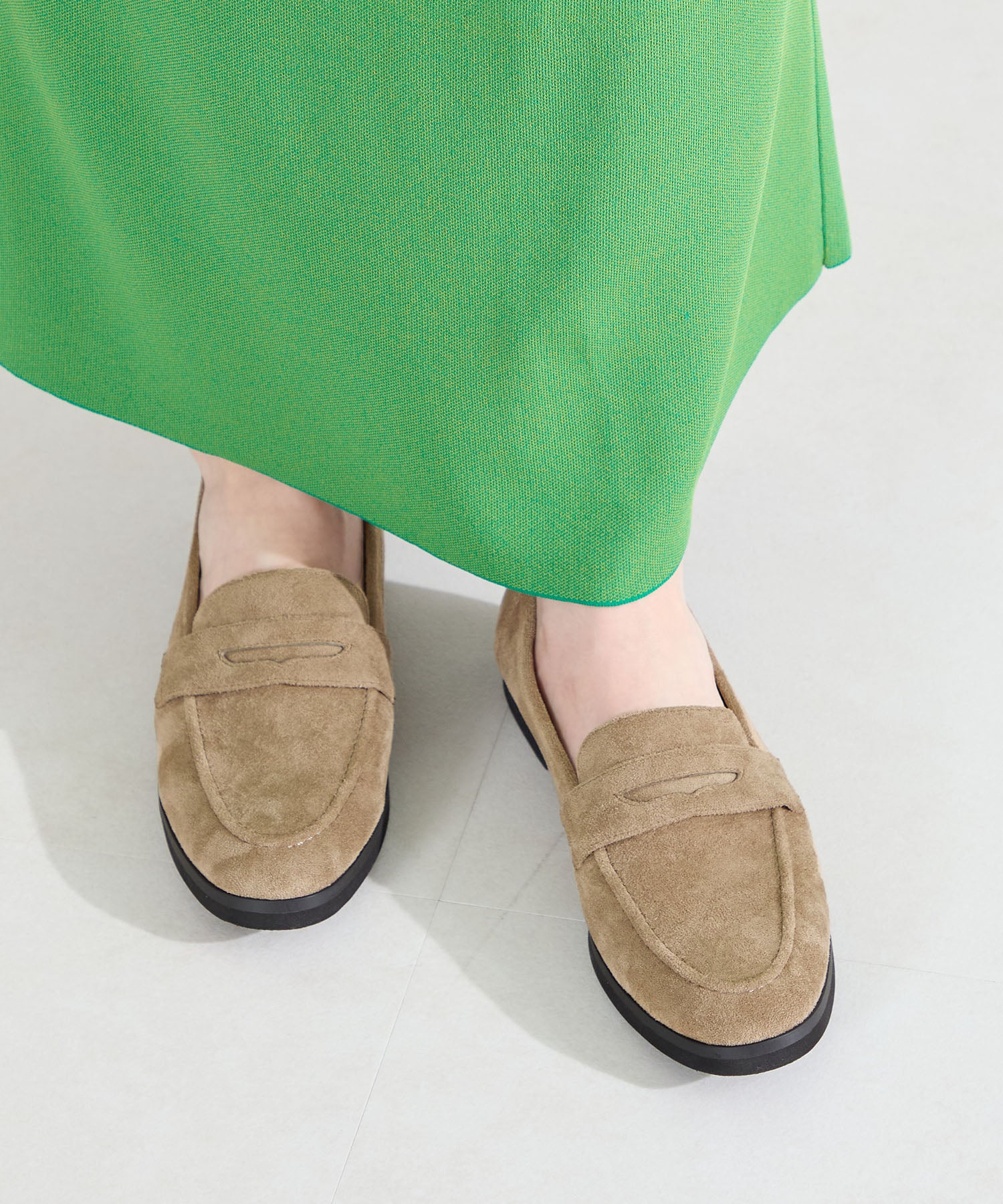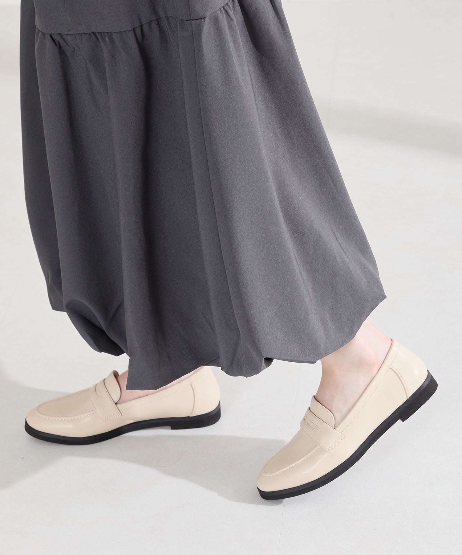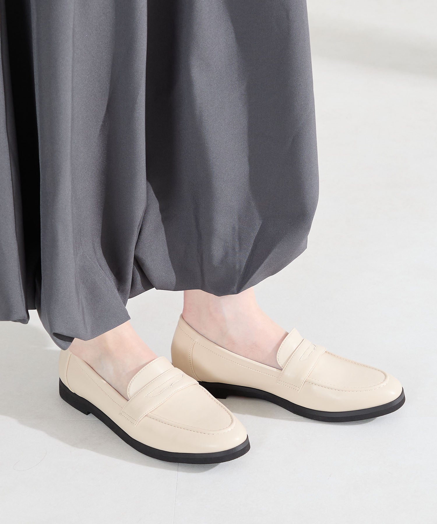 シンプルなデザインに丸みのあるトゥでオン・オフ問わず女性らしく履ける万能ローファー。アッパー全体にやわらかい生地を使用し、ふかふかのクッションインソールと裏地をマイクロファイバーにすることでやさしく包まれるようなフィット感に仕上げました。とことん履き心地にこだわったローファーは、驚くほど軽くて足になじみやすく、長時間履いても疲れにくい安心アイテム。