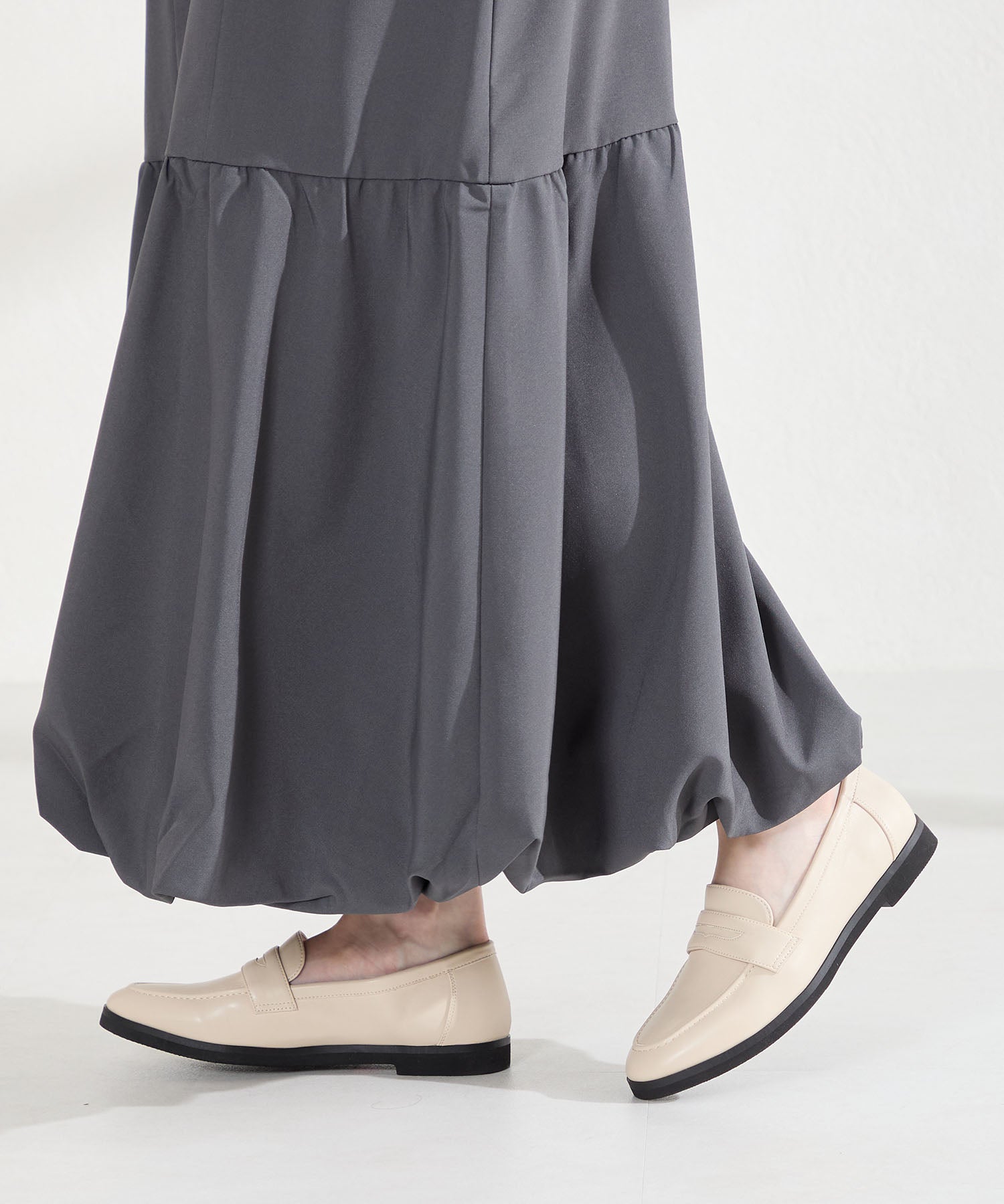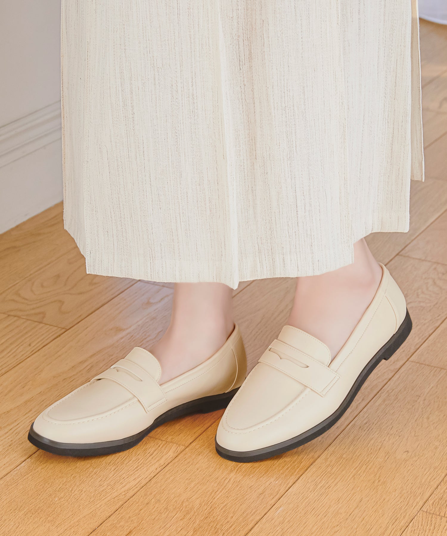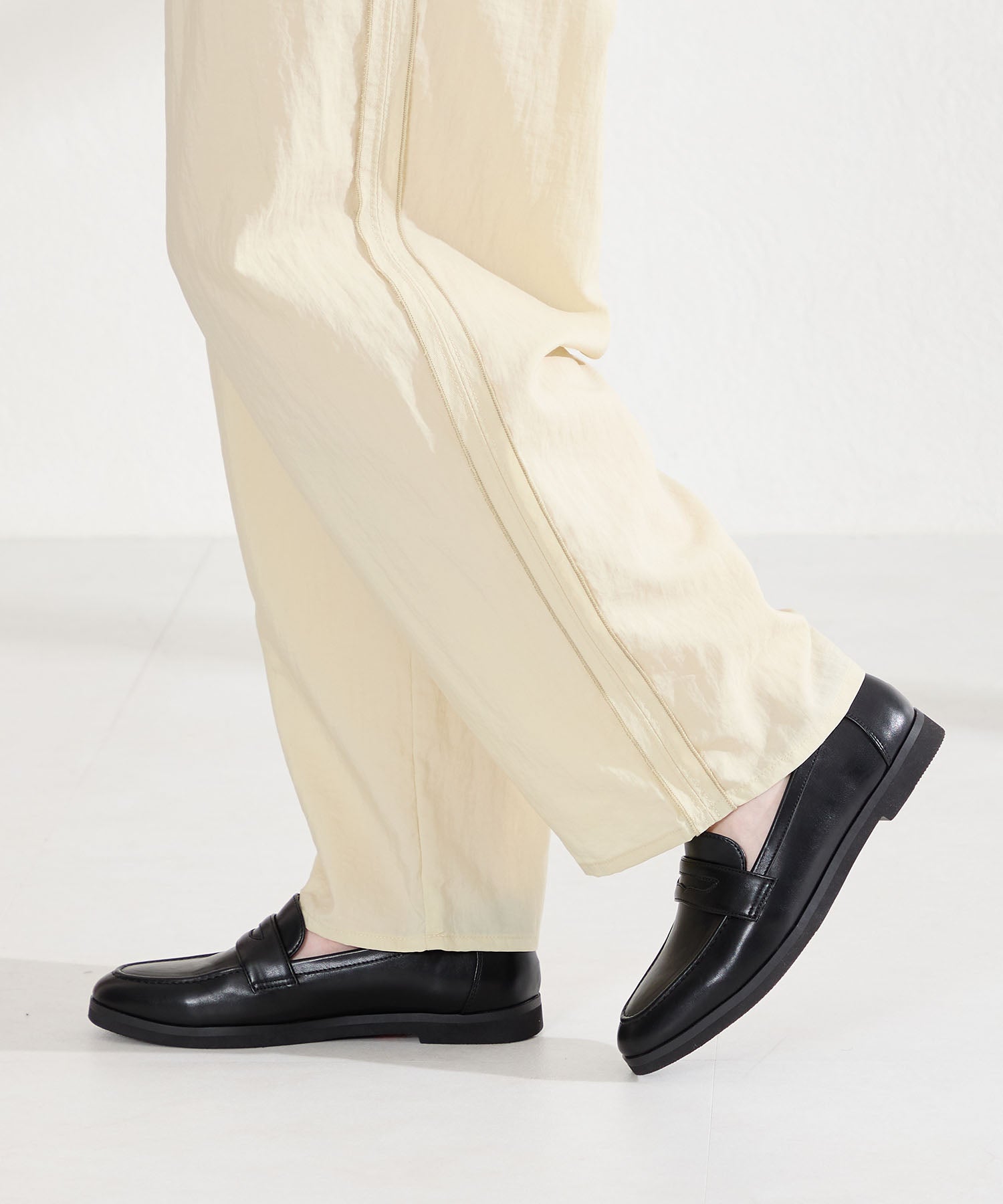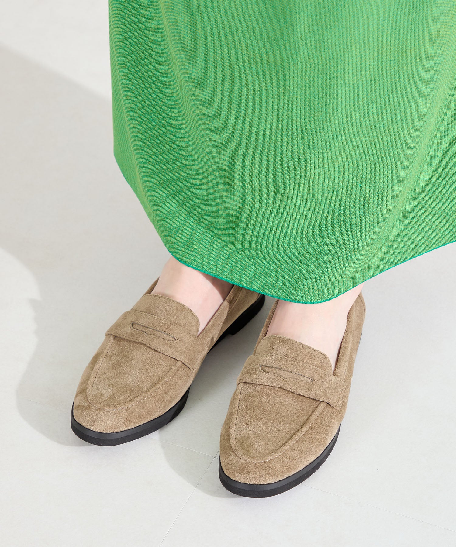 シンプルなデザインに丸みのあるトゥでオン・オフ問わず女性らしく履ける万能ローファー。アッパー全体にやわらかい生地を使用し、ふかふかのクッションインソールと裏地をマイクロファイバーにすることでやさしく包まれるようなフィット感に仕上げました。とことん履き心地にこだわったローファーは、驚くほど軽くて足になじみやすく、長時間履いても疲れにくい安心アイテム。