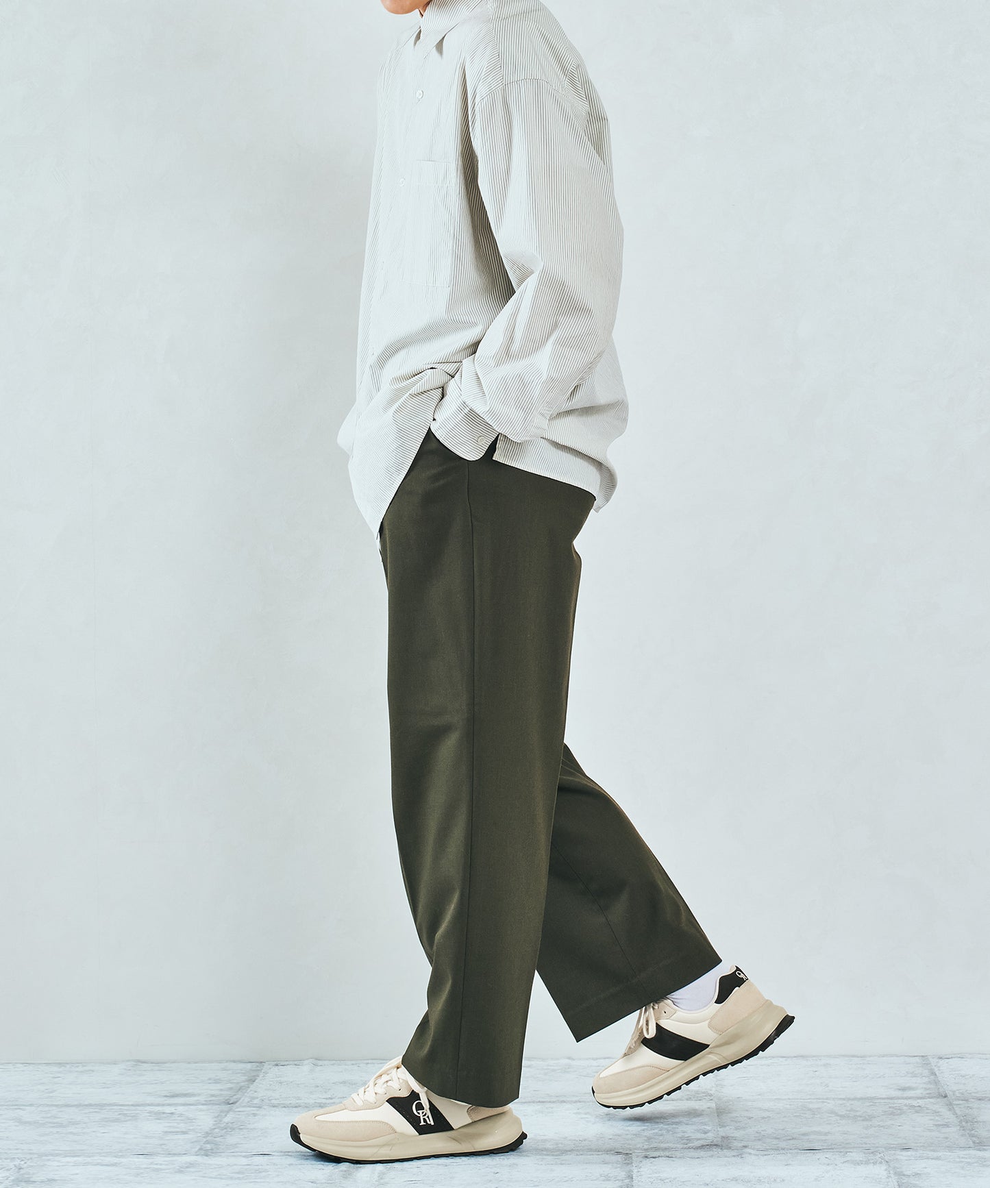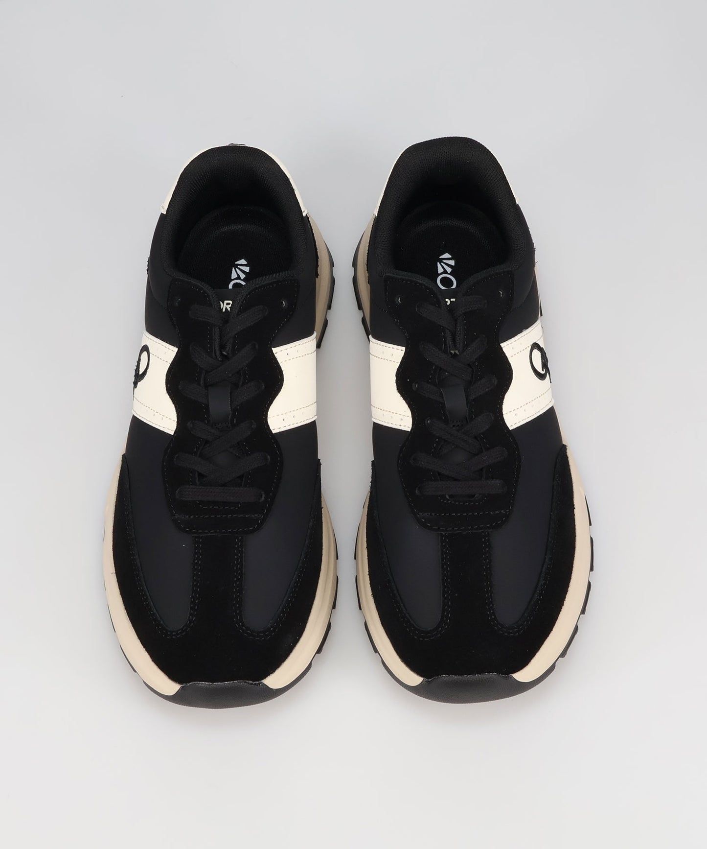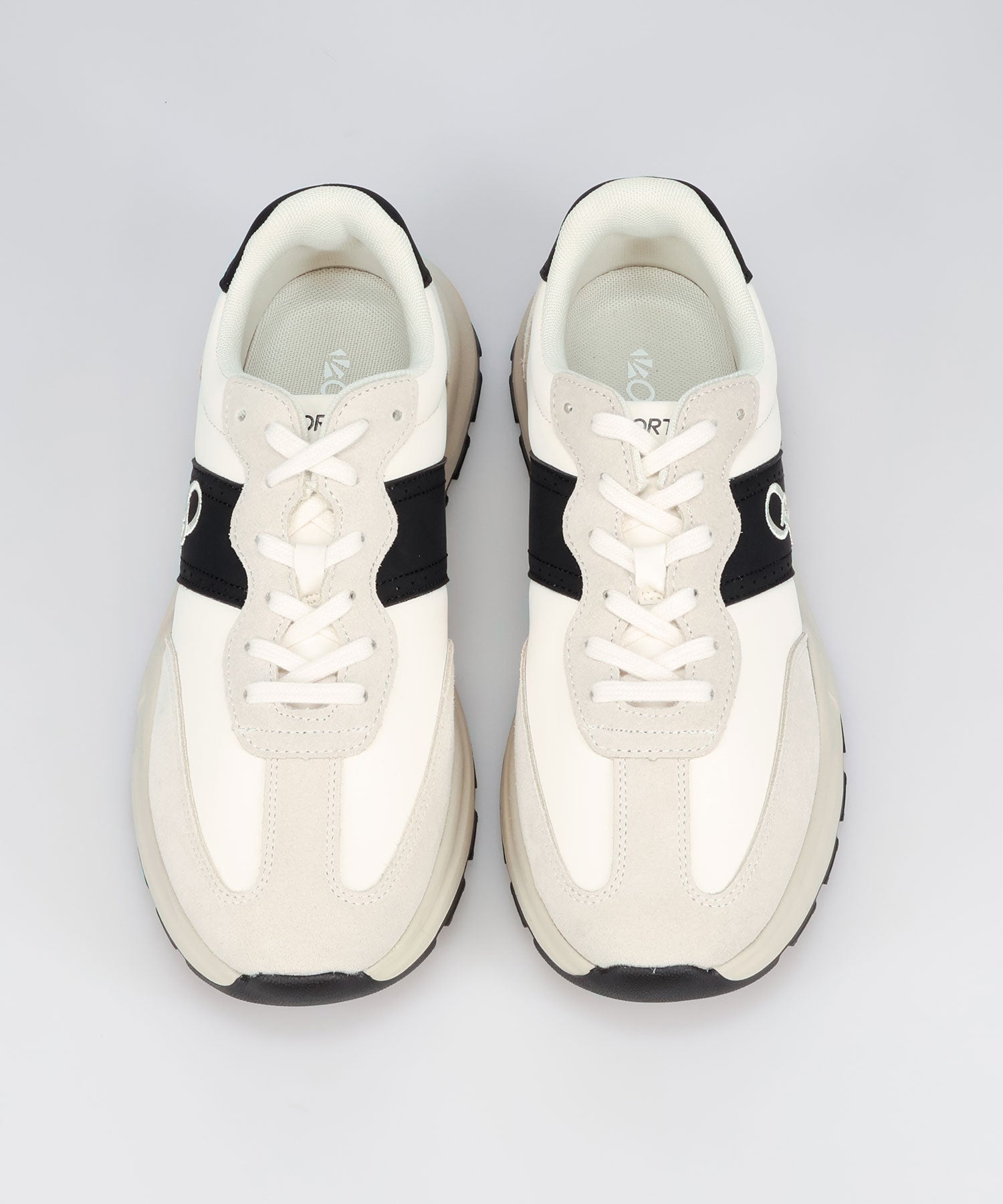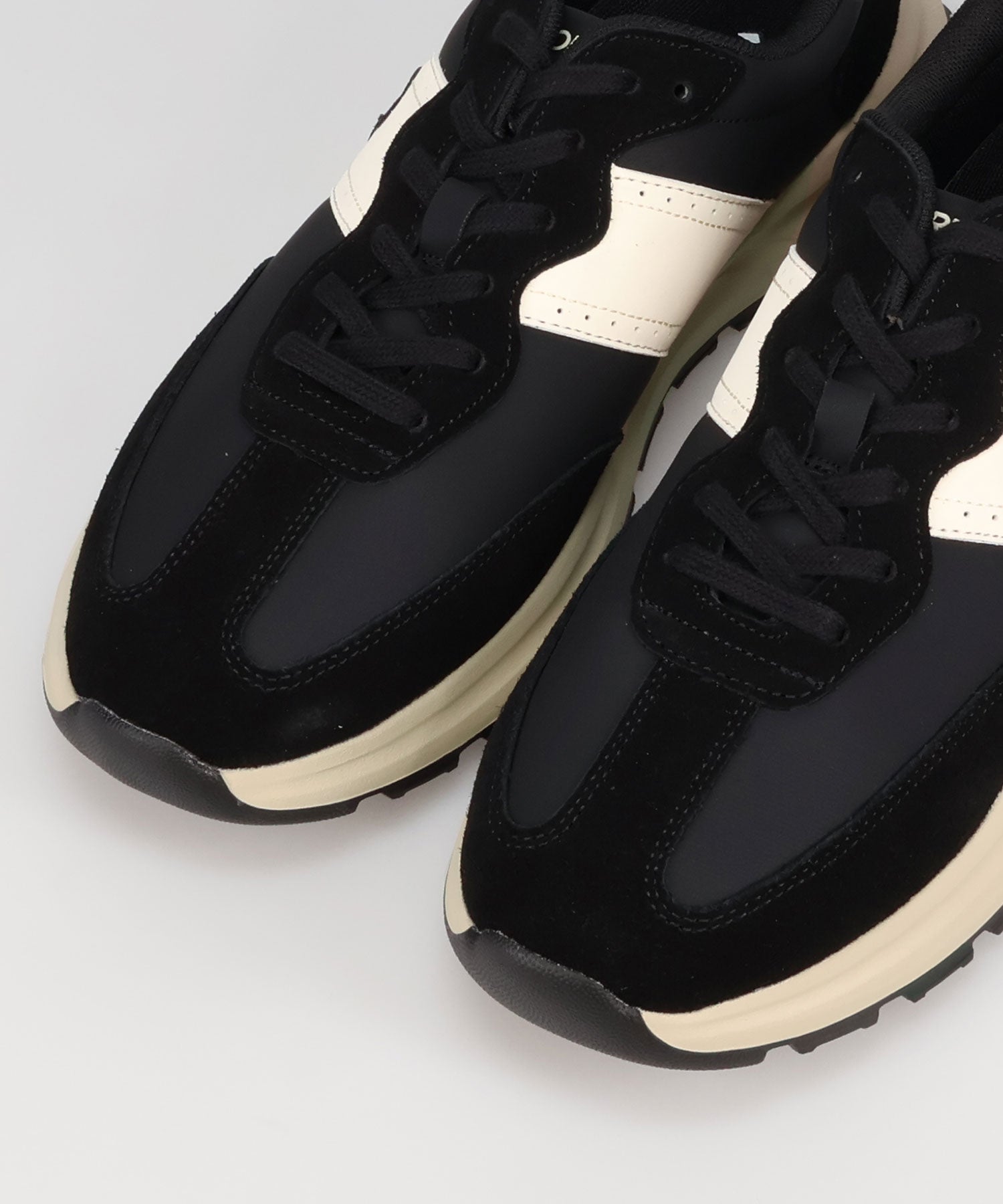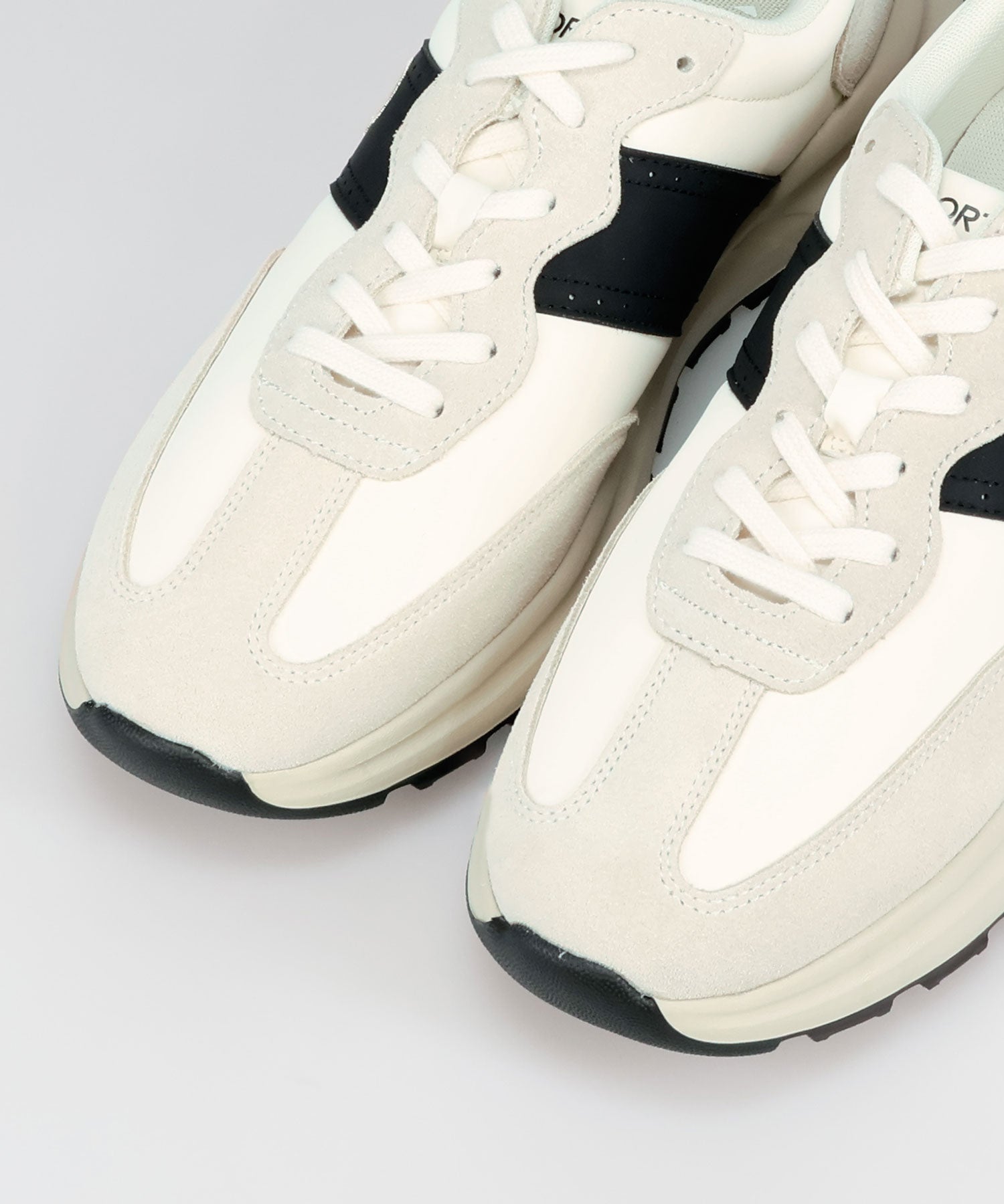 クラシックなジャーマンデザインを取り入れたスニーカーはスエード部分に本革を使用した高級感のある仕上がり。全体をワントーンでまとめつつもバイカラーのパーツでメリハリを付けて、サイドのロゴが全体を引き締めてくれる。シャープな細身のつま先シルエットにすることで都会的な雰囲気になり幅広いスタイリングに合う万能な1足。