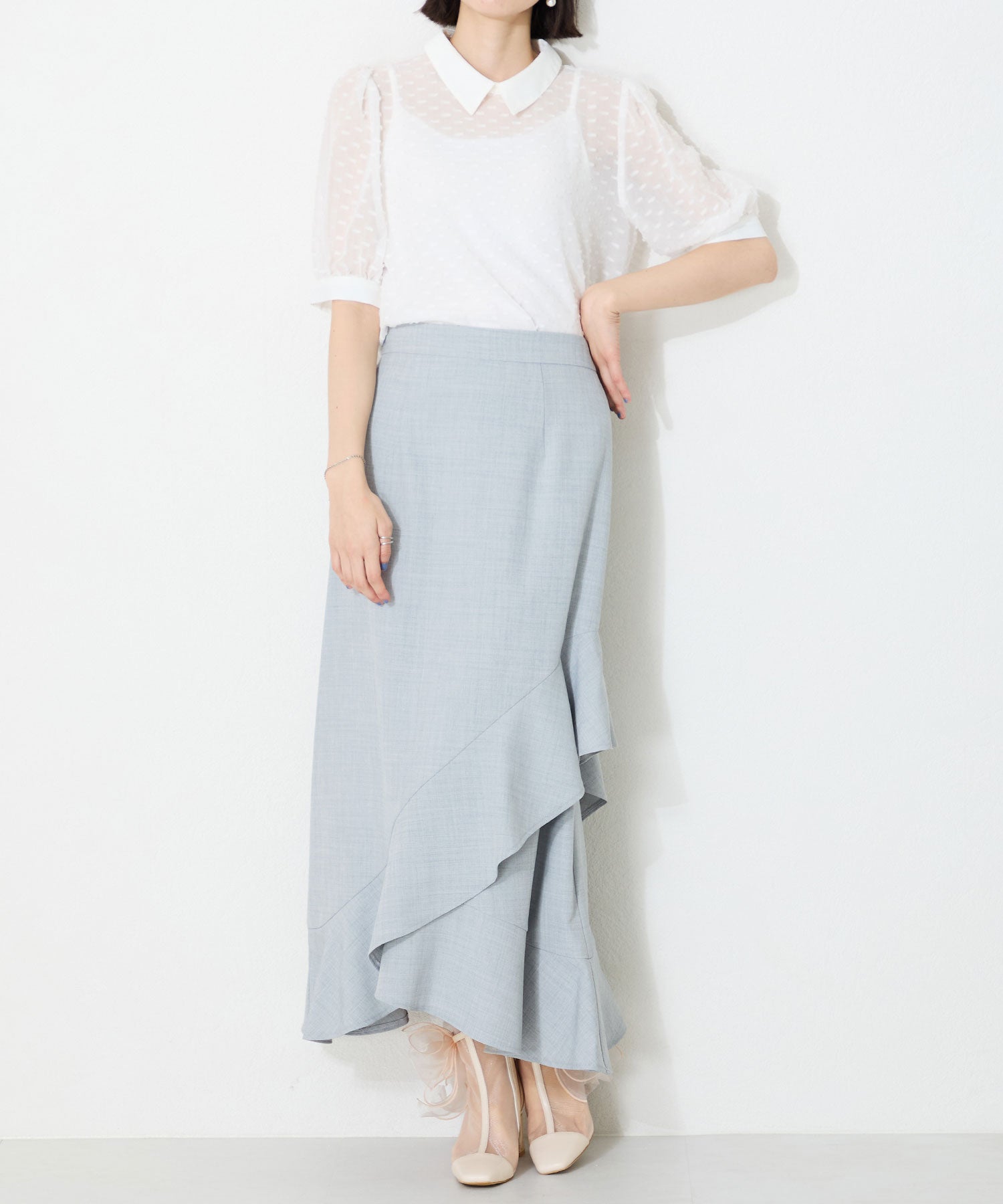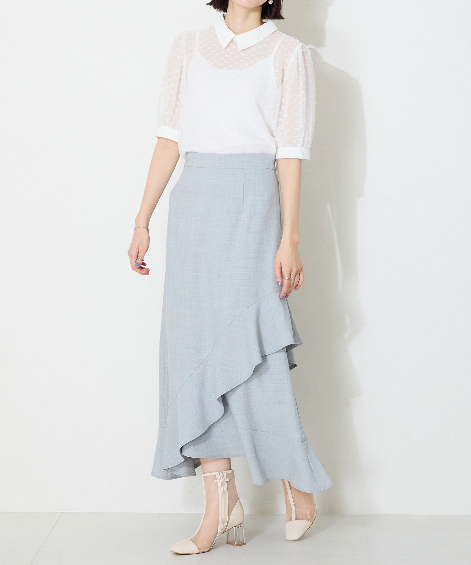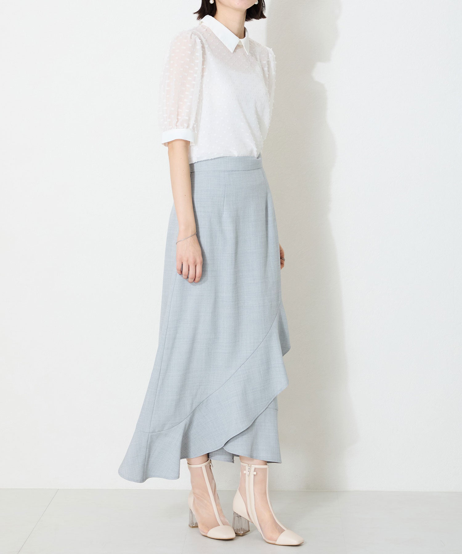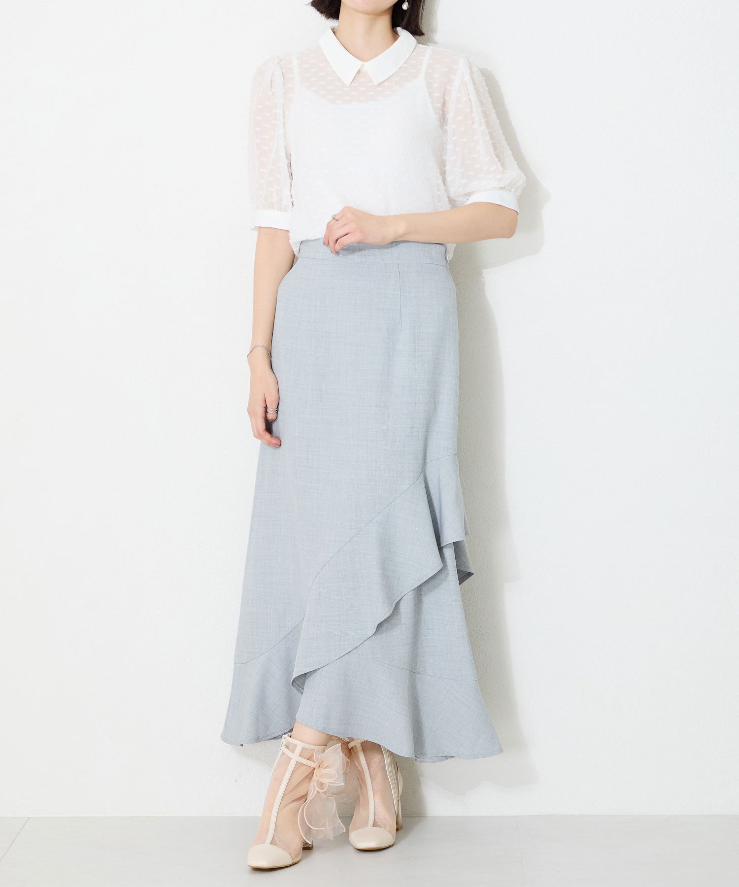 スタイリングの主役になるチュールのショートブーツは、華やかでふわっとしたニュアンスのあるリボンモチーフが旬な足元を演出。リボンベルトは取り外しが可能で、取るとシンプルなブーツとして幅広く活躍する優秀アイテム。ほんのりとベージュカラーを纏ったクリアヒールは大人なムードが漂う雰囲気で履くと気分が高まる特別な1足。