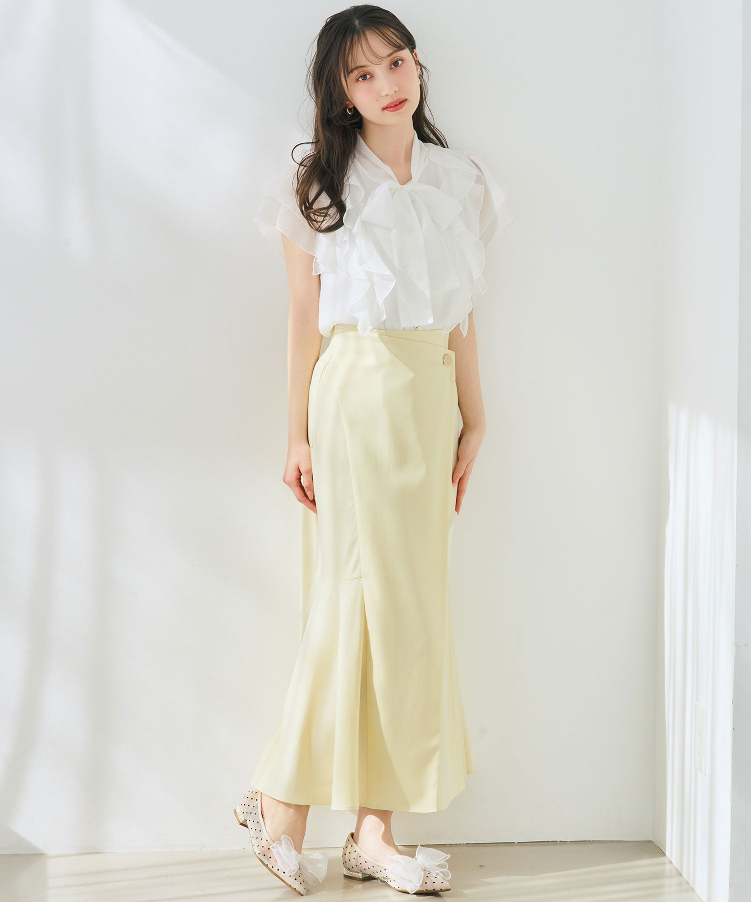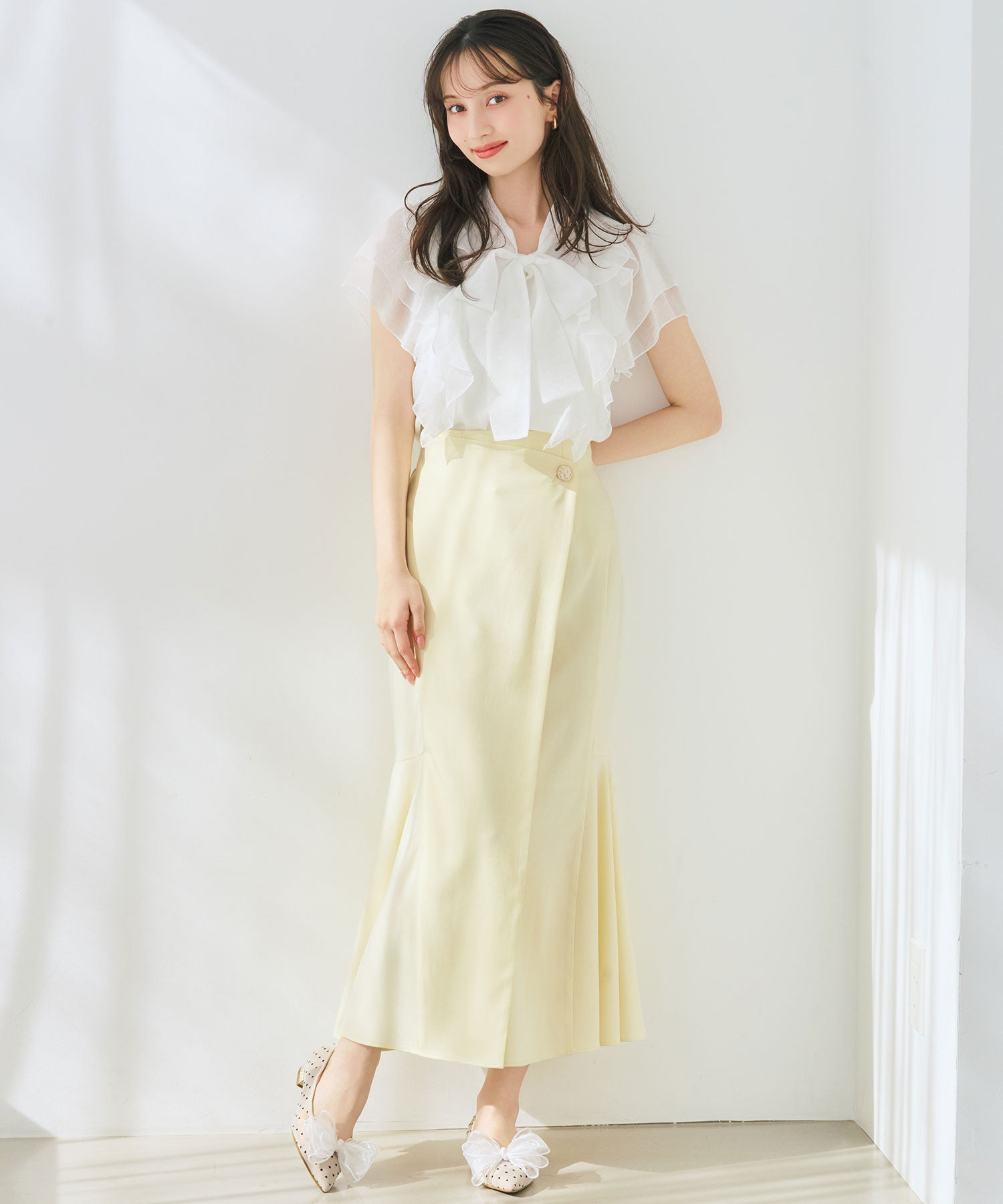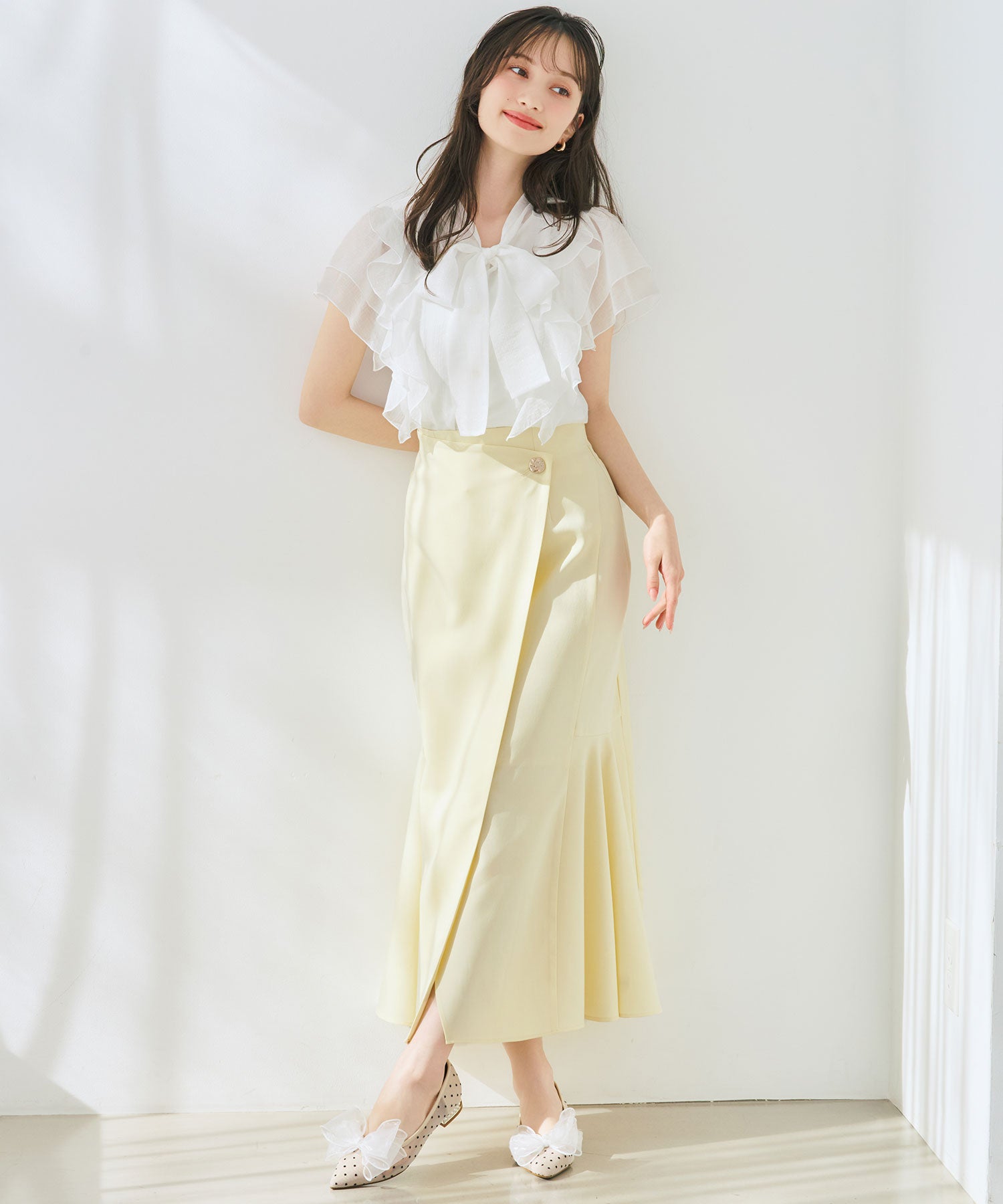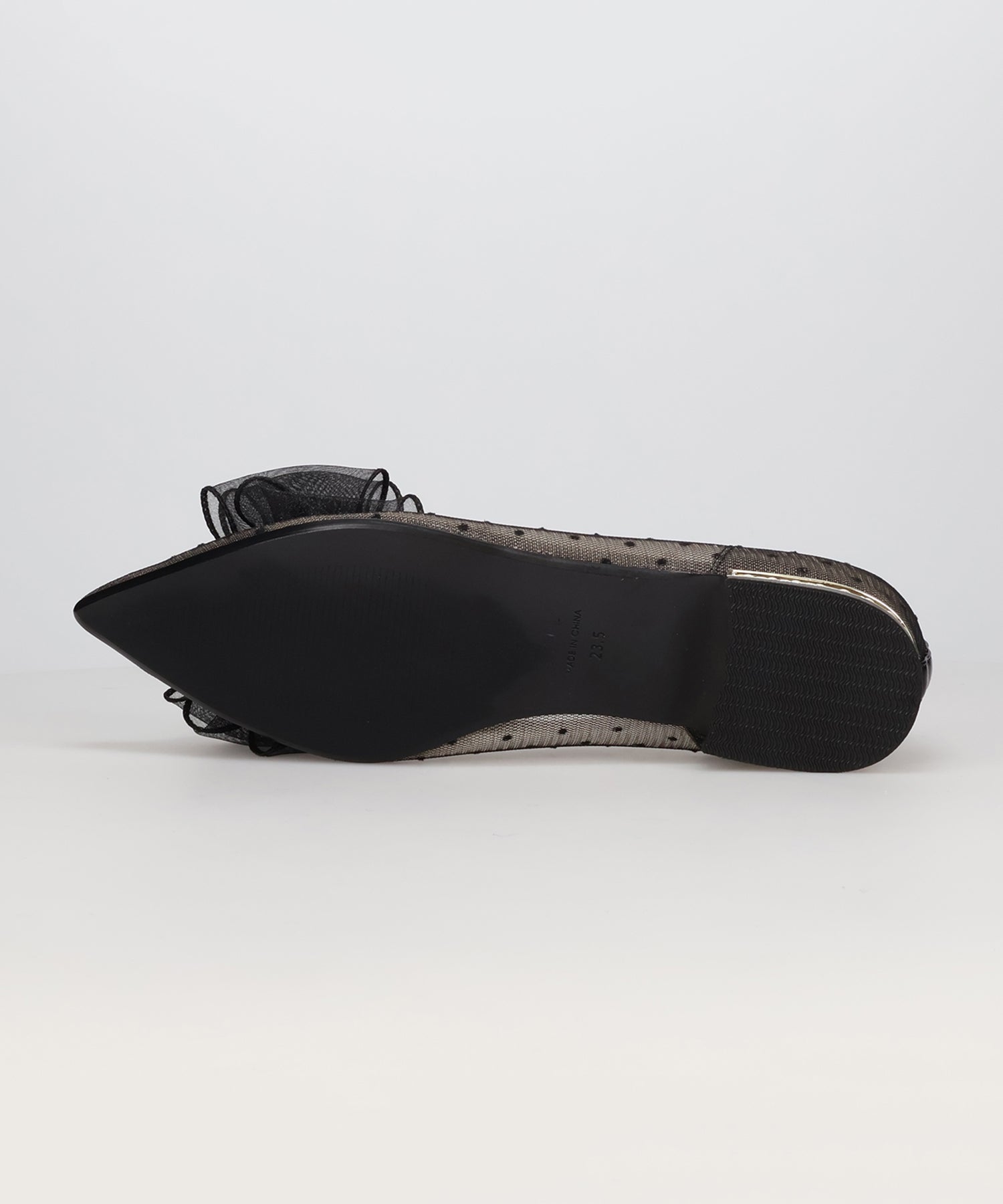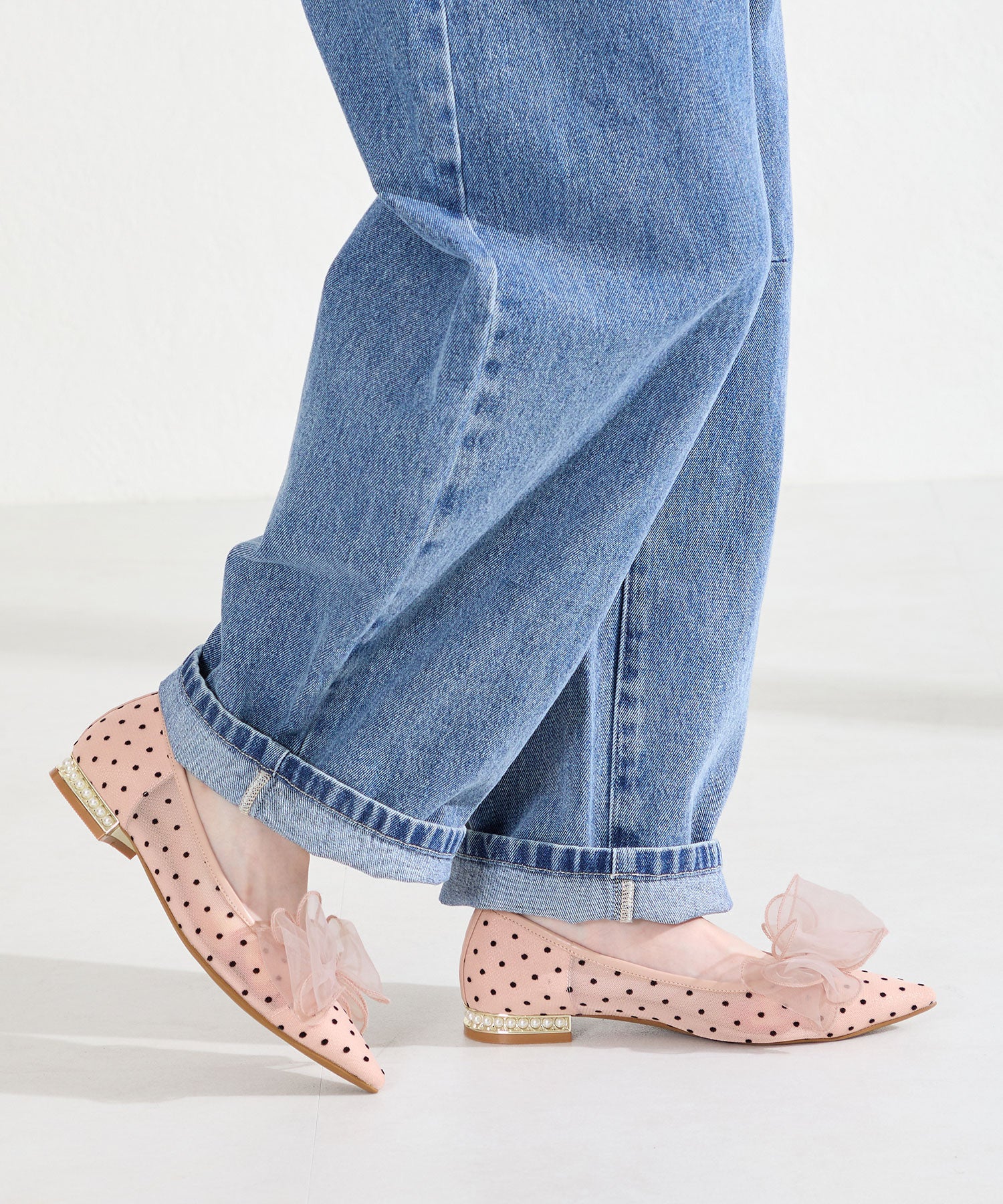 ボリュームたっぷりのチュールリボンがコーディネートのアクセントになる大人可愛いパンプス。アッパーにはシアードット素材を使用して、甘さを残しつつ上品な印象に。歩きやすい低めのヒールにはパールを施し、どこから見ても抜かりないシルエット仕上げているのもポイント。普段使いはもちろん、オケージョンなどの特別な日のお出かけにもぴったりな1足。