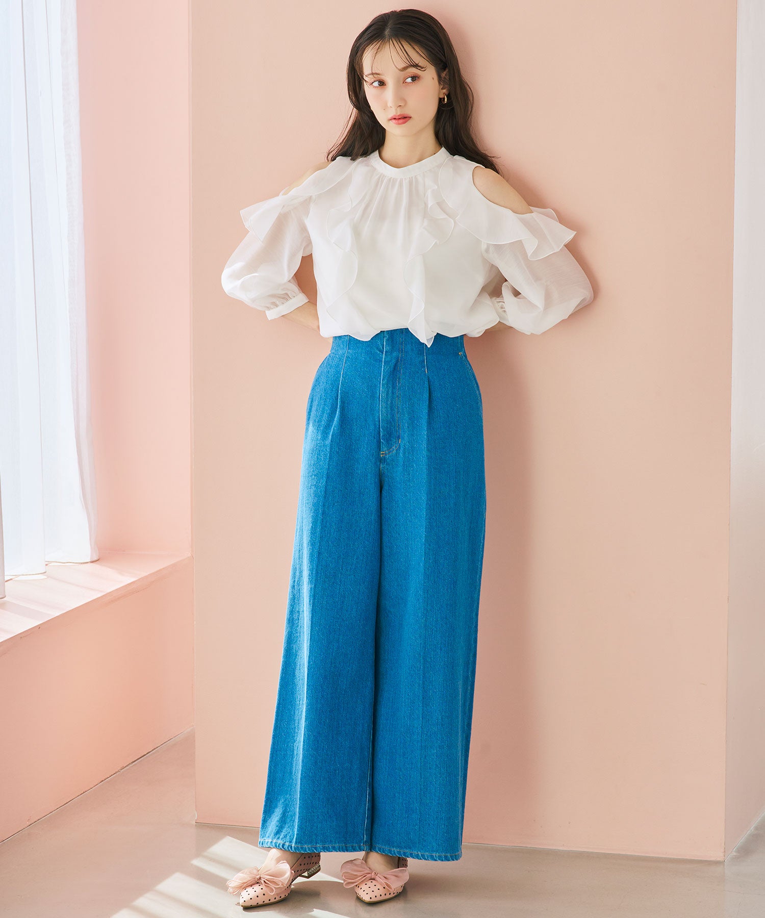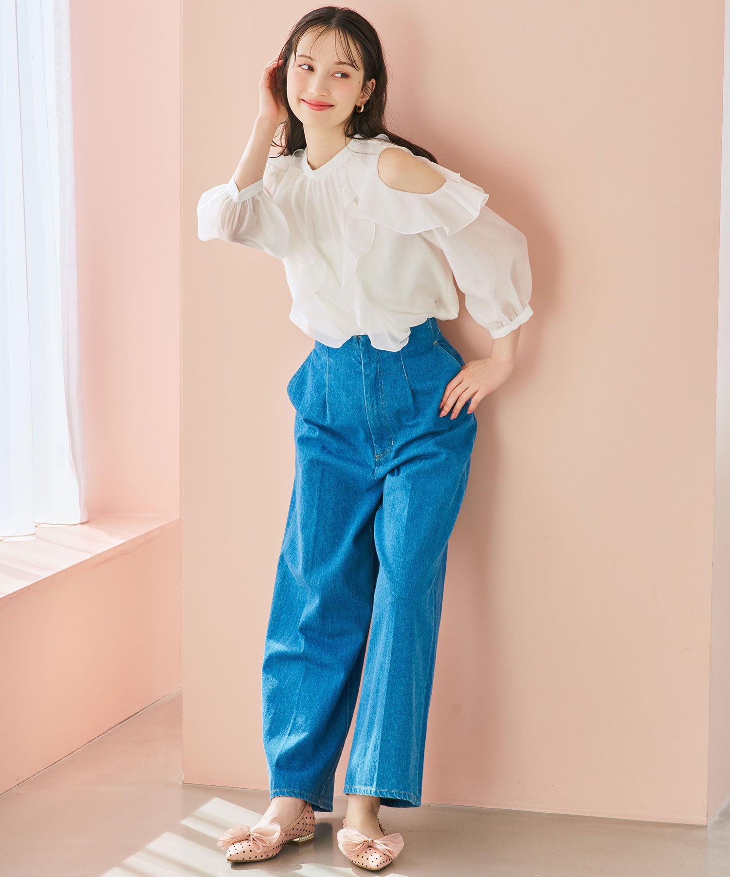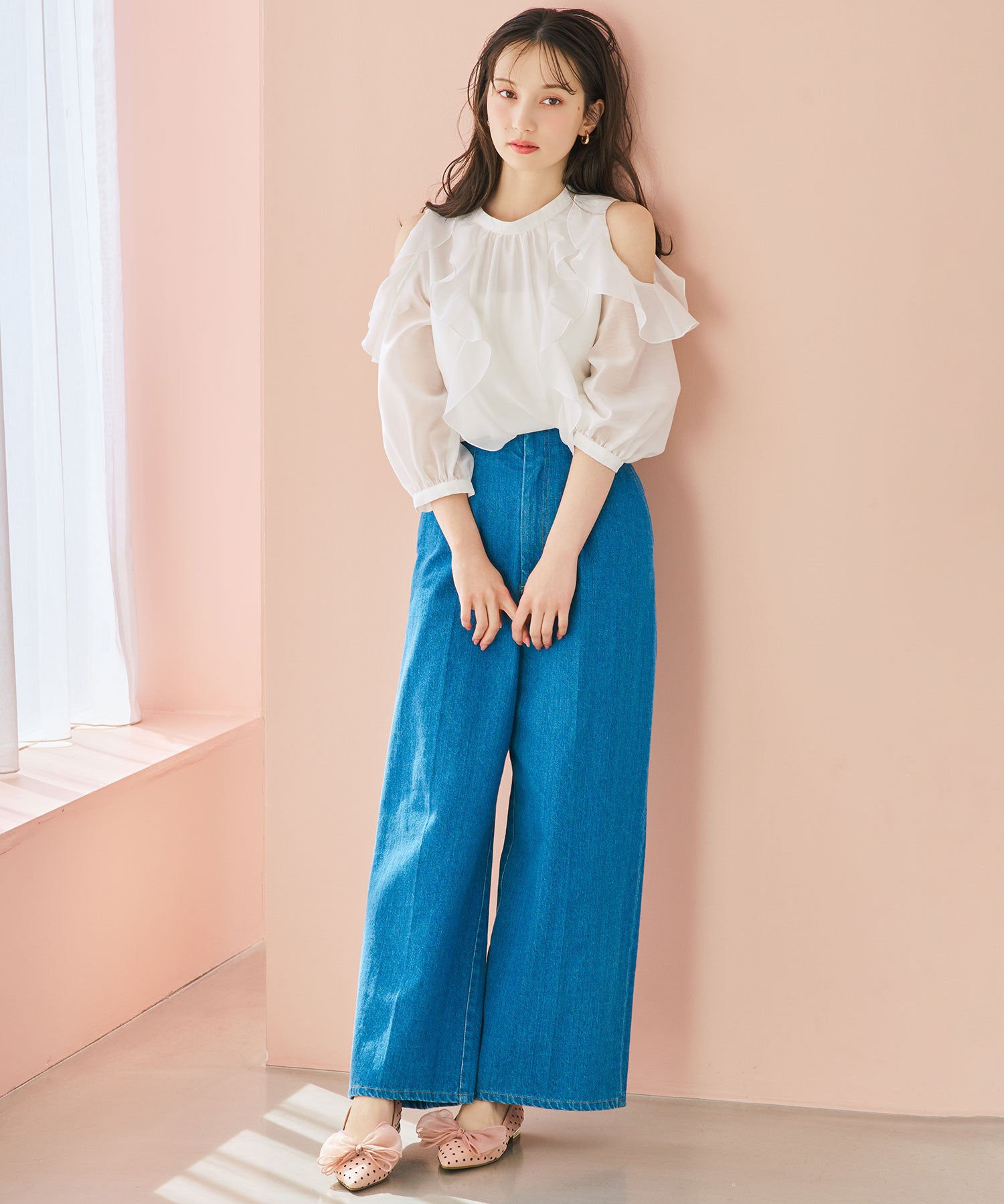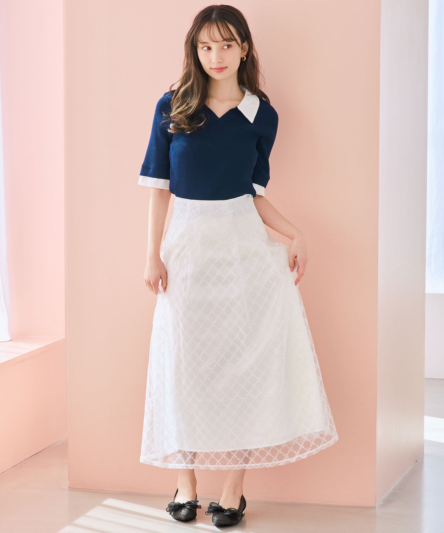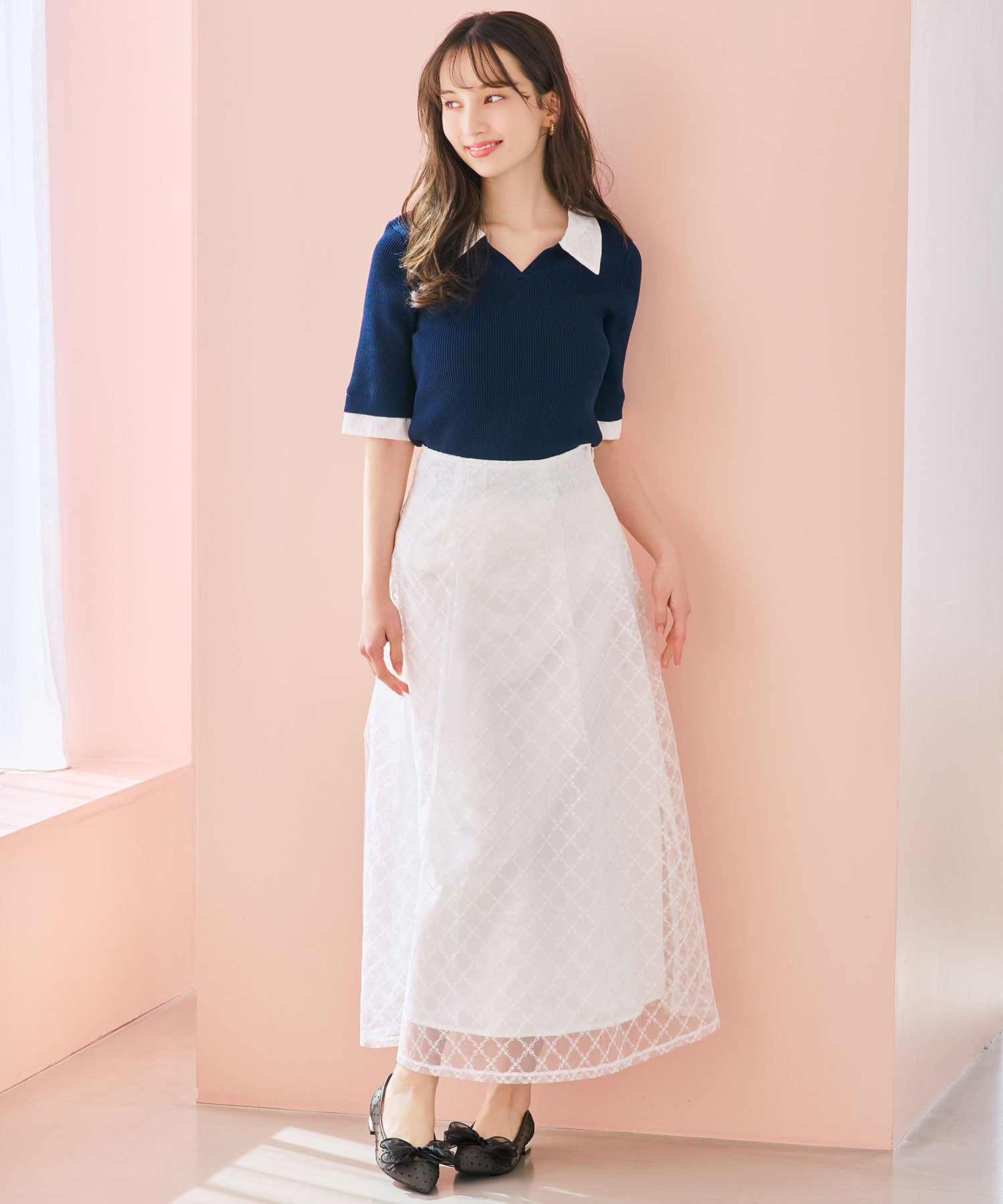 ボリュームたっぷりのチュールリボンがコーディネートのアクセントになる大人可愛いパンプス。アッパーにはシアードット素材を使用して、甘さを残しつつ上品な印象に。歩きやすい低めのヒールにはパールを施し、どこから見ても抜かりないシルエット仕上げているのもポイント。普段使いはもちろん、オケージョンなどの特別な日のお出かけにもぴったりな1足。