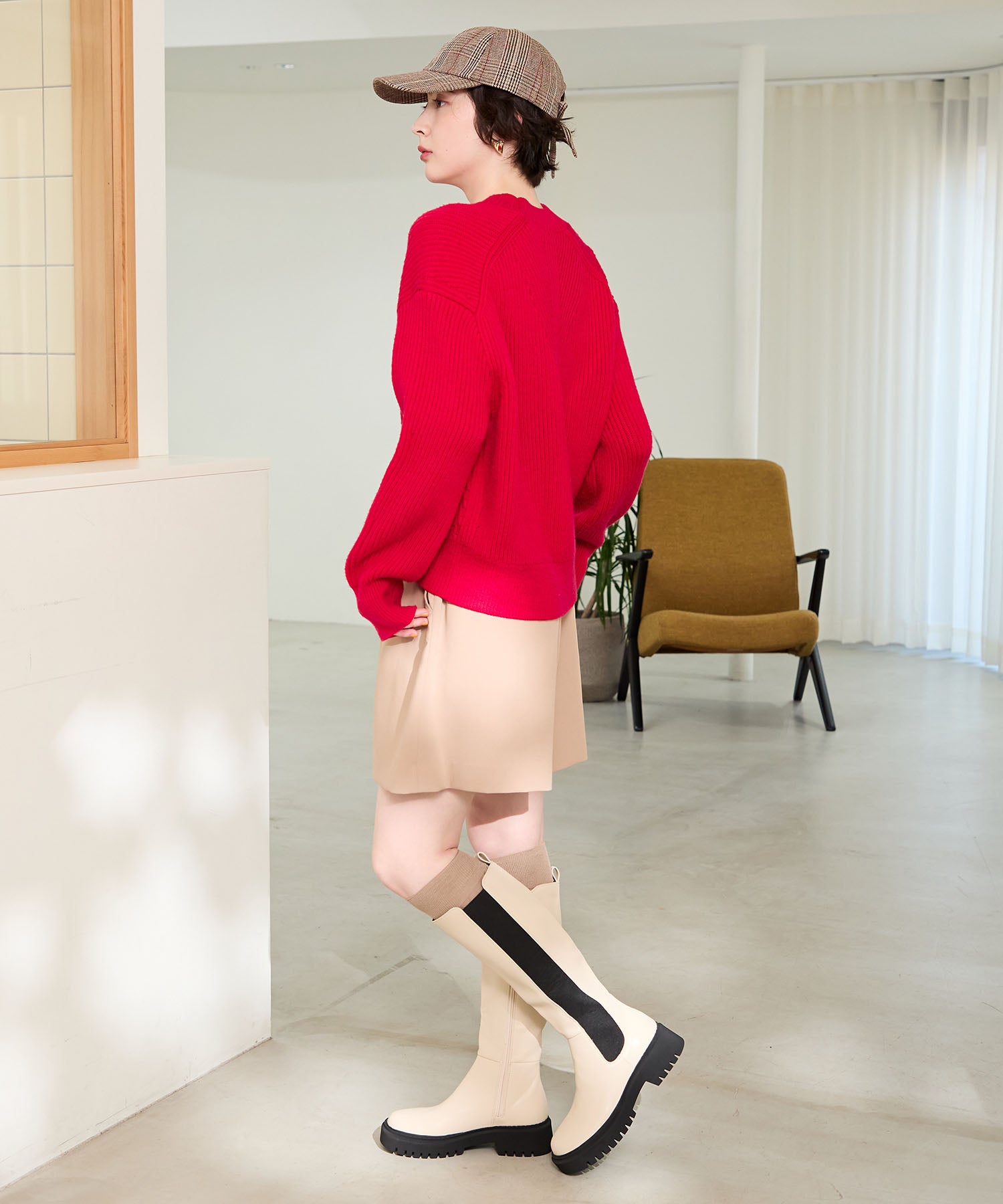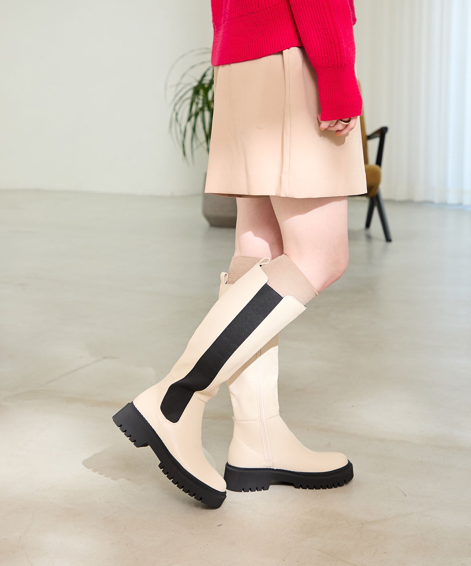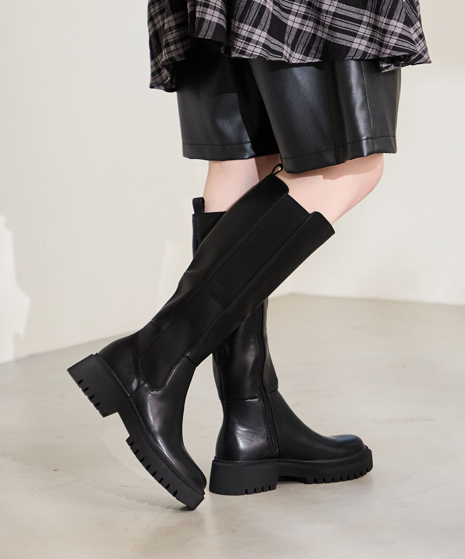 カジュアルコーデに合わせたい定番のサイドゴアデザインのロングブーツ。スタイルのポイントになるサイドゴアは縦のラインを強調してくれるので、脚をきれいに細く見せてくれる。内側にはファスナーが付いているので、スムーズな着脱が可能なのも嬉しい。ショートパンツやミニスカートで合わせてカジュアルに履くのがおすすめ。