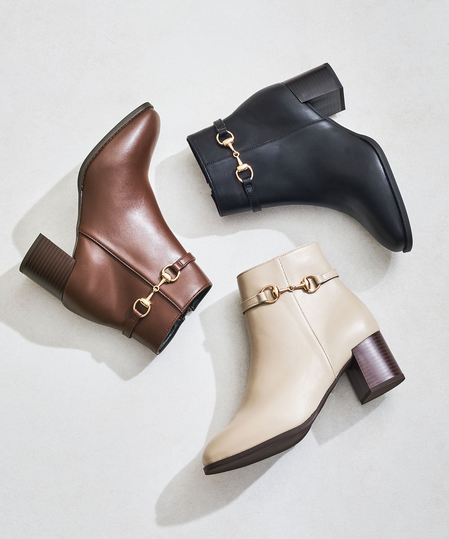 すっきりとしたフォルムとサイドに施したゴールドのビットモチーフがレディライクなショートブーツ。6cmヒールで足元のシルエットを綺麗に見せつつ、チャンキーヒールで安定感があって長時間歩いても疲れにくいのが魅力的。パンツやスカート、ワンピースなど幅広いコーデに合わせやすく、普段のスタイルをワンランクアップグレードしてくれる1足。