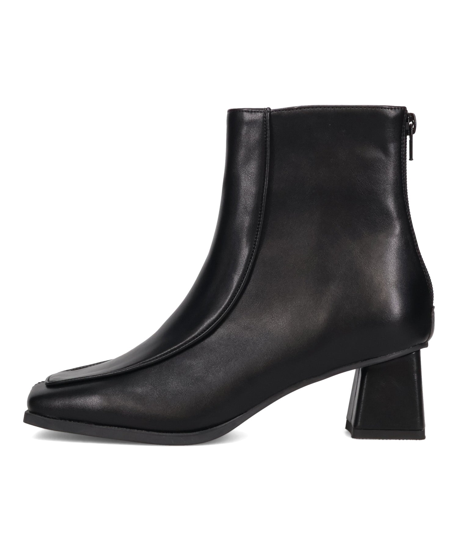 足元をシャープに見せてくれるスクエアトゥのモカブーツは、シンプルなデザインながらもアッパーの切替デザインが程よく足元を引き締めてくれる。高すぎないヒールが歩きやすく、バックファスナー仕様で着脱も簡単。どんなボトムスともバランスよくマッチしてくれるシルエットなのでデイリー使いにも重宝するアイテム。