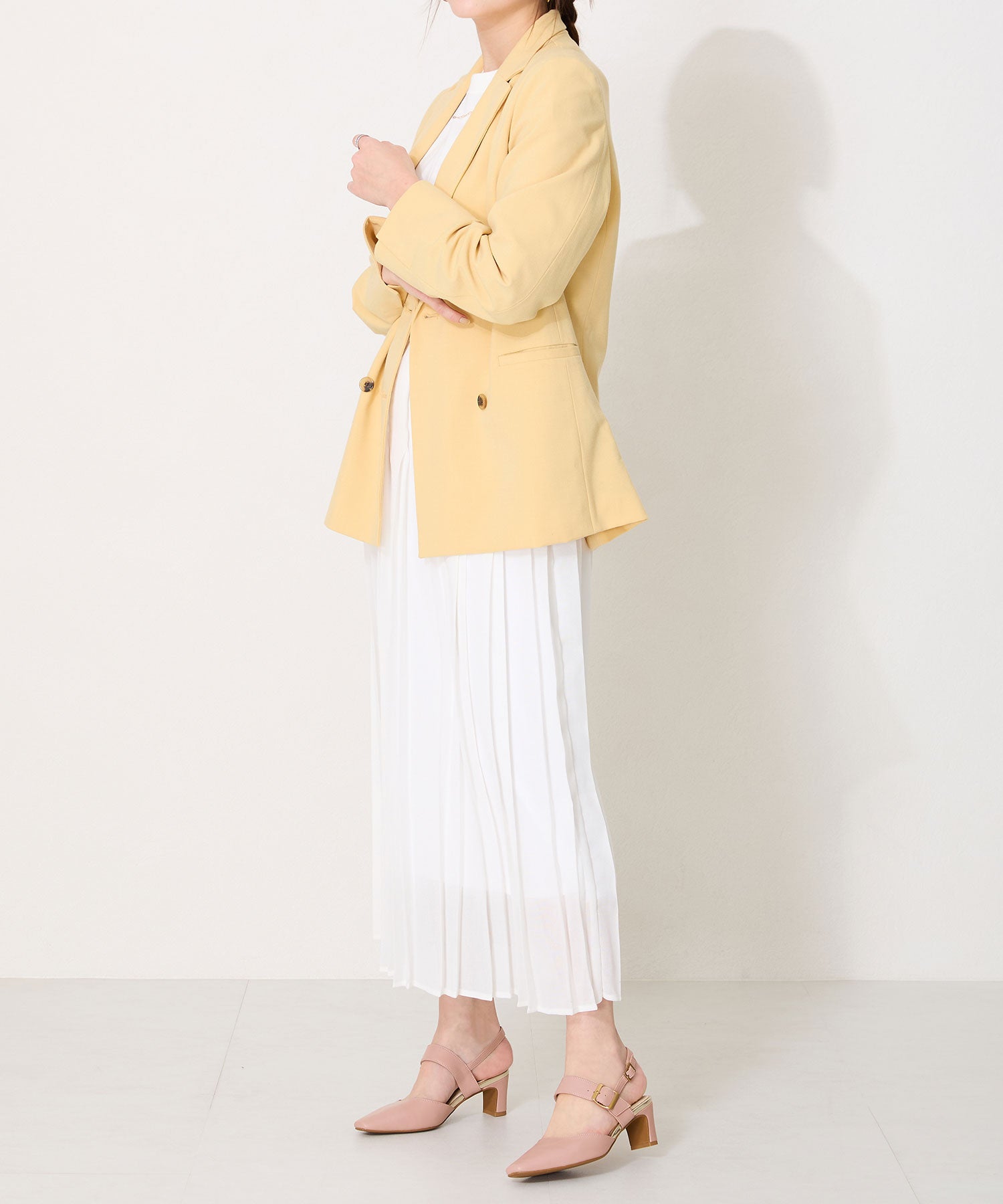華奢なバックストラップで抜け感のある足元を演出するパンプスは、細身のスクエアトゥにプレートヒールを組み合わせ、スマートなシルエットに仕上げた1足。甲ベルトとストラップに施したバックルは、輝きを抑えたニュアンスのあるものを採用し、大人っぽく上品な印象に。ストラップ内側部分にはゴムが付いているので、そのまま着脱ができるのも魅力的。