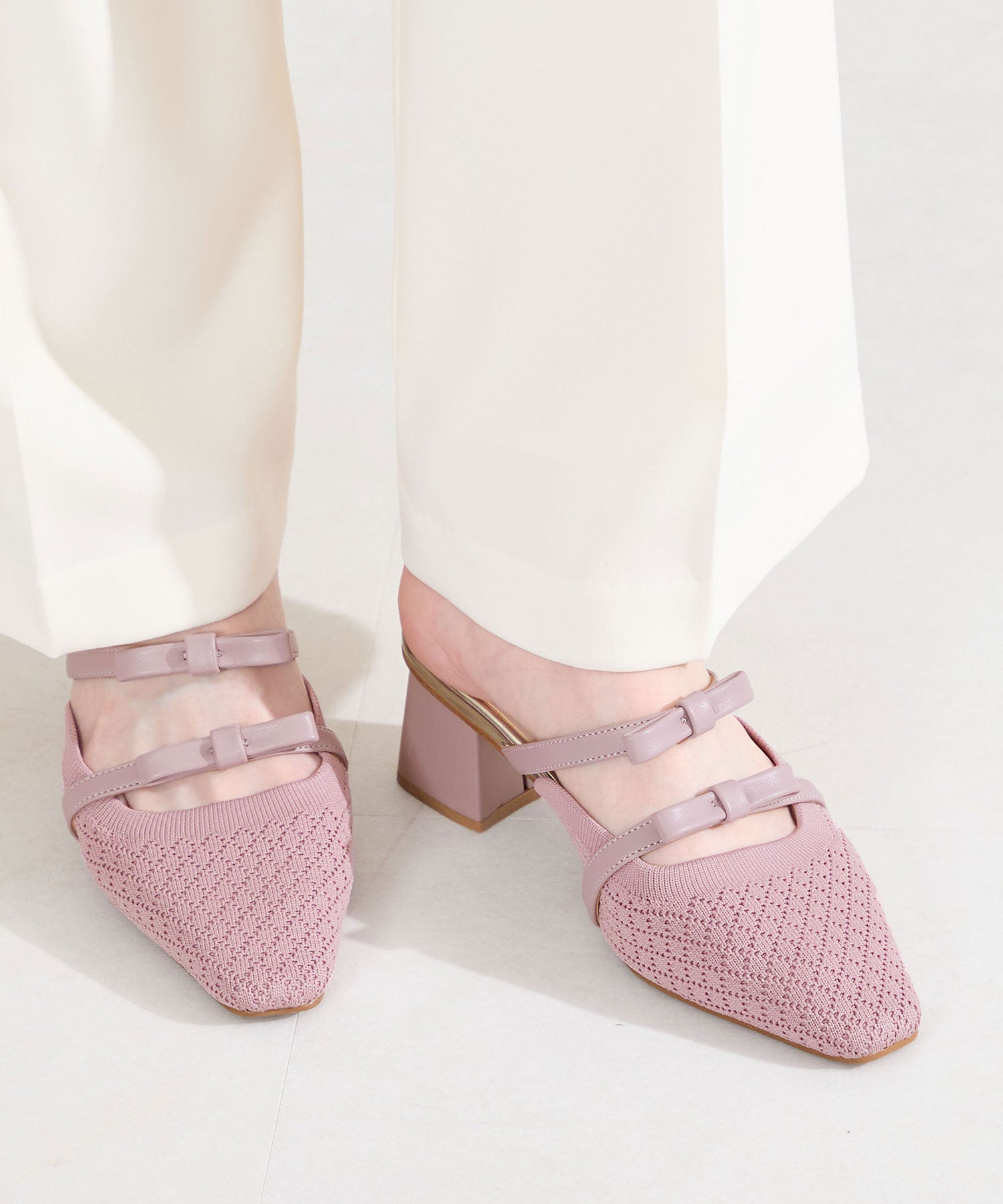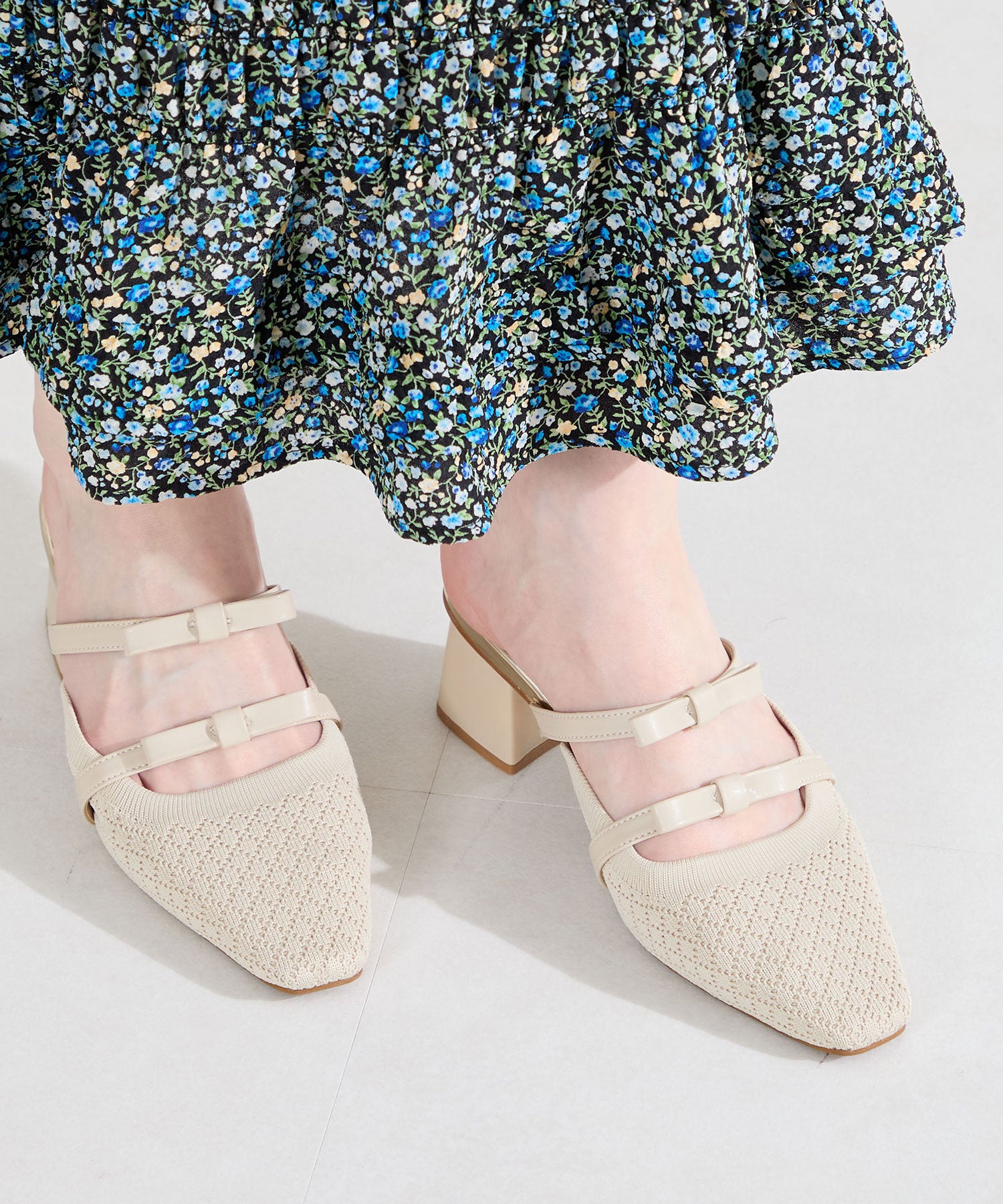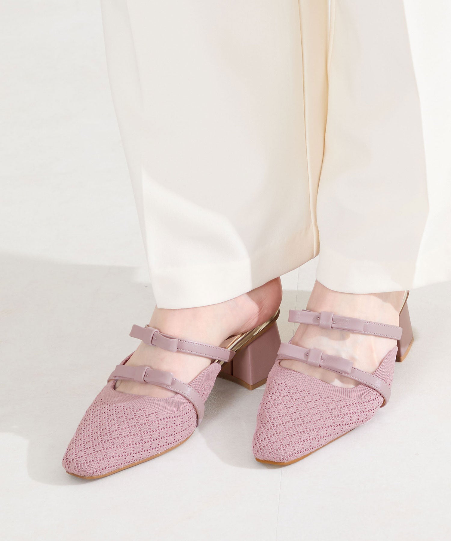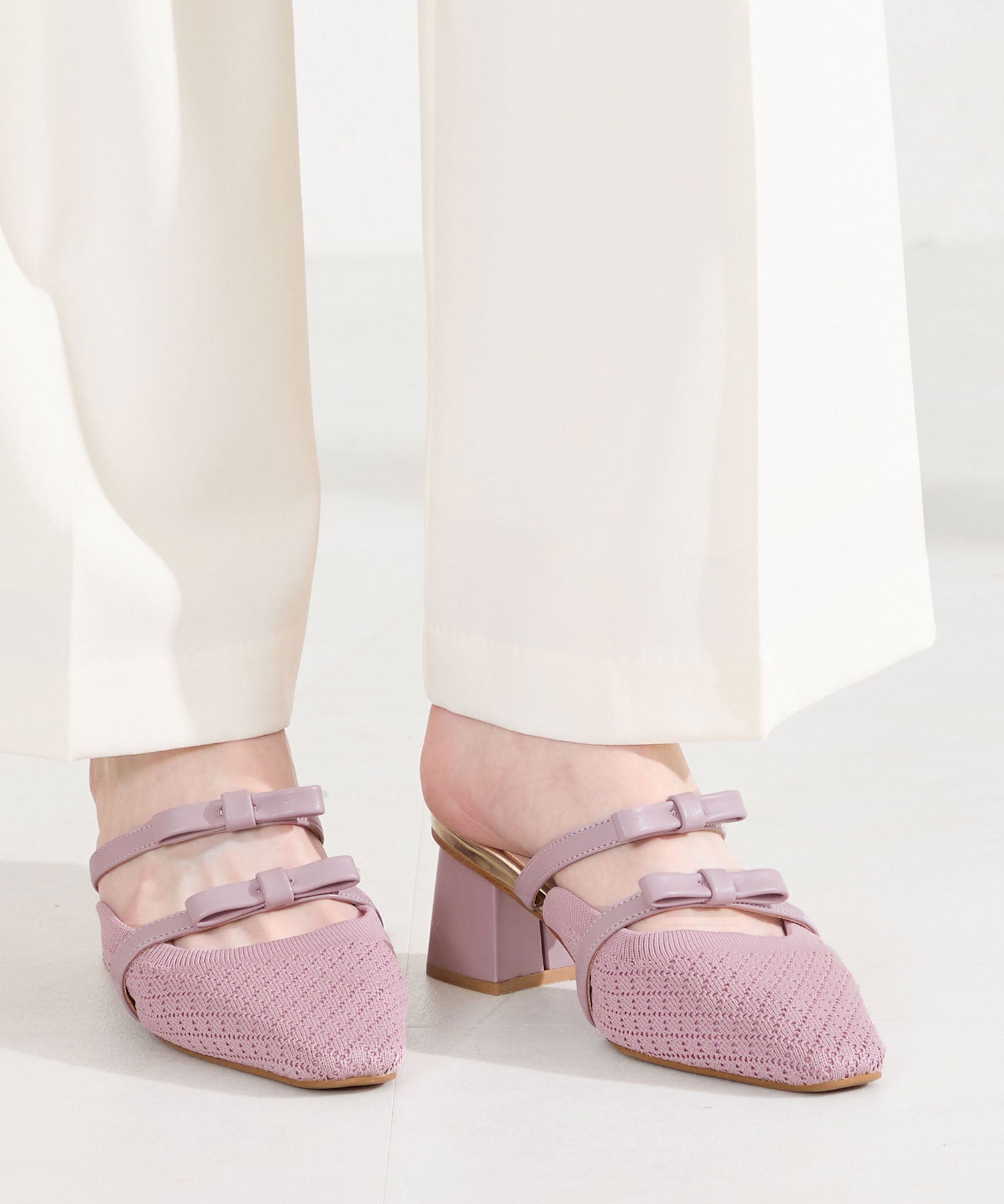 ダブルリボンニットミュールパンプス/61111