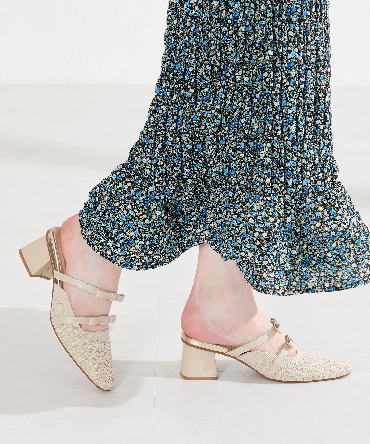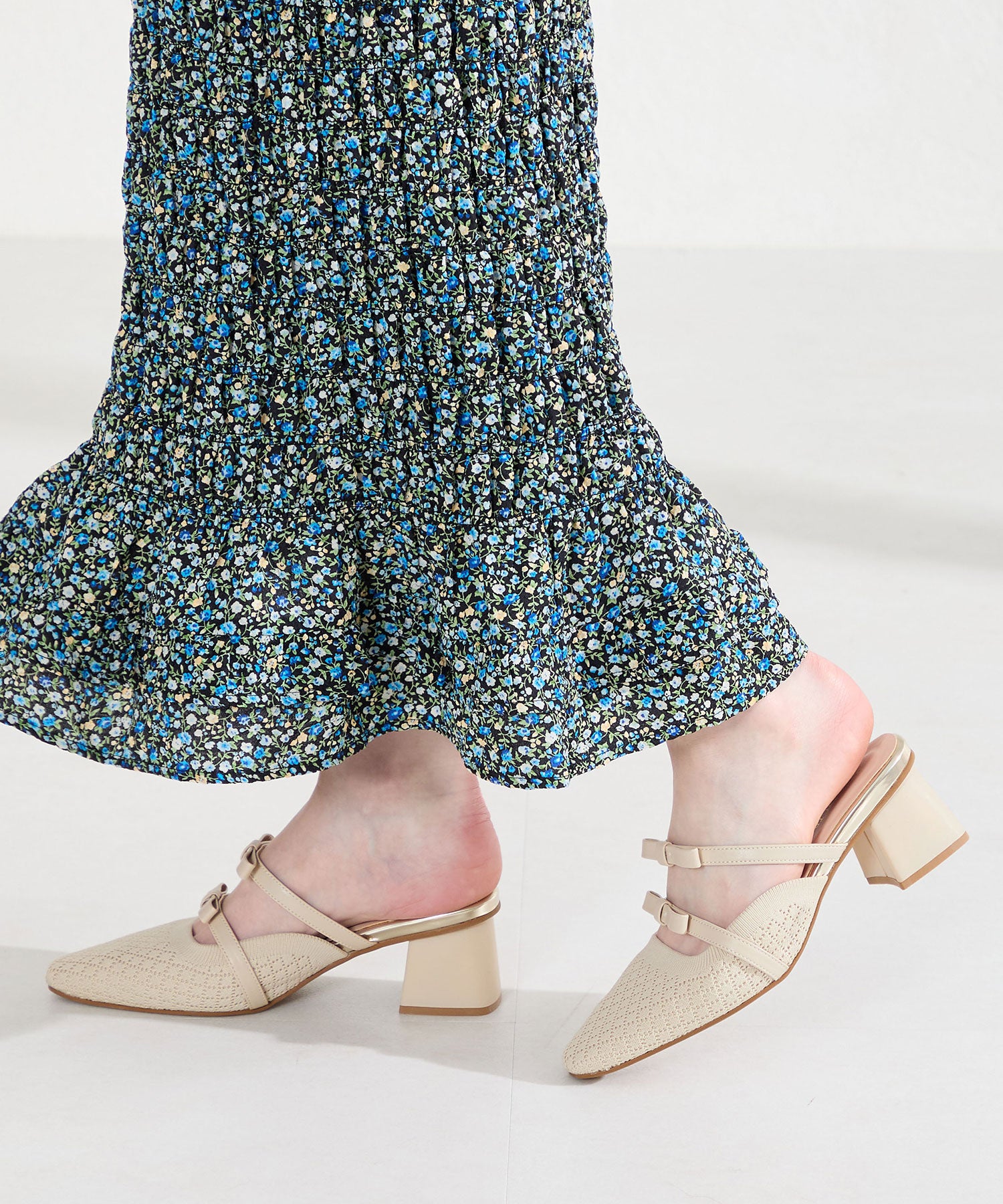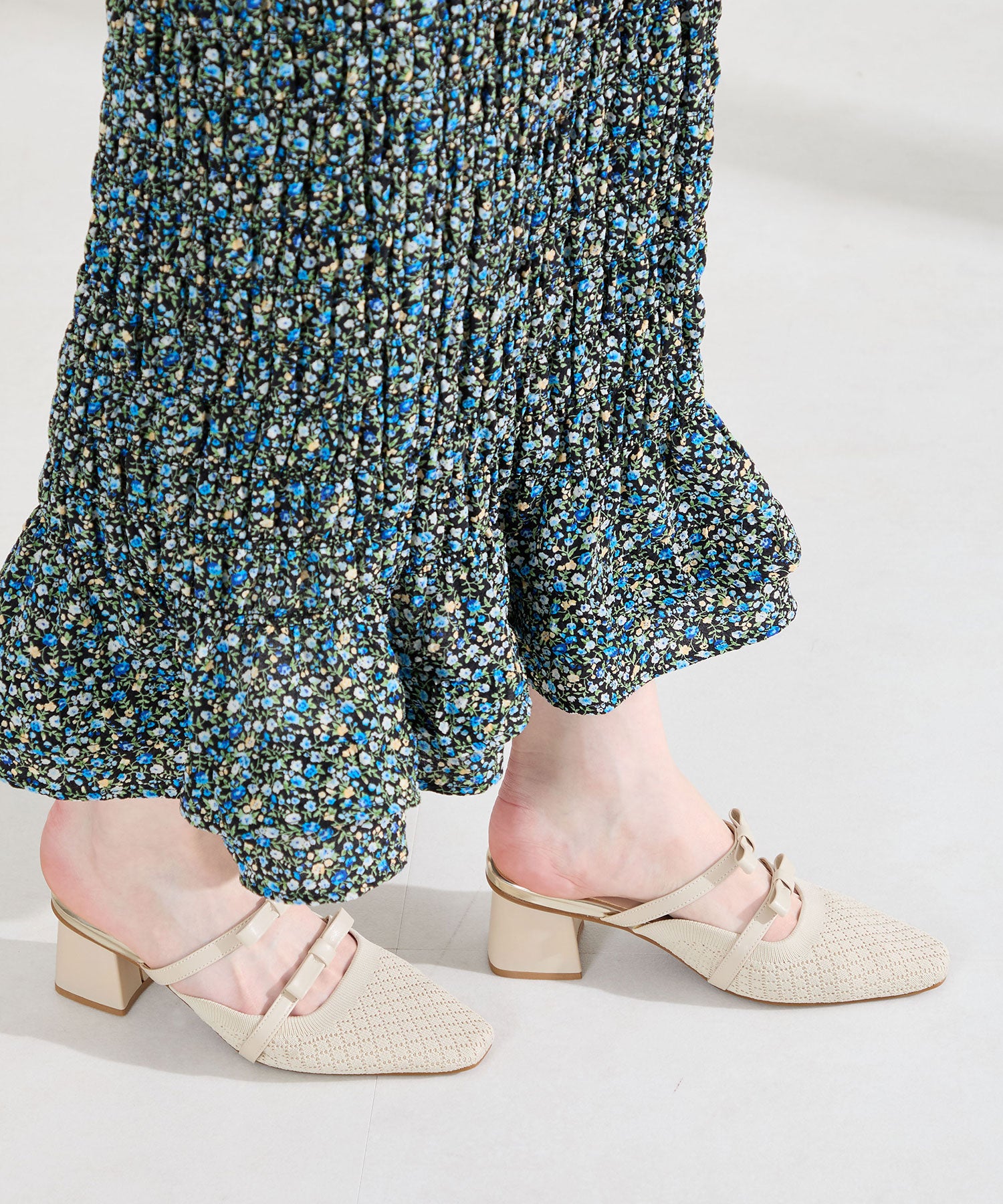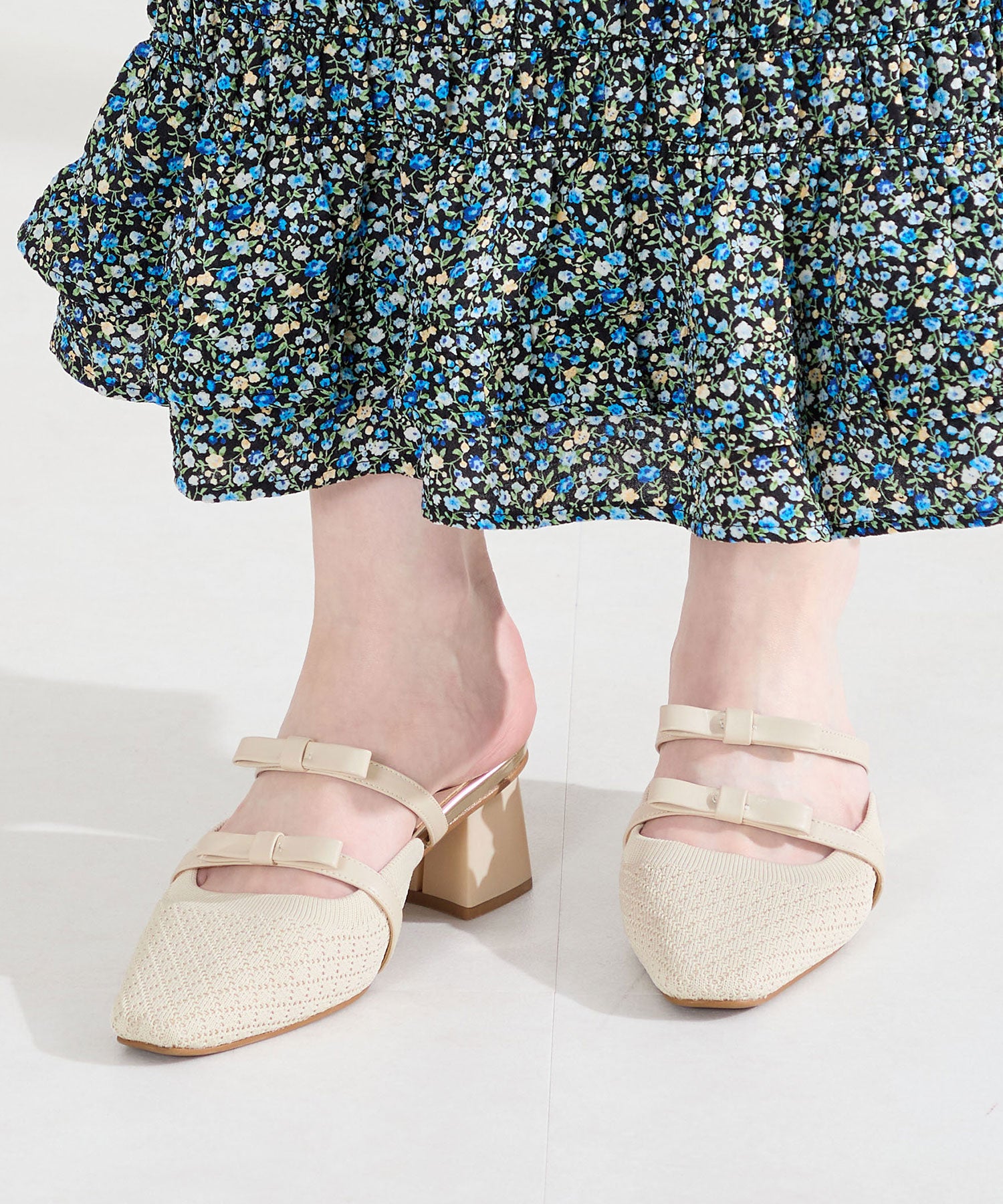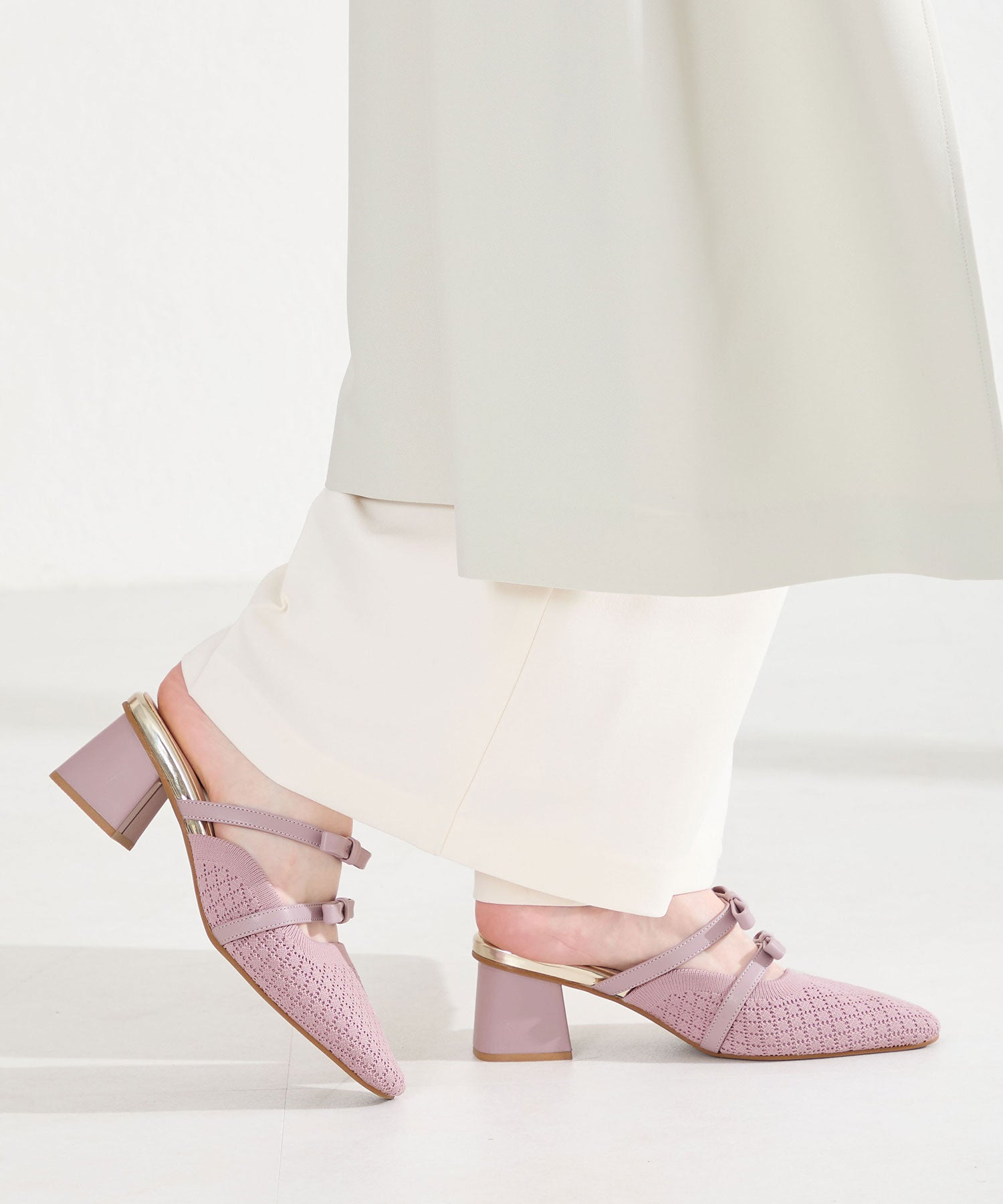 ダブルリボンニットミュールパンプス/61111