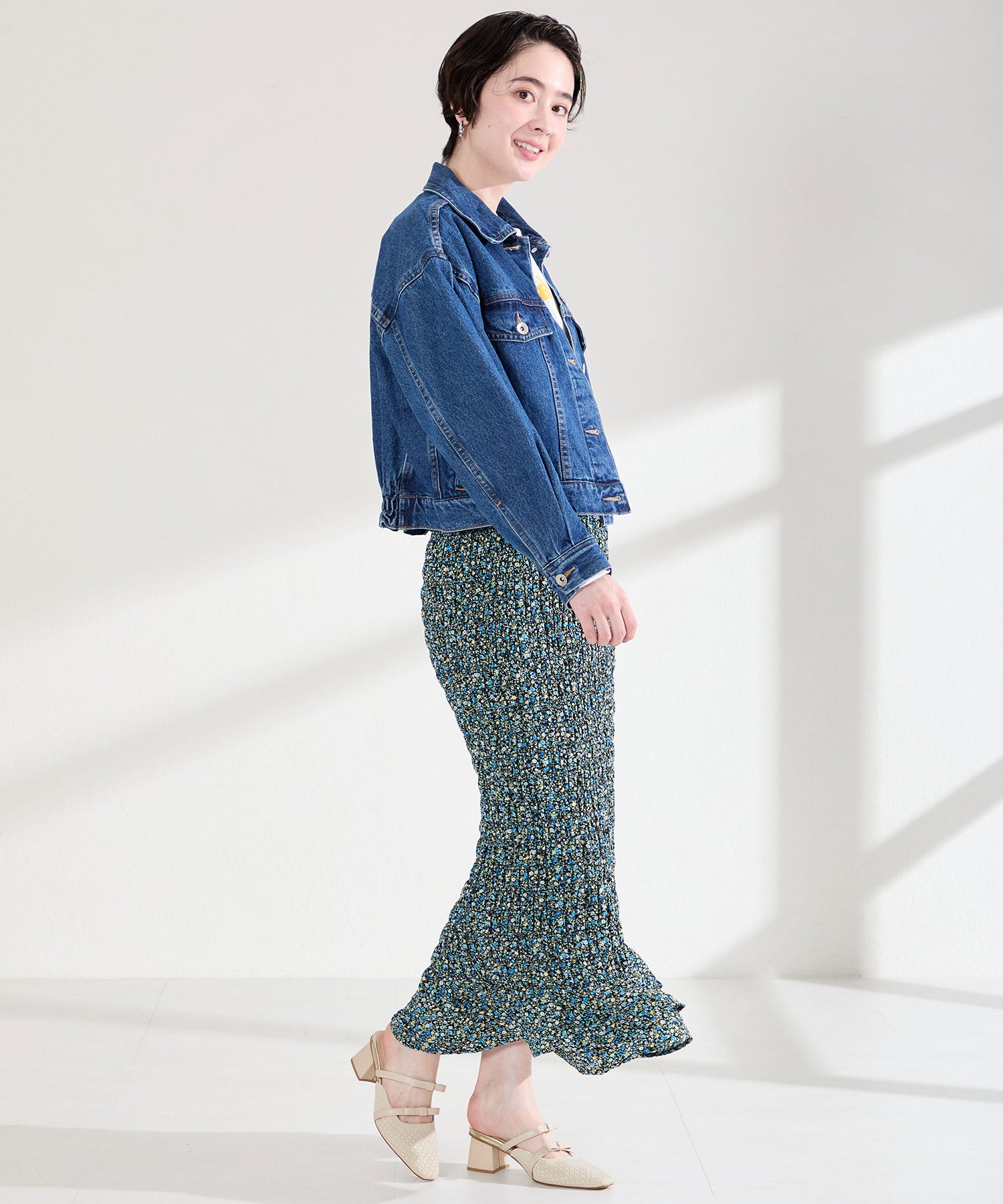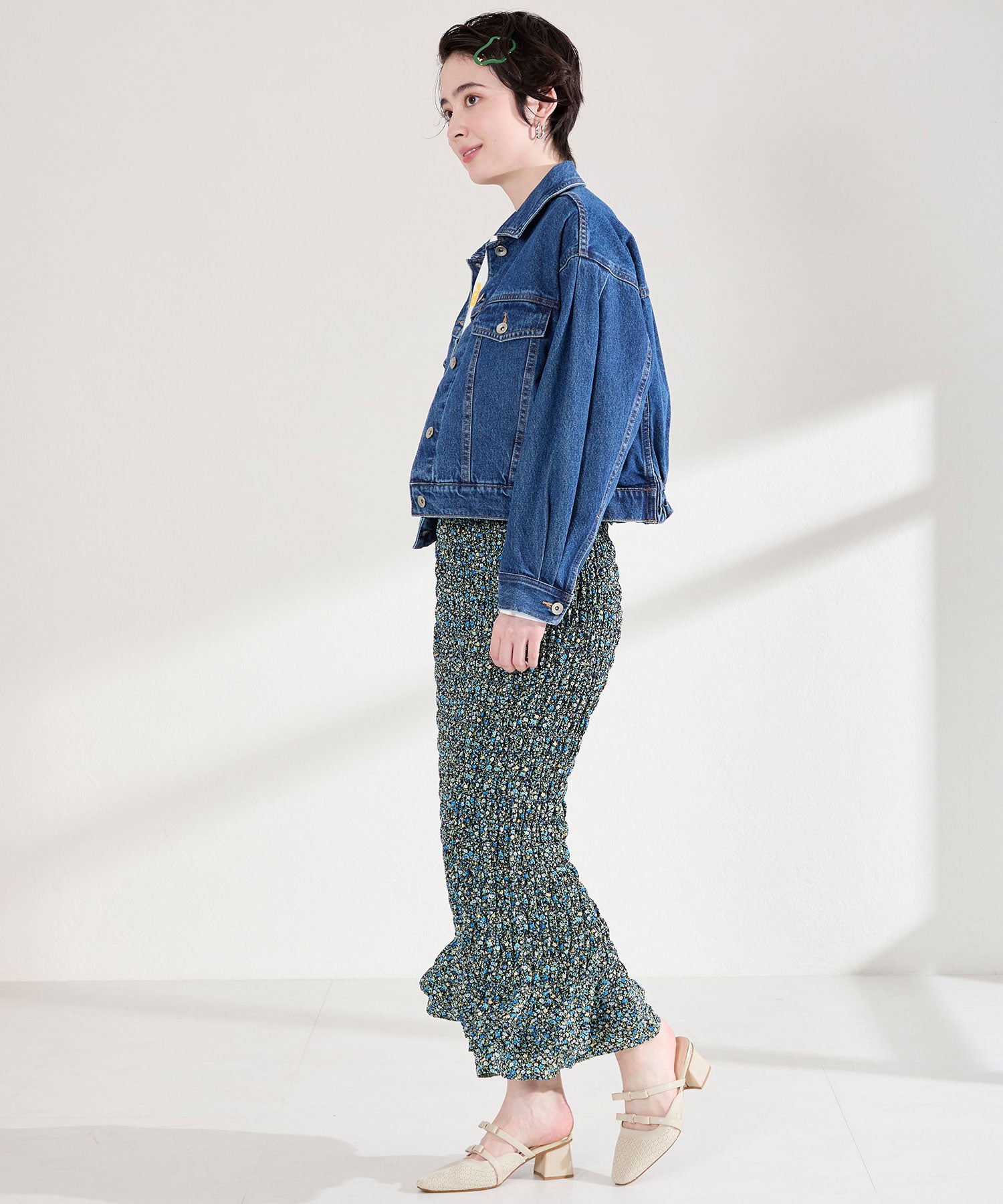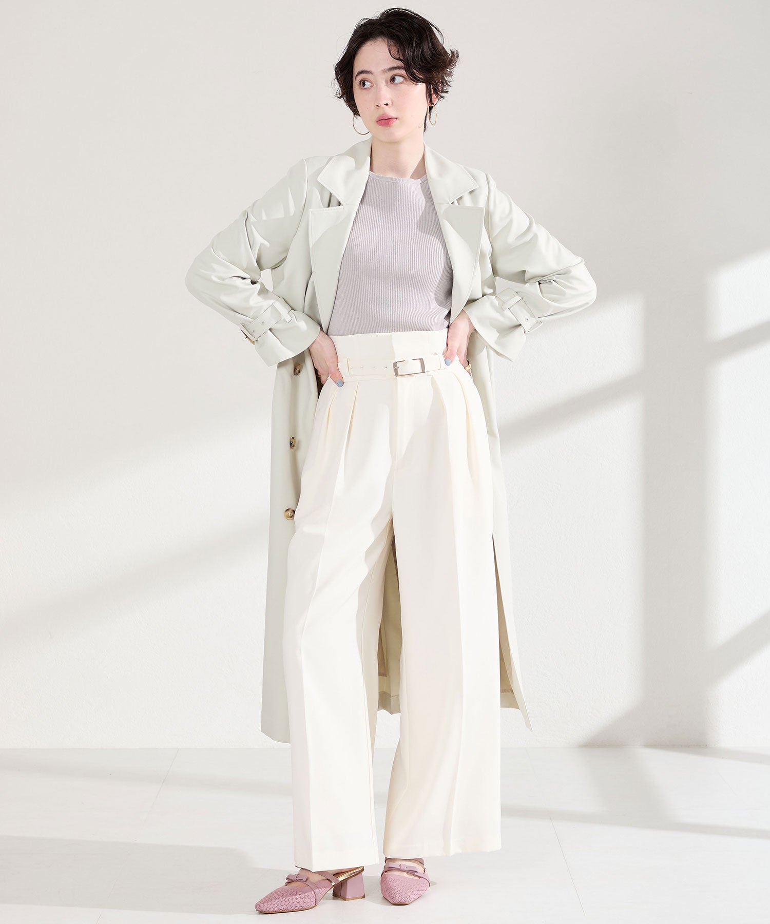 さらっとしたニット素材を使用した女性らしさが際立つミュールパンプスは、ニットを格子状の編地にすることで表情に抜け感をプラス。甲部分のリボンストラップはシンプルながらも程よい甘さをプラスしてくれるだけでなく、2本のストラップがしっかり足をホールドしてくれるので安心の履き心地。ミュールタイプなので脱ぎ履きがしやすく、忙しい日常にもぴったりな1足。