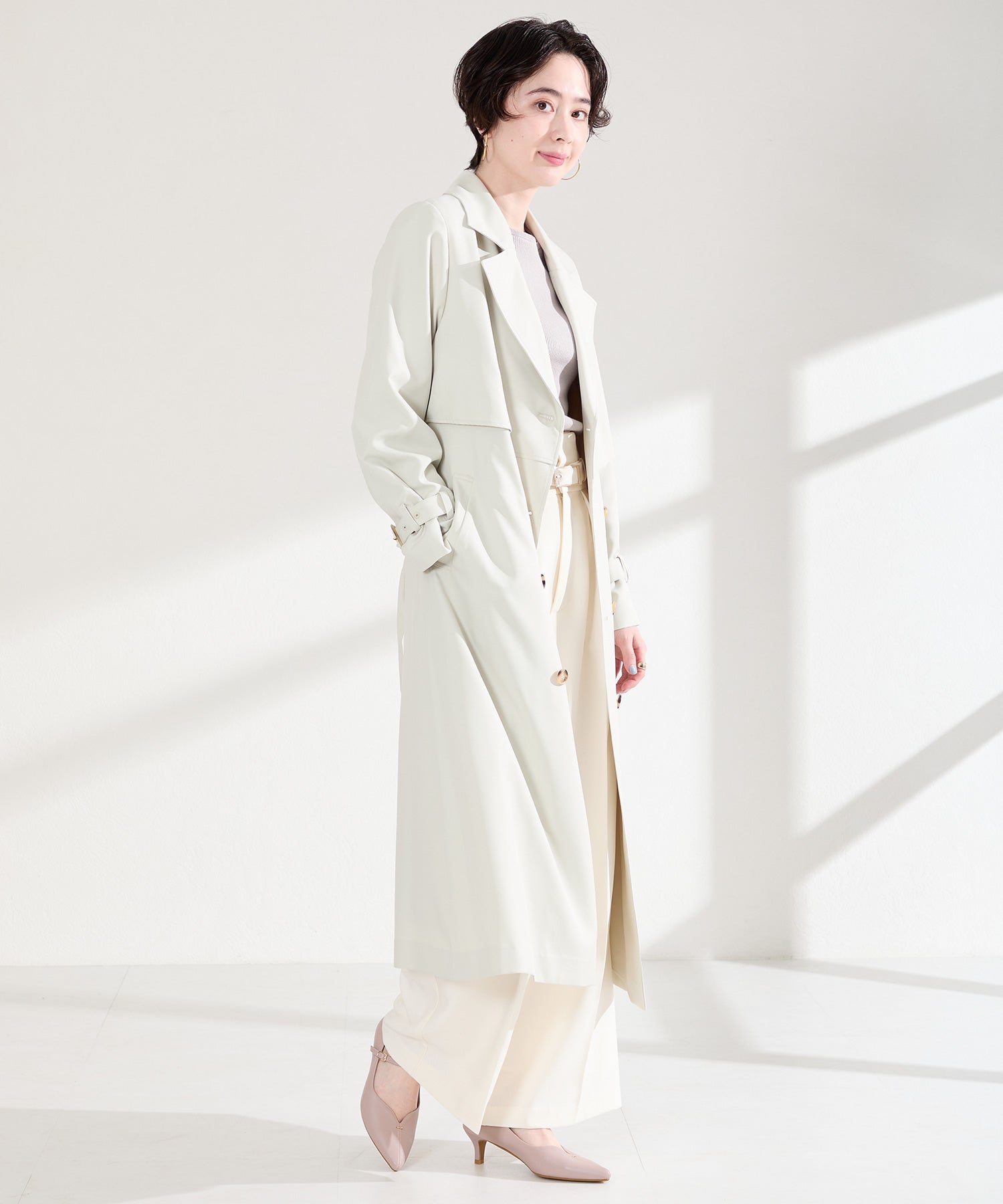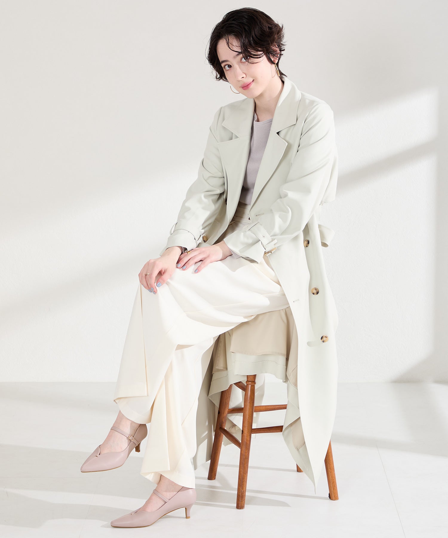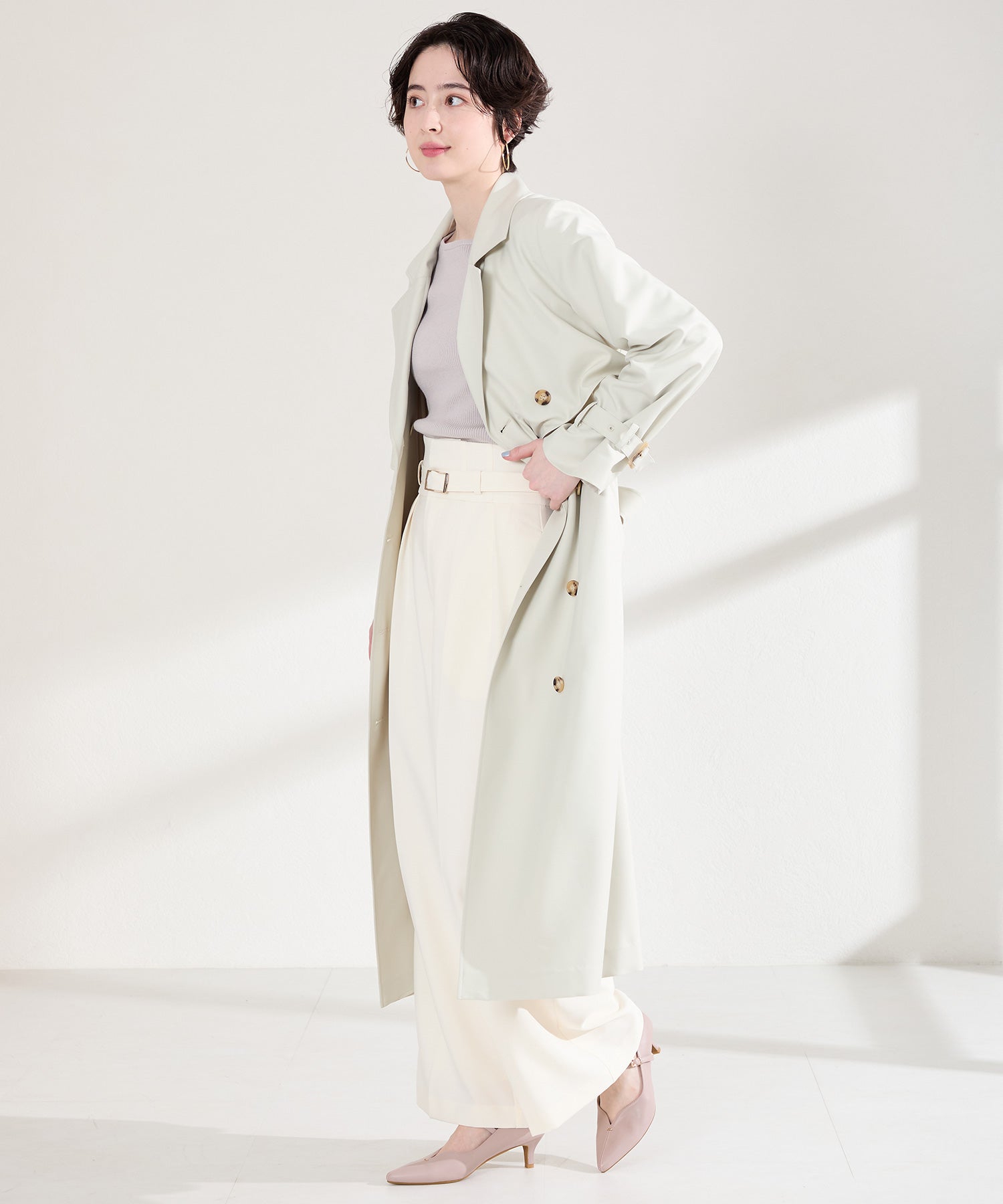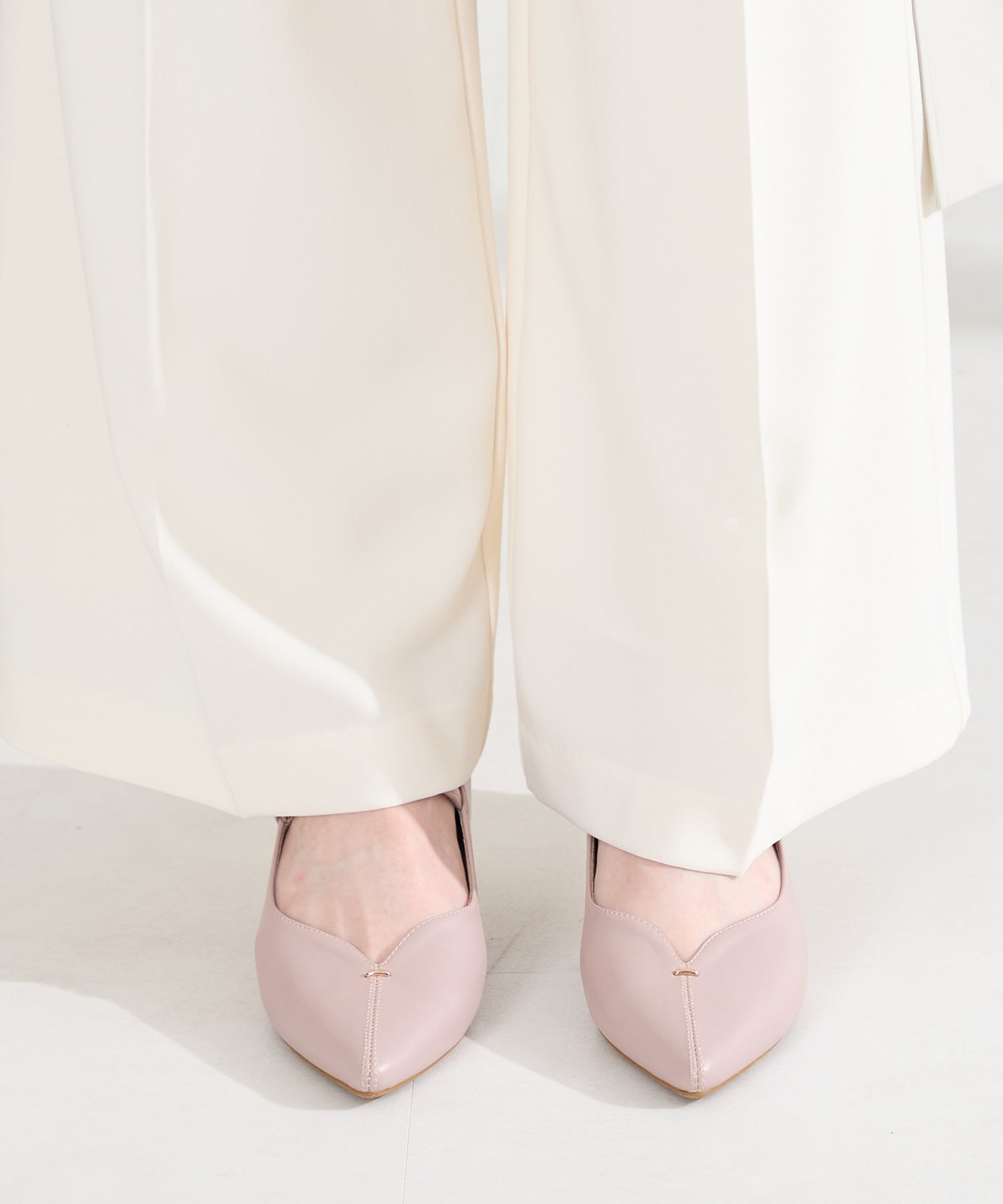 アッパーにメタルパーツとスリットデザインを施した、シンプルながらもアクセントになるパンプス。甲ストラップ付きで足にフィットし、インソールは厚手のクッション入りで長時間履いても疲れにくい。艶ありのヒールが女性らしく、バックシルエットまで抜かりない印象に。淡いベーシックなカラーリングと今季注目のピンクは普段のコーディネートに取り入れるだけで季節感がアップ。