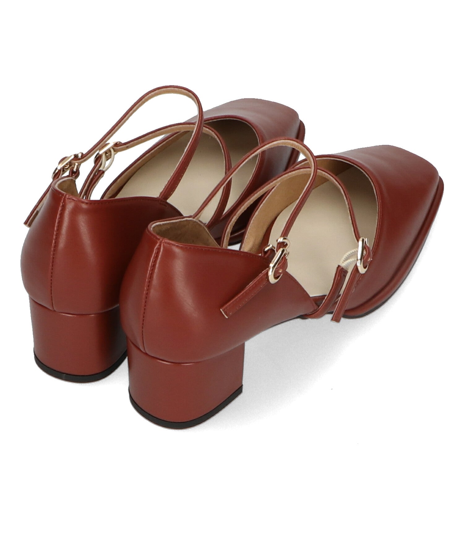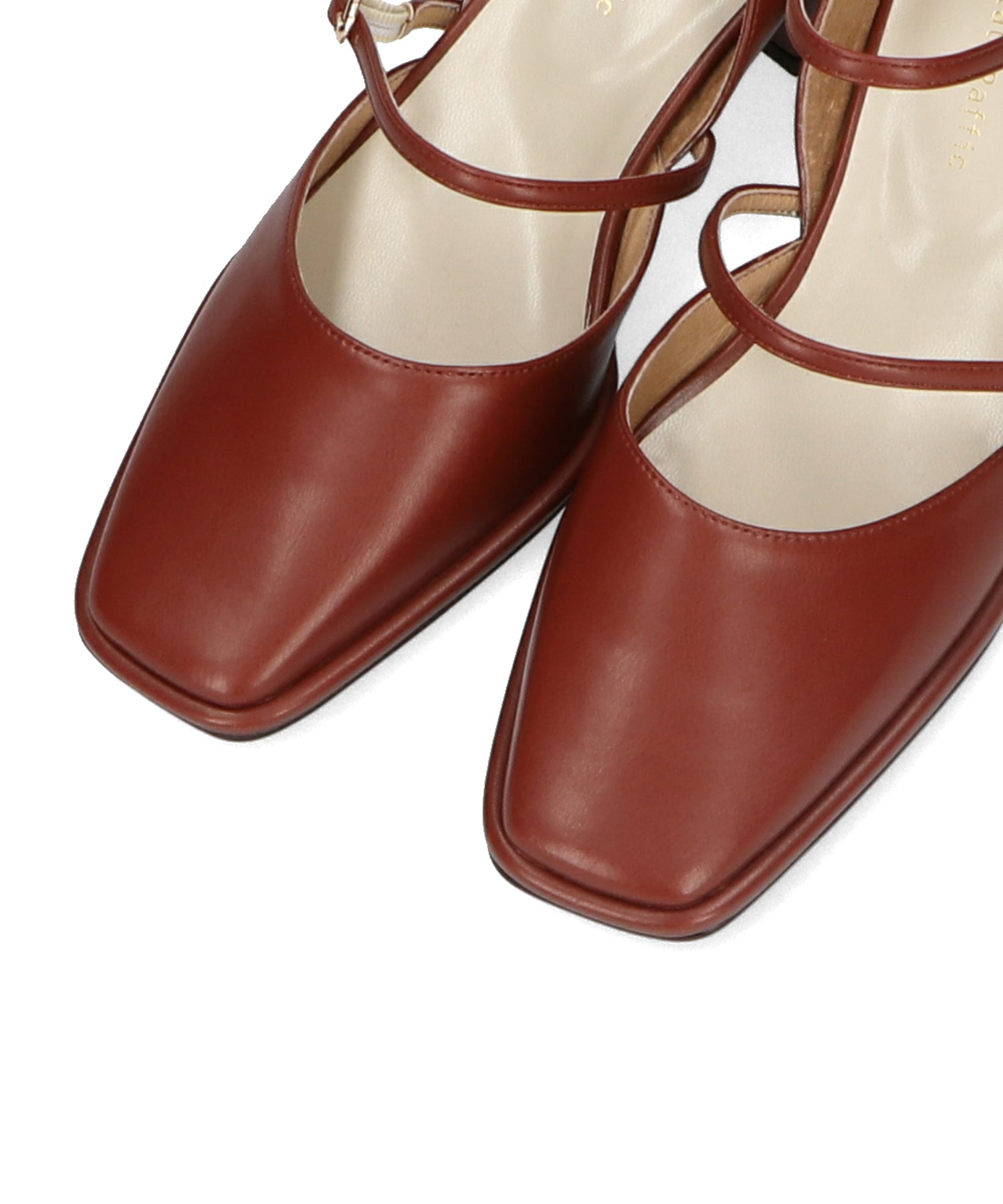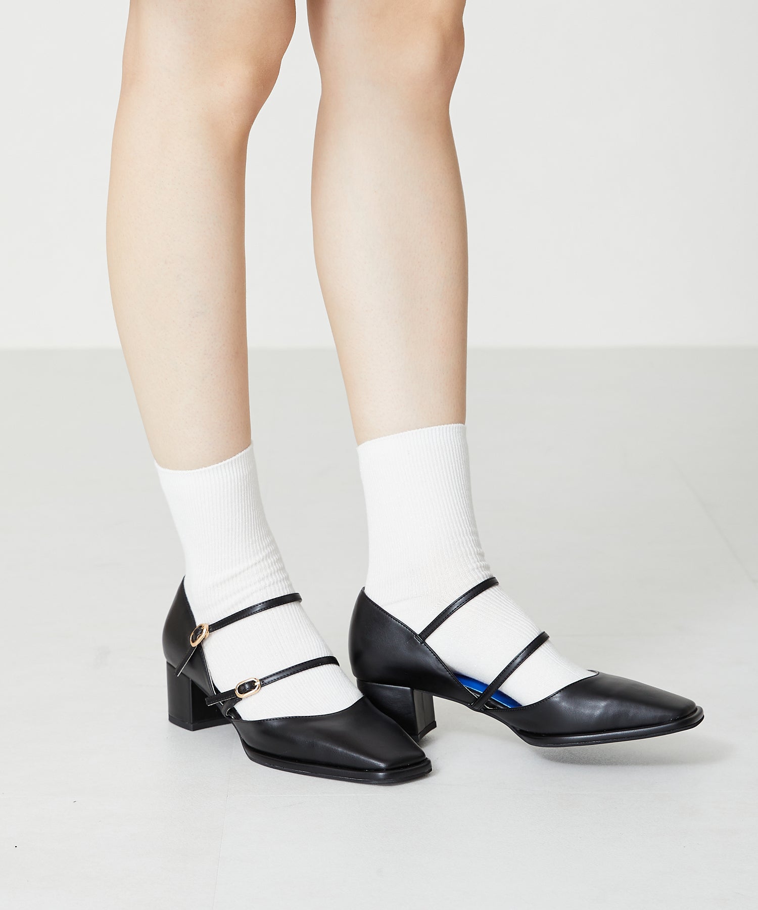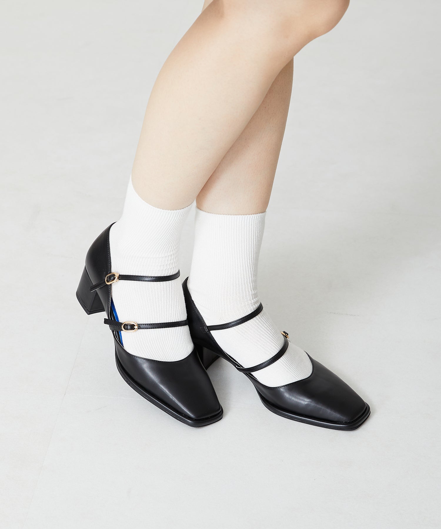 抜け感のあるセパレートデザインと華奢なストラップが足を綺麗に見せてくれるスクエアパンプス。安定感のあるチャンキーヒールと2本のストラップがしっかり足元を支えてくれるので、パンプス初心者でも歩きやすいのが嬉しい。定番のブラック、ホワイトのほかにトレンド感のある落ち着いたトーンのレッドを加えた3色展開で、履くだけでスタイリングがシックにまとまる。