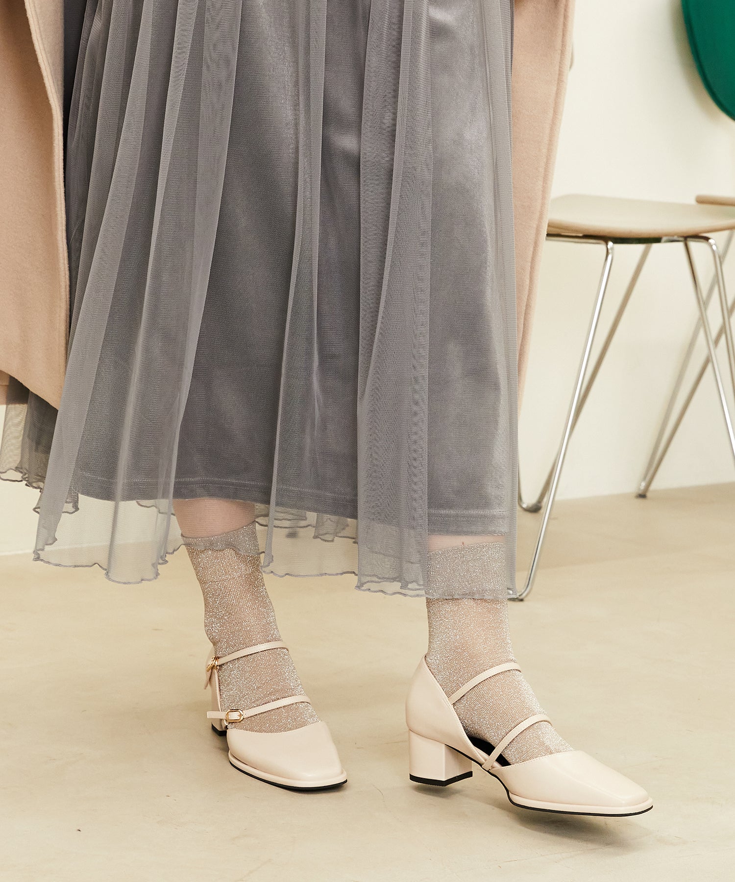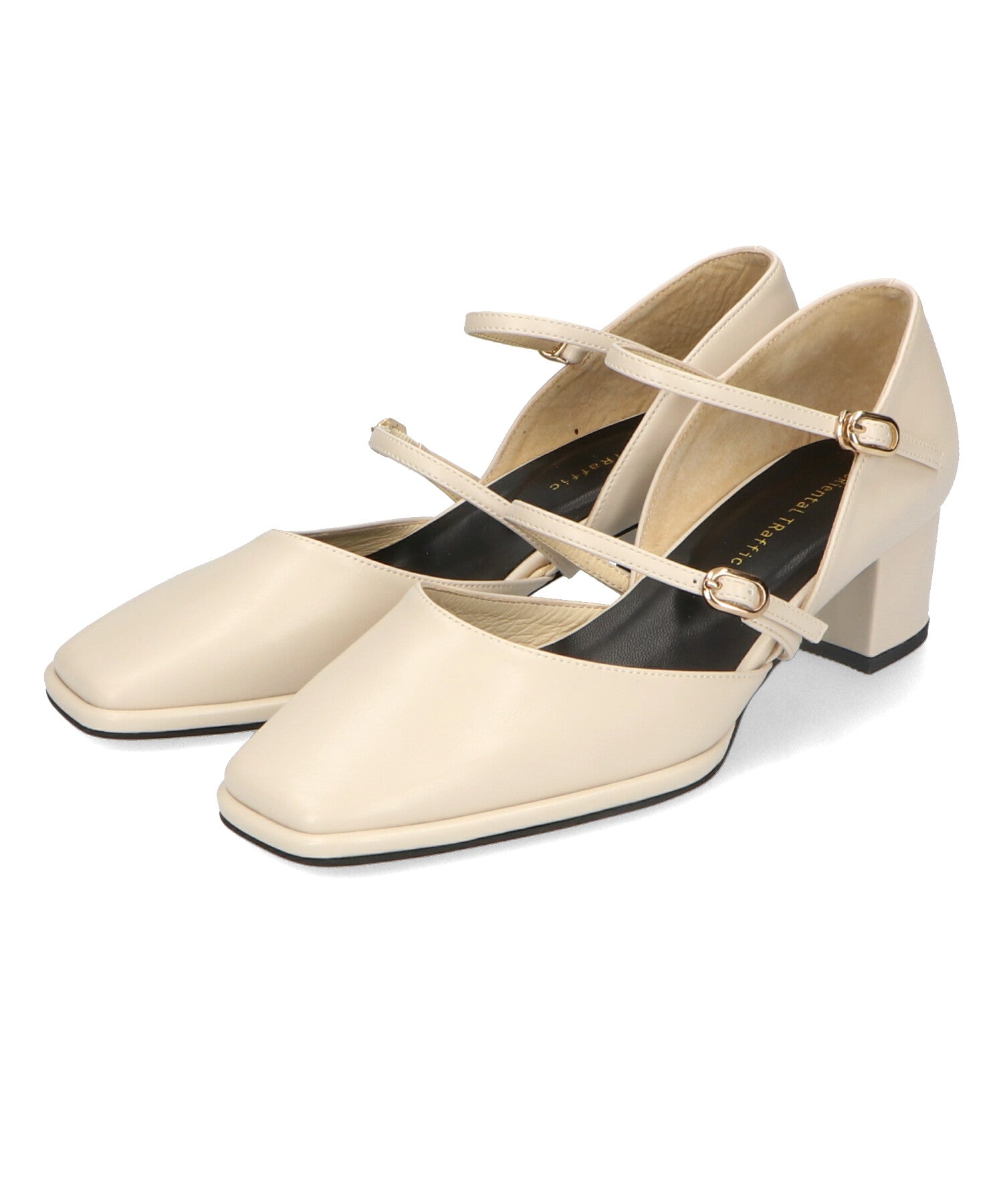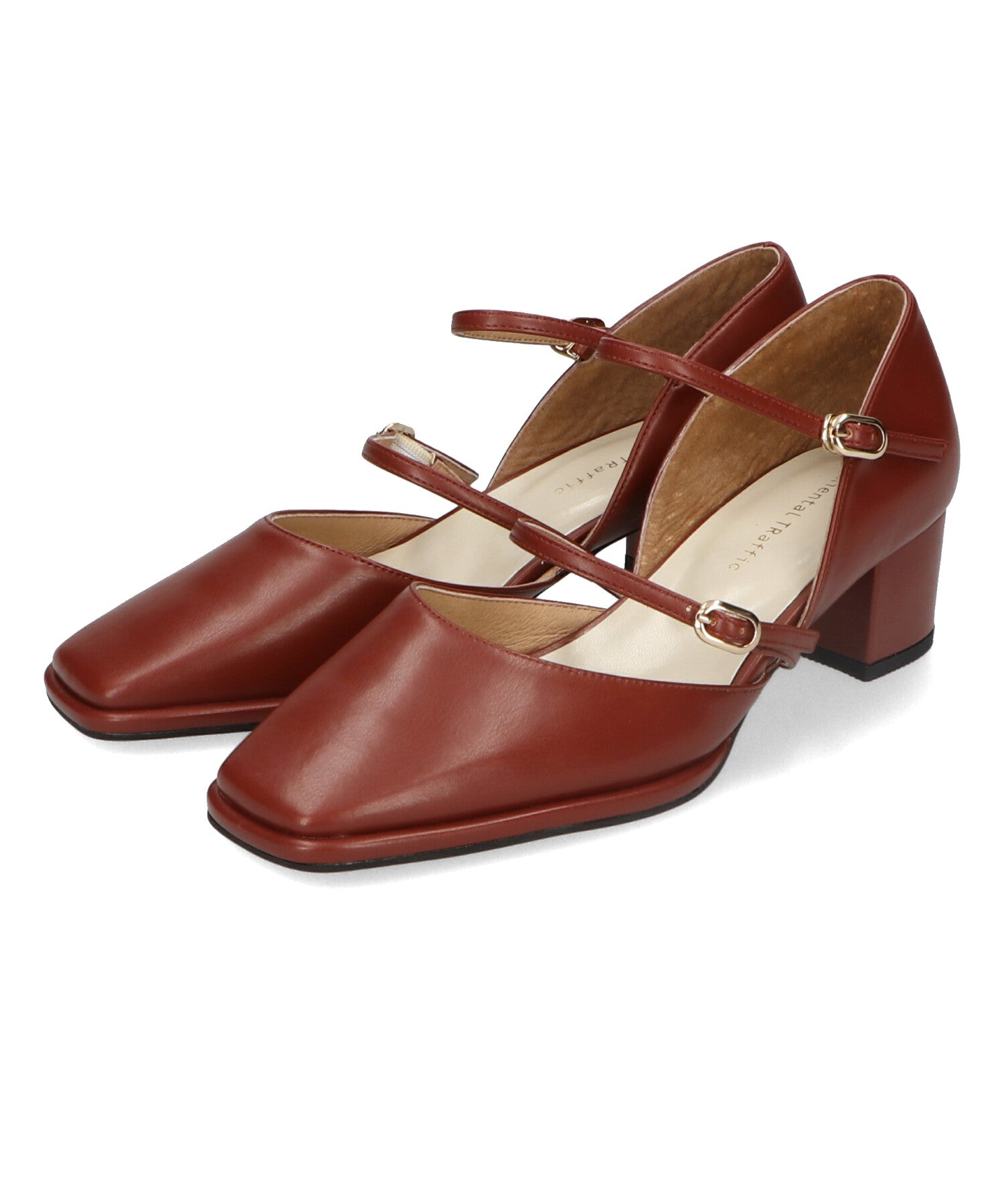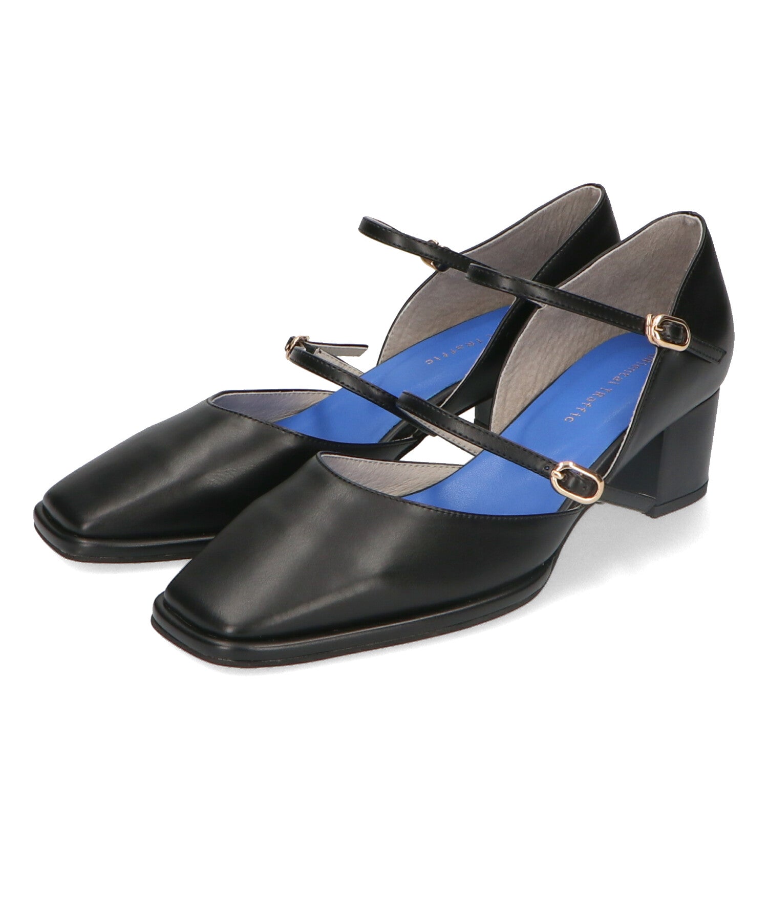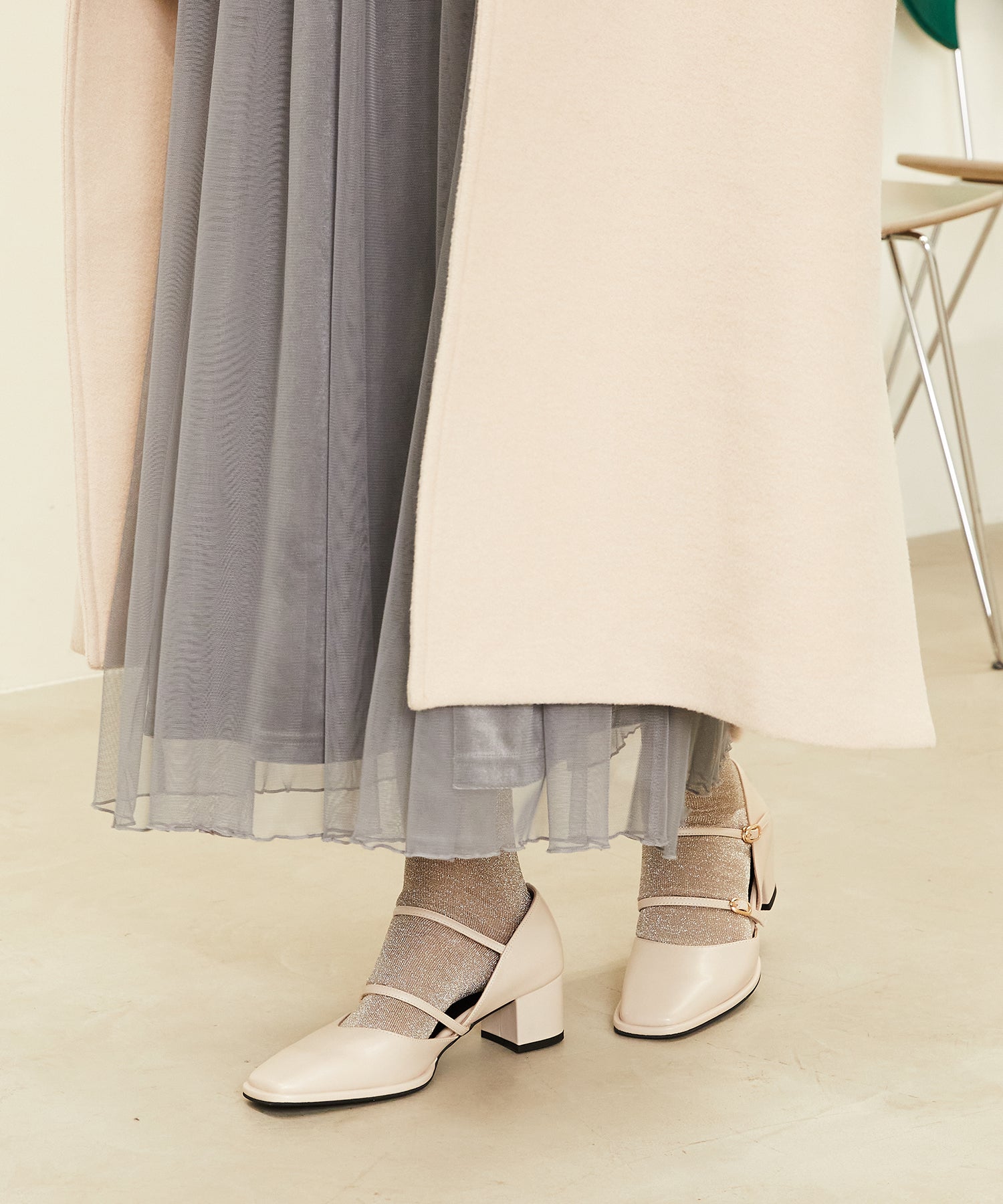 抜け感のあるセパレートデザインと華奢なストラップが足を綺麗に見せてくれるスクエアパンプス。安定感のあるチャンキーヒールと2本のストラップがしっかり足元を支えてくれるので、パンプス初心者でも歩きやすいのが嬉しい。定番のブラック、ホワイトのほかにトレンド感のある落ち着いたトーンのレッドを加えた3色展開で、履くだけでスタイリングがシックにまとまる。