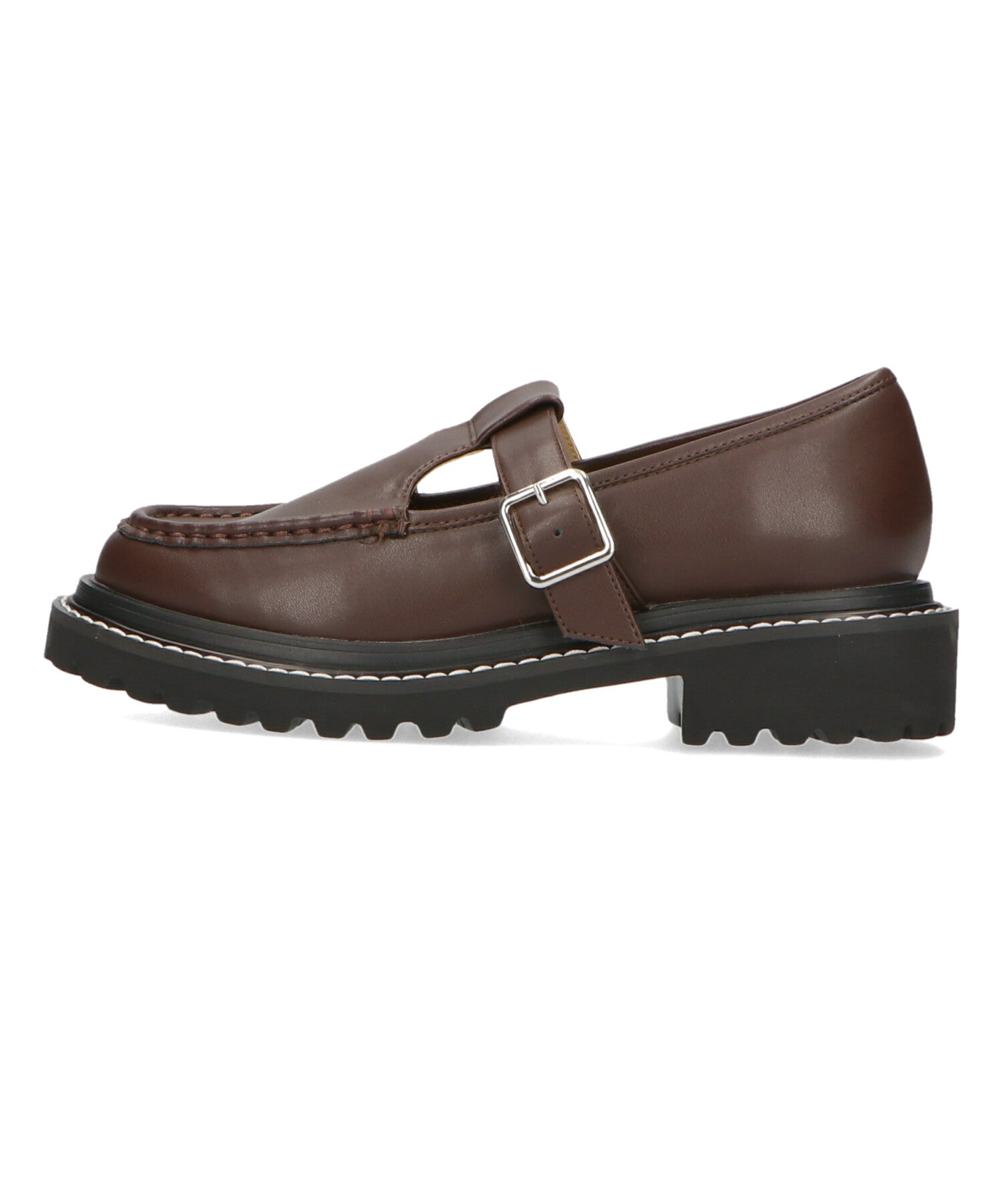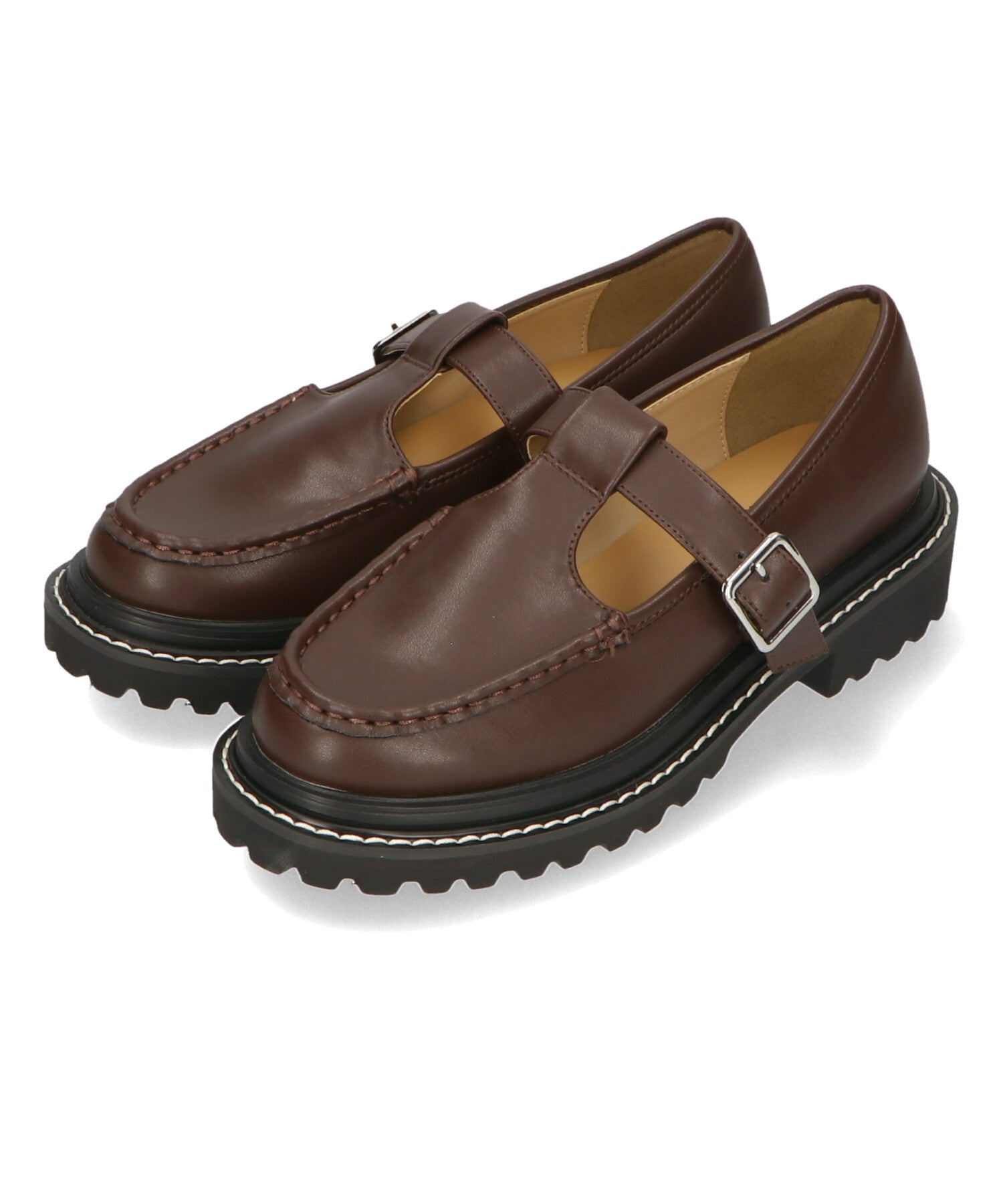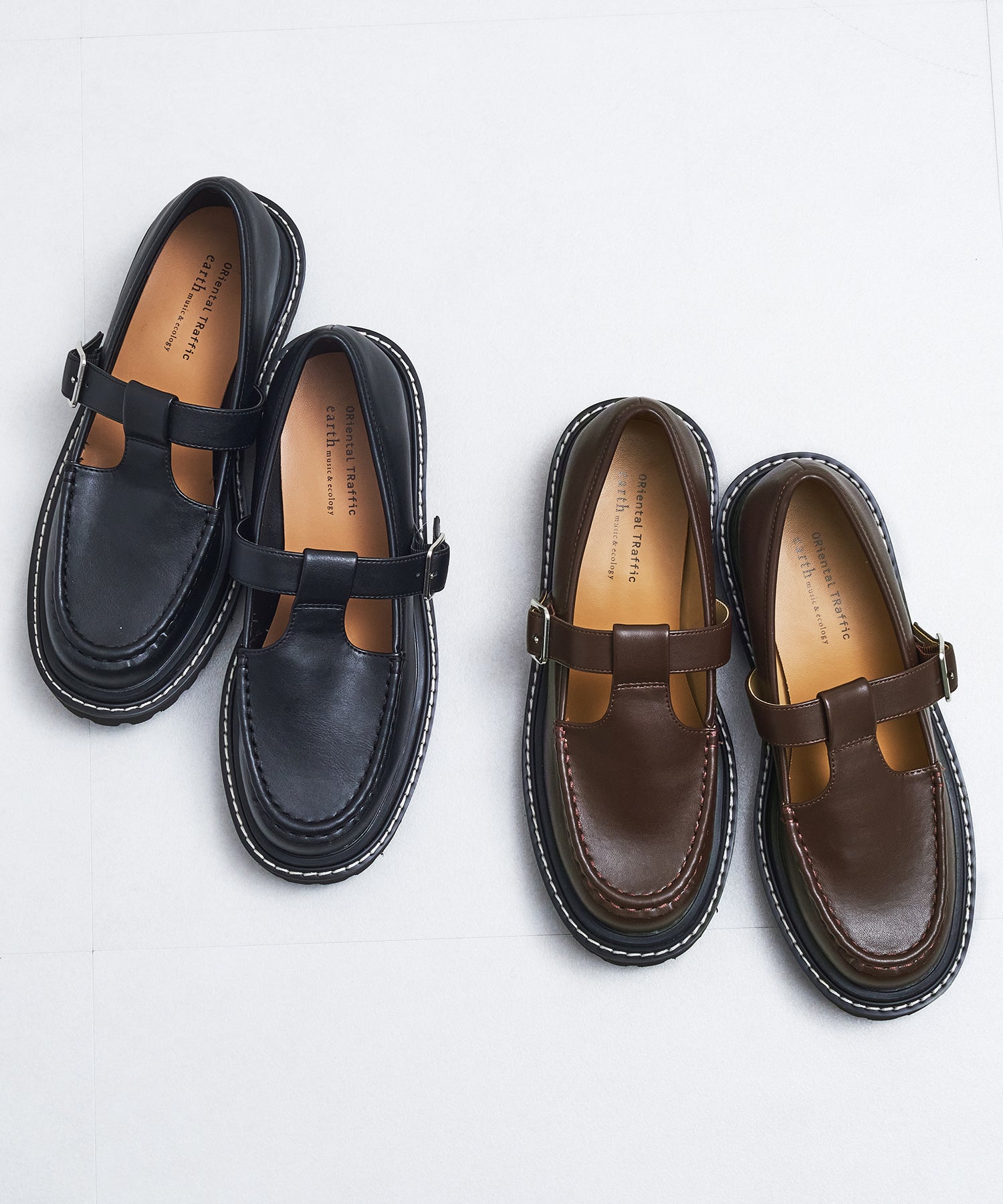 マニッシュなデザインが目を引くTストラップシューズは、旬の厚底トラックソールでボリュームをプラスしてクラシカルすぎない印象に。甲ベルトには隠しゴムが付いているので、外さずにそのまま履ける嬉しい仕様。ソールのステッチがさりげないアクセントになっており、細部まで抜かりないデザイン。ソックスとの相性がいいので柄やカラーソックスと合わせて履きたい1足。