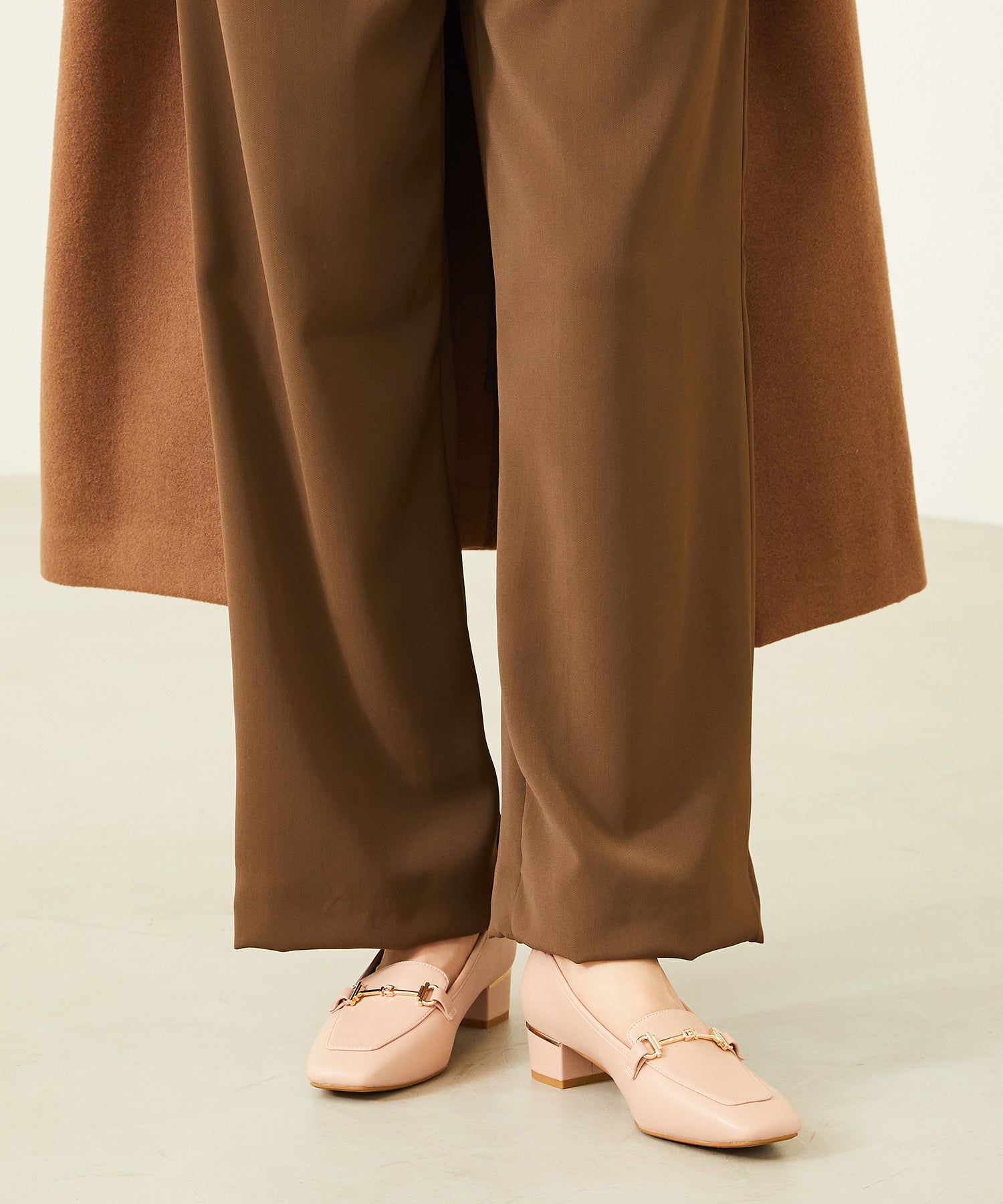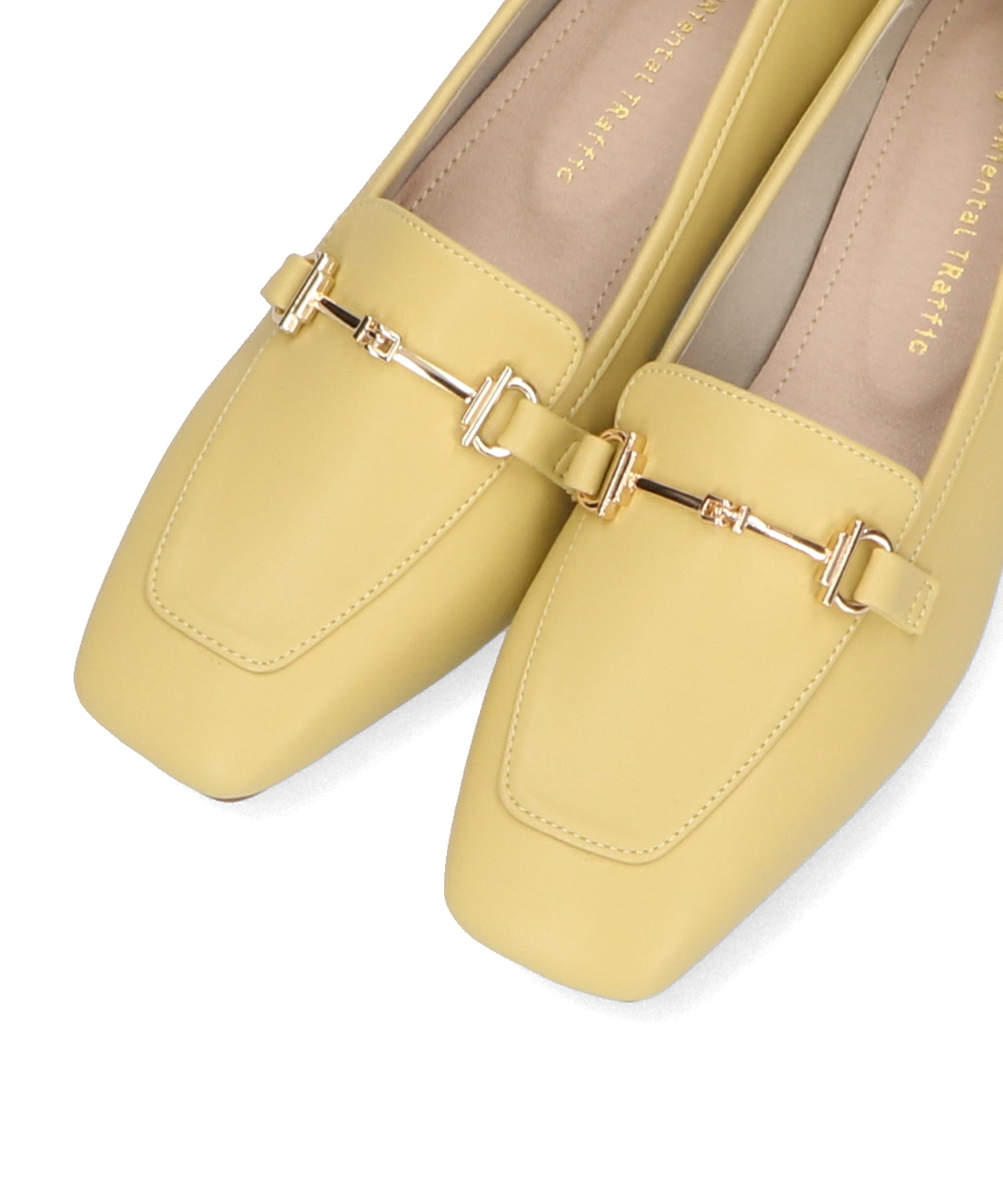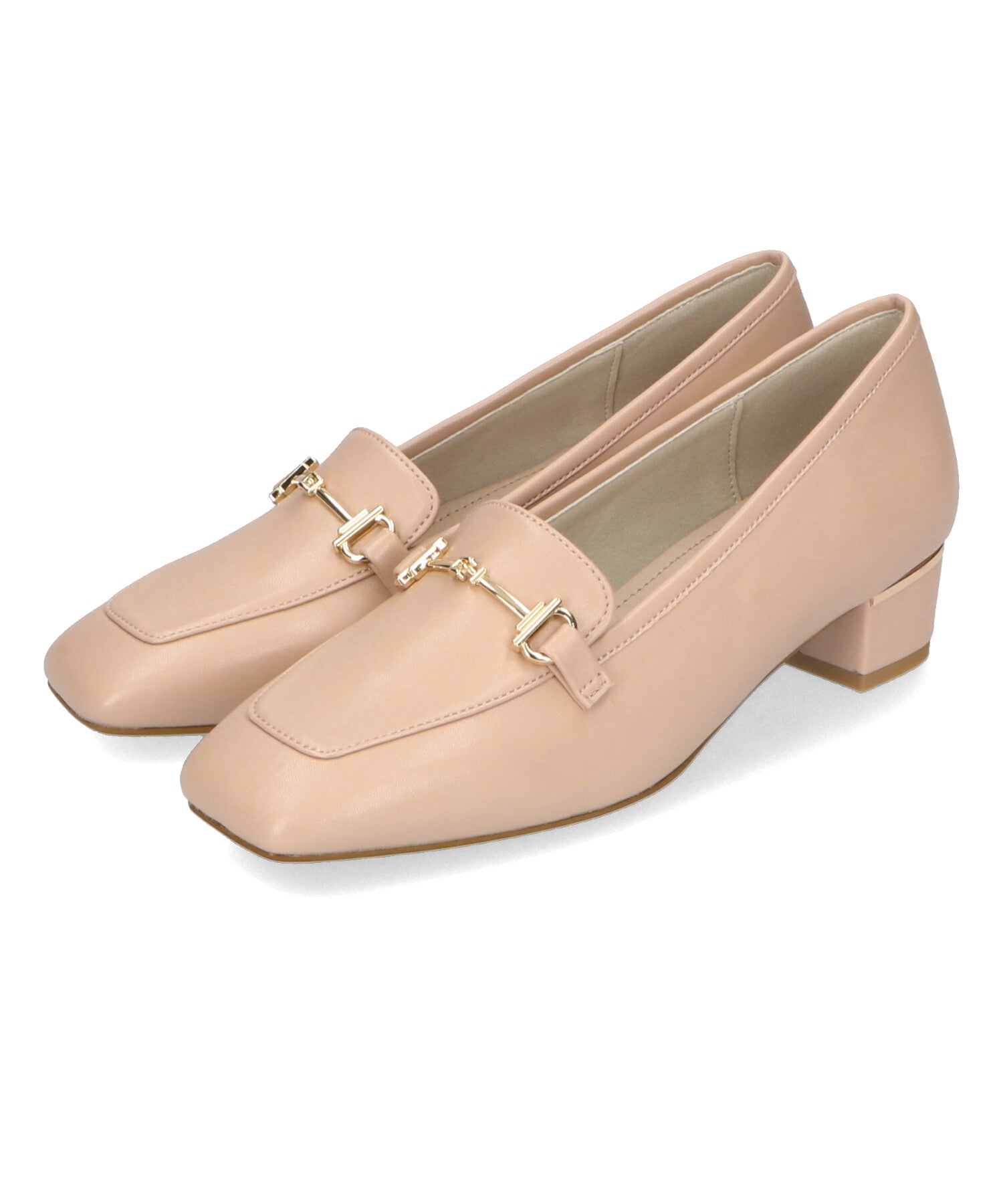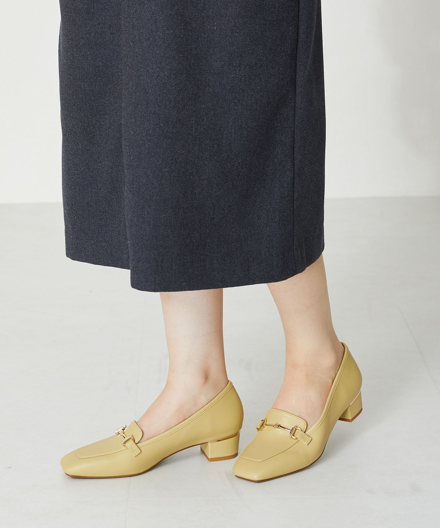 高級感のあるゴールドのビットモチーフとスクエアトゥのシルエットが上品なローファーは、メタリックラインを施したヒールと、すっきりとしたシルエットで女性らしさをアップ。脱げにくい深さの履き口と安定感のあるローヒールで、普段ヒールを履かない方でも挑戦しやすいアイテム。歩行時の負担を軽減してくれる厚手クッション入りなのも嬉しい。全色集めたくなるカラー展開も◎。
