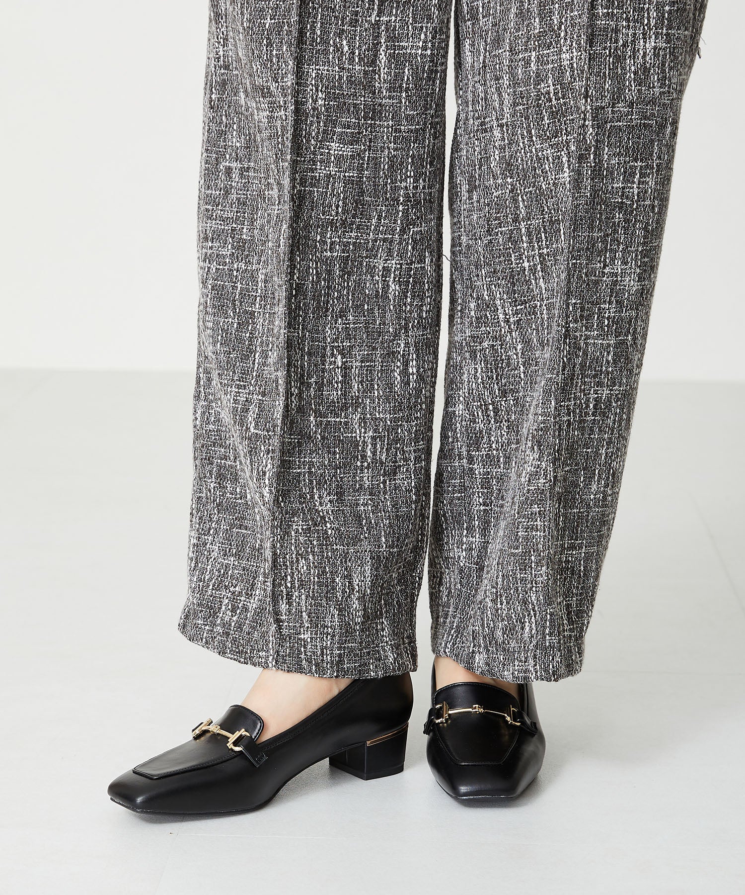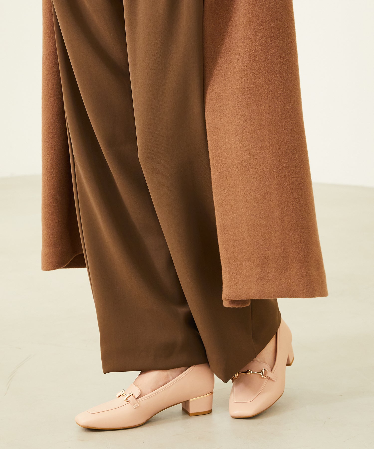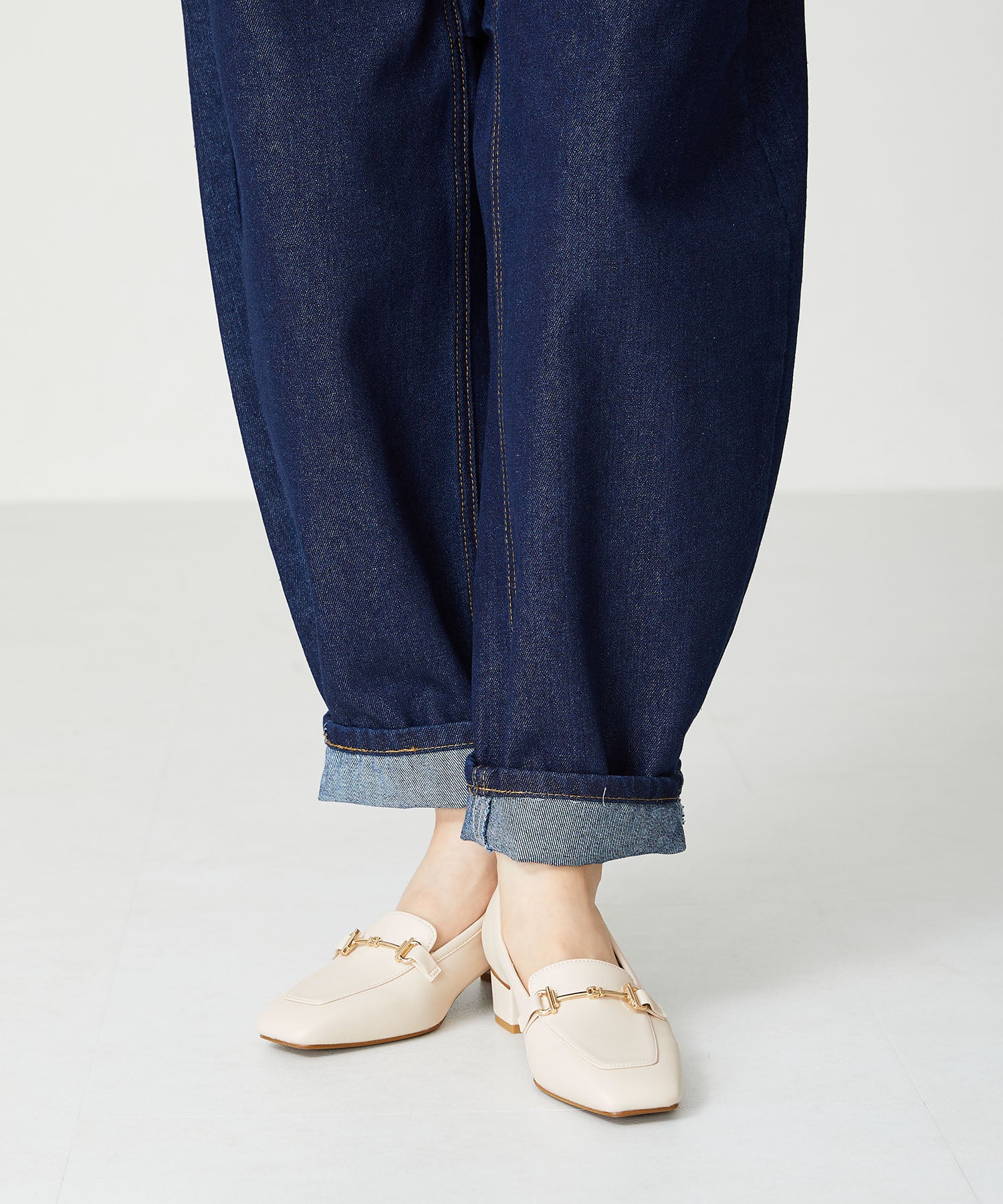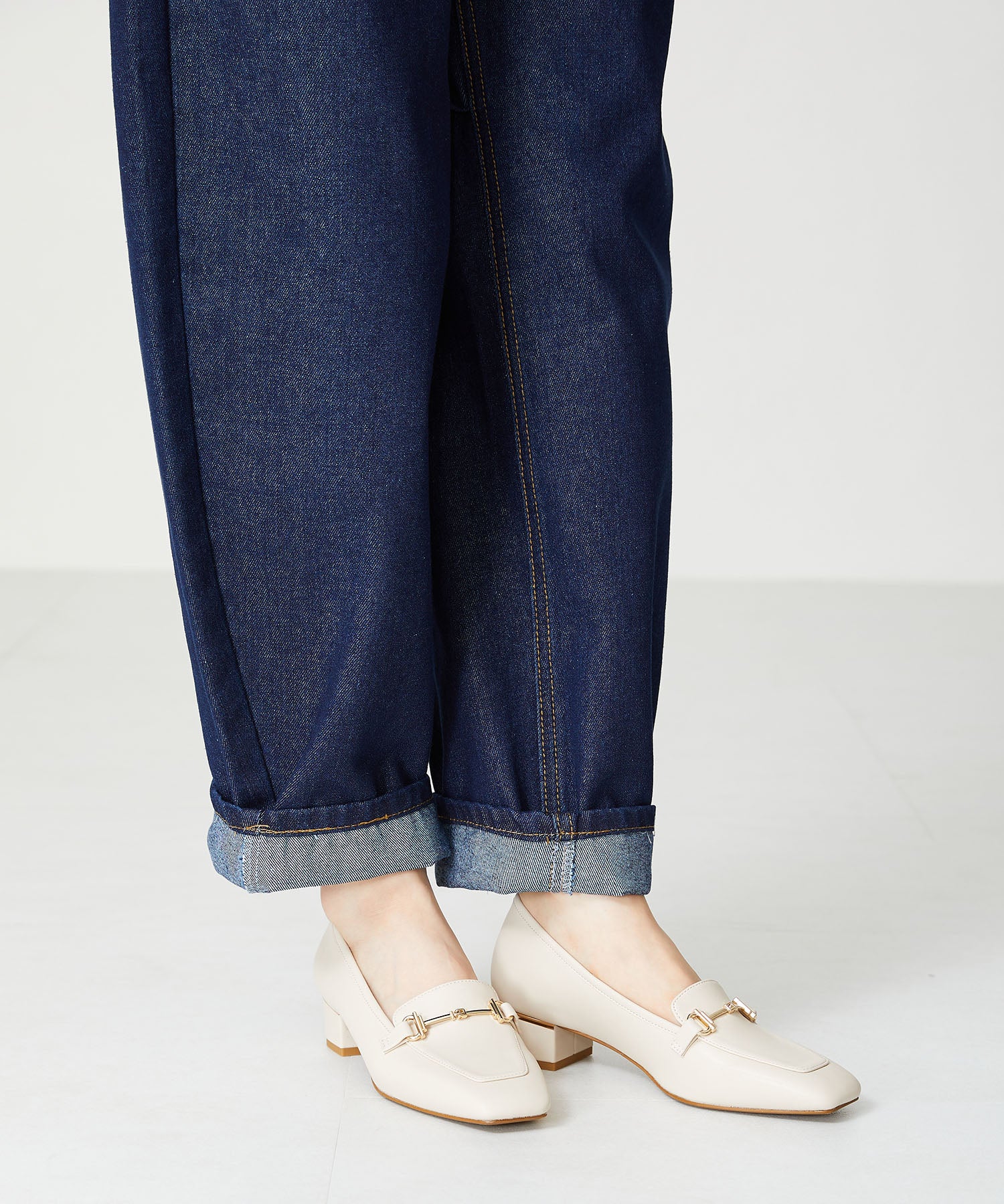 高級感のあるゴールドのビットモチーフとスクエアトゥのシルエットが上品なローファーは、メタリックラインを施したヒールと、すっきりとしたシルエットで女性らしさをアップ。脱げにくい深さの履き口と安定感のあるローヒールで、普段ヒールを履かない方でも挑戦しやすいアイテム。歩行時の負担を軽減してくれる厚手クッション入りなのも嬉しい。全色集めたくなるカラー展開も◎。