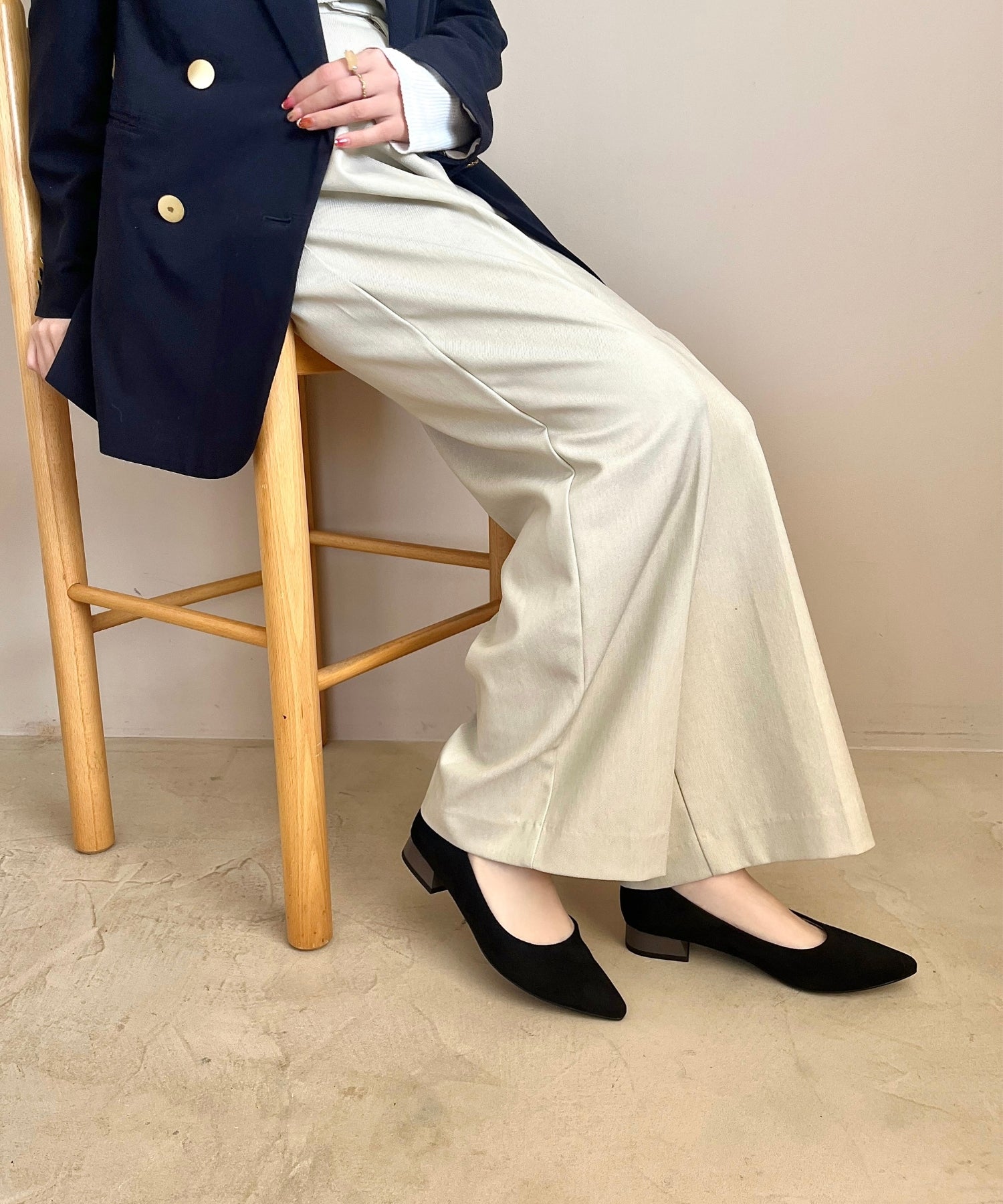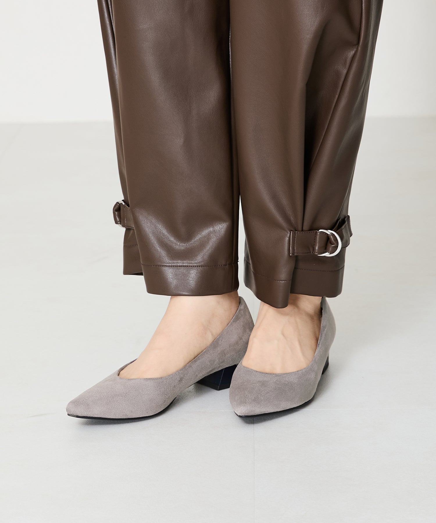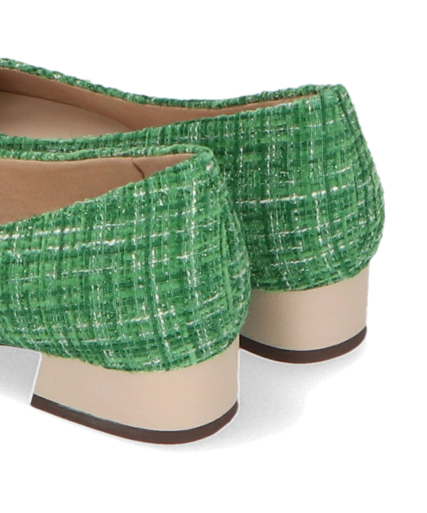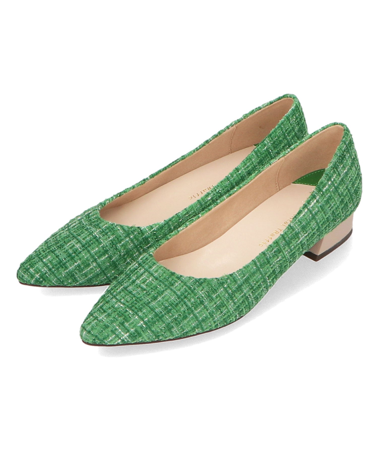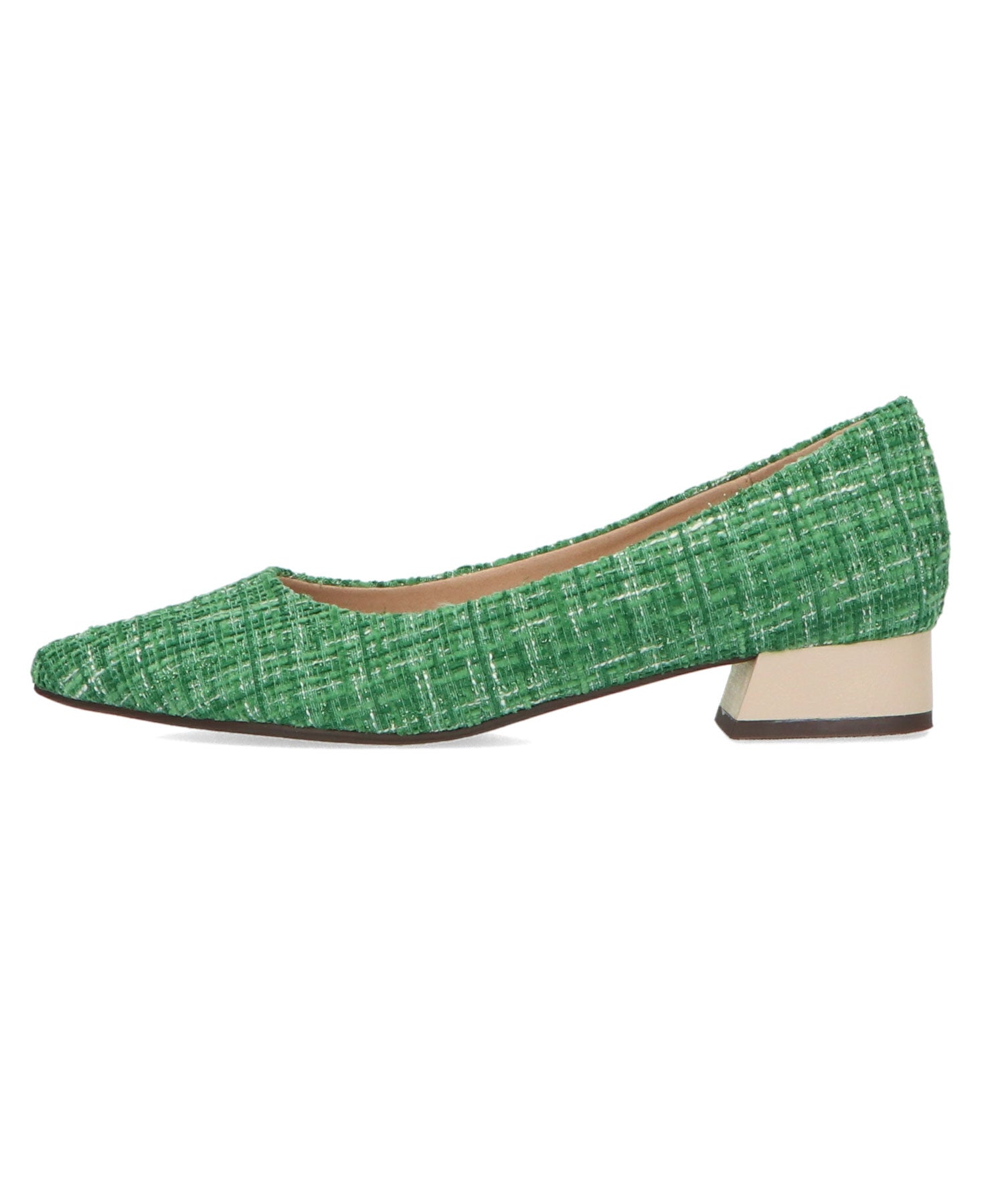 一見シンプルながらもスタイリッシュなポインテッドトゥの形に、艶を抑えたマットな台形ヒールがお洒落見えするパンプス。足裏を包み込む厚手のインソールクッションで疲れにくく、お仕事用にも活躍すること間違いなし。ヒールのカラーを、ブラックはグレー、グレーはネイビー、グリーンはベージュと、全て異なる配色にすることでさりげない遊び心をオン。