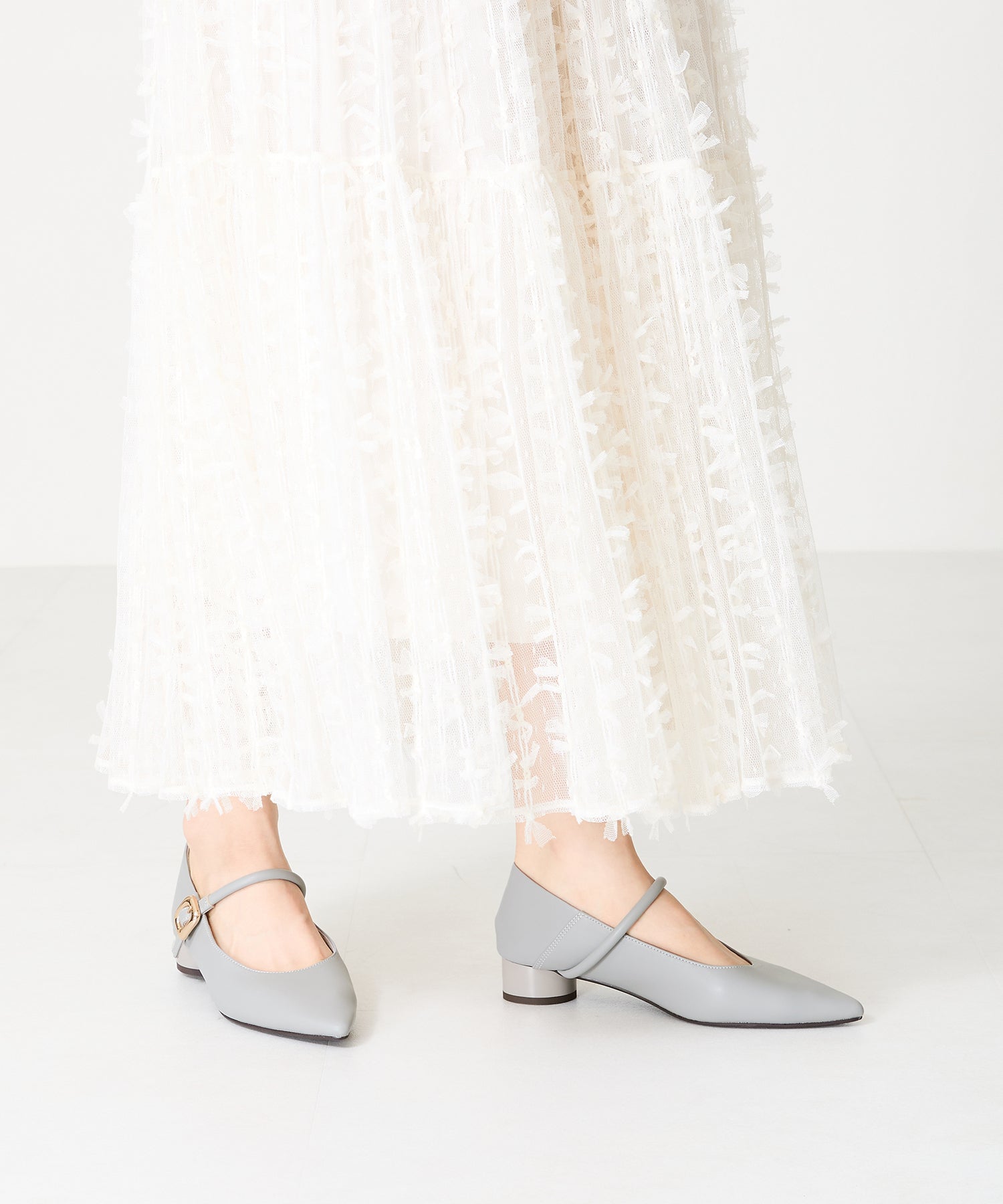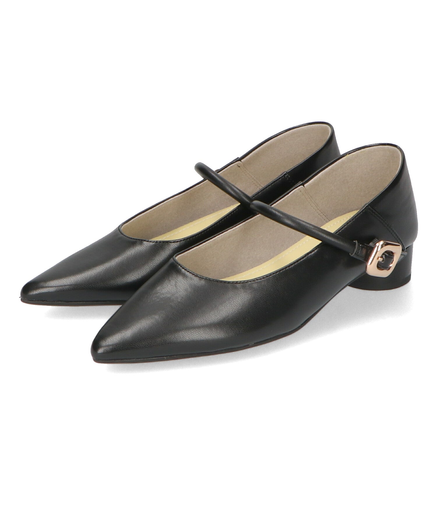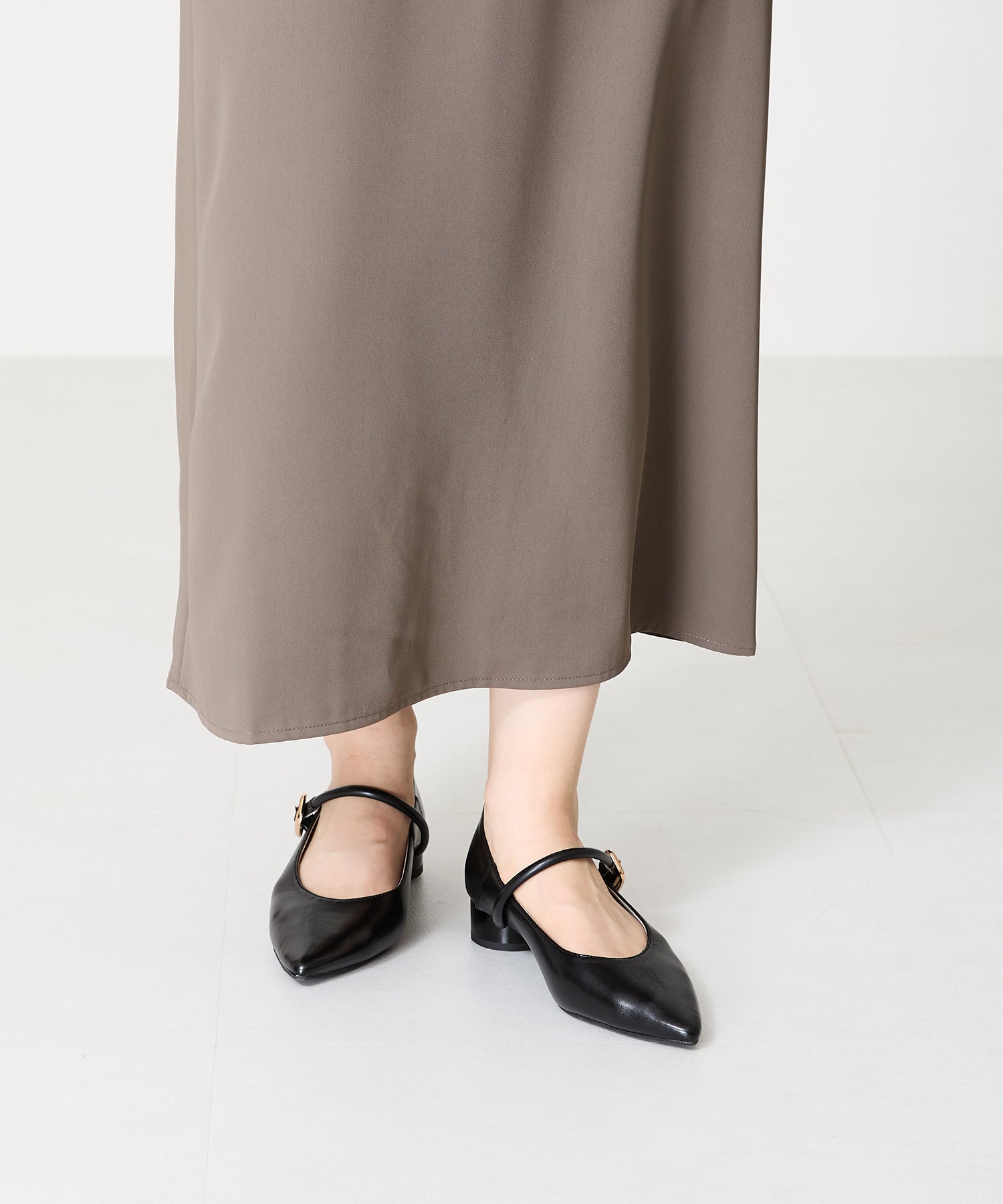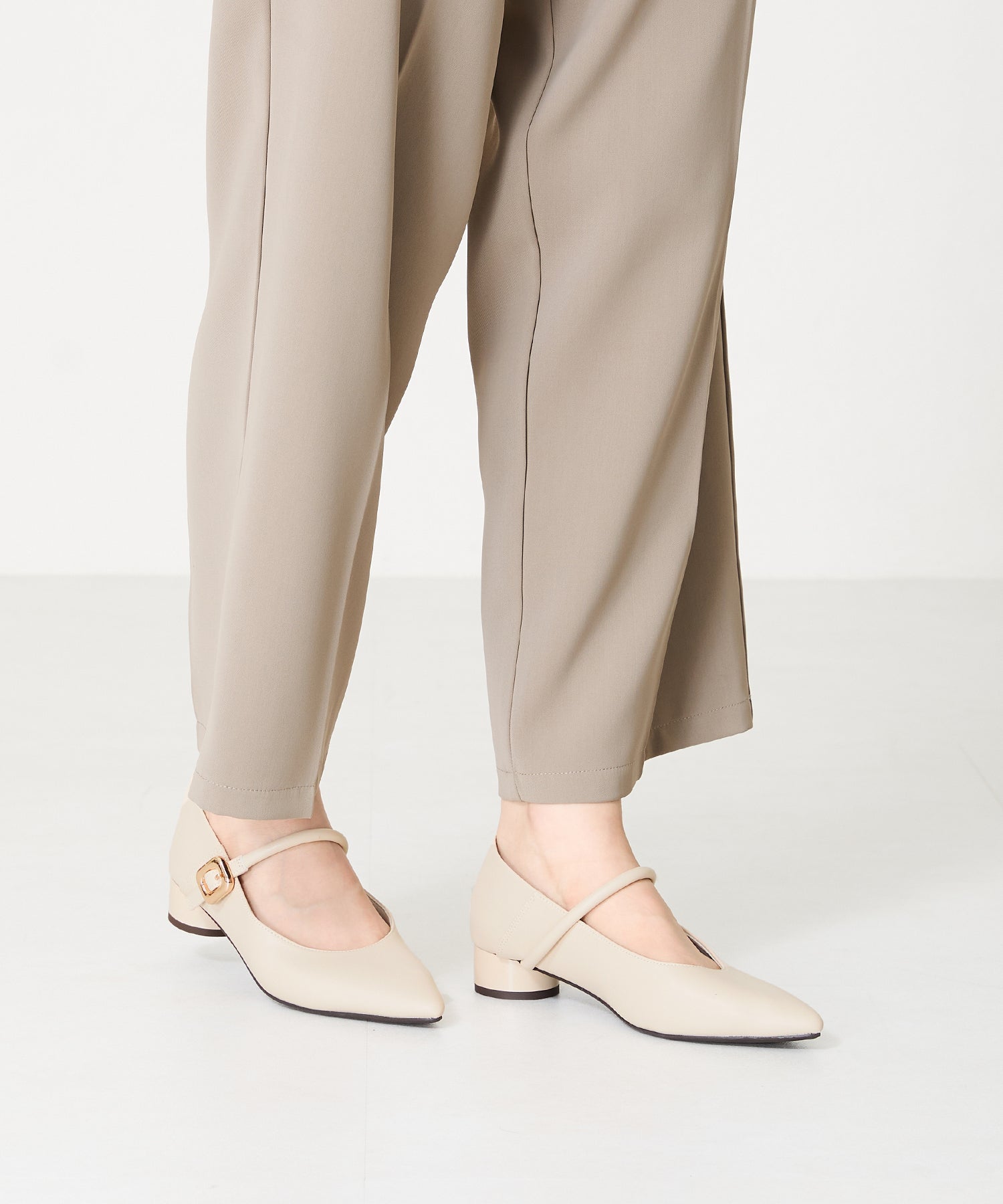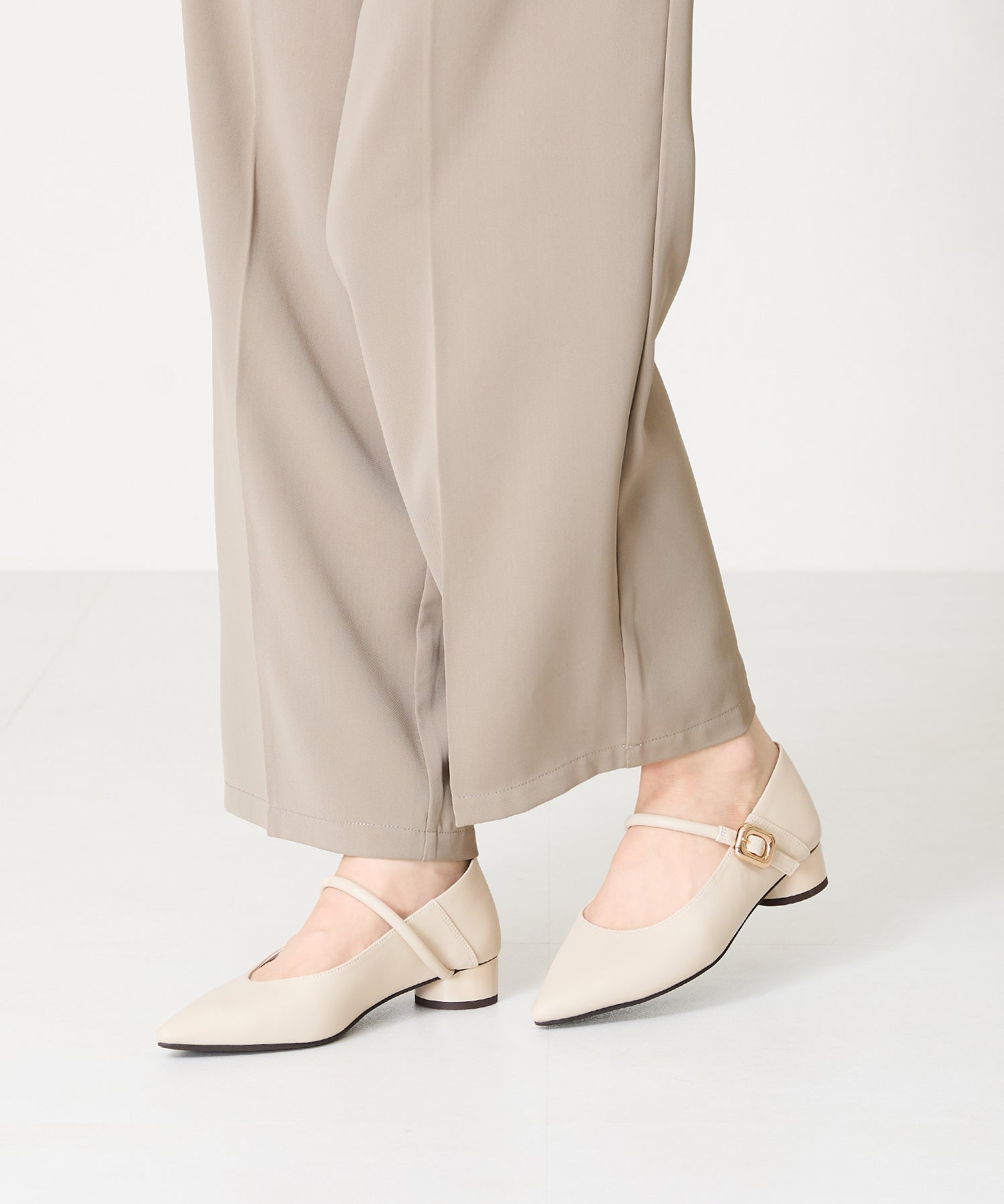 チューブ状のストラップに、厚手の中敷クッション入りで履き心地にとことんこだわったアイテム。艶のある円柱ヒールや、ぷっくりとした大きめのバックルモチーフなどシンプルながらも程よく存在感のある1足。旬なポインテッドトゥで低めのヒールでもすっきりとした印象を与えてくれて、踵を踏んでも履けるバブーシュデザインと2wayで楽しめる優れもの。