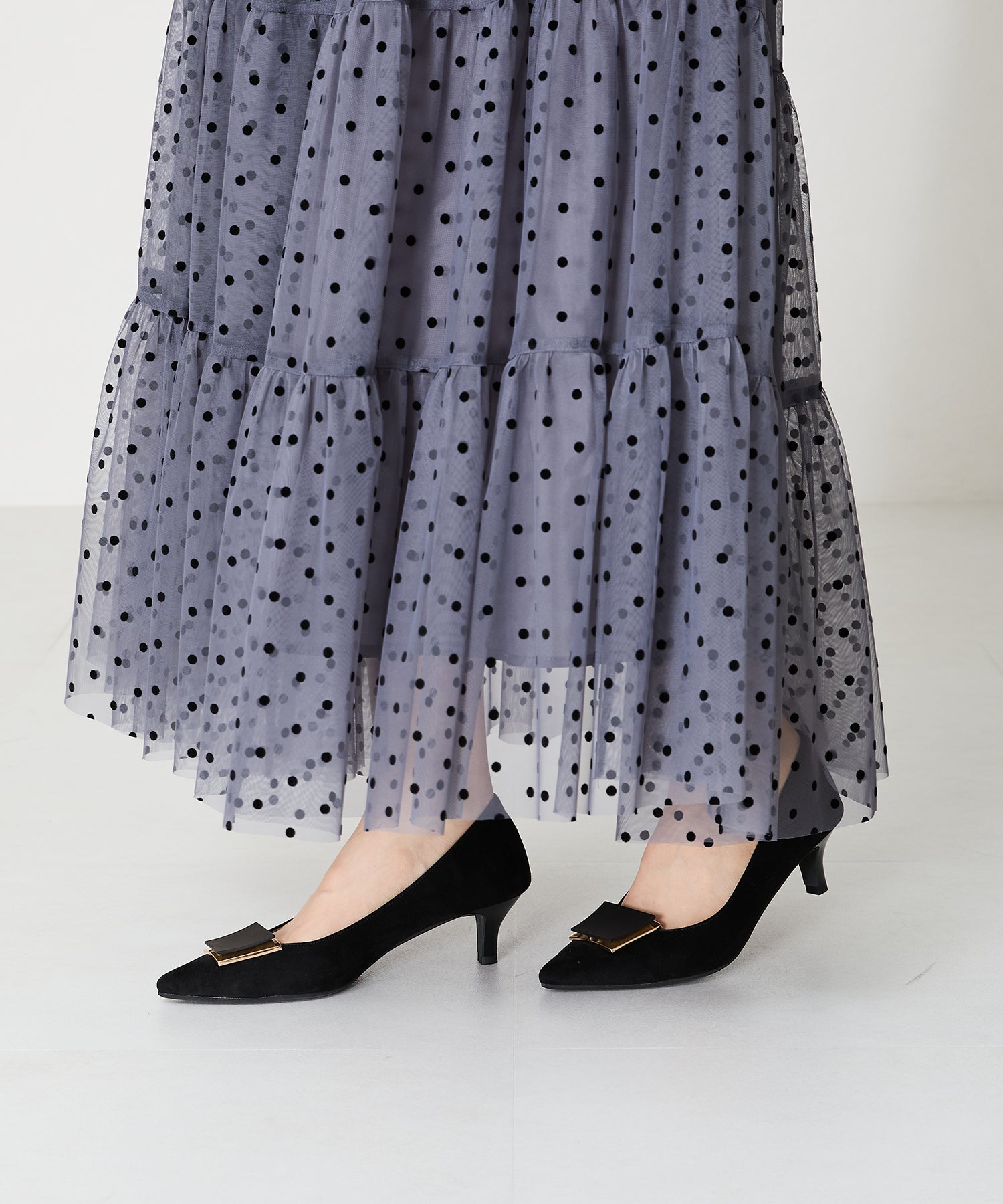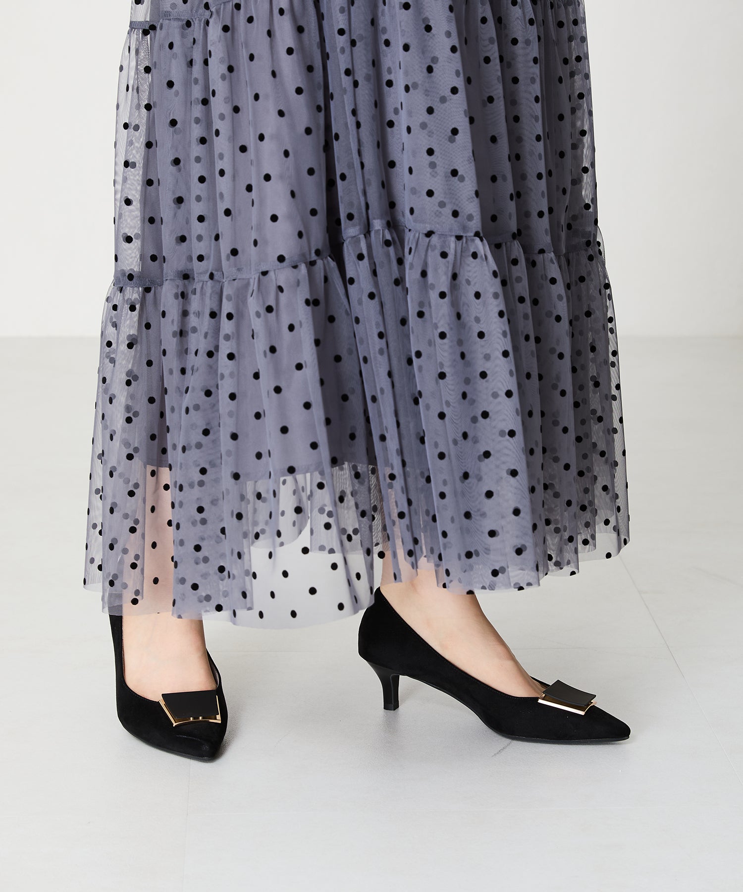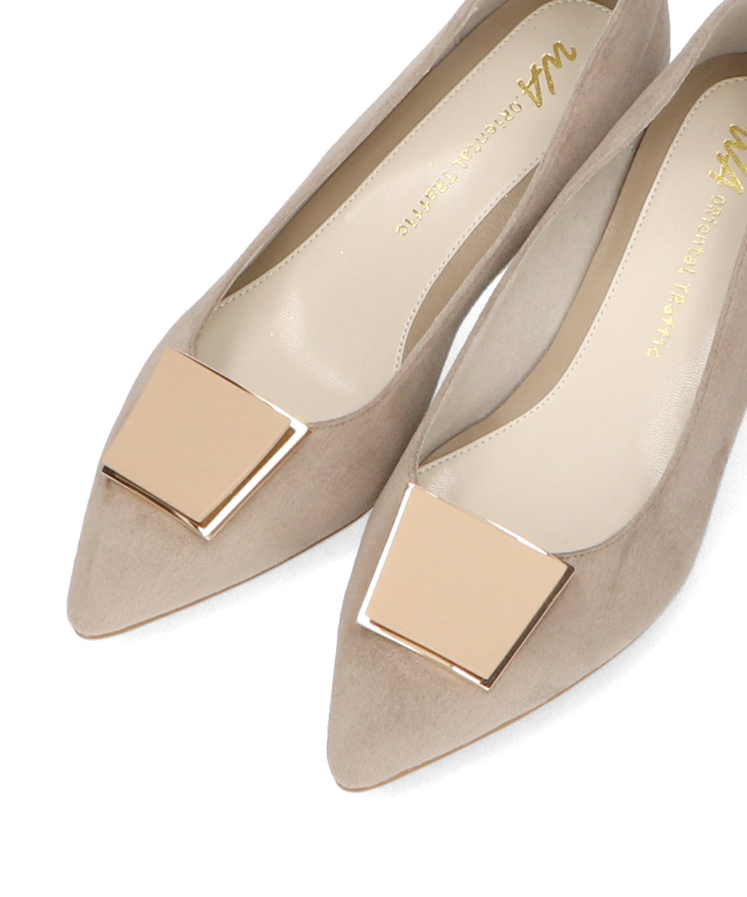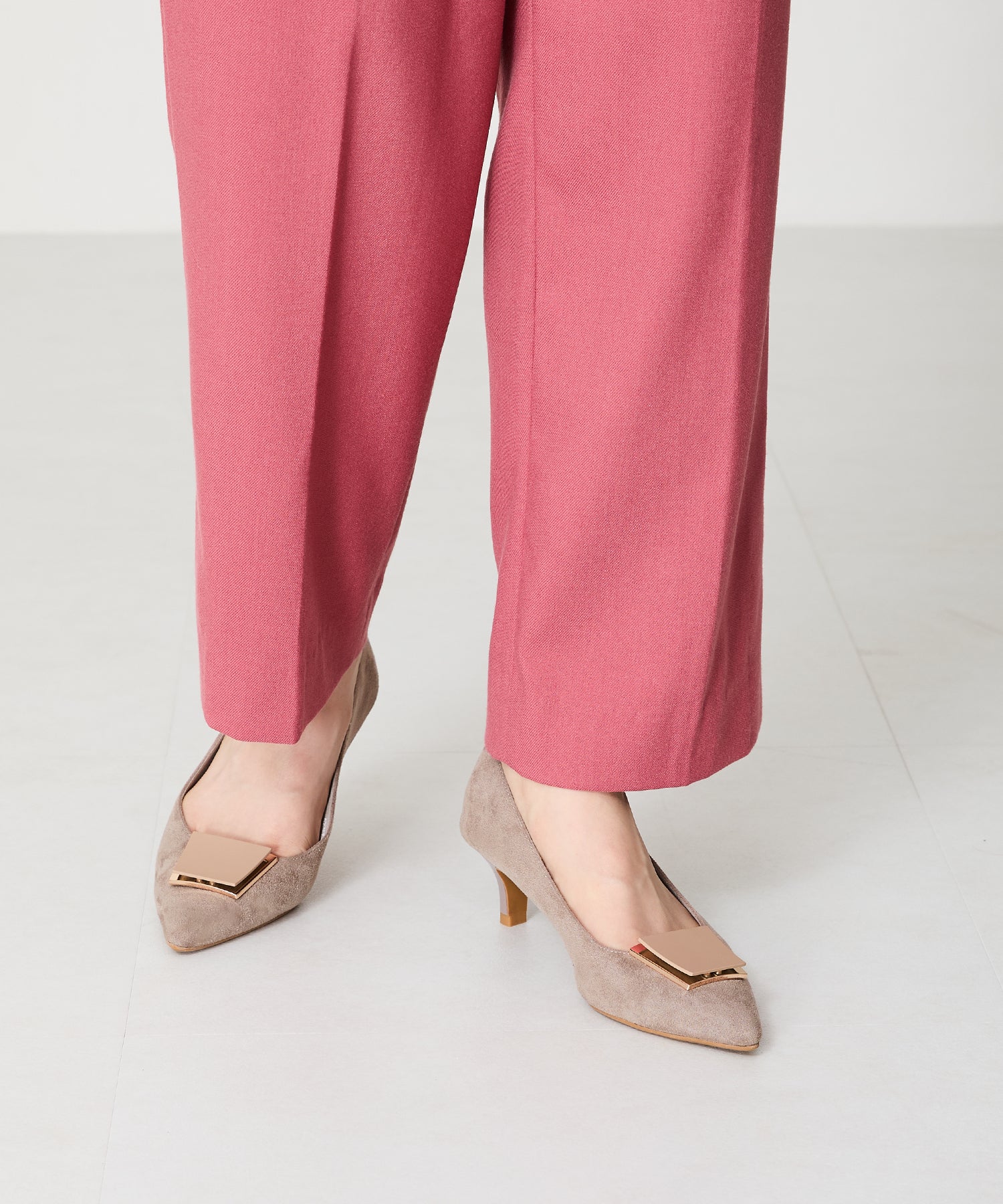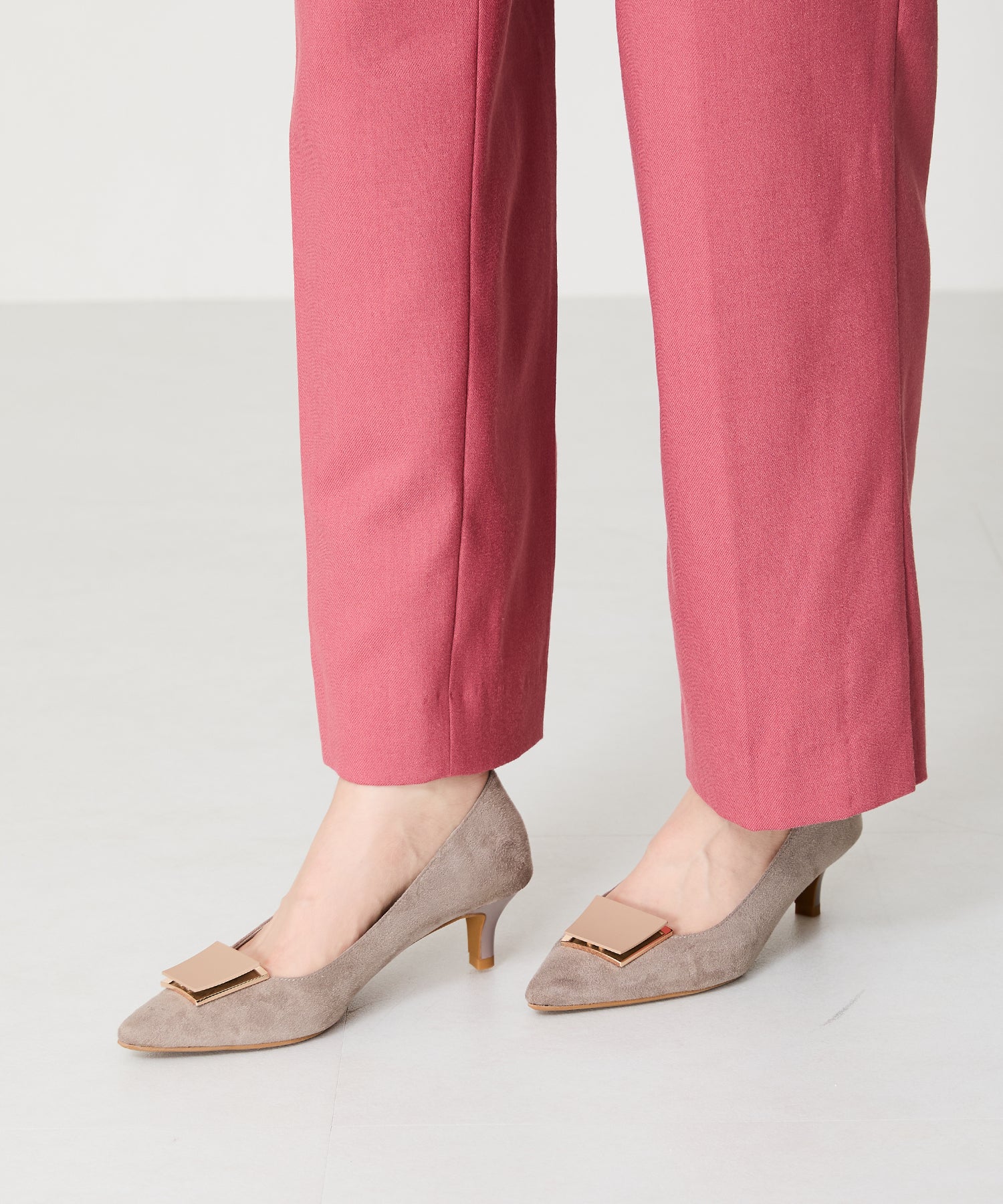 シャープなポインテッドトゥに細身のヒールで、華奢なシルエットを叶えてくれるパンプス。足の負担が軽くなるよう、つま先にクッションを入れたり、踵芯を柔らかくすることで、見た目以上の履きやすさを追及。アッパーの色に合わせた新鮮なスクエアモチーフは、クリップ式で取り外しが簡単なので、スタイリングやその日の気分によって変えられるのも嬉しい。