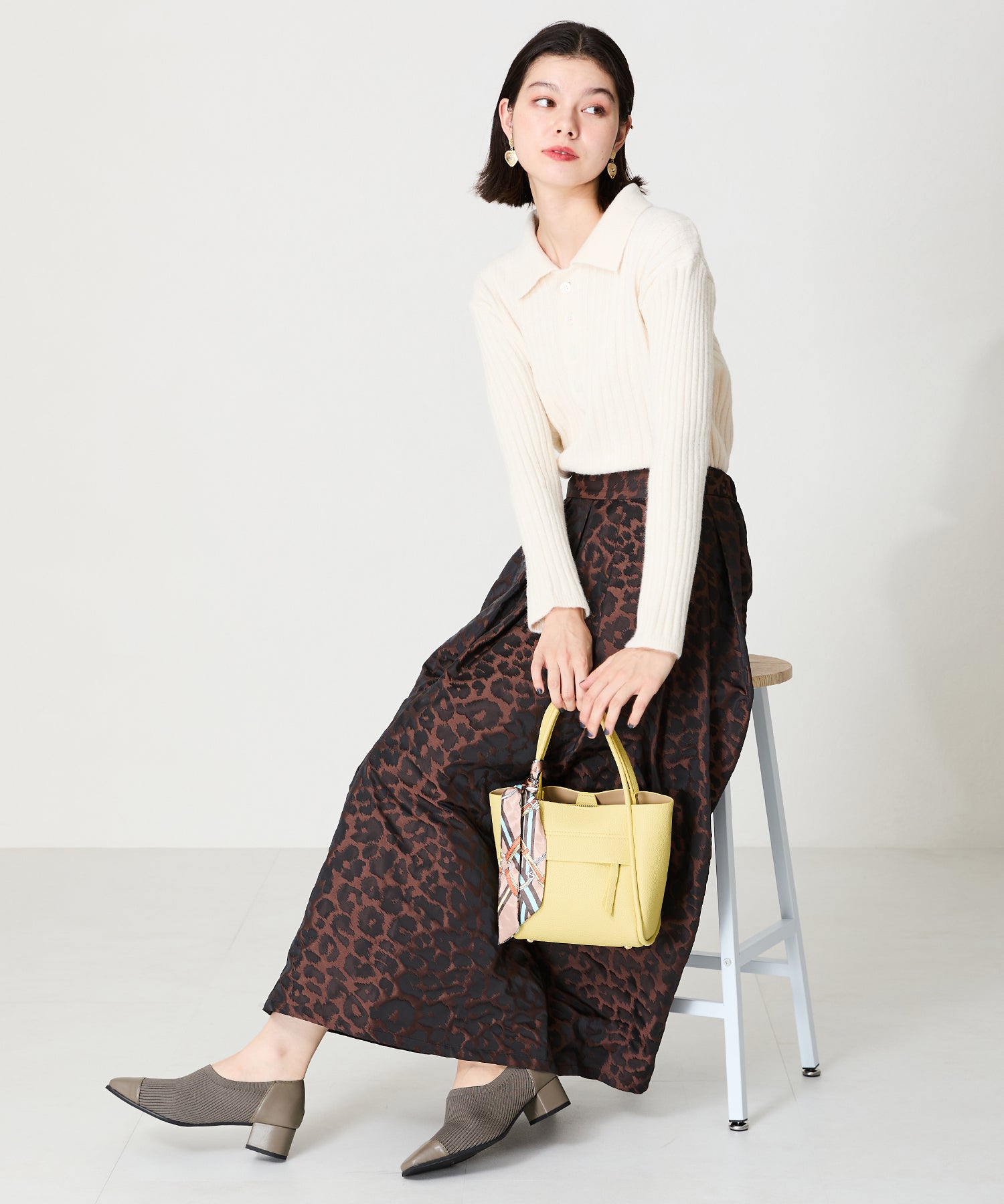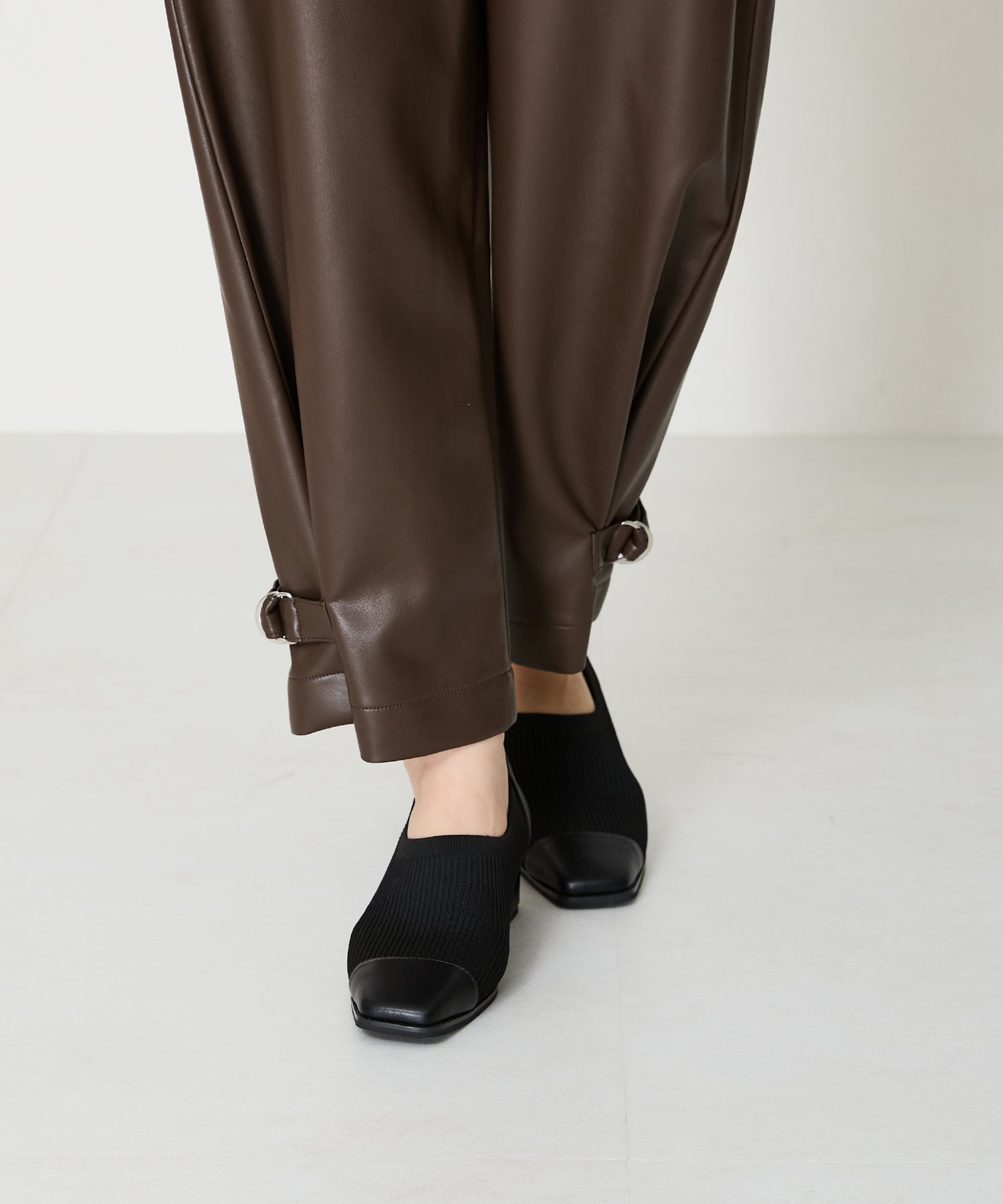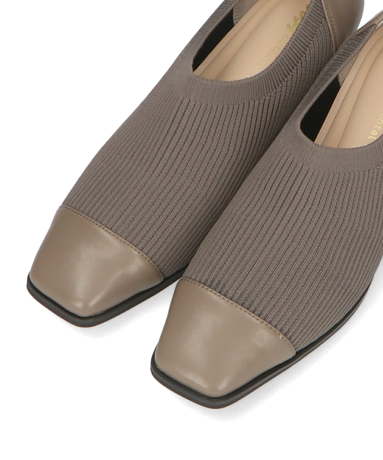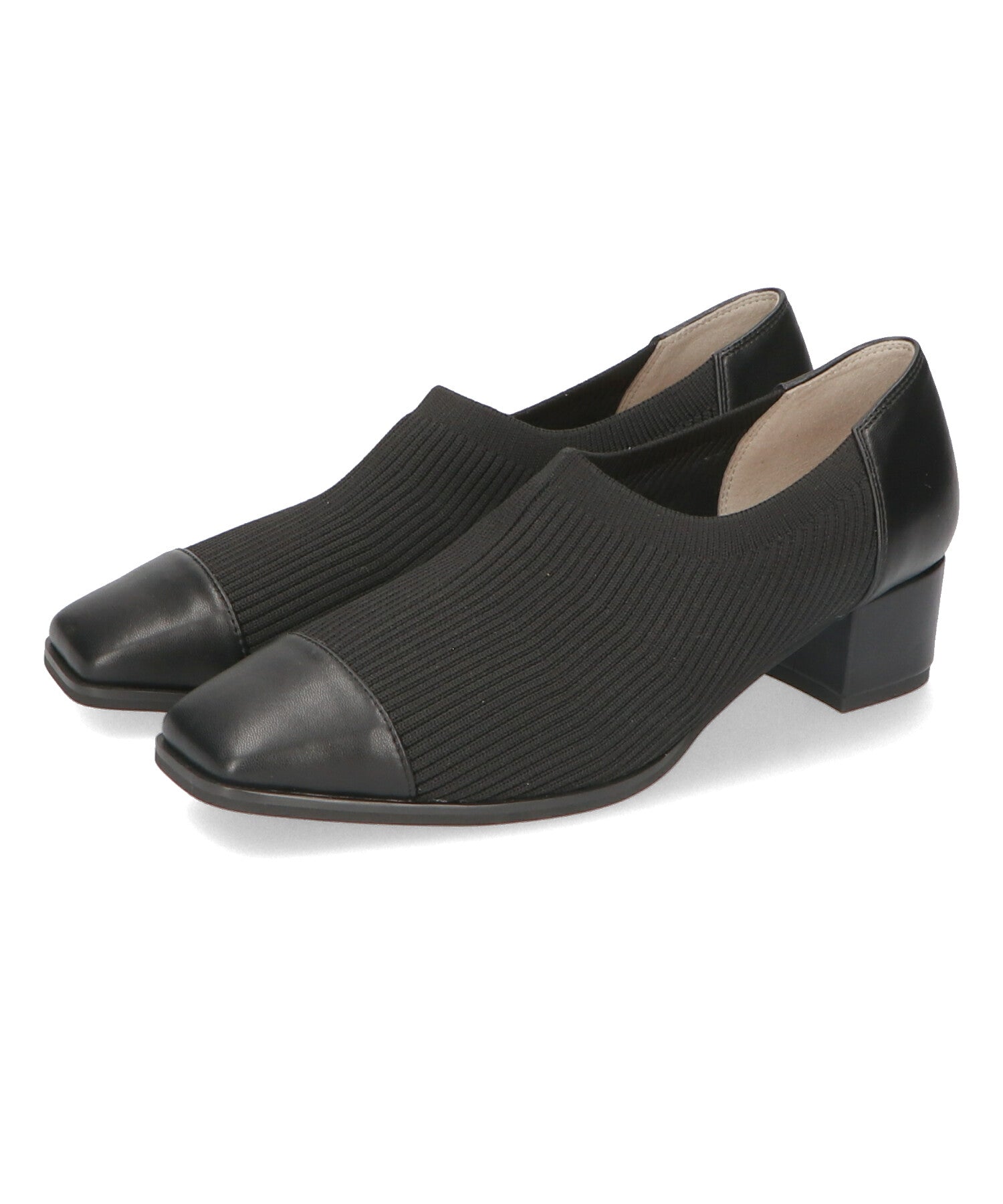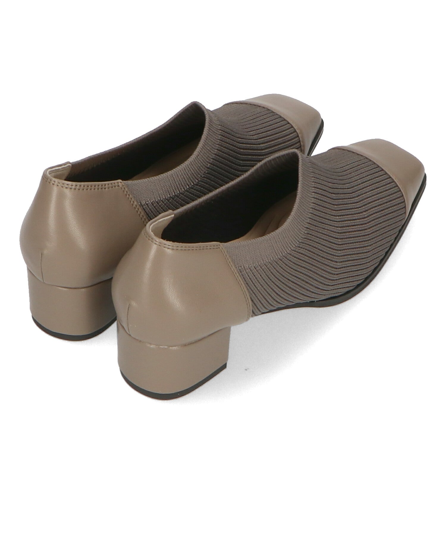 オリジナルで設計した凹凸のある厚手のインソール入りで歩きやすいパンプスは、太めのヒールで安定感もあり、全体をワントーンでまとめたオンオフ兼用で使えるアイテム。アッパーは伸縮性のあるリブニット素材で甲の部分をしっかりと覆ってくれるので脱げにくくホールド感も◎。つま先部分のみスムース素材で切り替えることで、シンプルになりすぎないようアクセントをプラス。