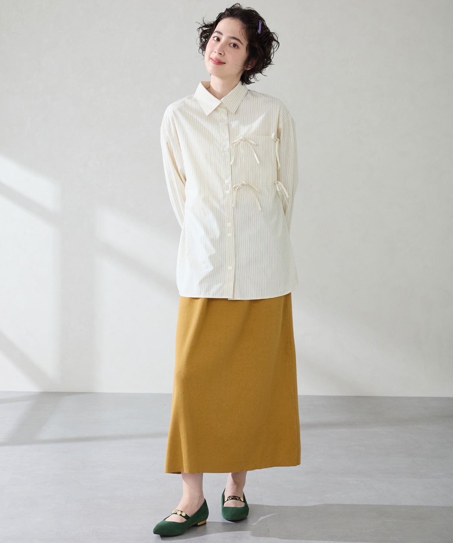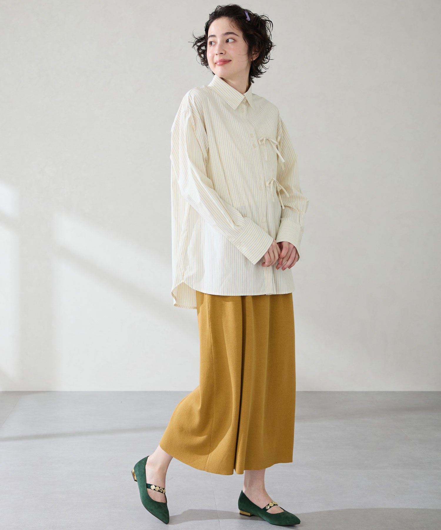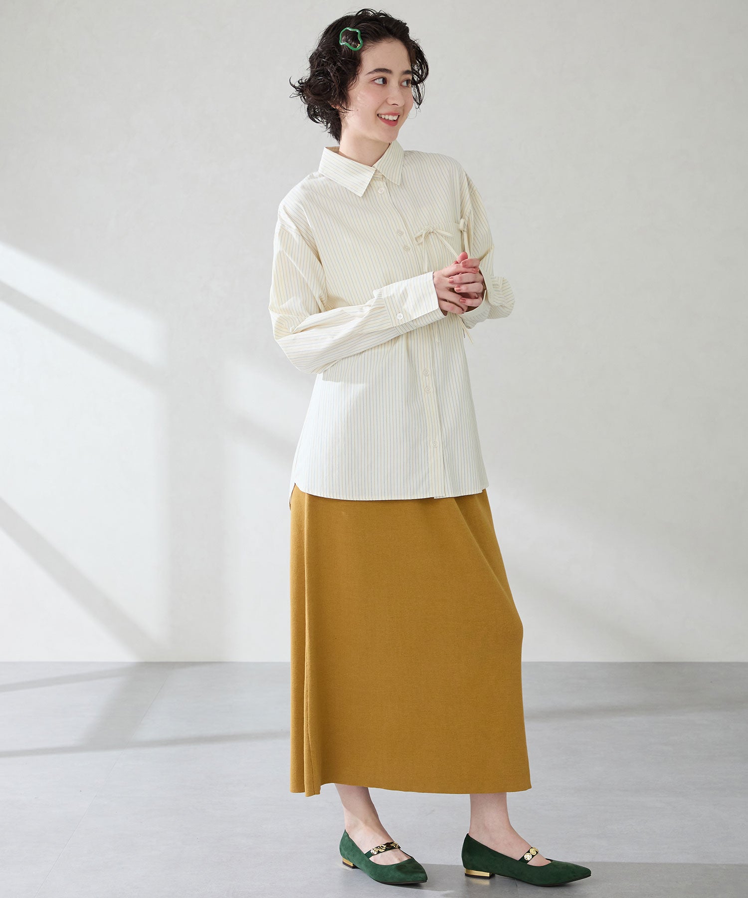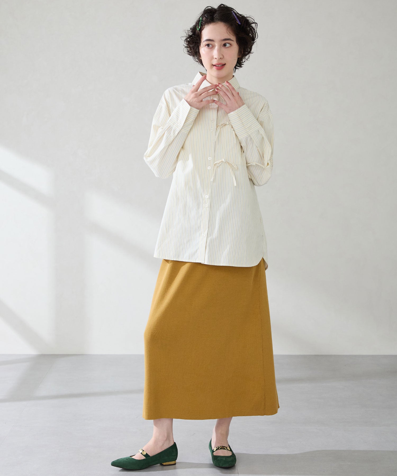 シャープなポインテッドトゥにゴールドのコインパーツの組み合わせが目を引く1足。甲は伸縮性のあるゴムベルトでしっかりとフィットし、歩行時の安定感をサポート。ヒールにはゴールドのメタリックプレートをあしらったデザインで、後ろ姿まで美しく演出。エレガンスな雰囲気のパンプスも、肌になじむスエード素材で全体的に柔らかな秋らしく仕上げたアイテム。