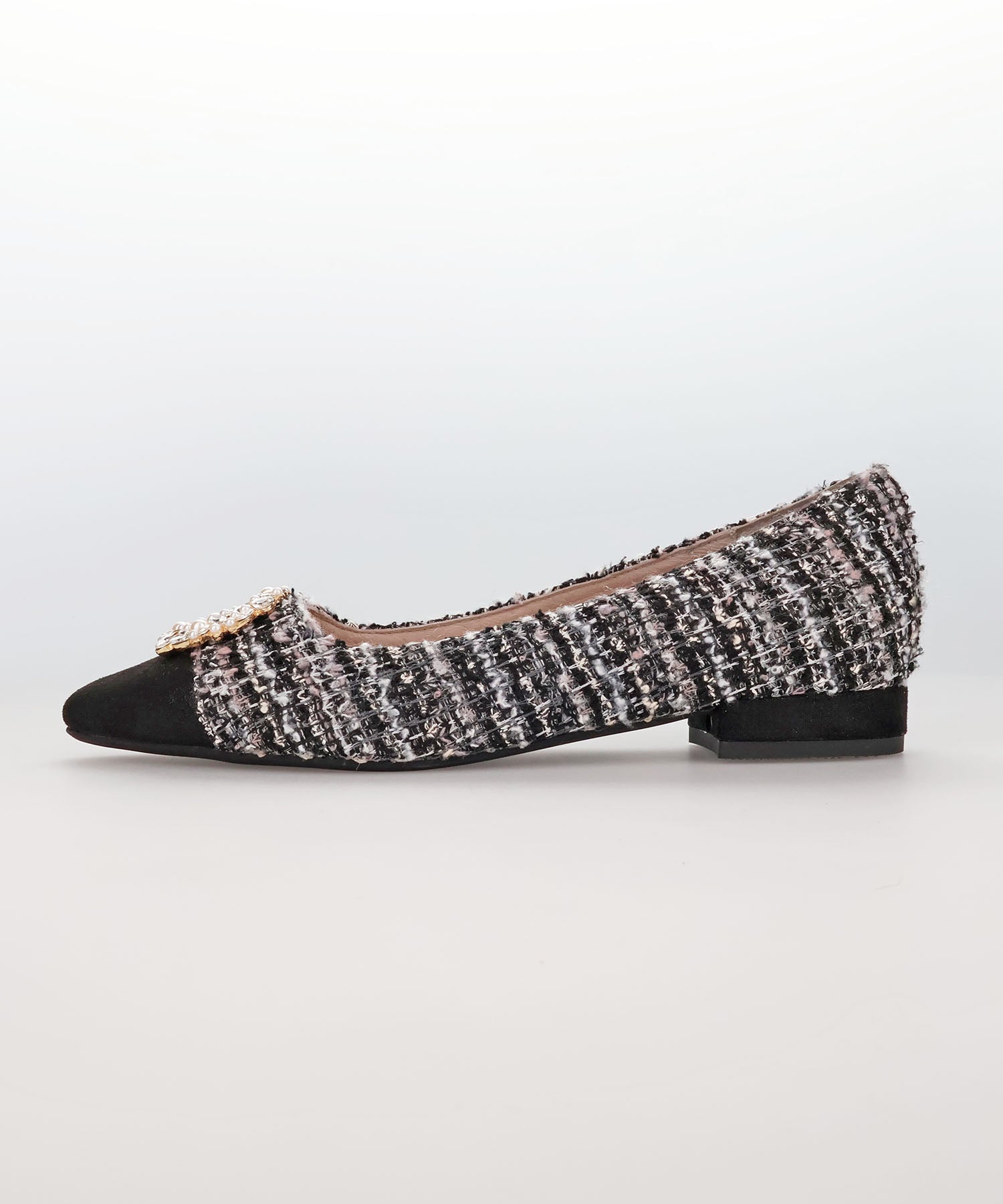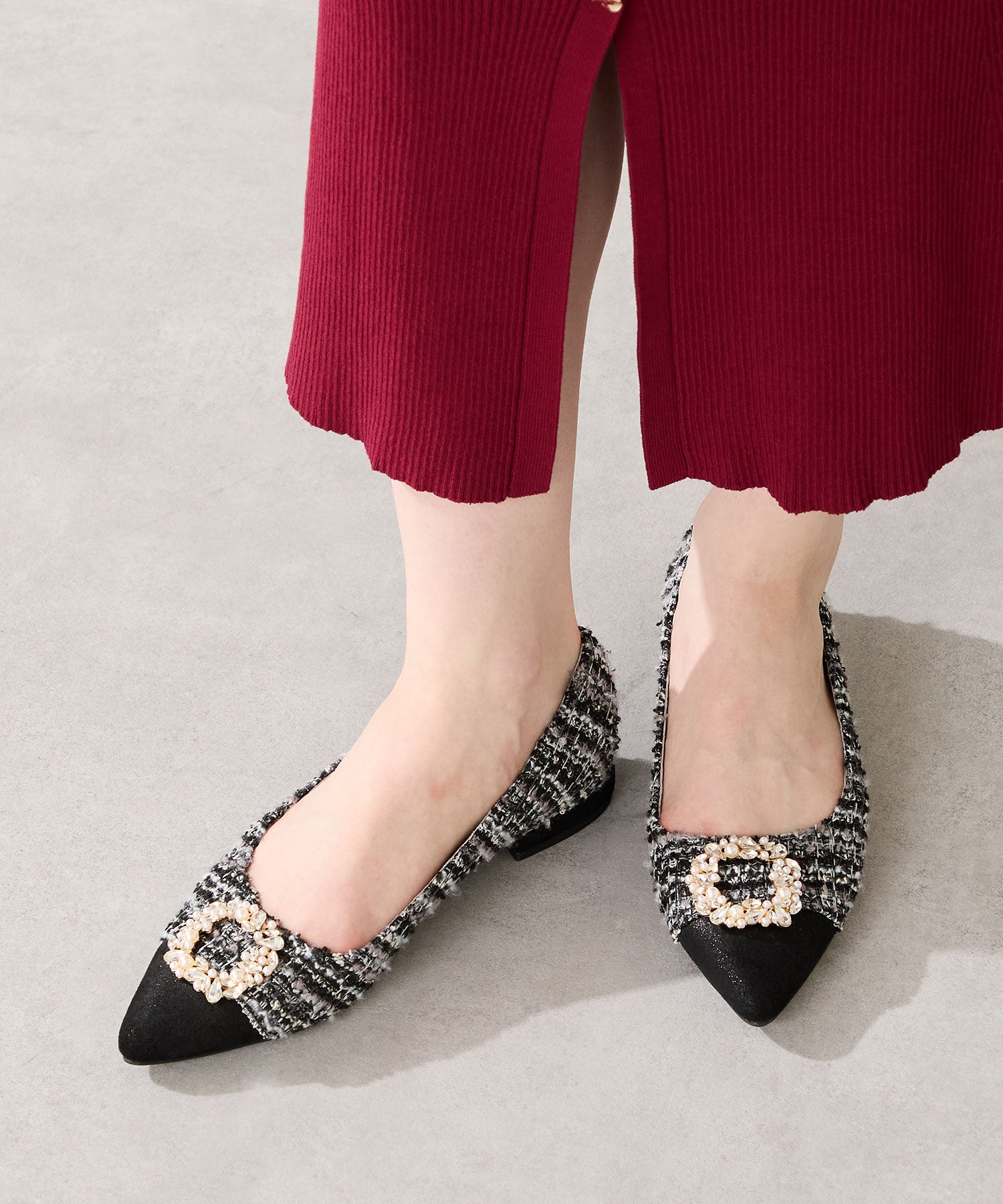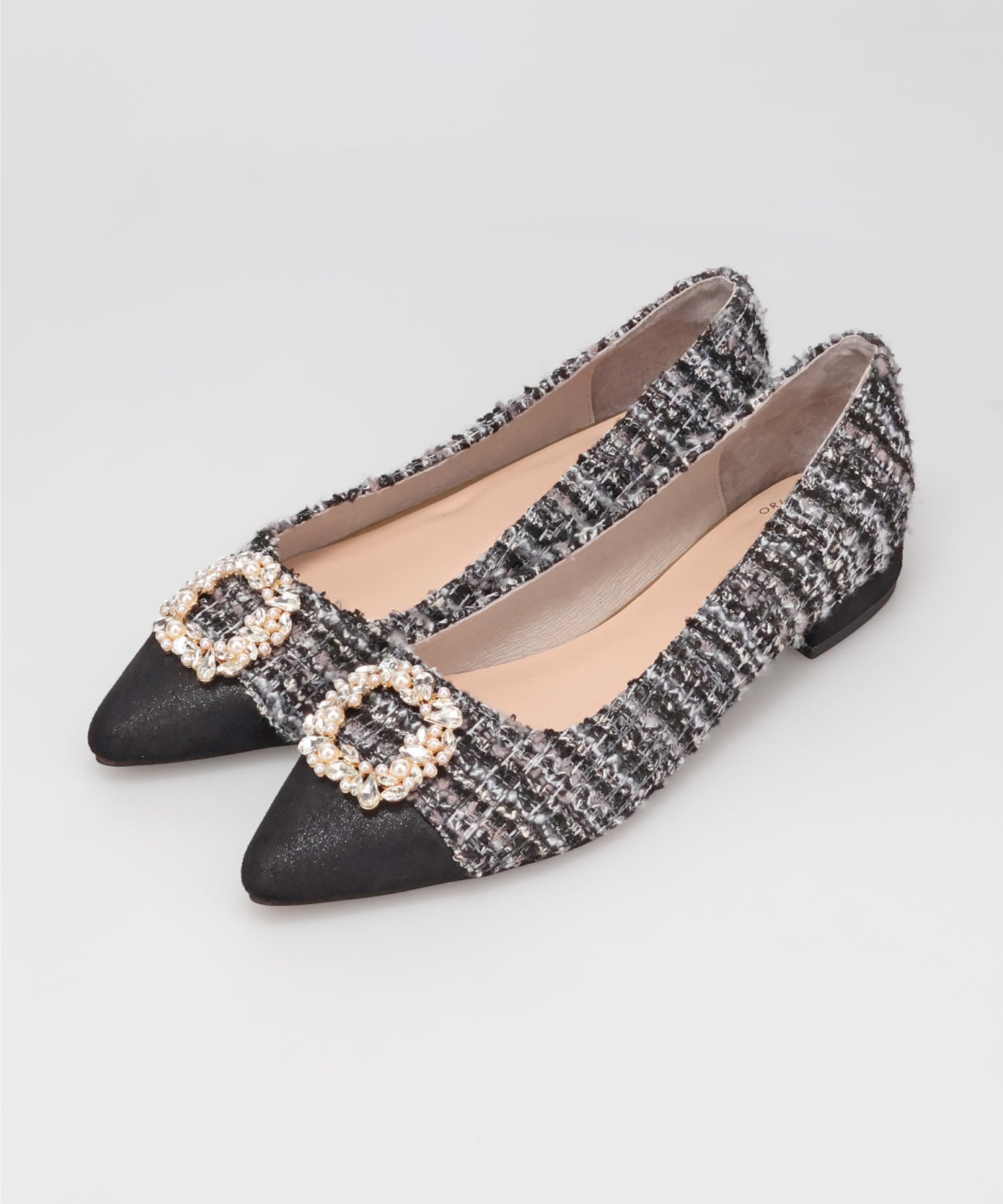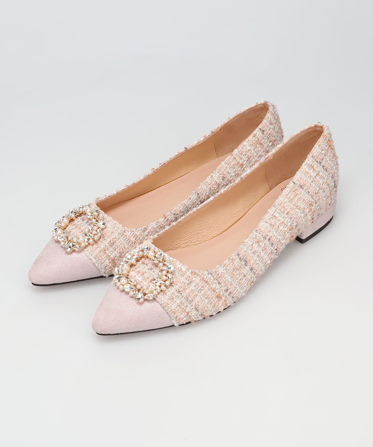 【カタログ掲載アイテム】ビジューモチーフツイードフラットパンプス/56310