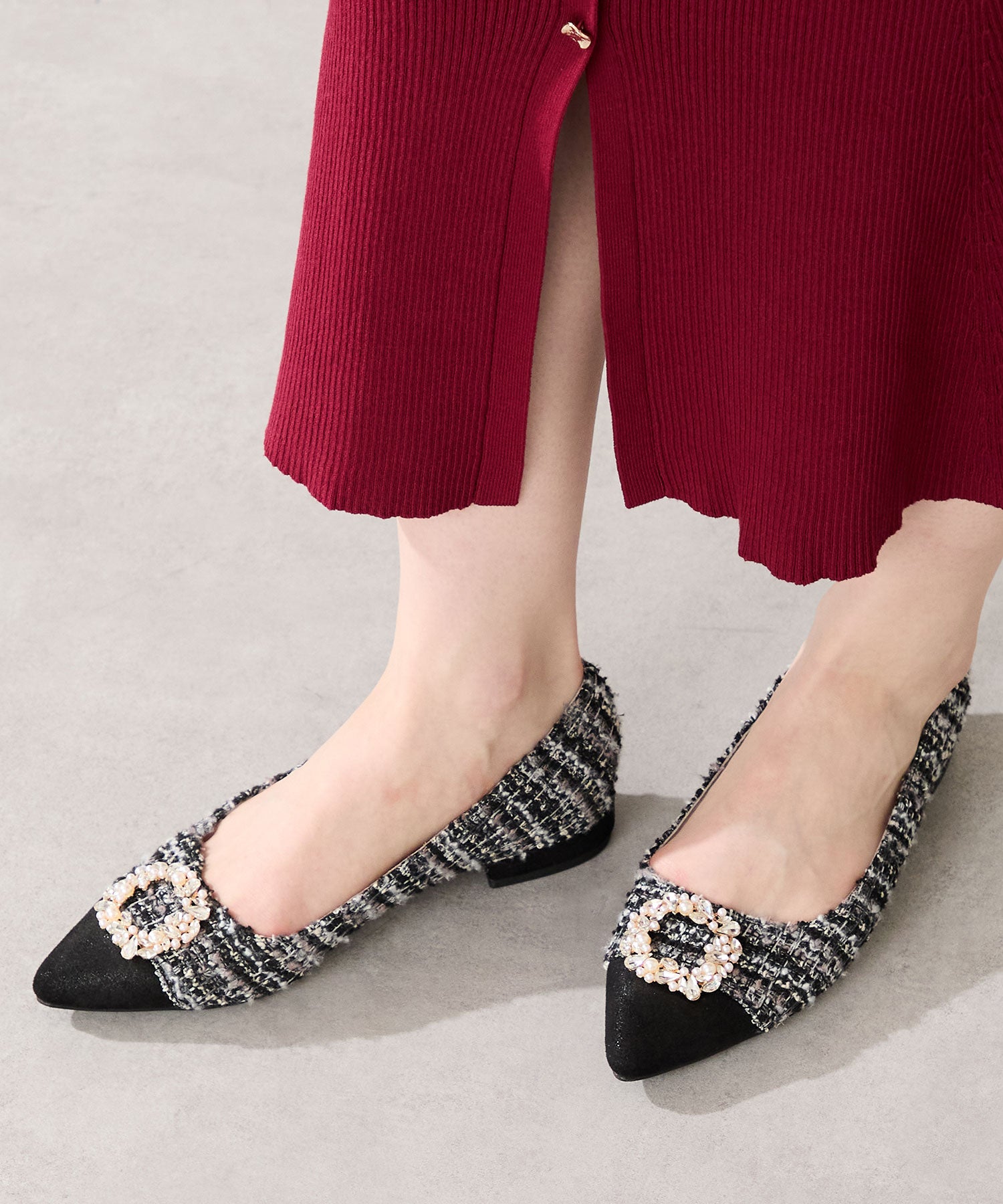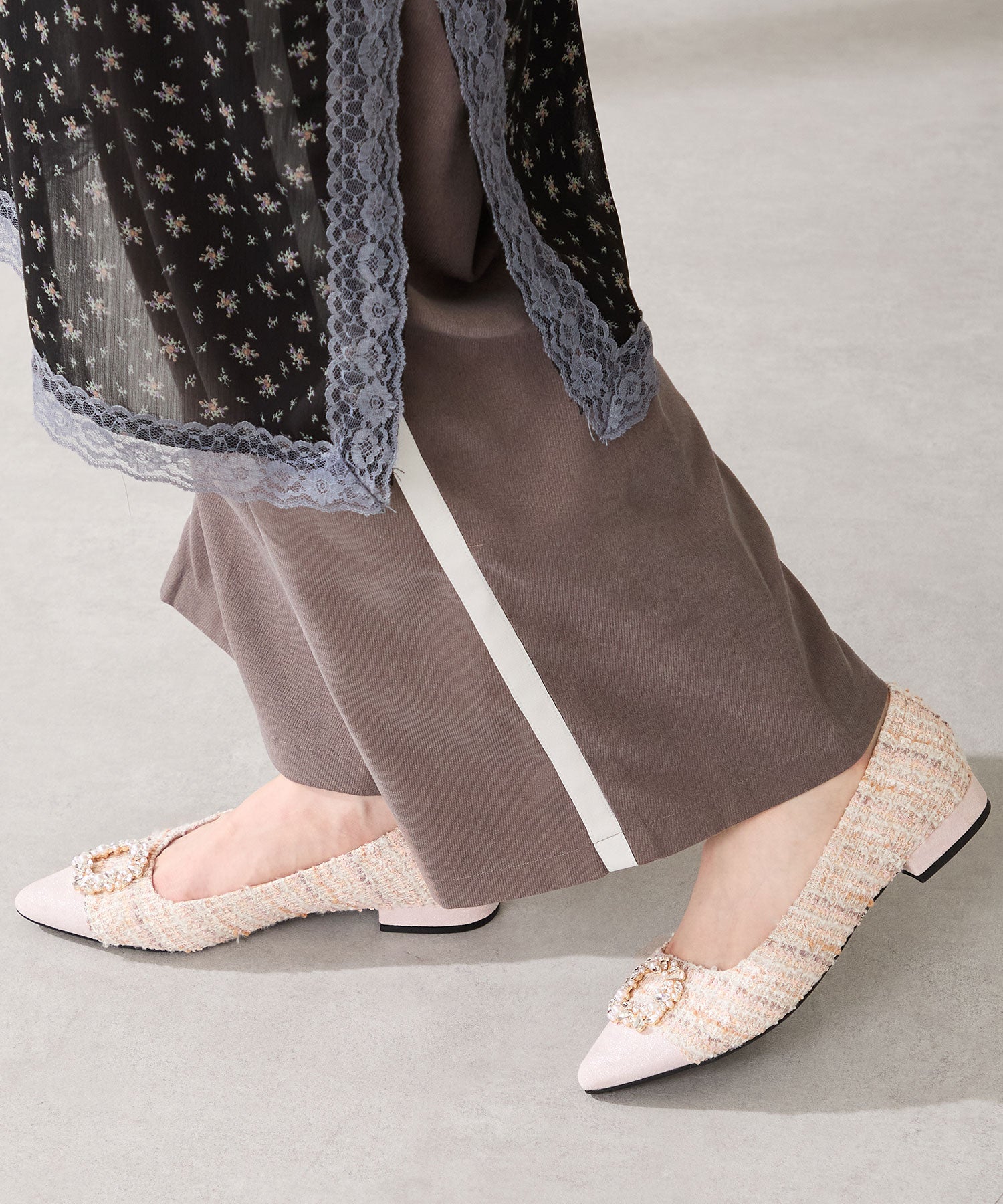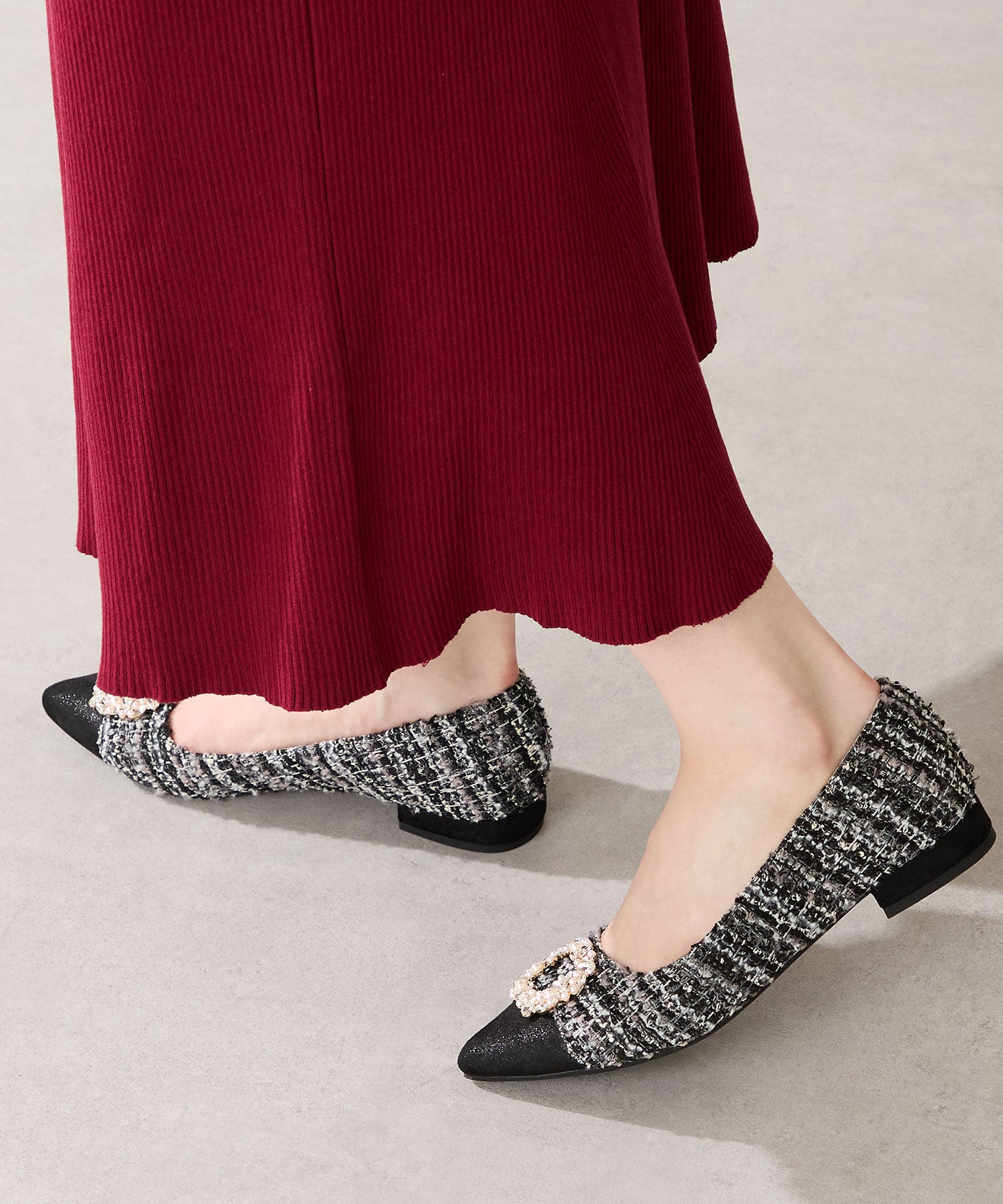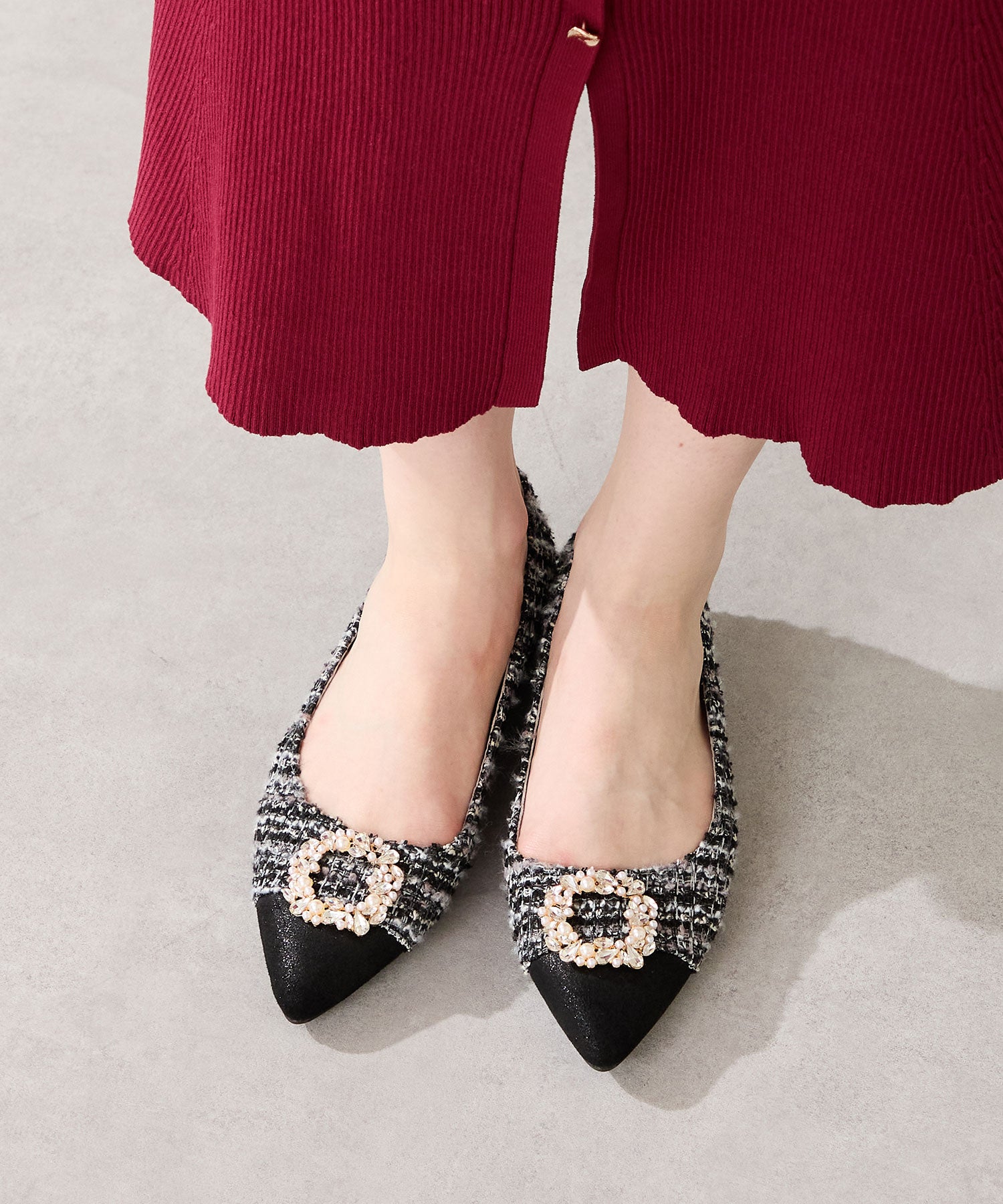 【カタログ掲載アイテム】ビジューモチーフツイードフラットパンプス/56310