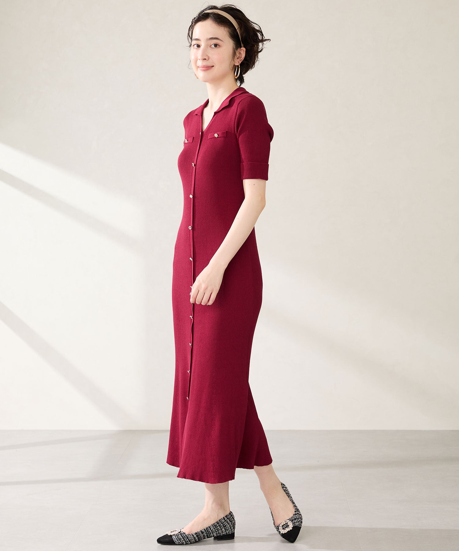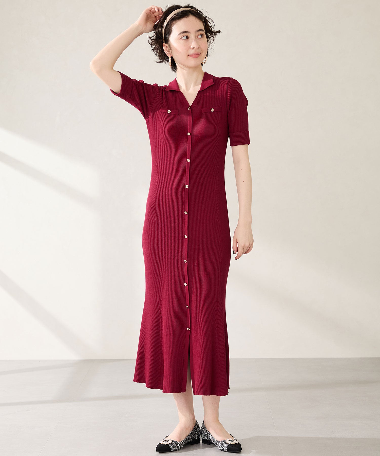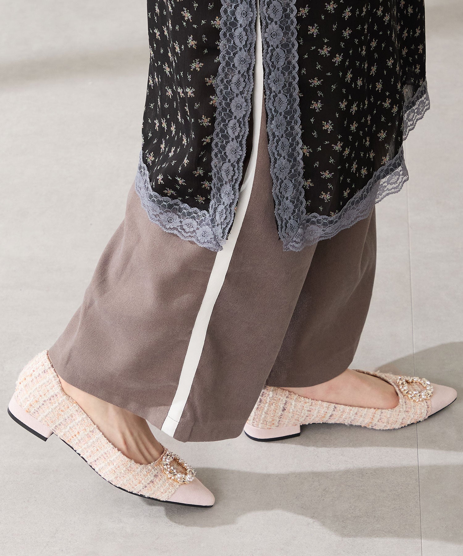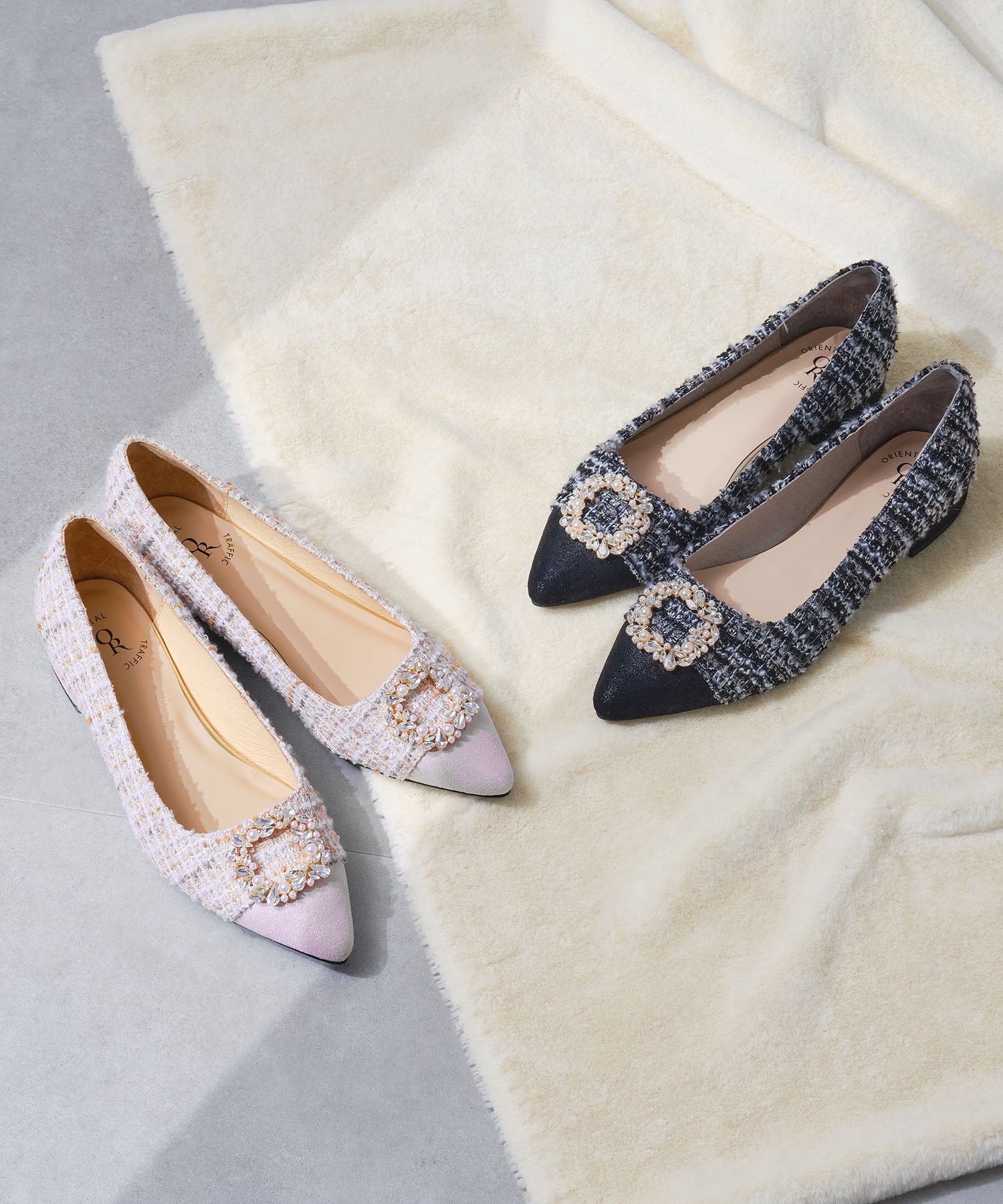 【カタログ掲載アイテム】ビジューモチーフツイードフラットパンプス/56310