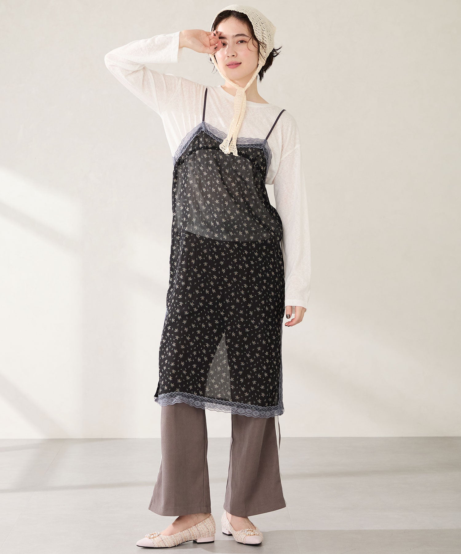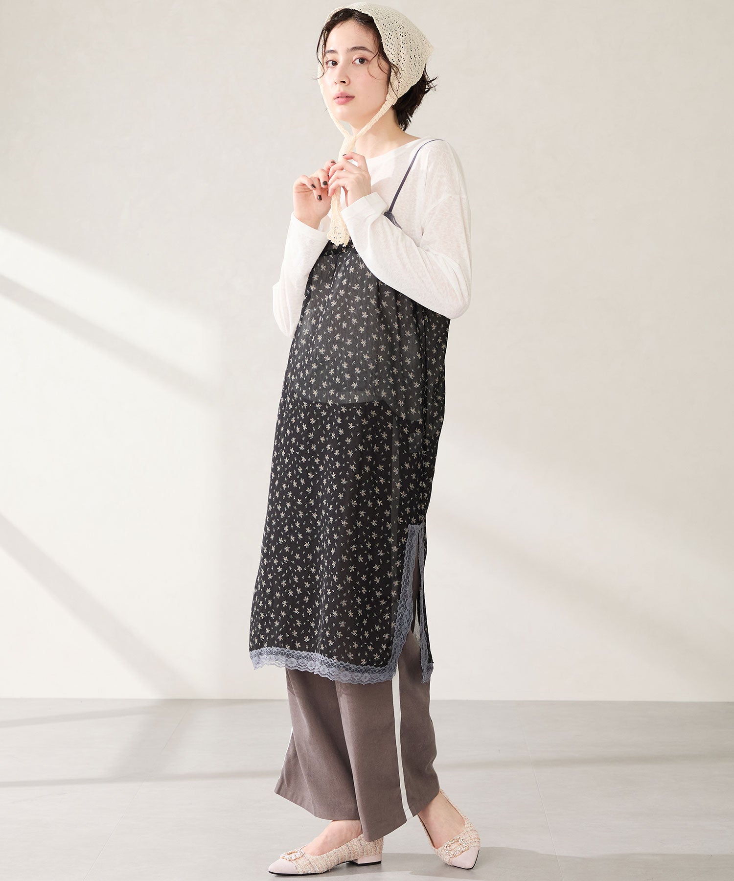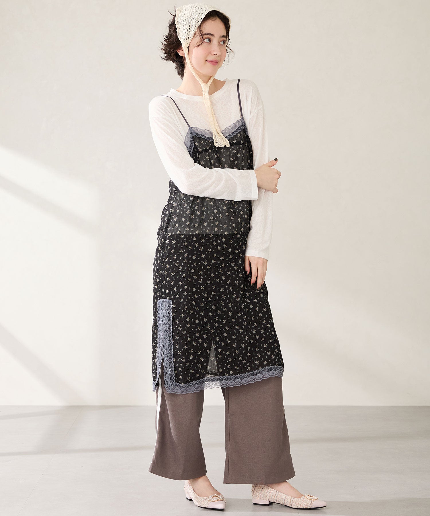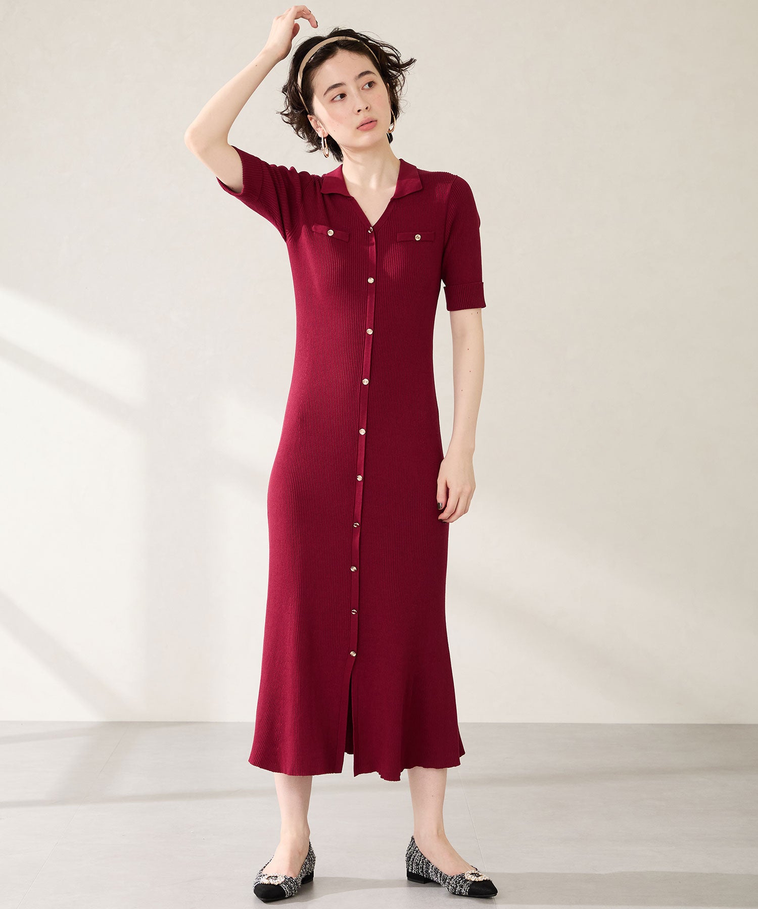 【カタログ掲載アイテム】ビジューモチーフツイードフラットパンプス/56310
