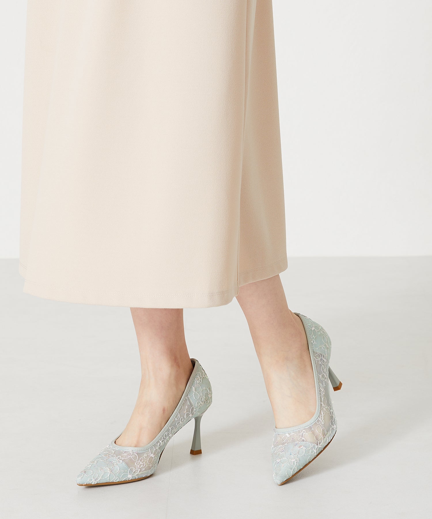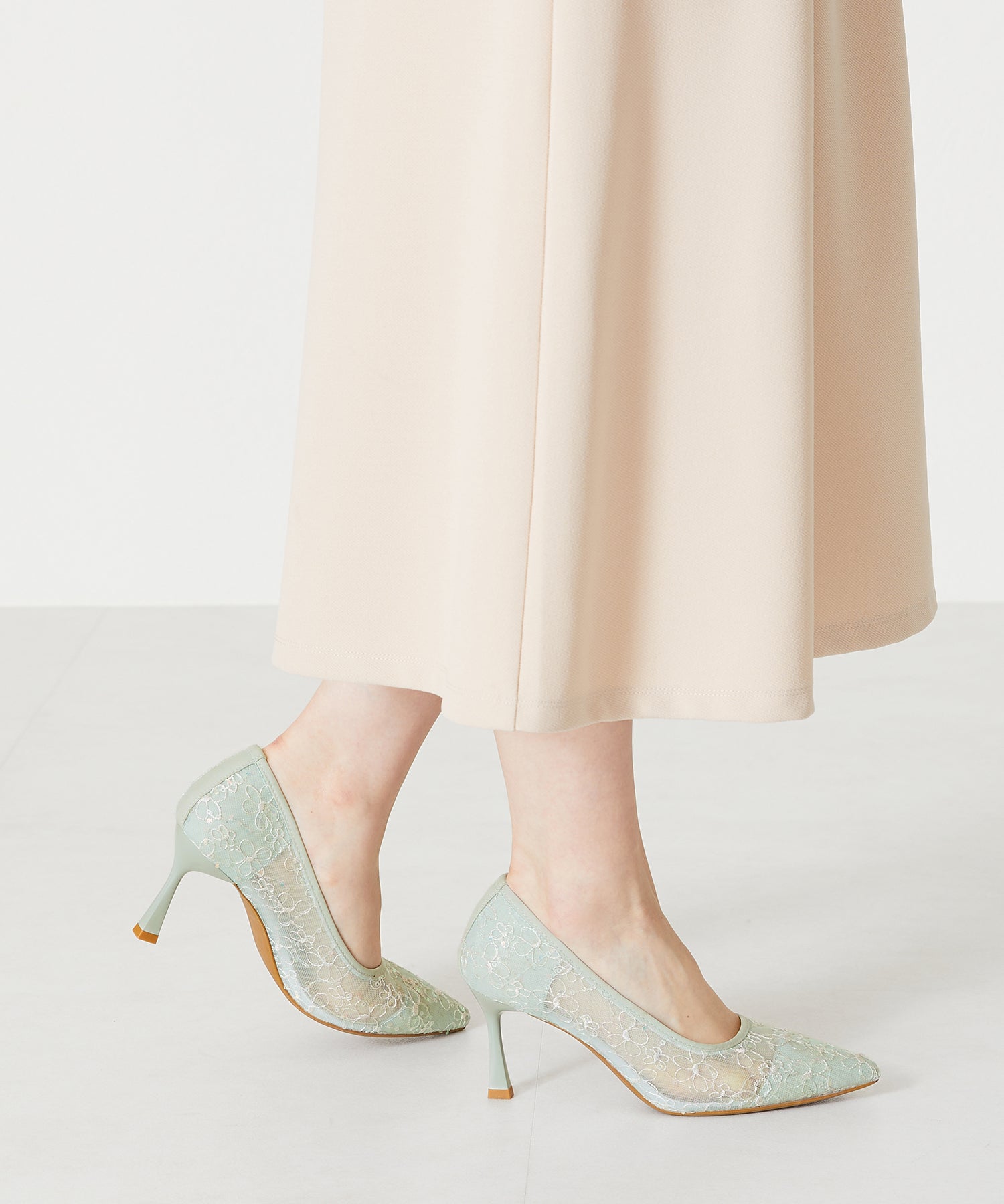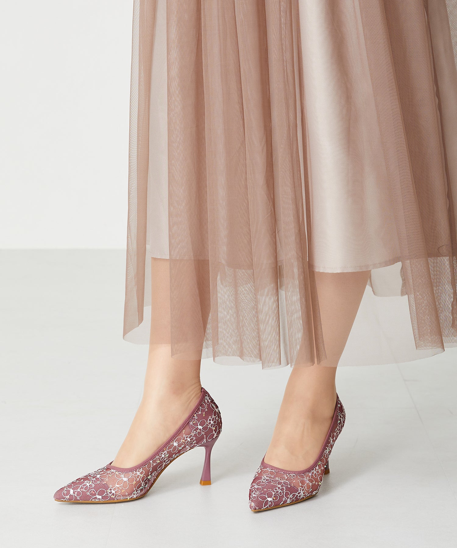 レース刺繍ポインテッドトゥパンプス/MOR102【結婚式/オケージョン/パーティー】