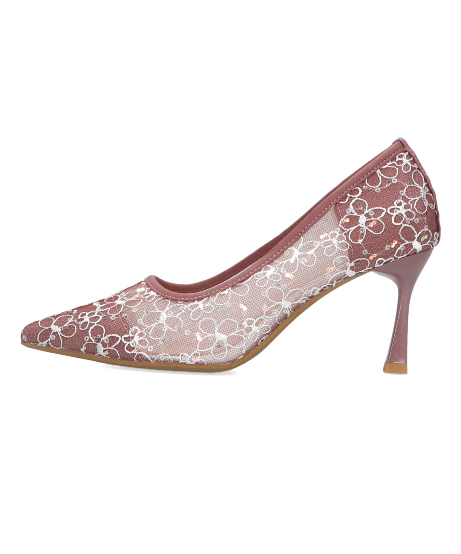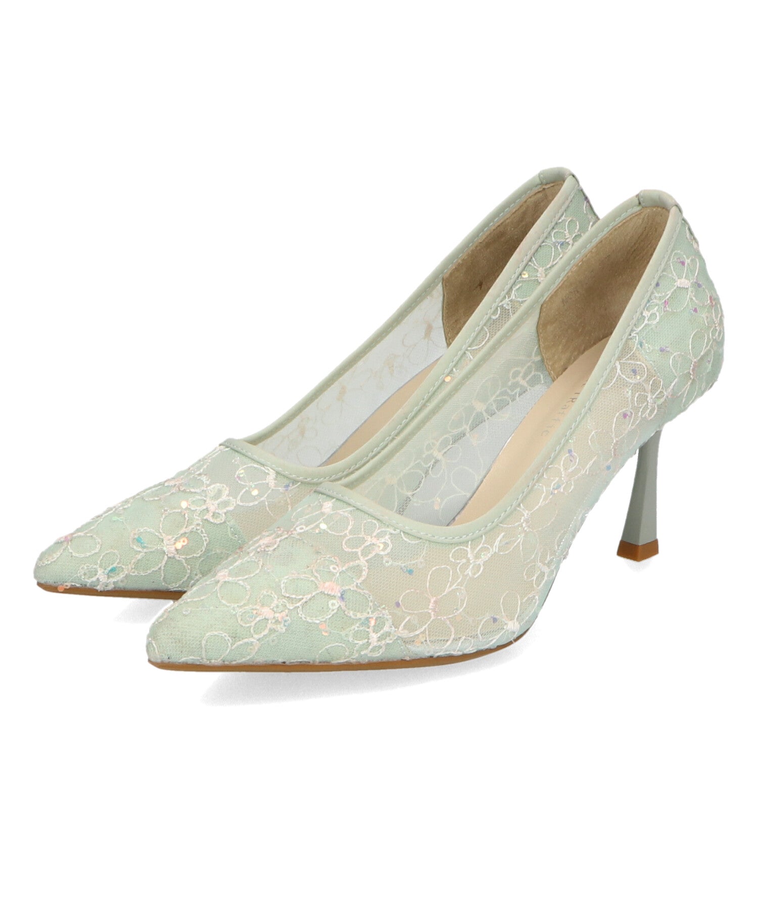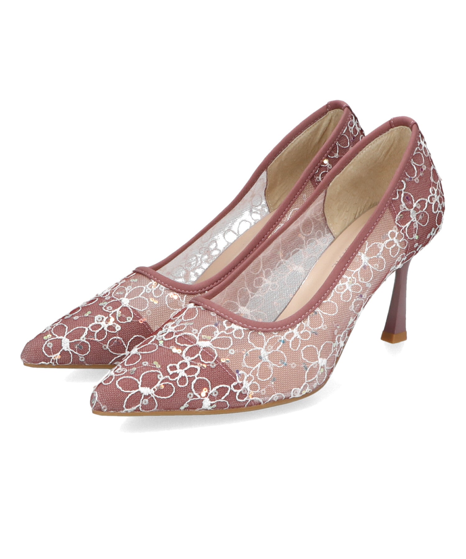 レース刺繍ポインテッドトゥパンプス/MOR102【結婚式/オケージョン/パーティー】