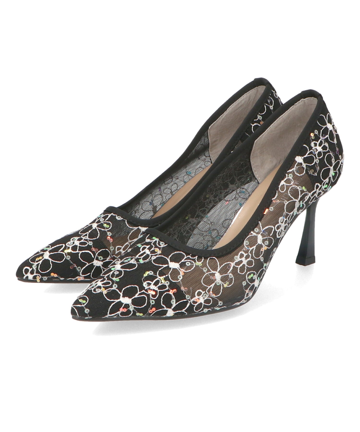 レース刺繍ポインテッドトゥパンプス/MOR102【結婚式/オケージョン/パーティー】 - ブラック / 34