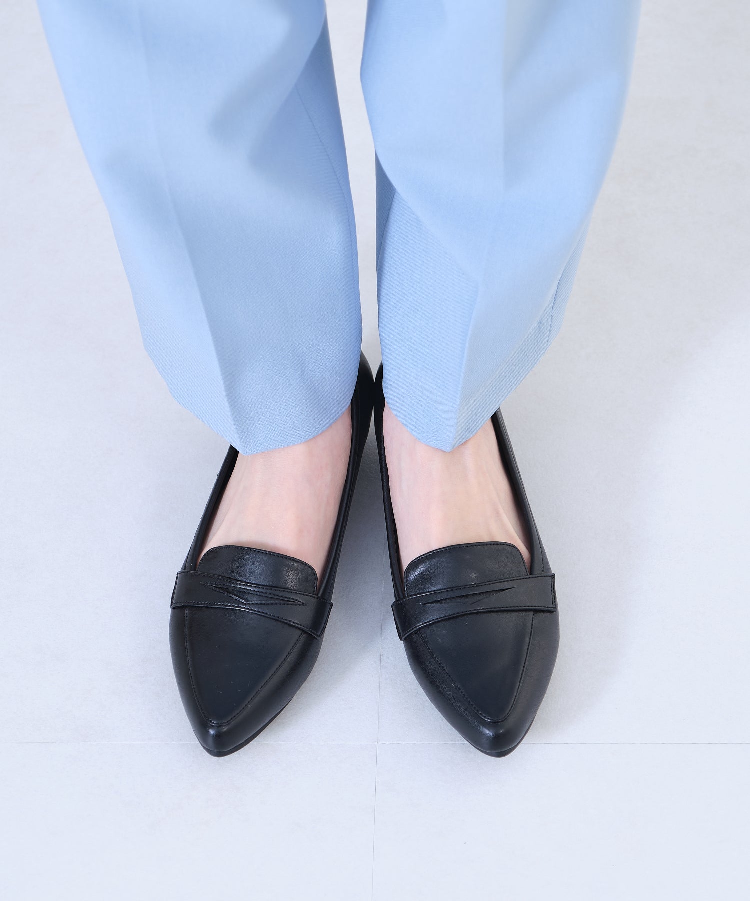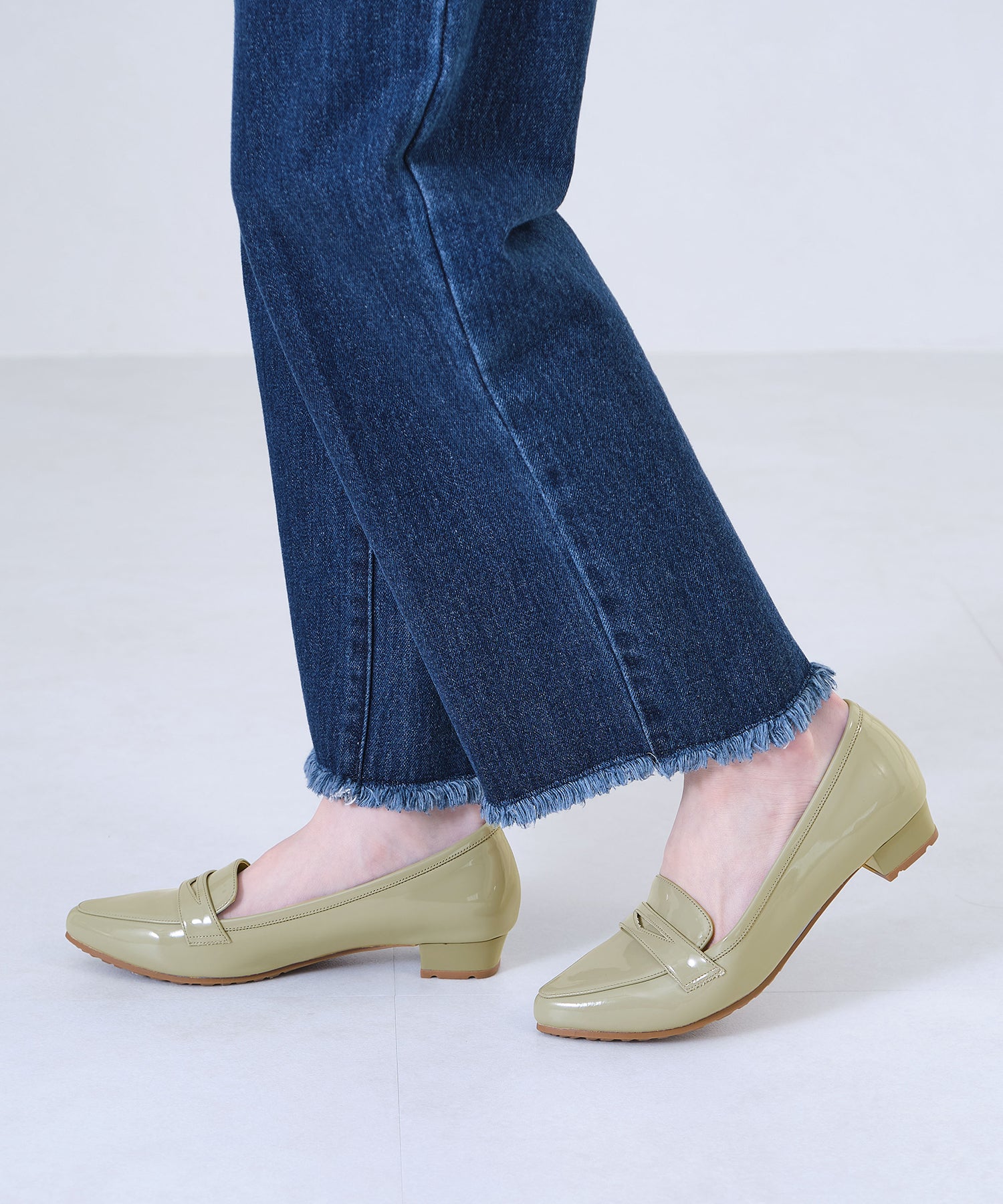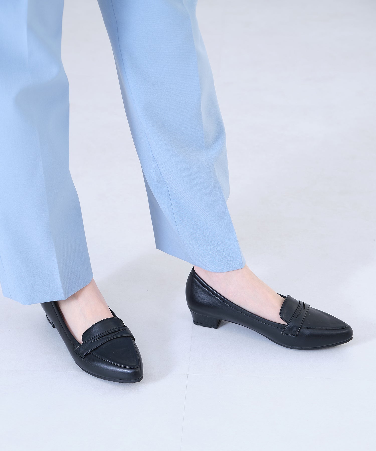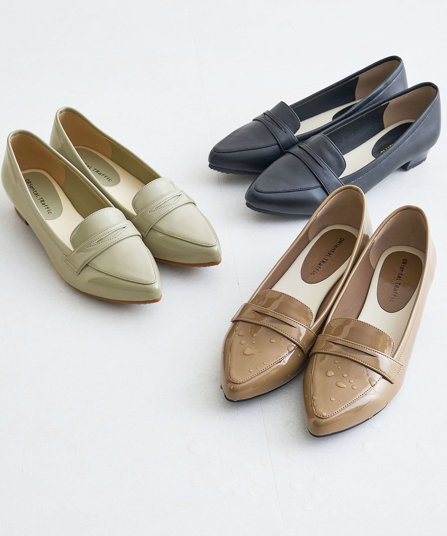 細身のポインテッドトゥが足元をすっきり見せてくれるオペラパンプスは、ローファーデザインで程良くカジュアルダウン。少し浅めの履き口でボトムを選ばず、幅広いコーディネートに合わせられる優れもの。ブラックのみマットなスムース素材にすることで、より使いやすい仕様に。ベーシックカラーに加え、新鮮なくすみグリーンも魅力的。