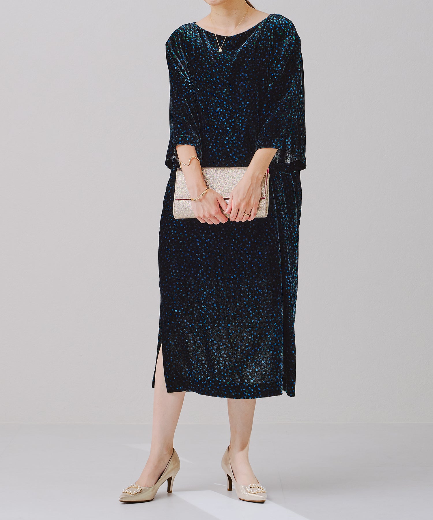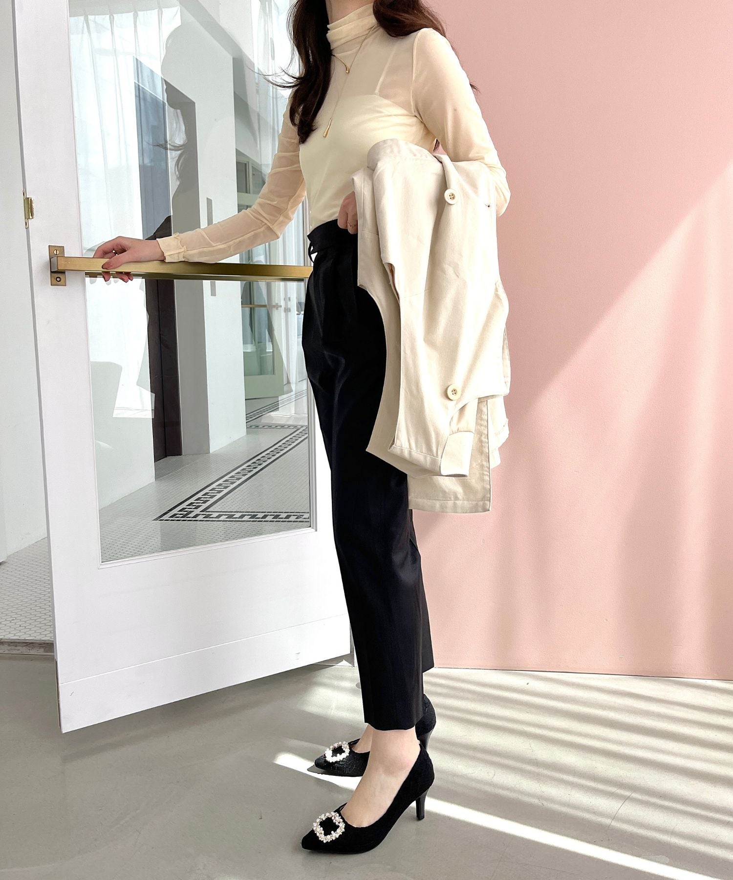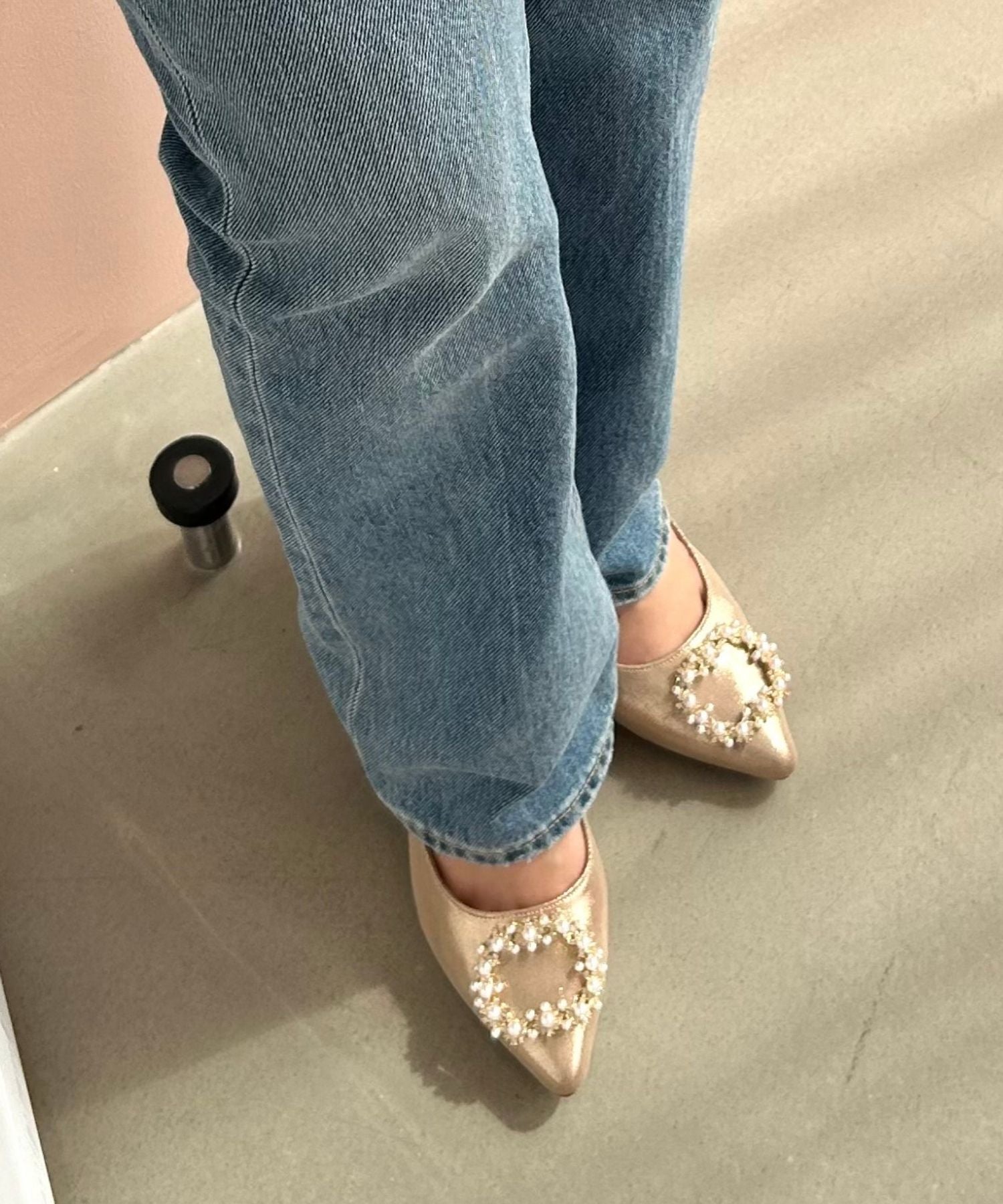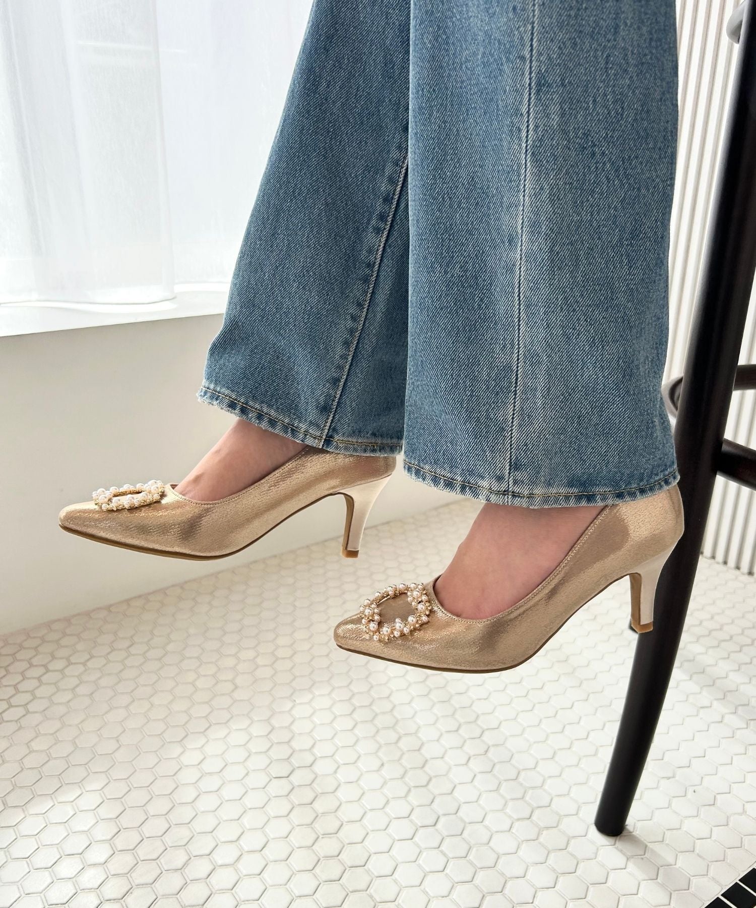 シャープなポインテッドトゥにパール×ビジューのスクエアバックルをあしらったドレッシーな1足。ランダムに配置した小粒のパールとクリアビジューを使用したモチーフで女性らしい足元に。カラーによってラメ素材やレース素材など、シーン別で選べる3色展開。フロントの華やかさにマッチしたサテンヒールで360度どこから見ても美しいディテールがこだわりポイント。お祝いの席など、お呼ばれシーンで華やかな足元を演出。