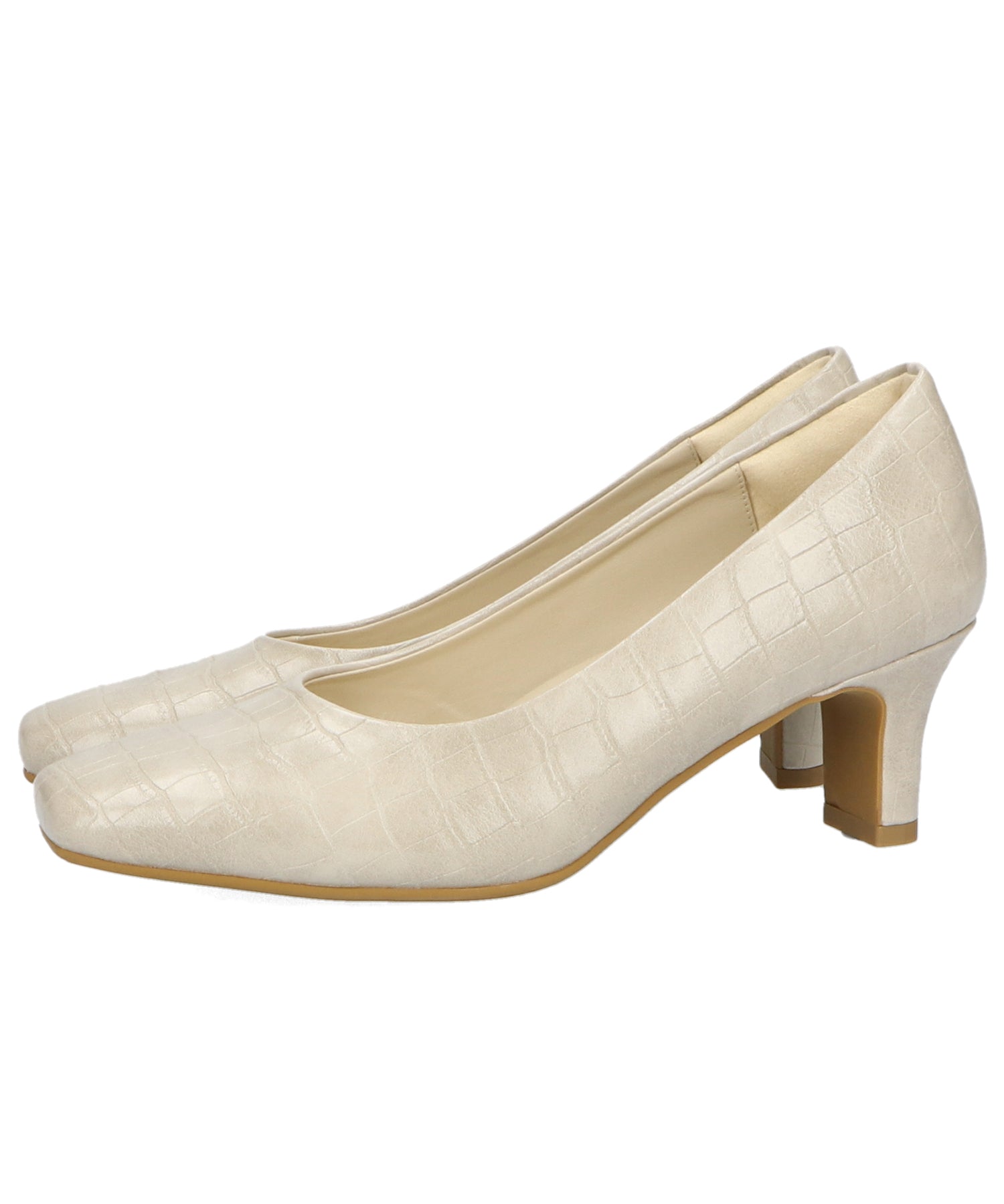 長時間ヒールを履くと疲れる方におすすめのきちんと感のあるスクエアトゥパンプス。太めのプレートヒールで歩きやすいのでお仕事履きにもぴったりのアイテム。土踏まず部分にフィットして歩行をサポートするアーチクッションや、厚手の踵クッション入りで脱げにくく履き心地◎。大人っぽく履ける型押し素材や爽やかなイエローなど他にはない新鮮なカラー展開。