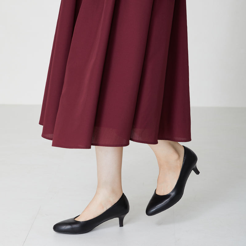 ヒールに慣れていない方にもおすすめな安定感抜群のミドルヒールパンプスは歩きやすさはもちろん、スタイルアップも叶う優秀アイテム。きちんと感を演出してくれるすっきりとしたアーモンドトゥでお出かけや通勤用など幅広いシーンに活躍。つま先部分やインソール、踵部分など部位にフィットするクッションでしっかり足元をサポート。